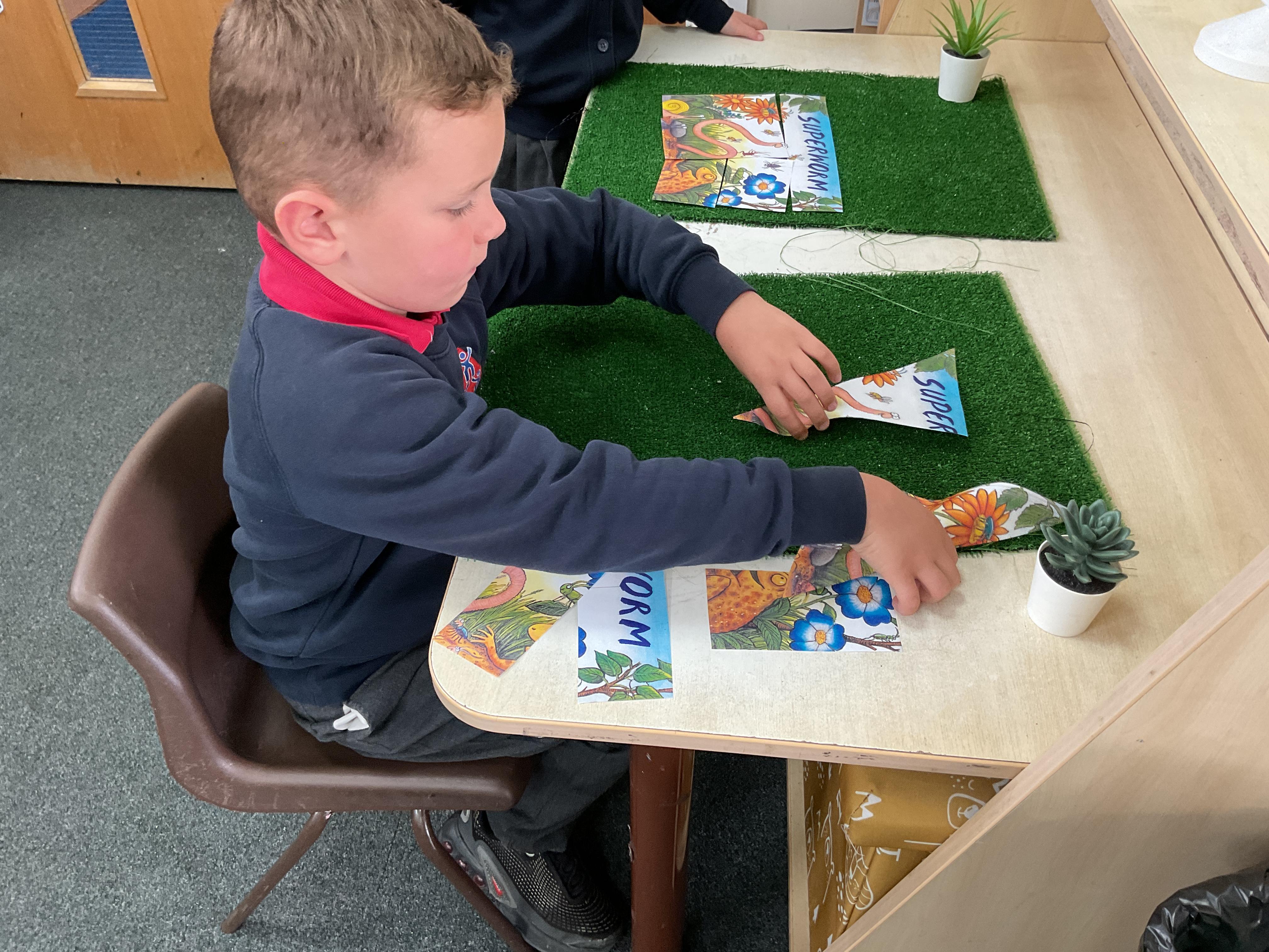 We started the week off in our Funky Finger area putting the pieces of the front cover to Superworm back together - a bit like a jigsaw! We had a great time problem solving ![]()