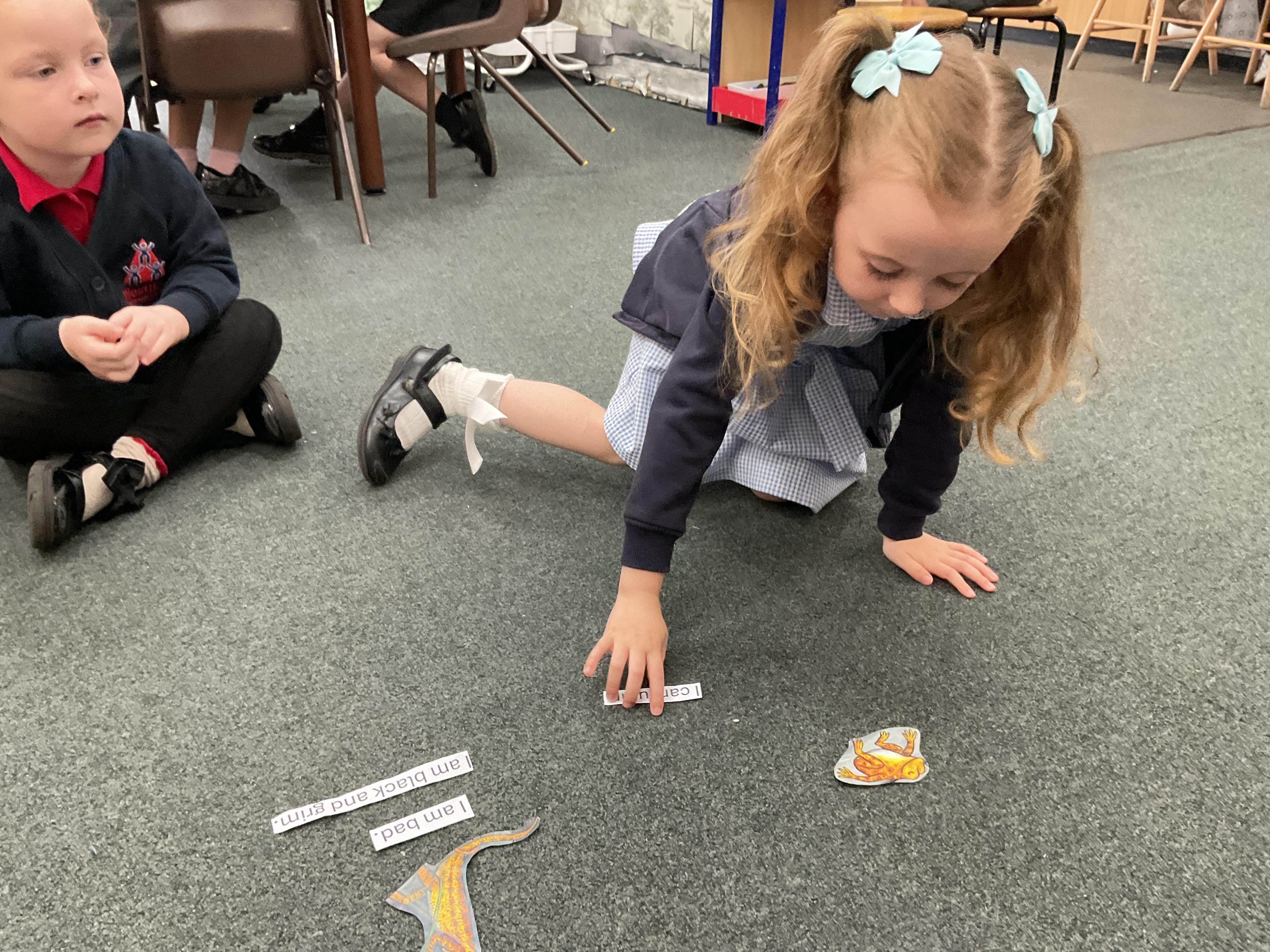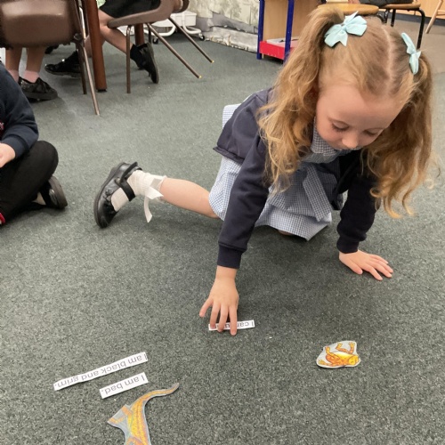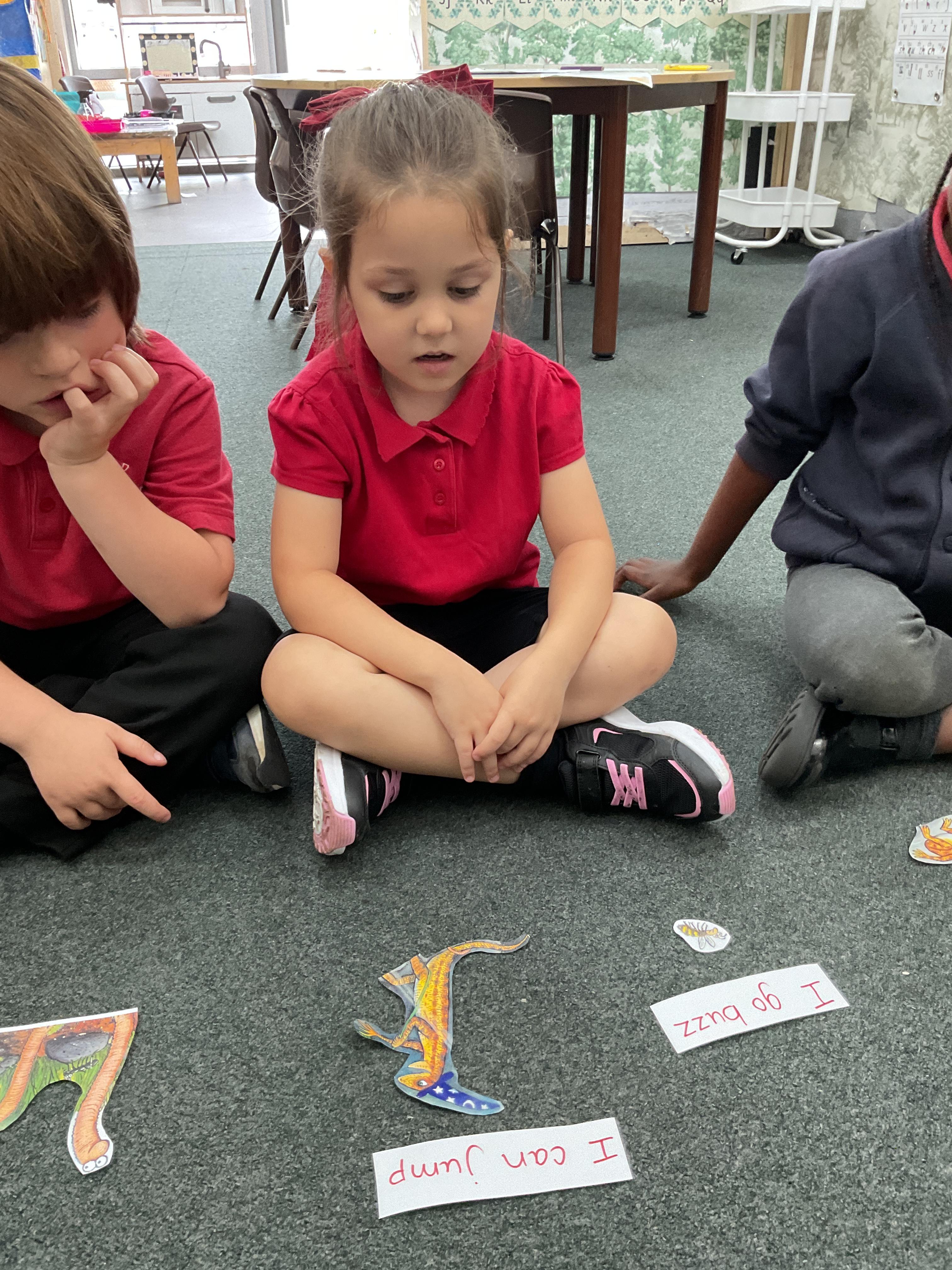 We also took some of the phrases from the text, read them and matched them up to the correct picture. This was a great activity and allowed us to practice our reading and our memory and recall about what happened in the story