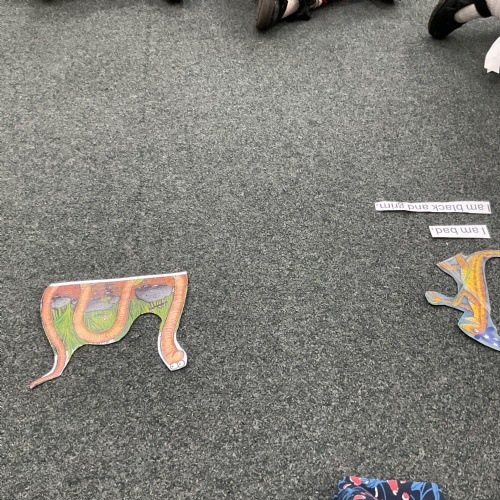 After listening to the story a number of times we then created our own story map. The children are really good at retelling the story, identifying key events and adding arrows that determine which way the text is read. Take a look at our wonderful work ![]()