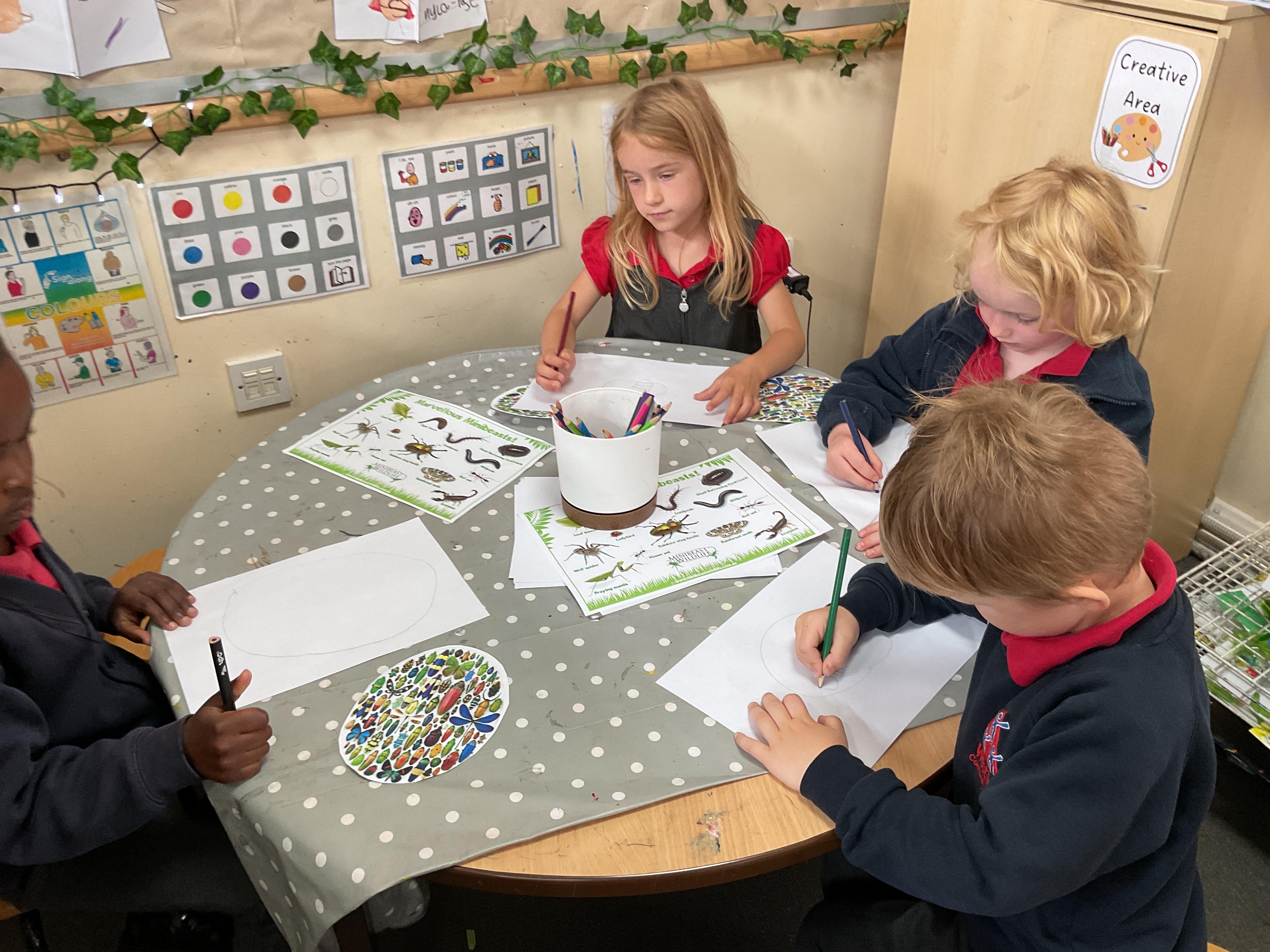 In keeping with our work on minibeasts we created images using an artists work as the stimulus. This activity taught us a lot about space, dimensions and perspective - we are truly great artists in Reception W ![]()