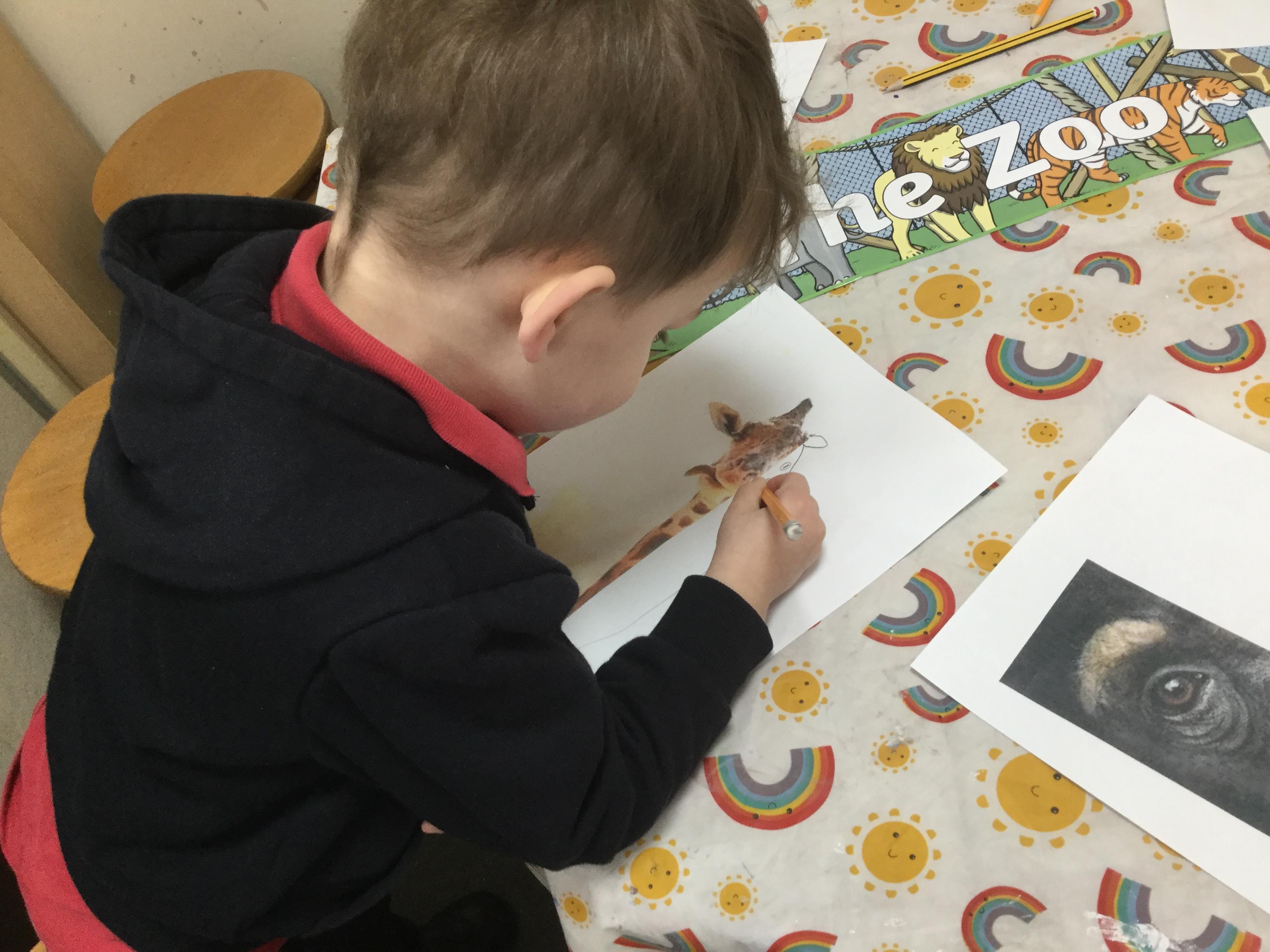 We also got creative in the creative area drawing our symmetrical animals. The children have really developed their observational drawing skills over this half term - they have explored using pencils in different ways to create different marks. Here we are applying our newly acquired skills ![]()