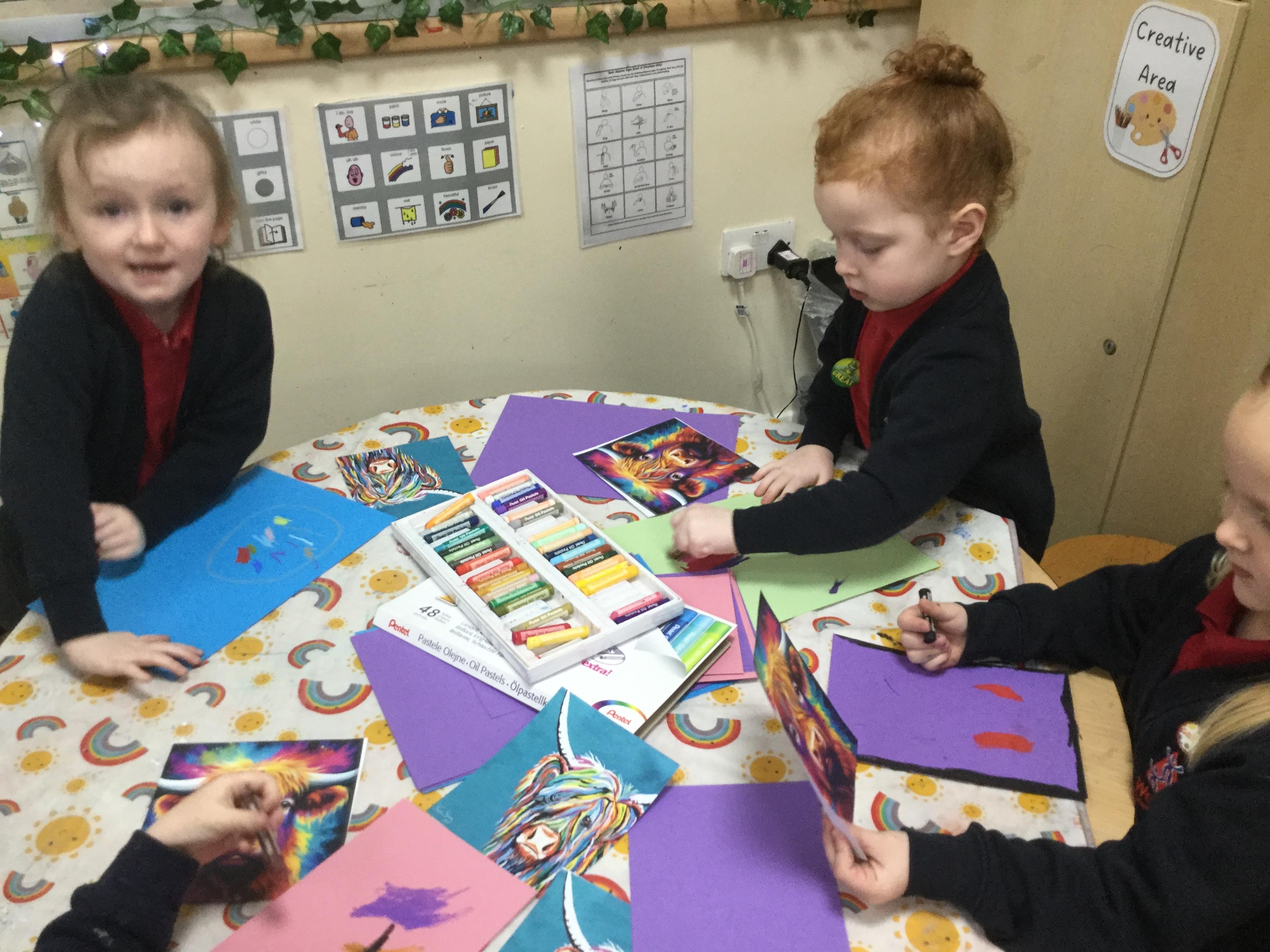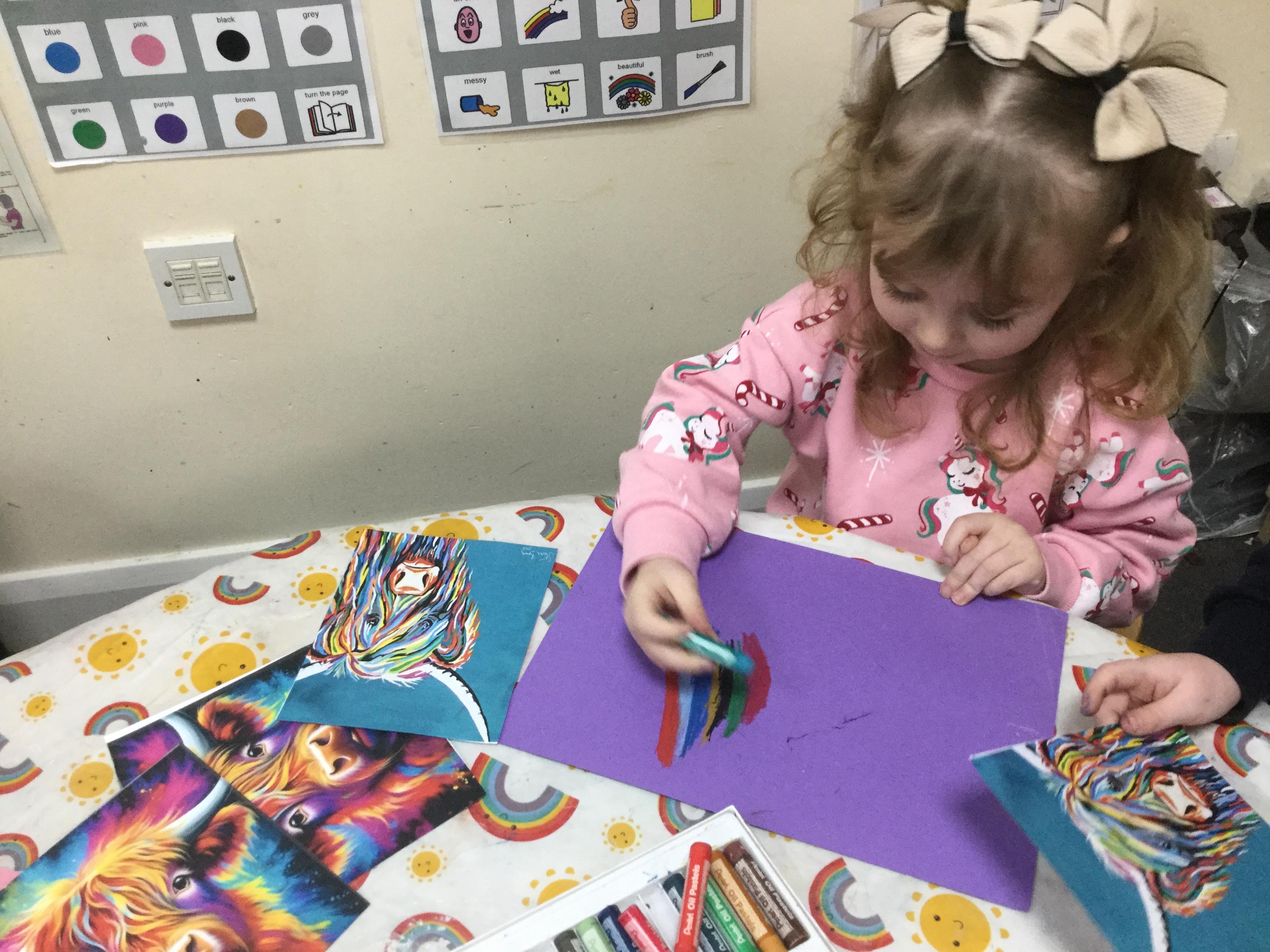 We also explored the work of different artists who use animals as the focus for their work. We discovered that so many artists use pastels and so we decided to recreate a rather famous image. Here we are using pastels to create our own interpretation of the famous Highland Cow. Amazing work everyone!