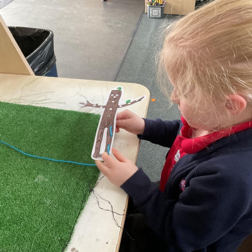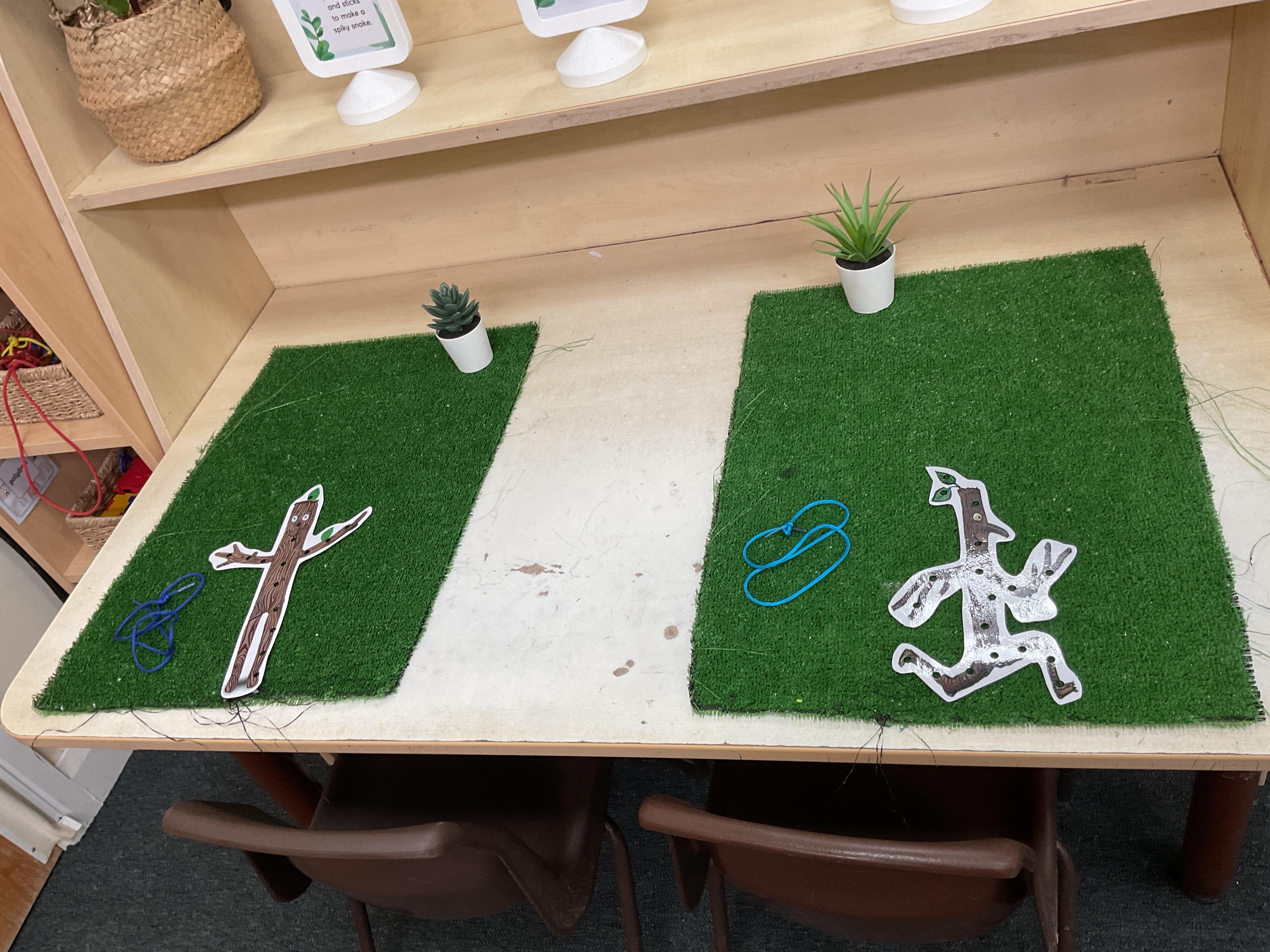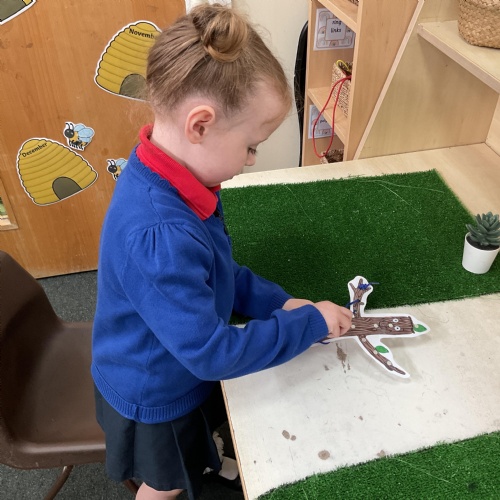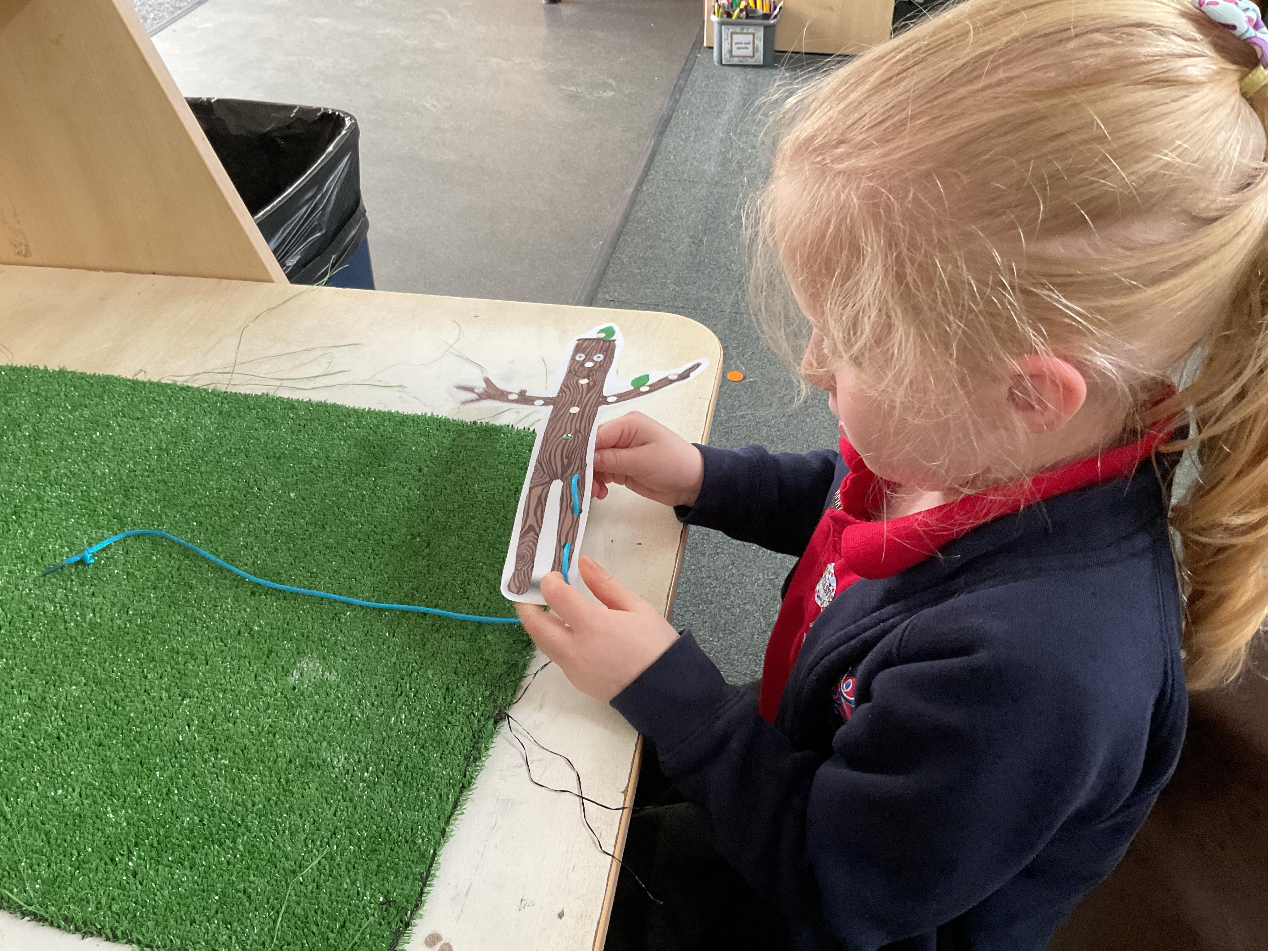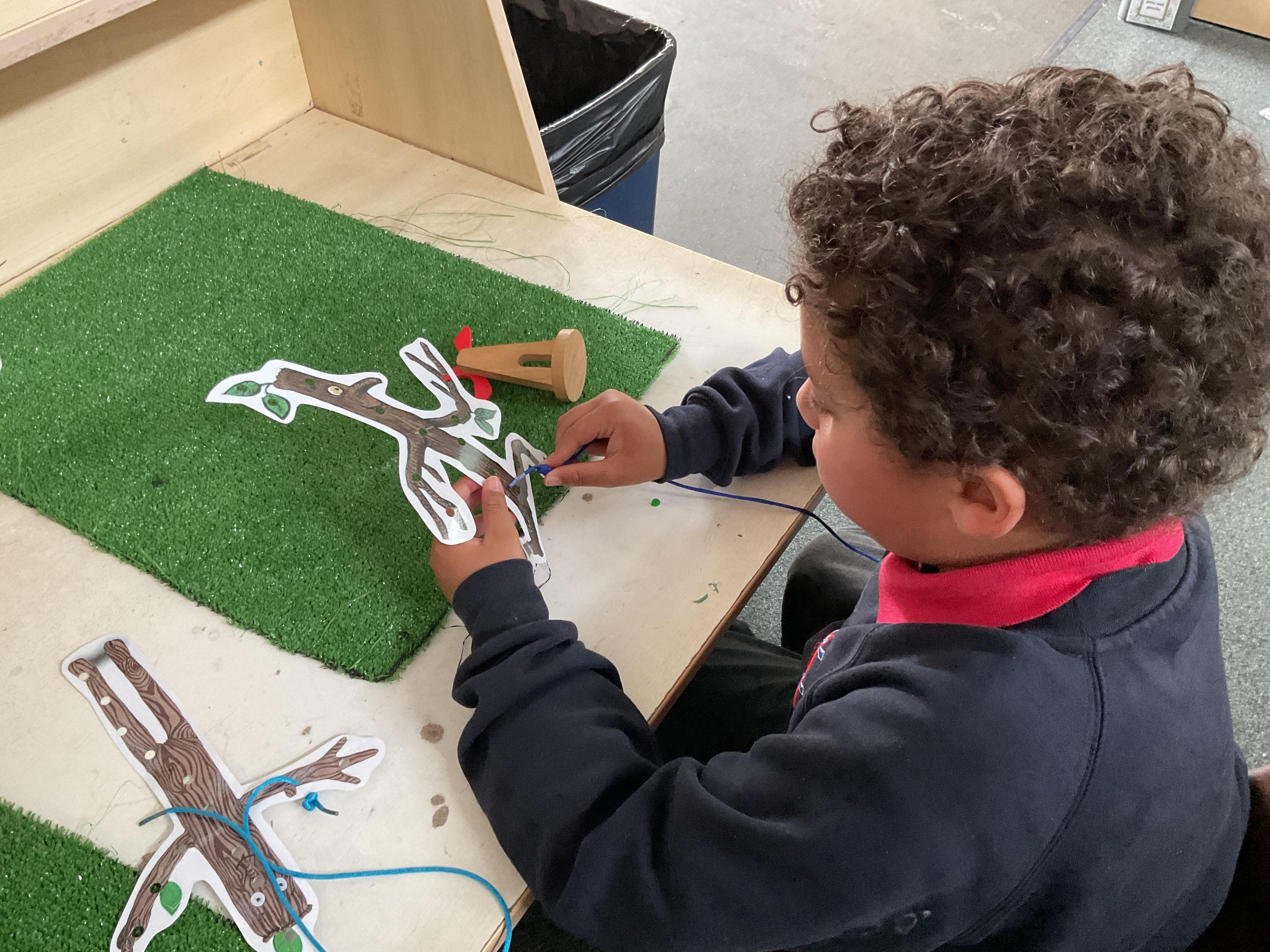 The Stickman story has given us lots of opportunities to develop our Funky Fingers this week. We have threaded stickmen and used pegs to create repeating pattern stickmen. Take a look at us learning ![]()
