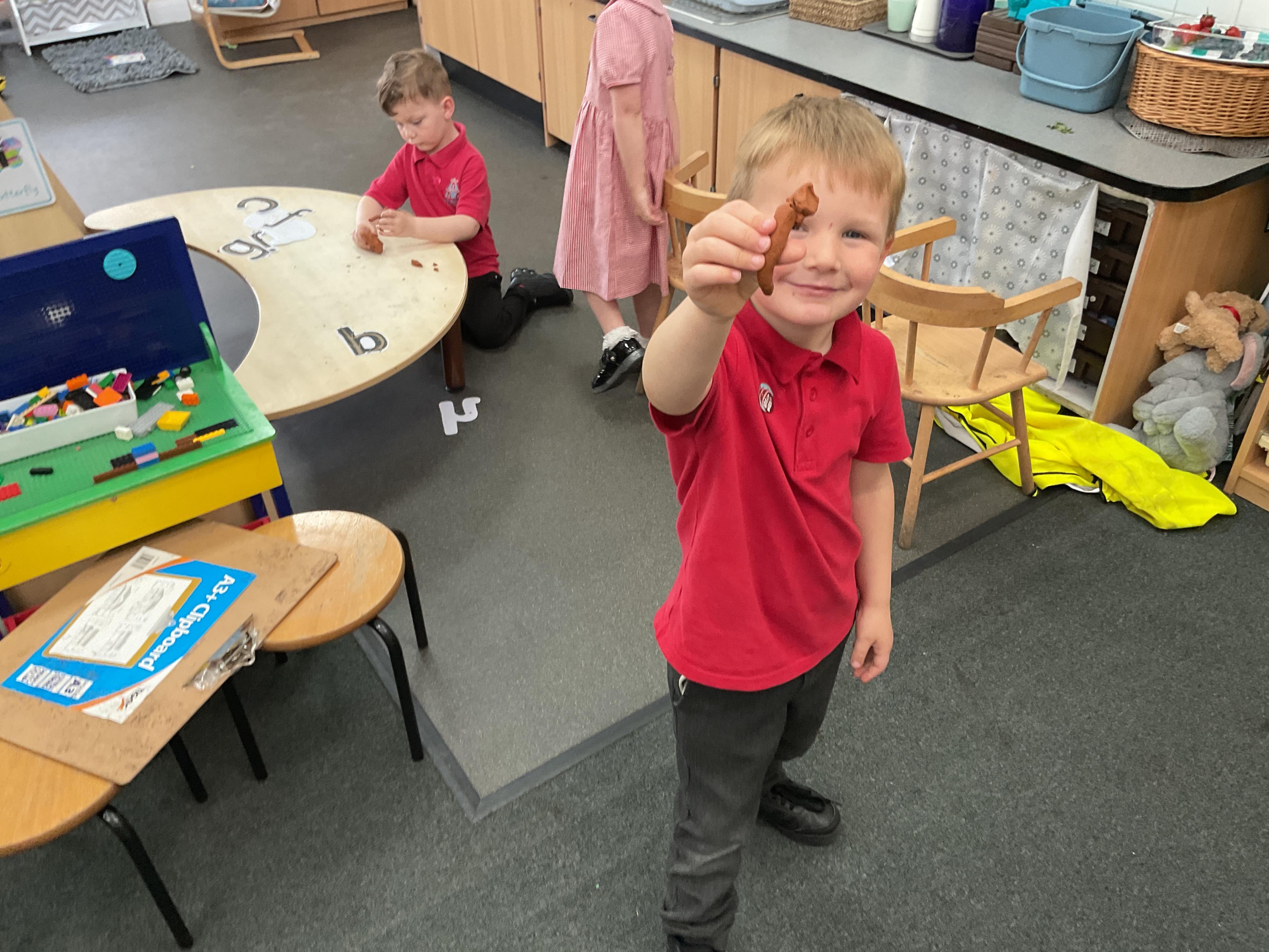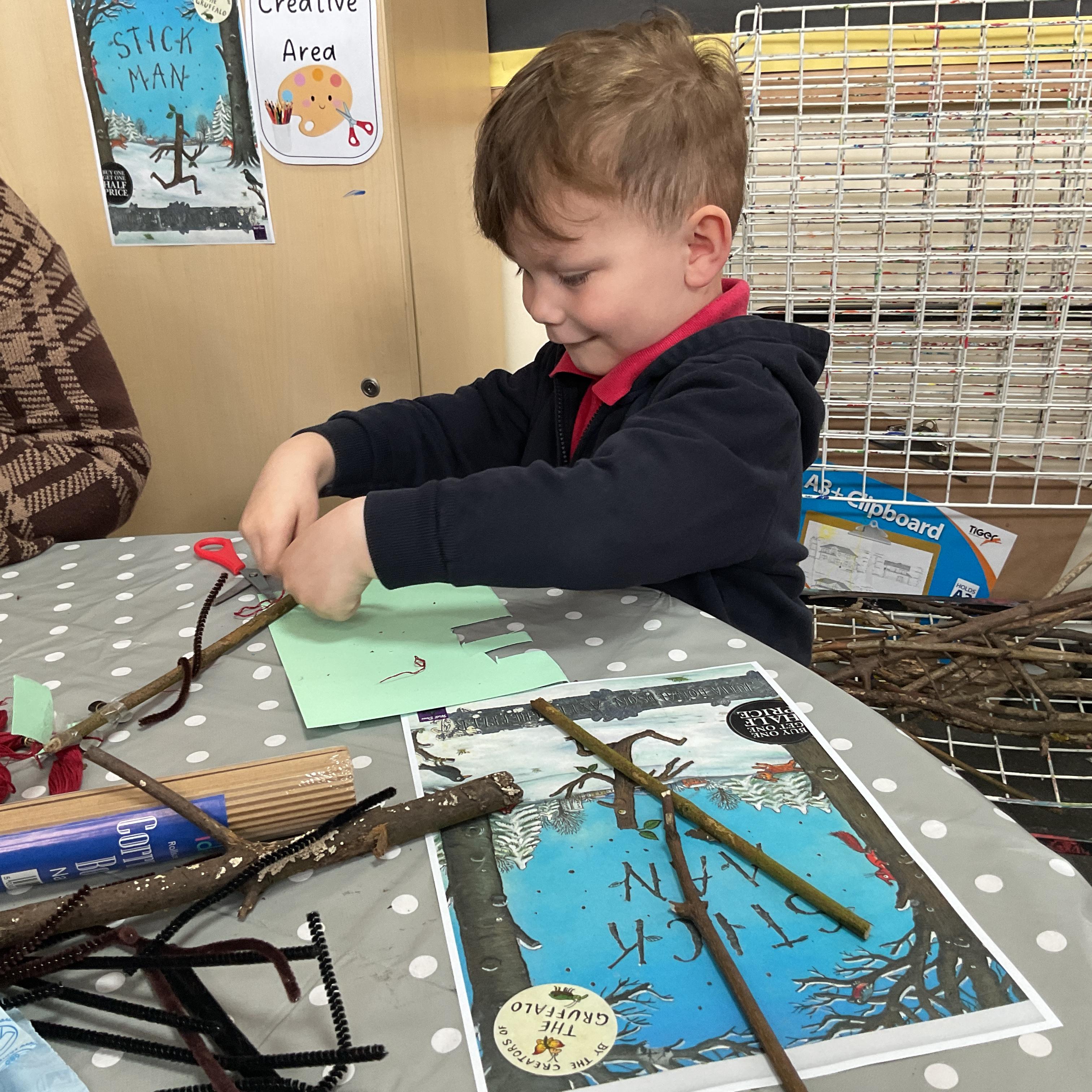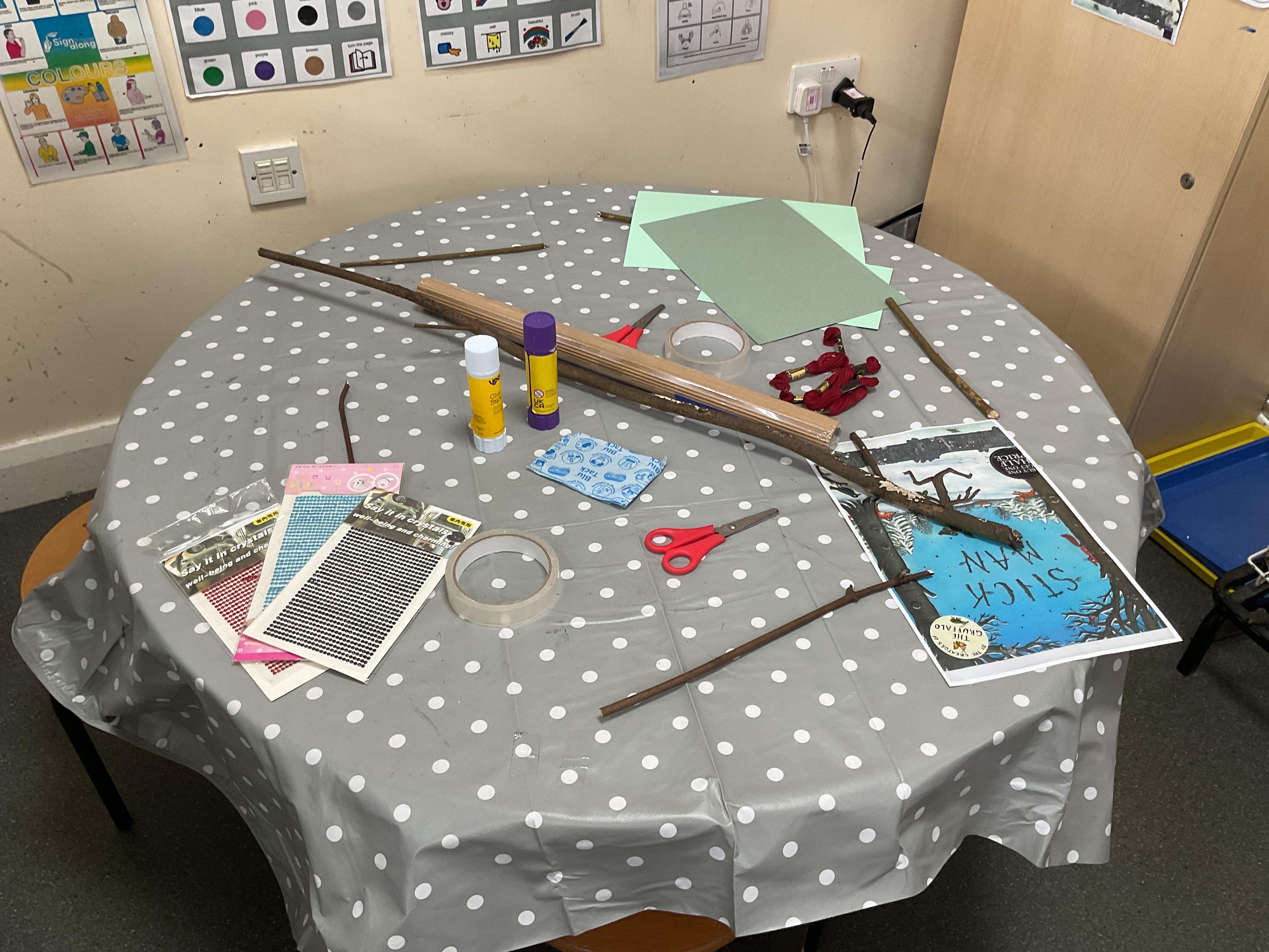 We used our Stickman theme to make letters using dough, we wrote about Stickman and even painted with stocks in the creative area. Take a look at our lovely creative learning ideas ![]()