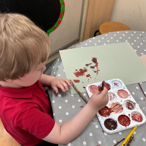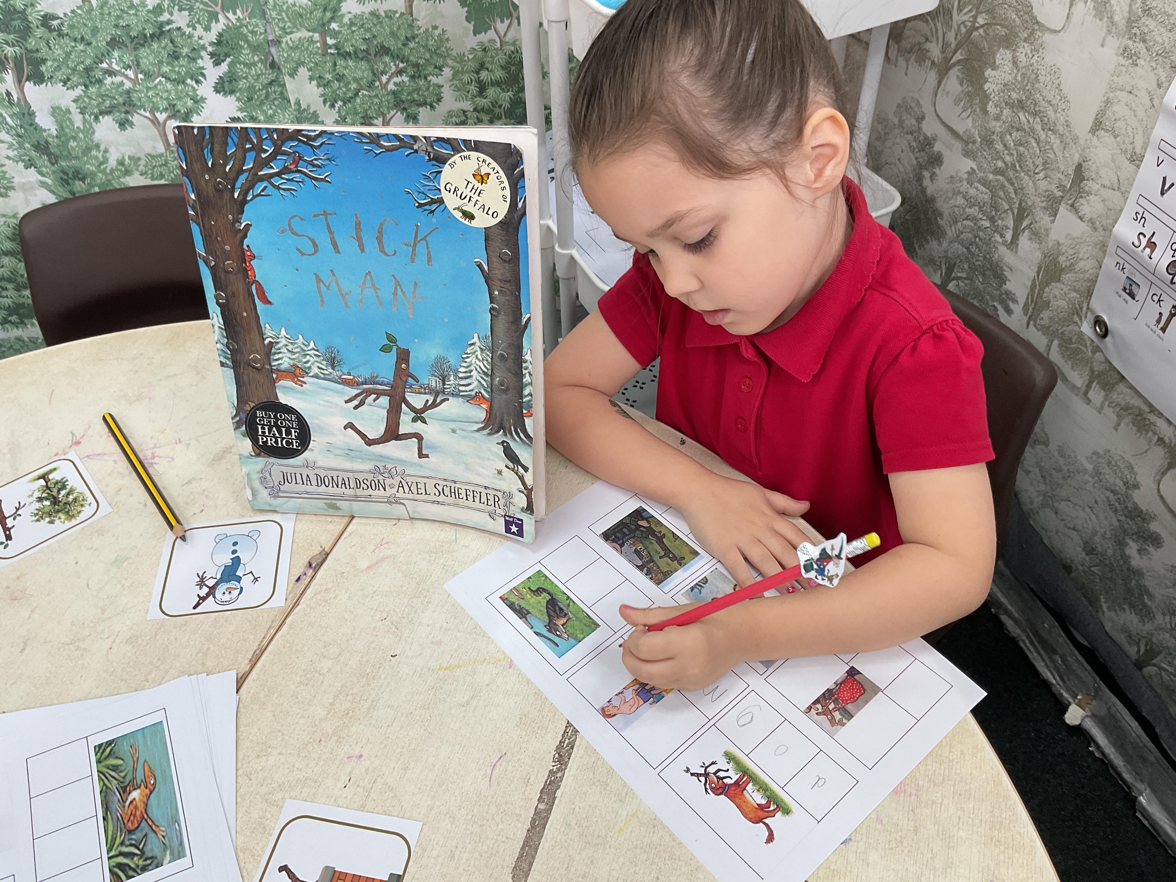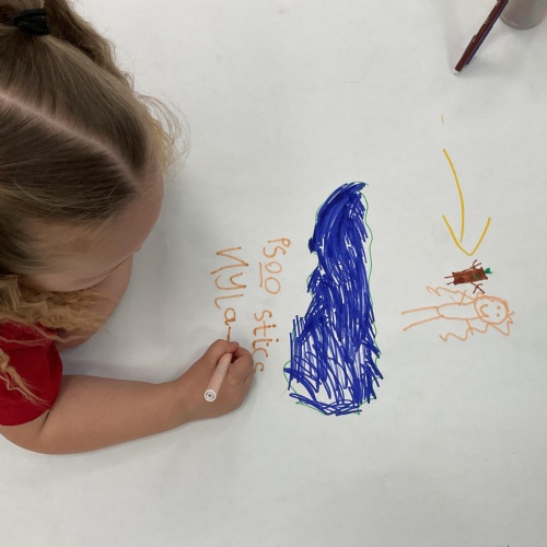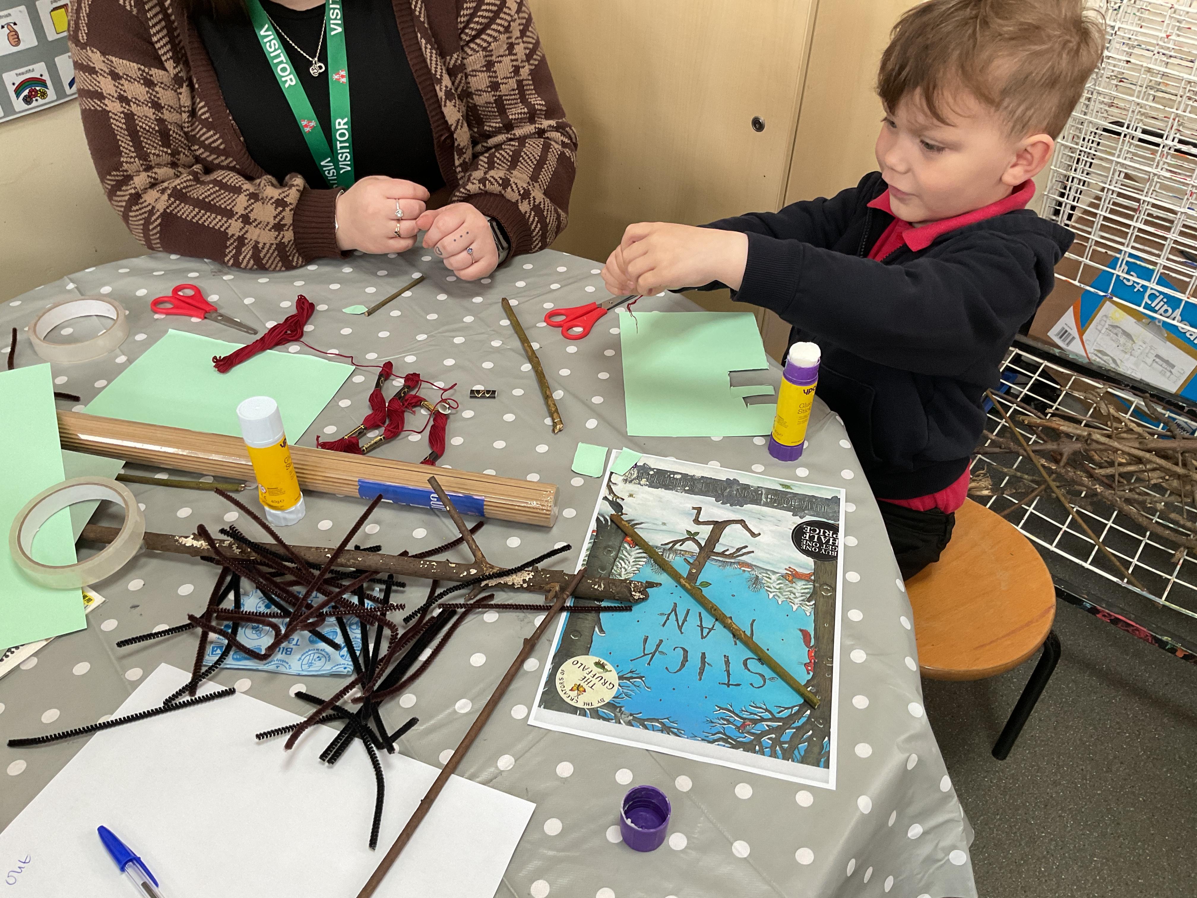 We used our Stickman theme to make letters using dough, we wrote about Stickman and even painted with stocks in the creative area. Take a look at our lovely creative learning ideas ![]()