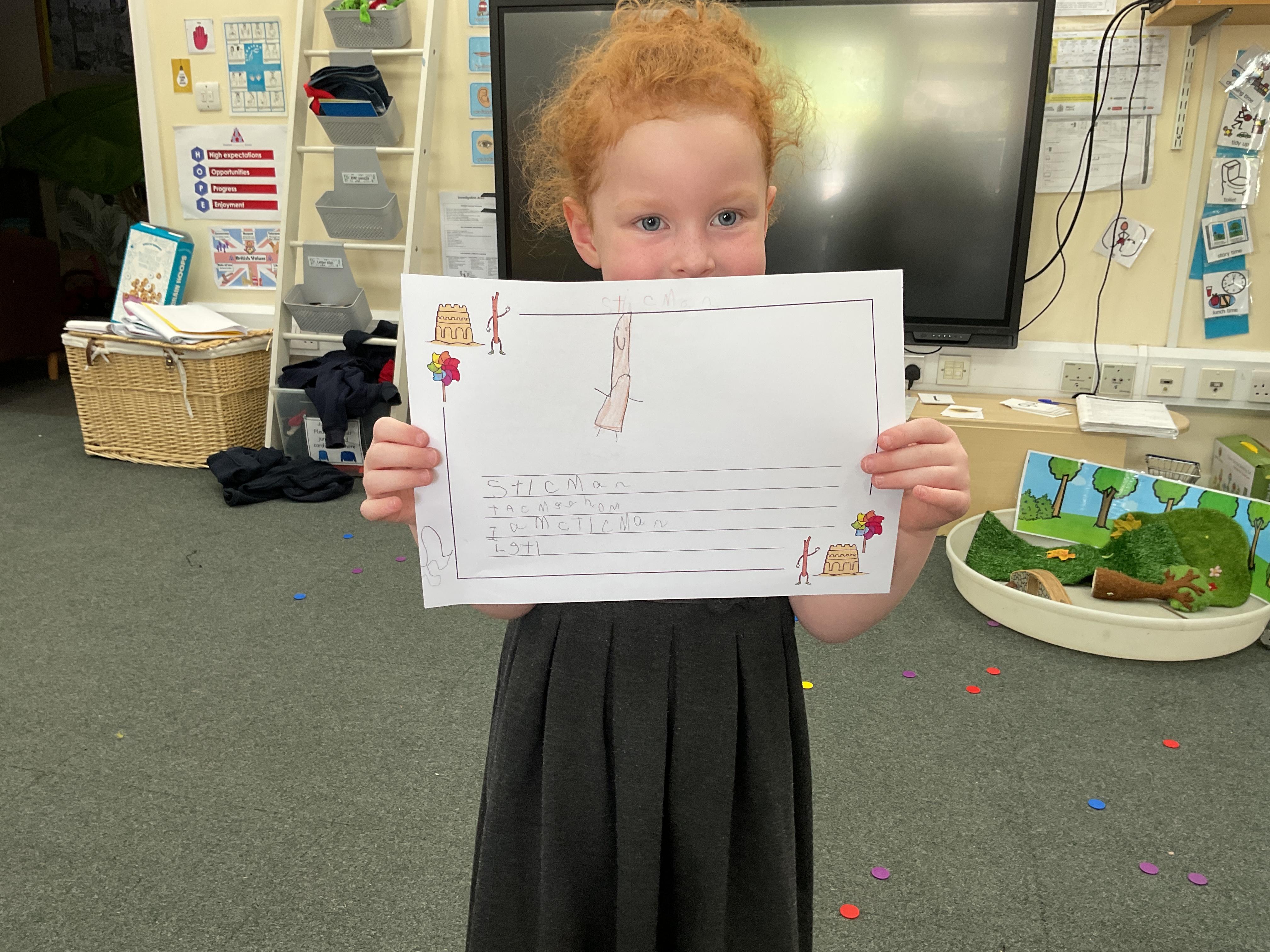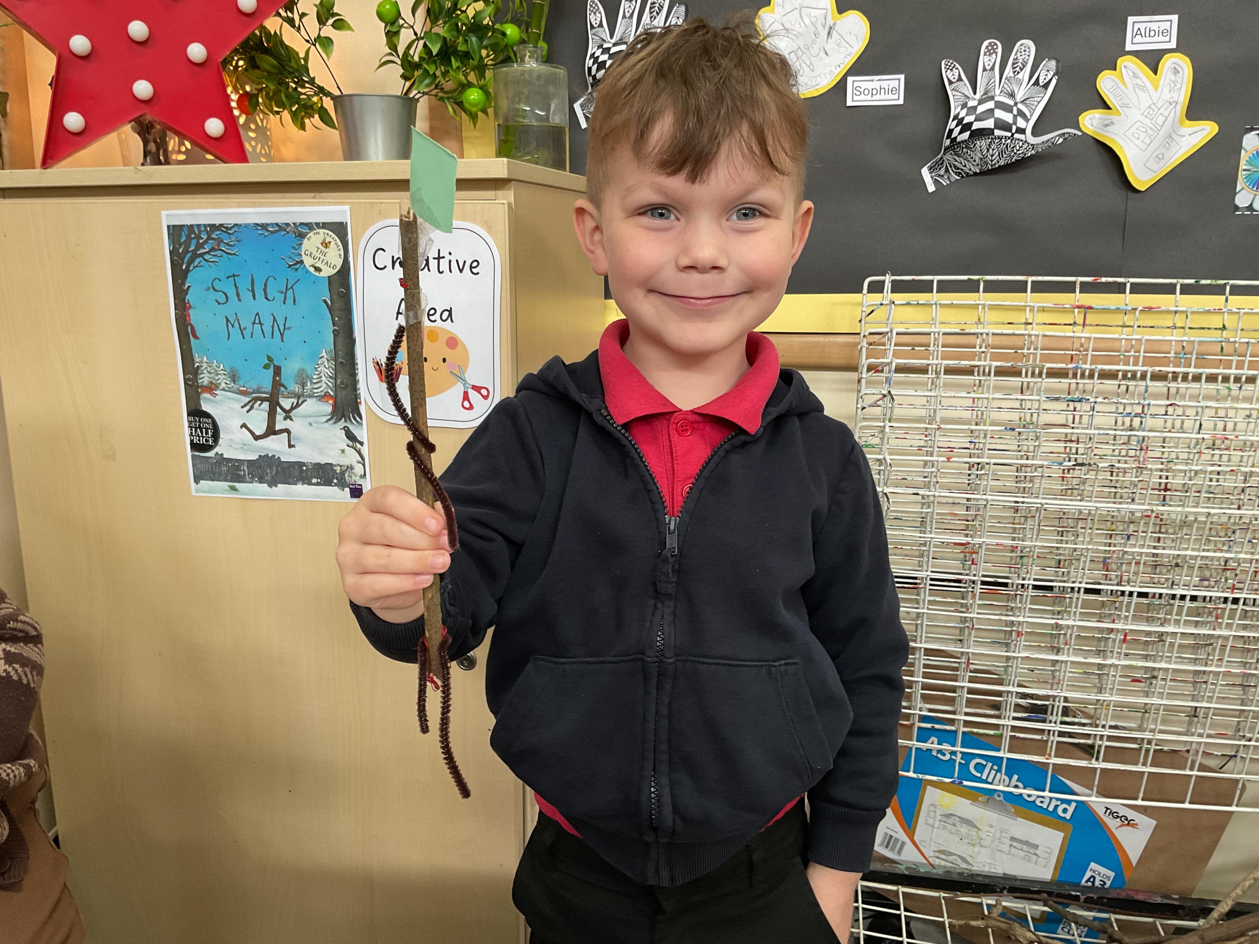 We started off the week by listening to the story of Stickman. We talked it through and thought we might like to make our very own stickman. We used lots of different materials, tested, predicted and worked through any problems to create a stickman. We then tested him out just like in the story were the children used him as apohh stick. Take a look at us we had a great time ![]()