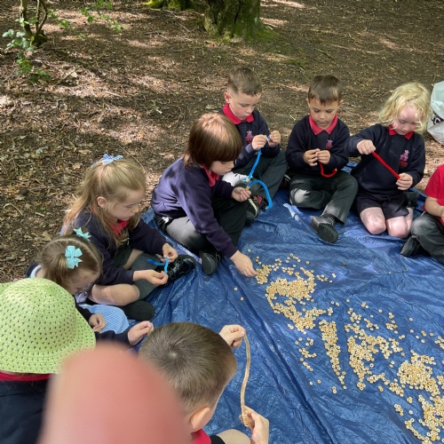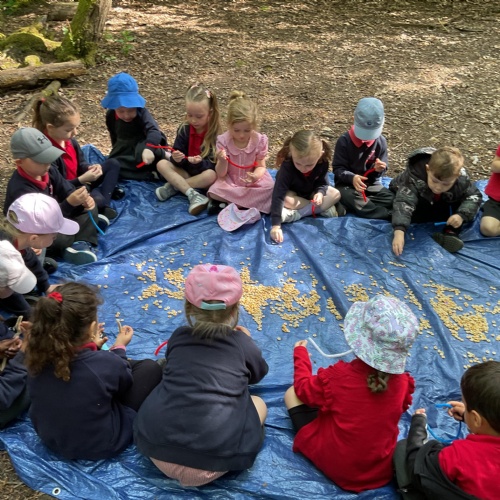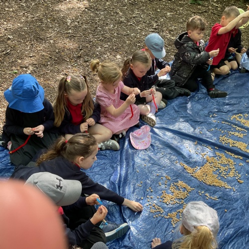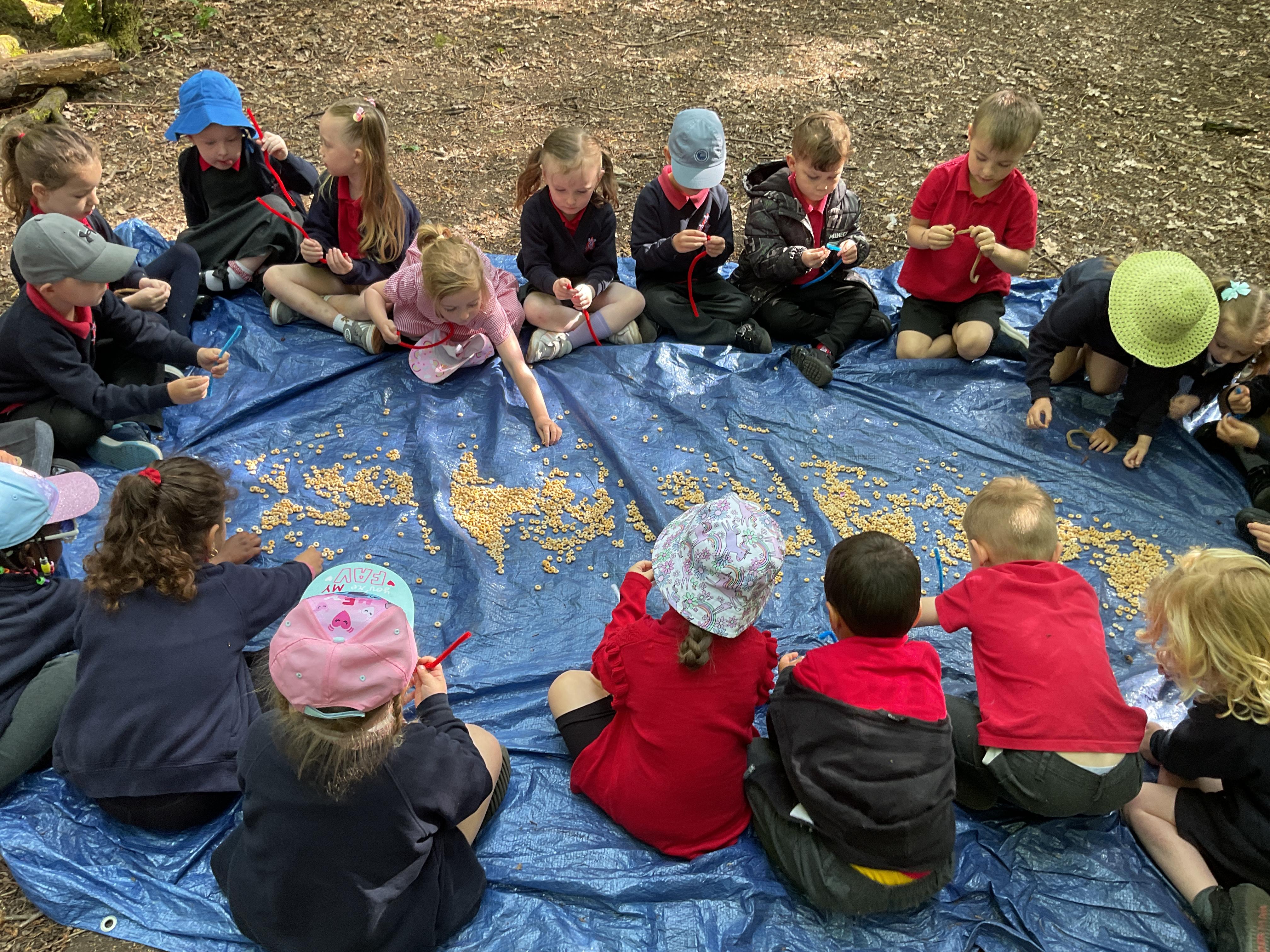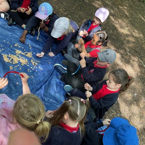 We even took our Funky Finger learning out onto the ALPS. We listened to a story underneath the bird song and created bird feeders. We threaded cheerios onto pie cleaners and twisted them to make circles to hand from the tree. What a glorious day we had ![]()