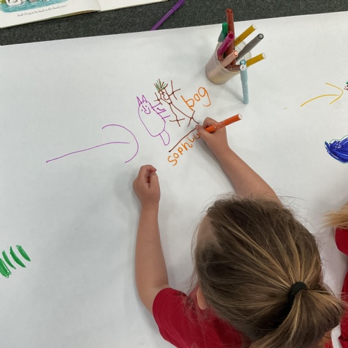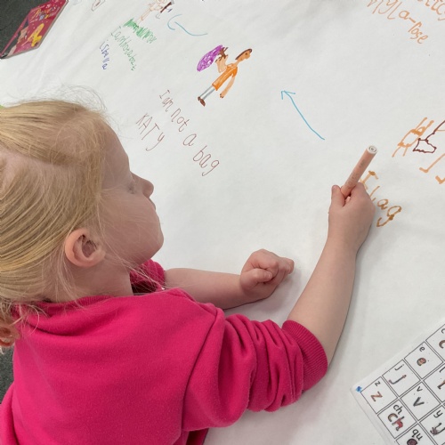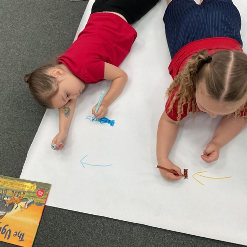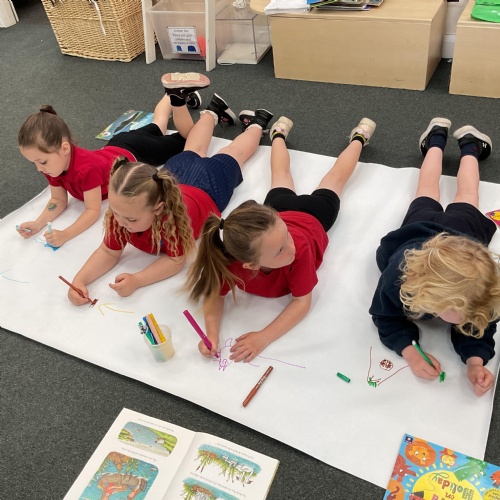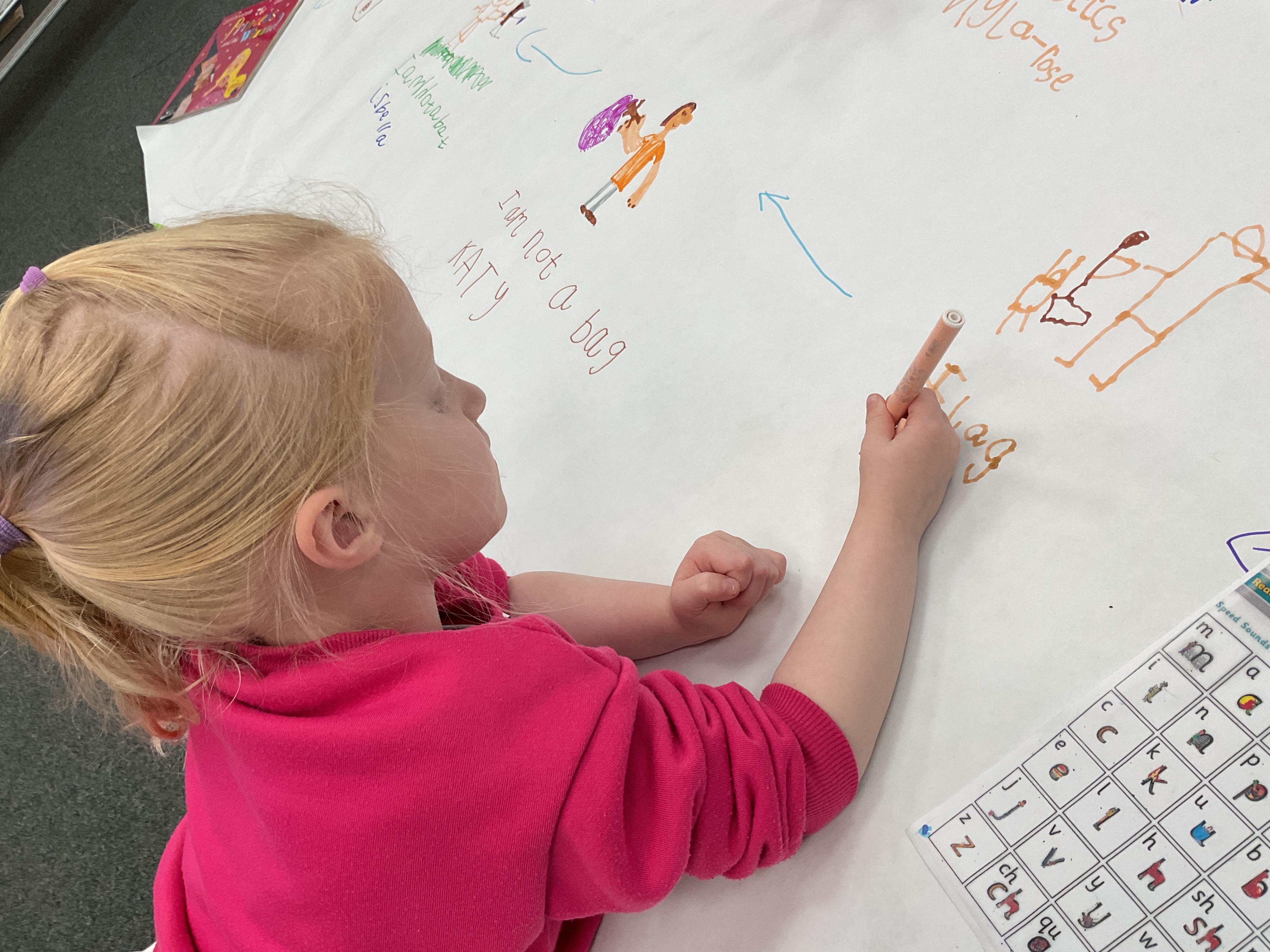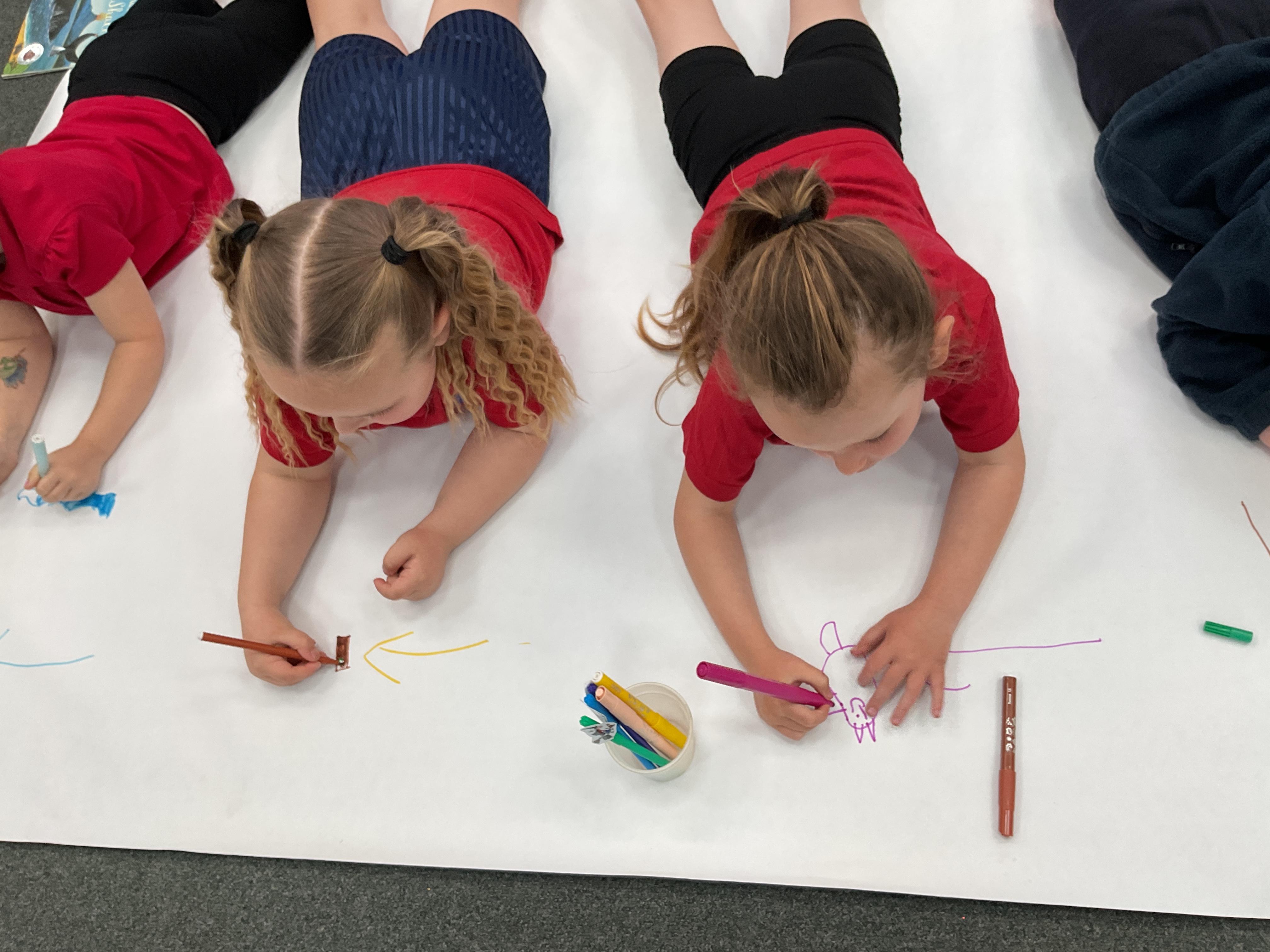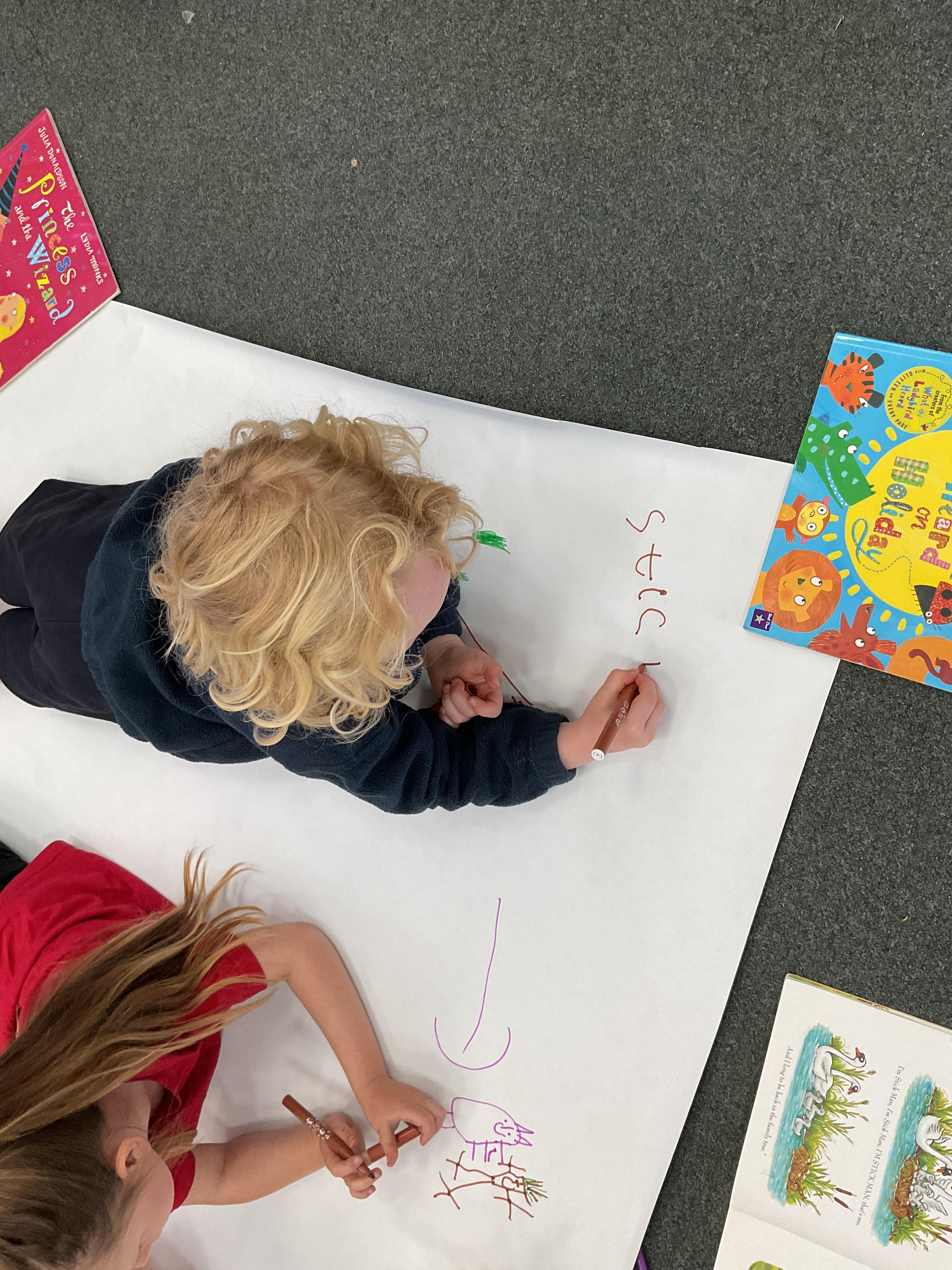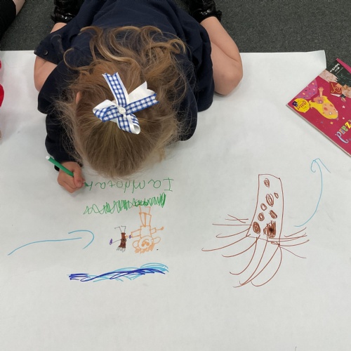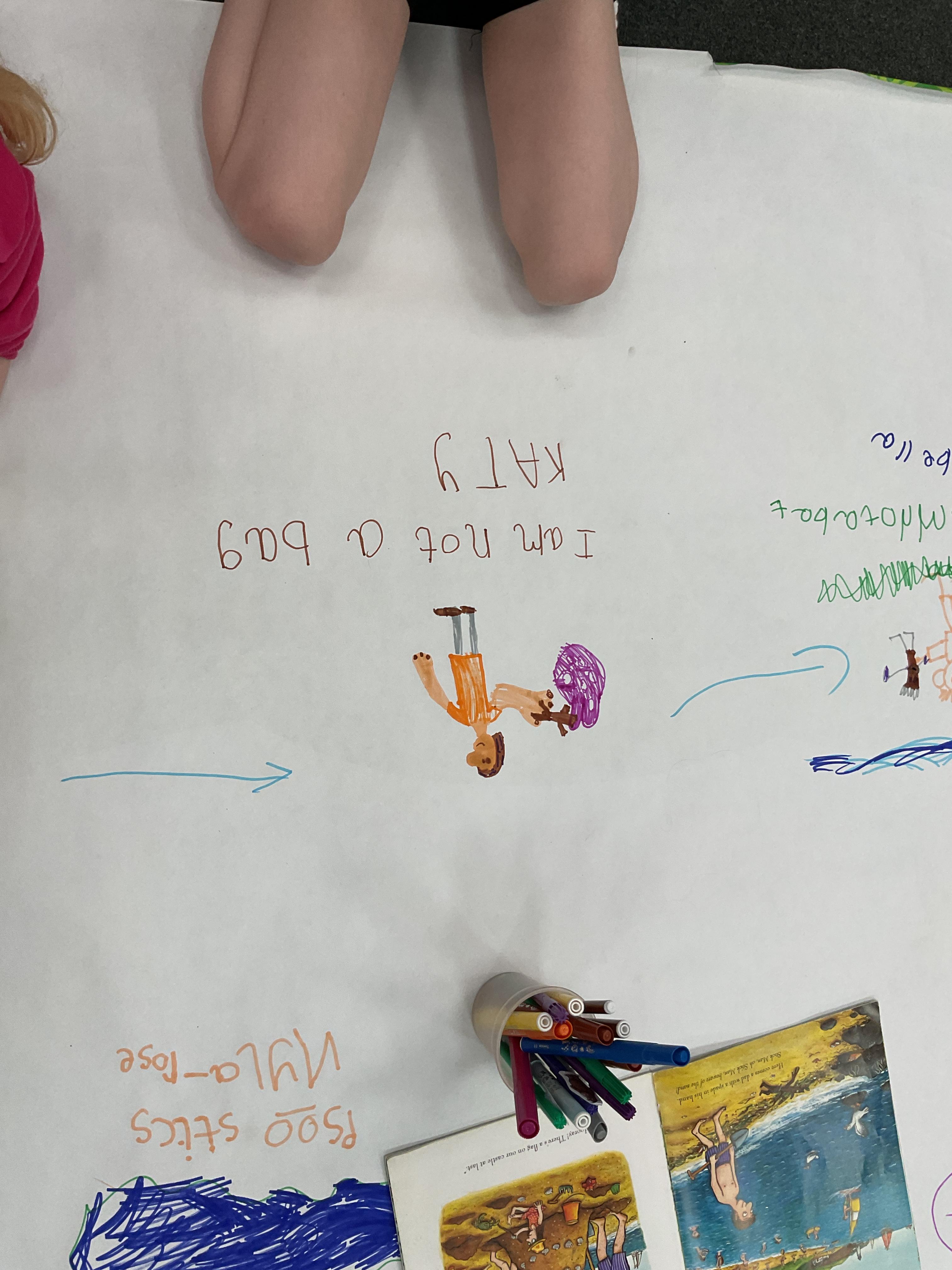 We created a giant story map all about the journey of Stickman. We told the story orally and then annotated it with our own illustrations. Take a look at our amazing work and our writing. Brilliant.