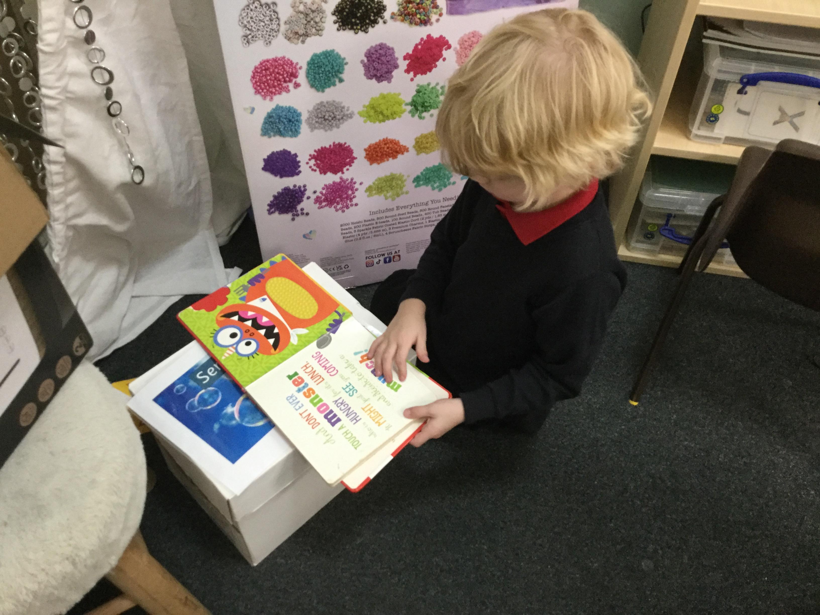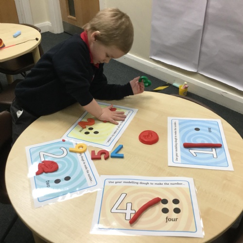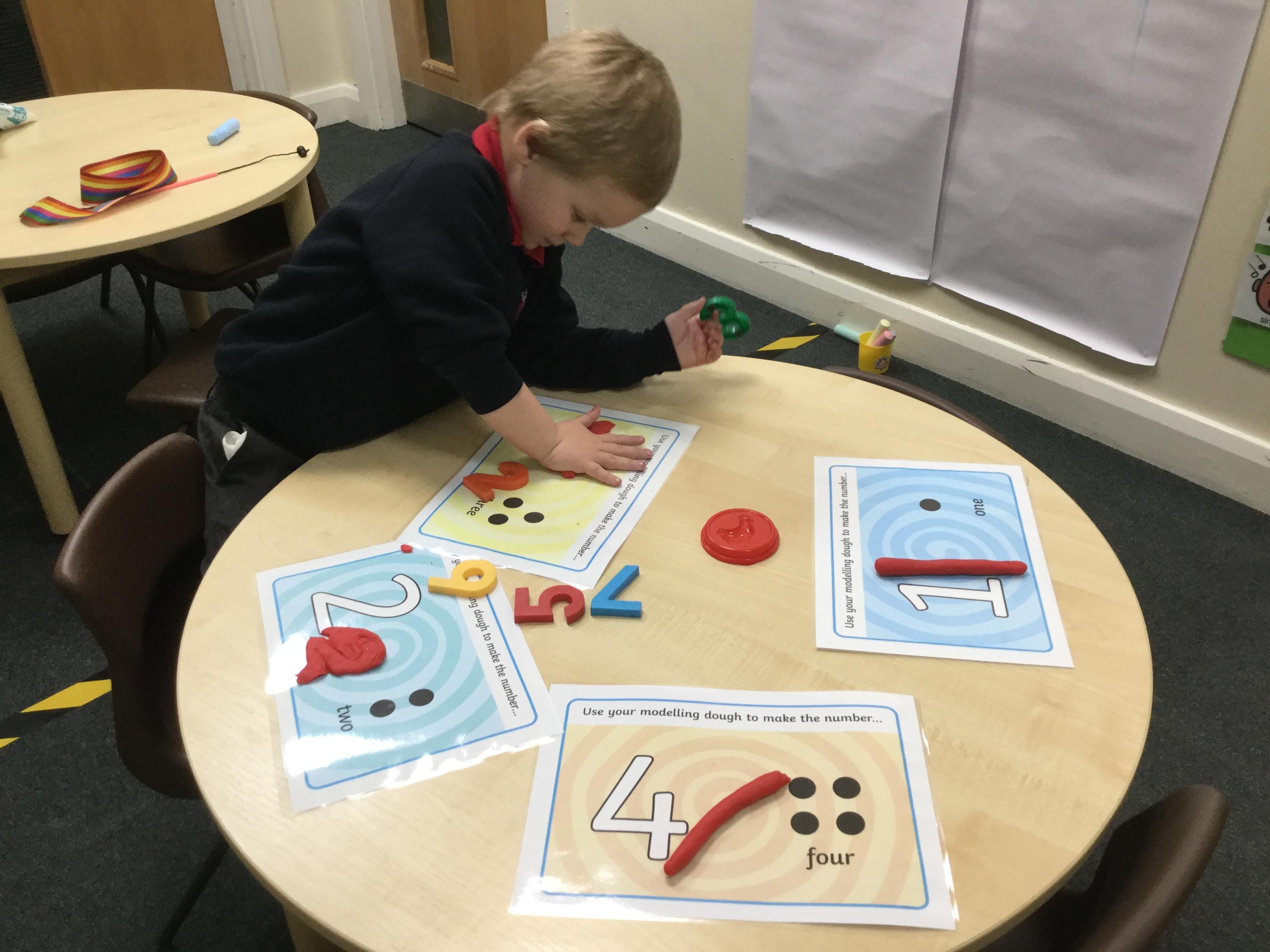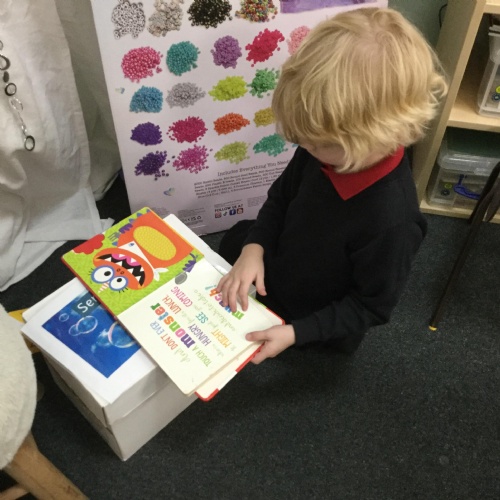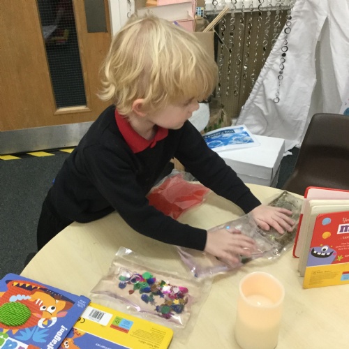 We have also been using different materials to practise our letters. Here we are using coloured sand and our finger! ![]()