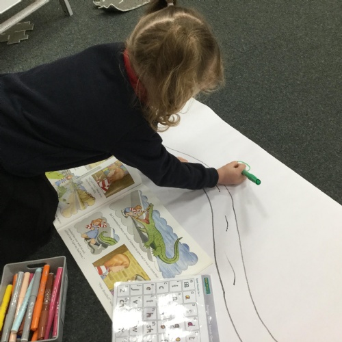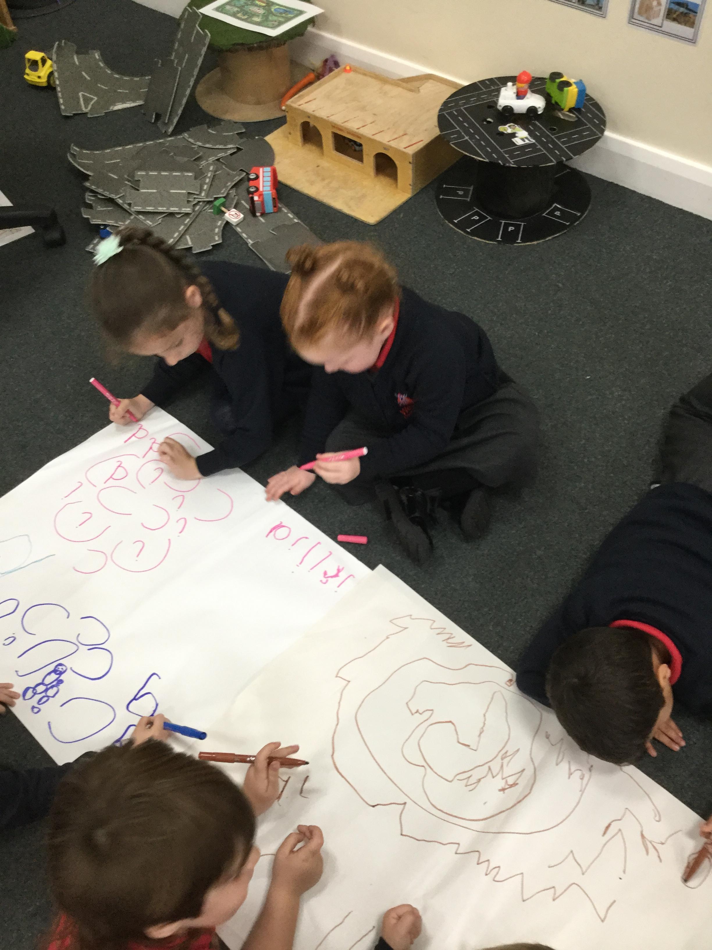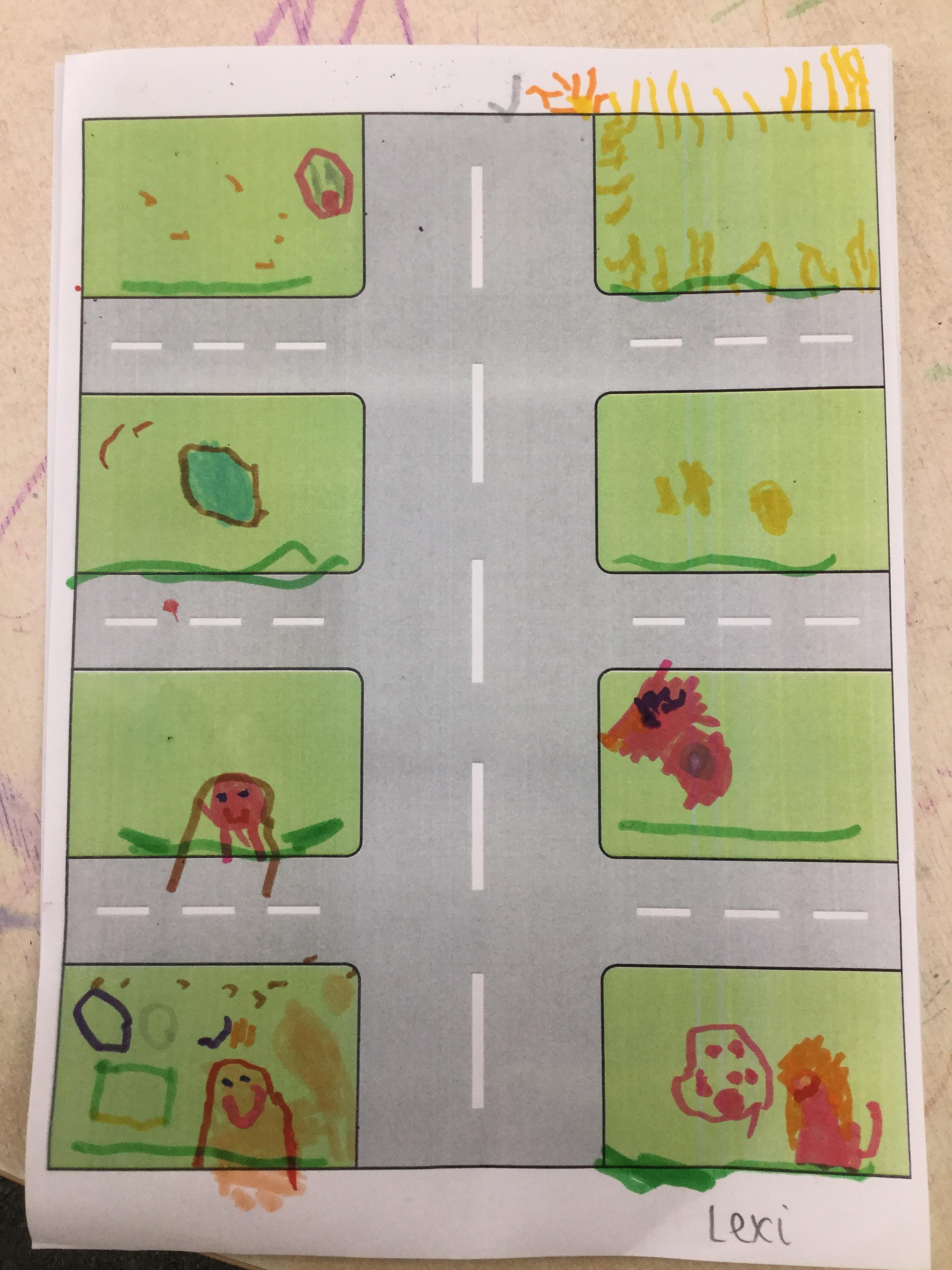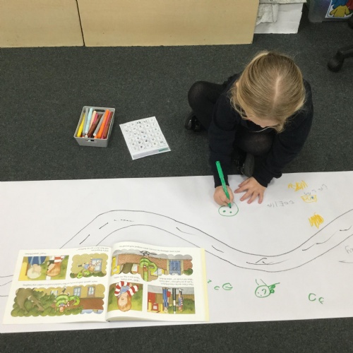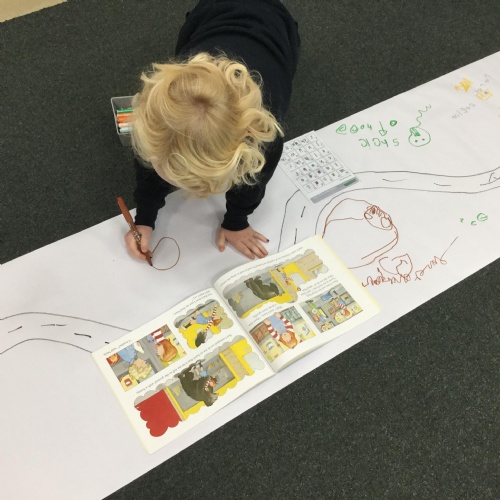 In the story Claire walks home and passes lots of different people. We have been thinking about and talking about our journey to school and what we see and who we might see. We have created our own maps detailing our own journey to school ![]()
