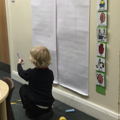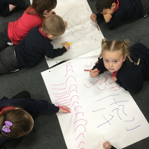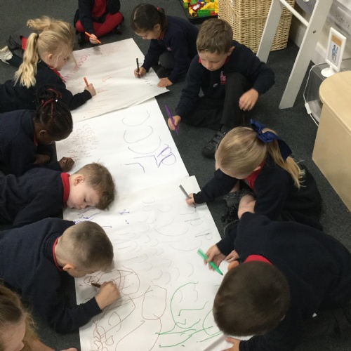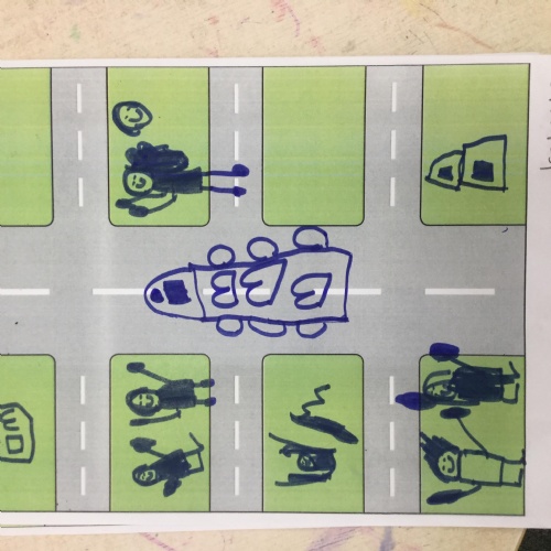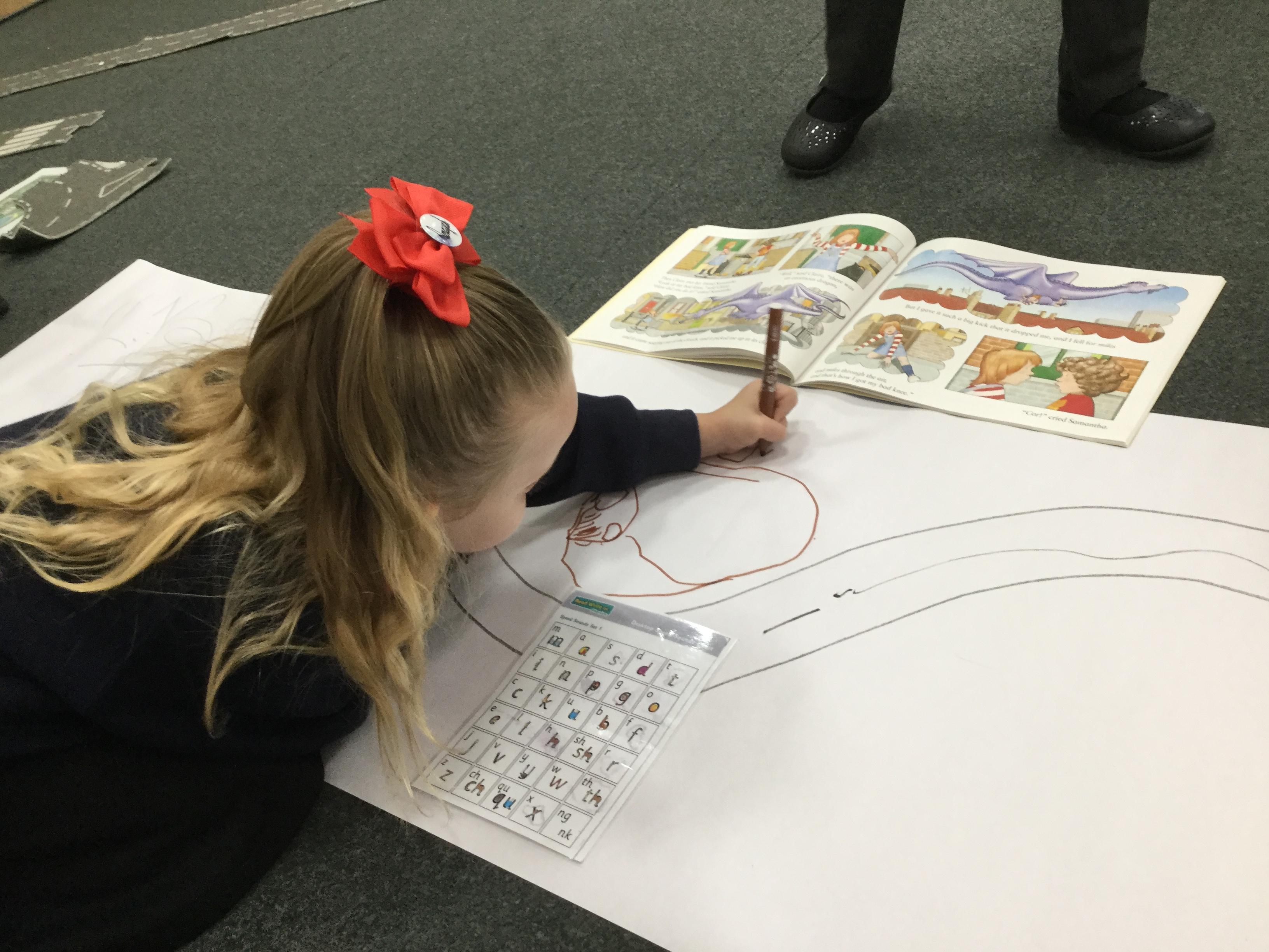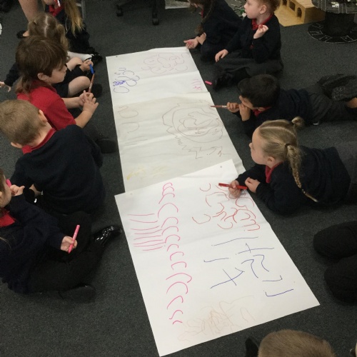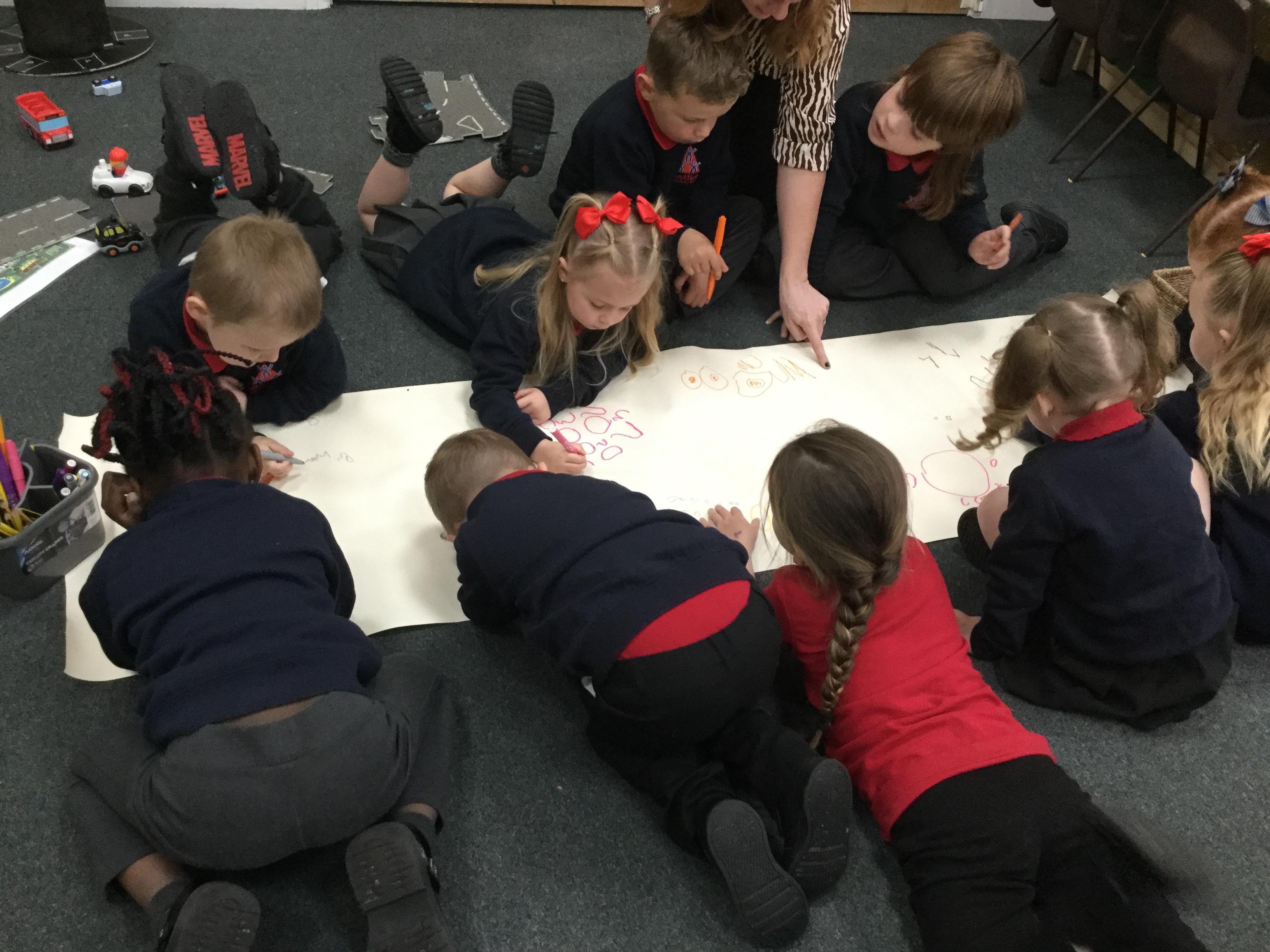 In the story Claire walks home and passes lots of different people. We have been thinking about and talking about our journey to school and what we see and who we might see. We have created our own maps detailing our own journey to school ![]()