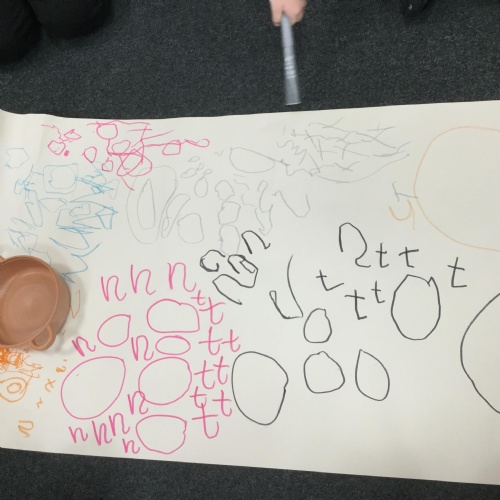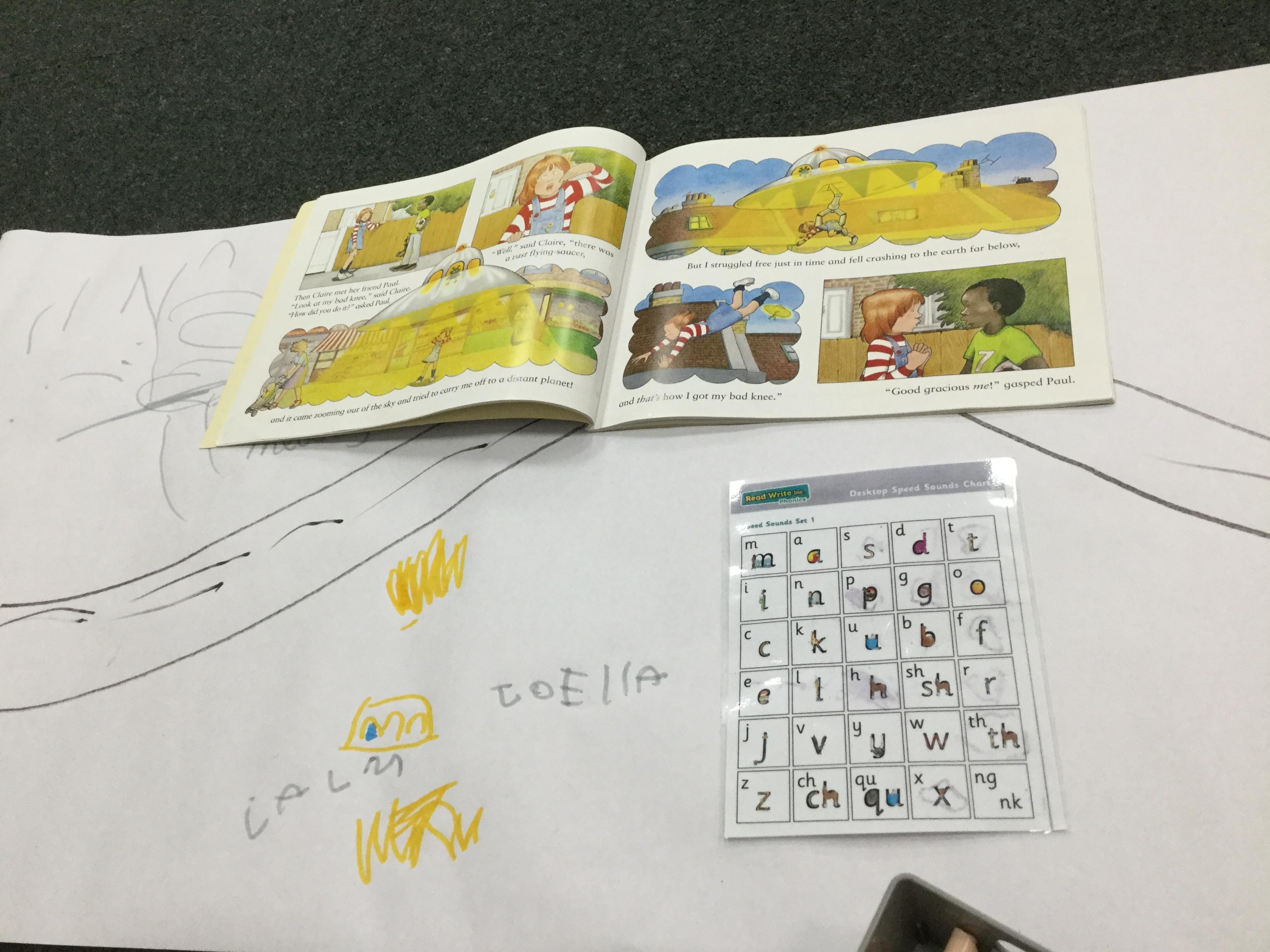 We have also been thinking about the characters from the story. We thought about what they might say and then had a go at writing some of the sounds in a speech bubble ![]()