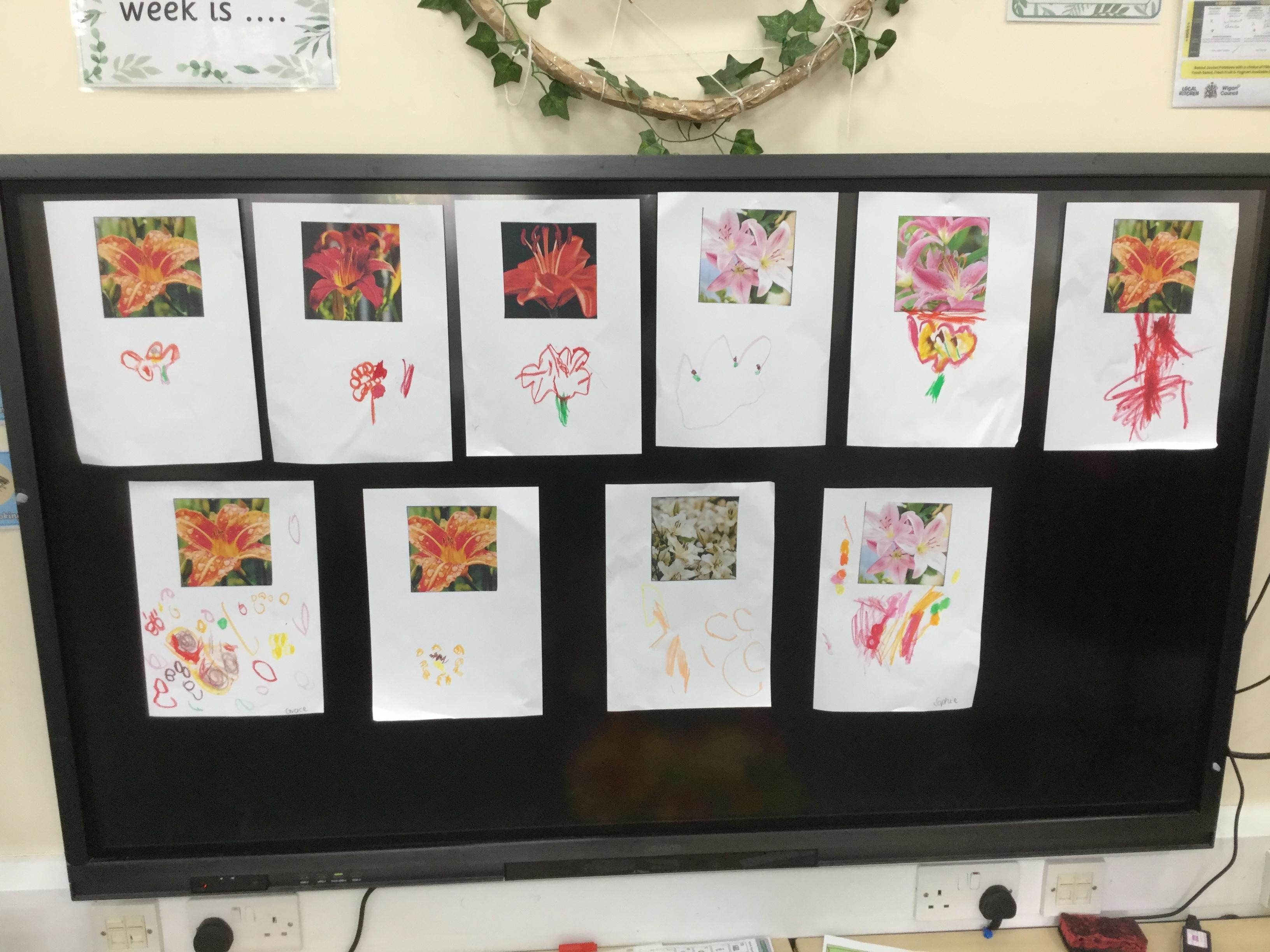 We have also been super creative this week. We have explored observational drawings of flowers and created self portraits. Take a look at our super skills we are very proud of the children's efforts ![]()