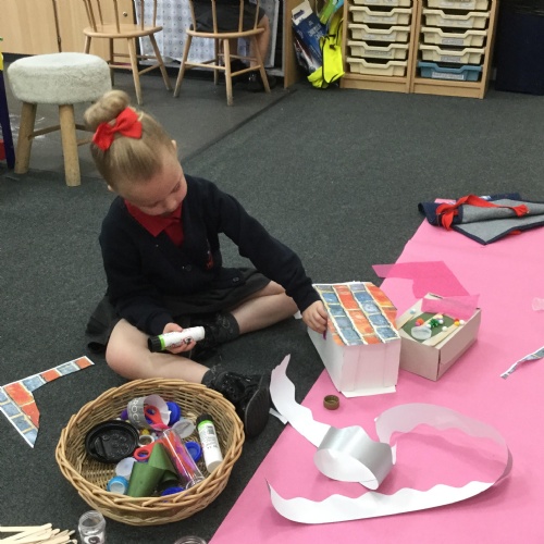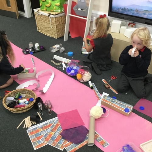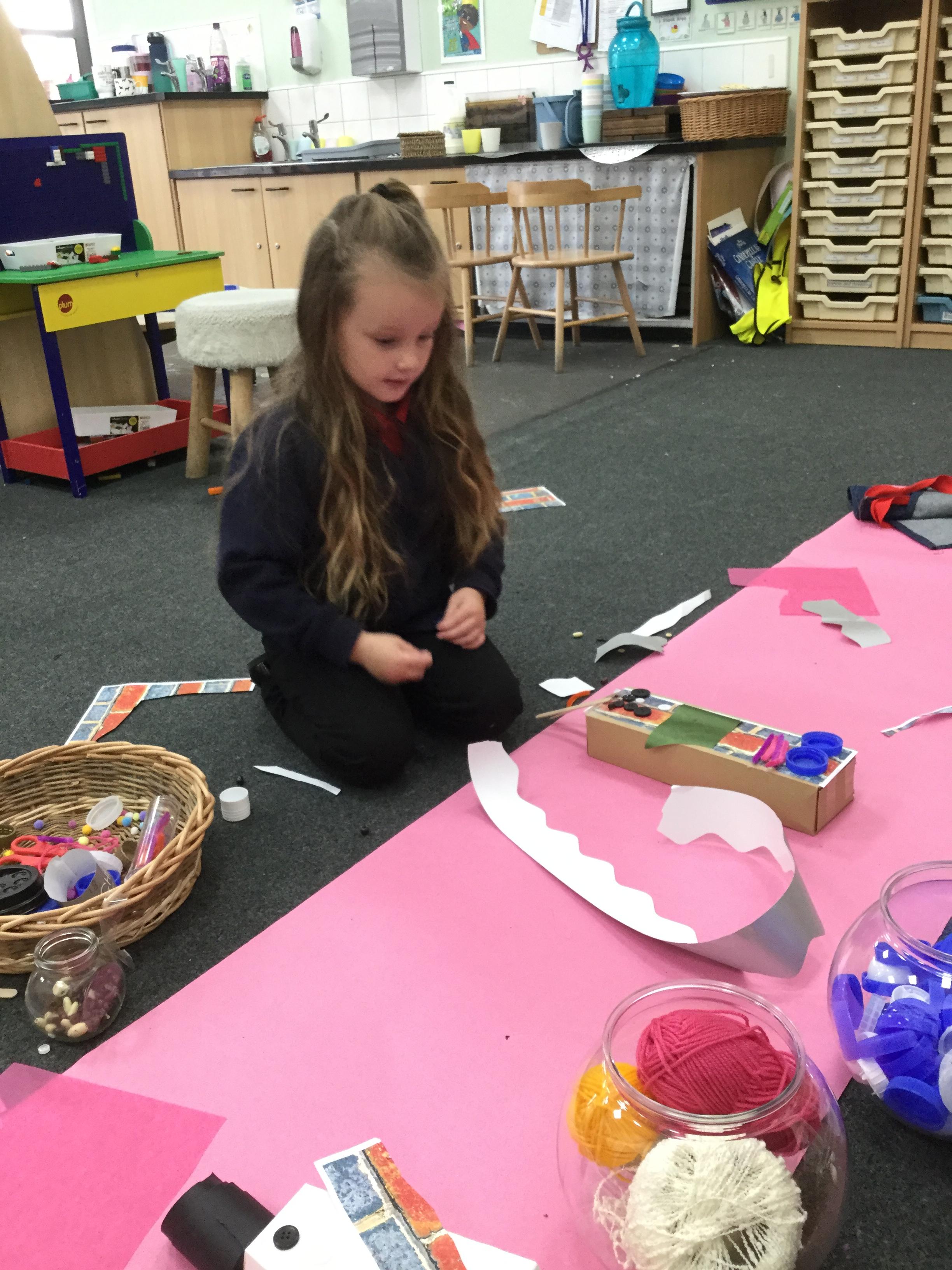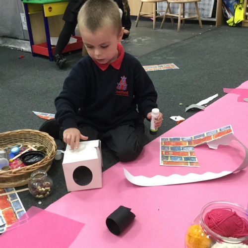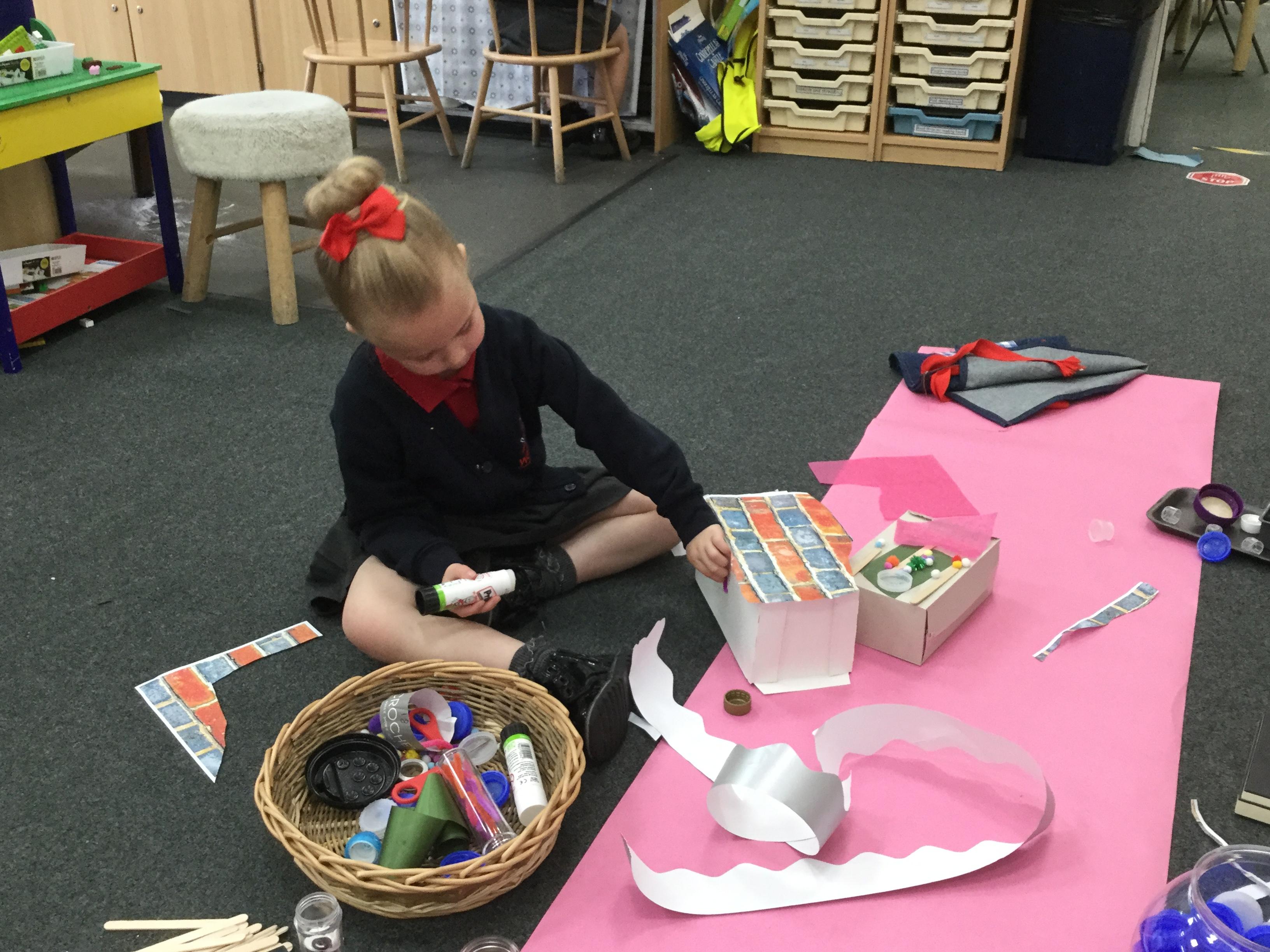 We have also been creating houses and maps just like from the story. We designed, talked about, cut and stuck lots of different materials together to create a house. We have made a great display with our efforts and it looks amazing ![]()