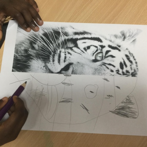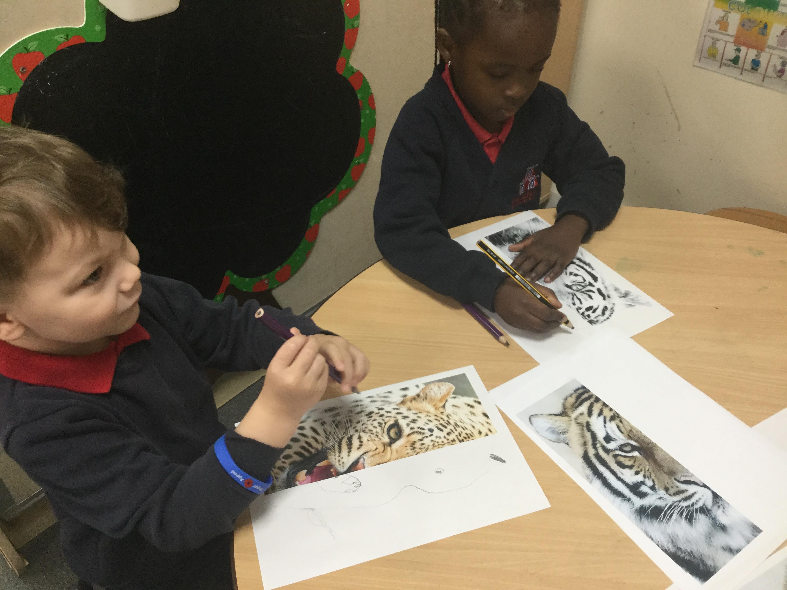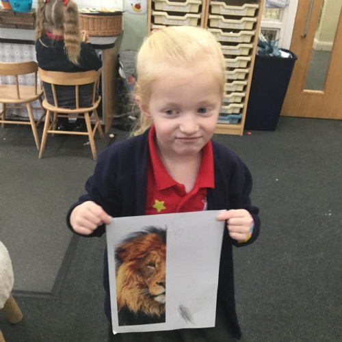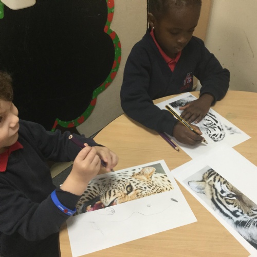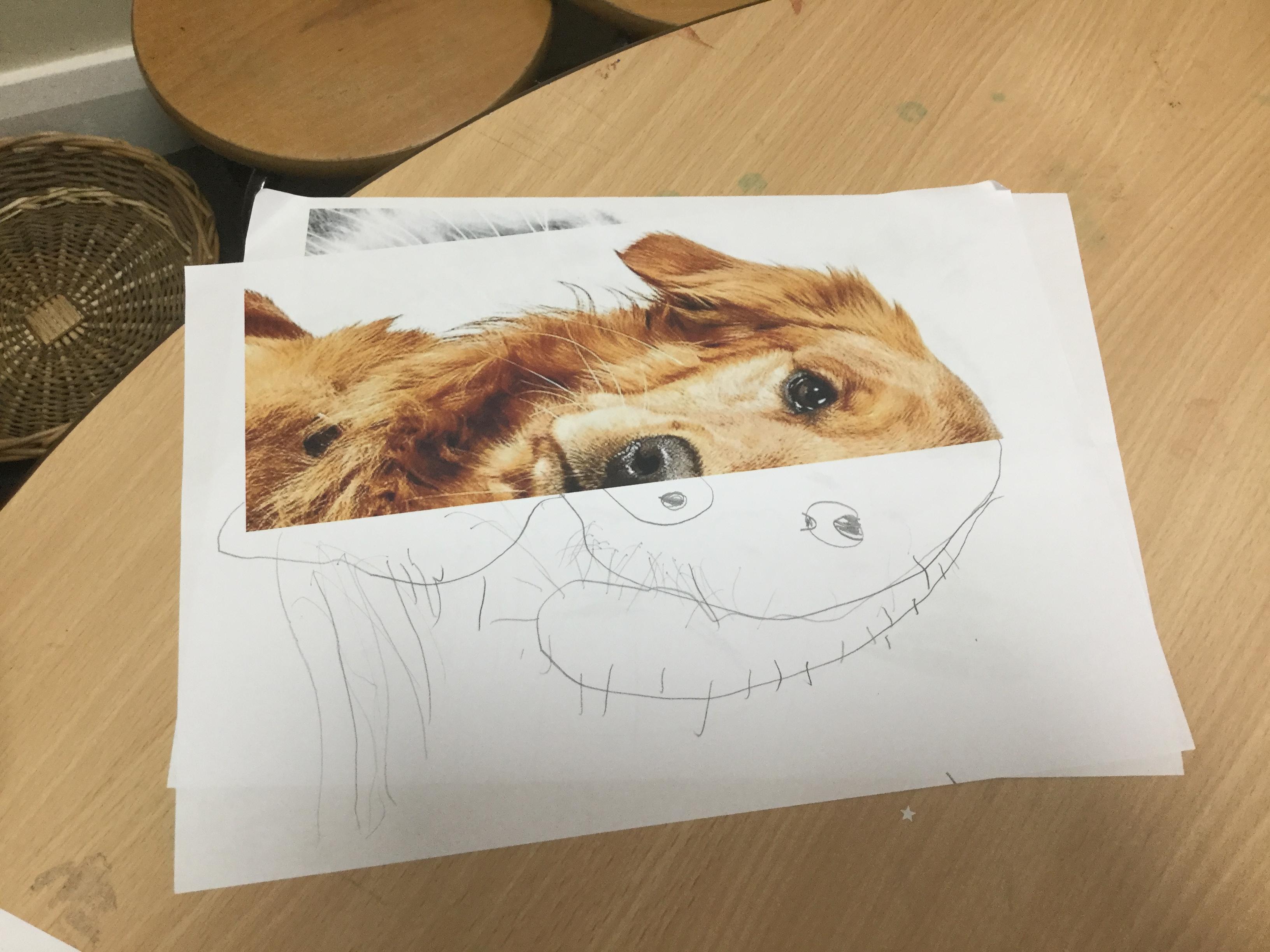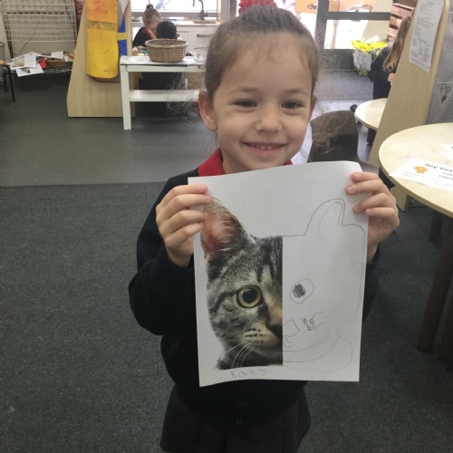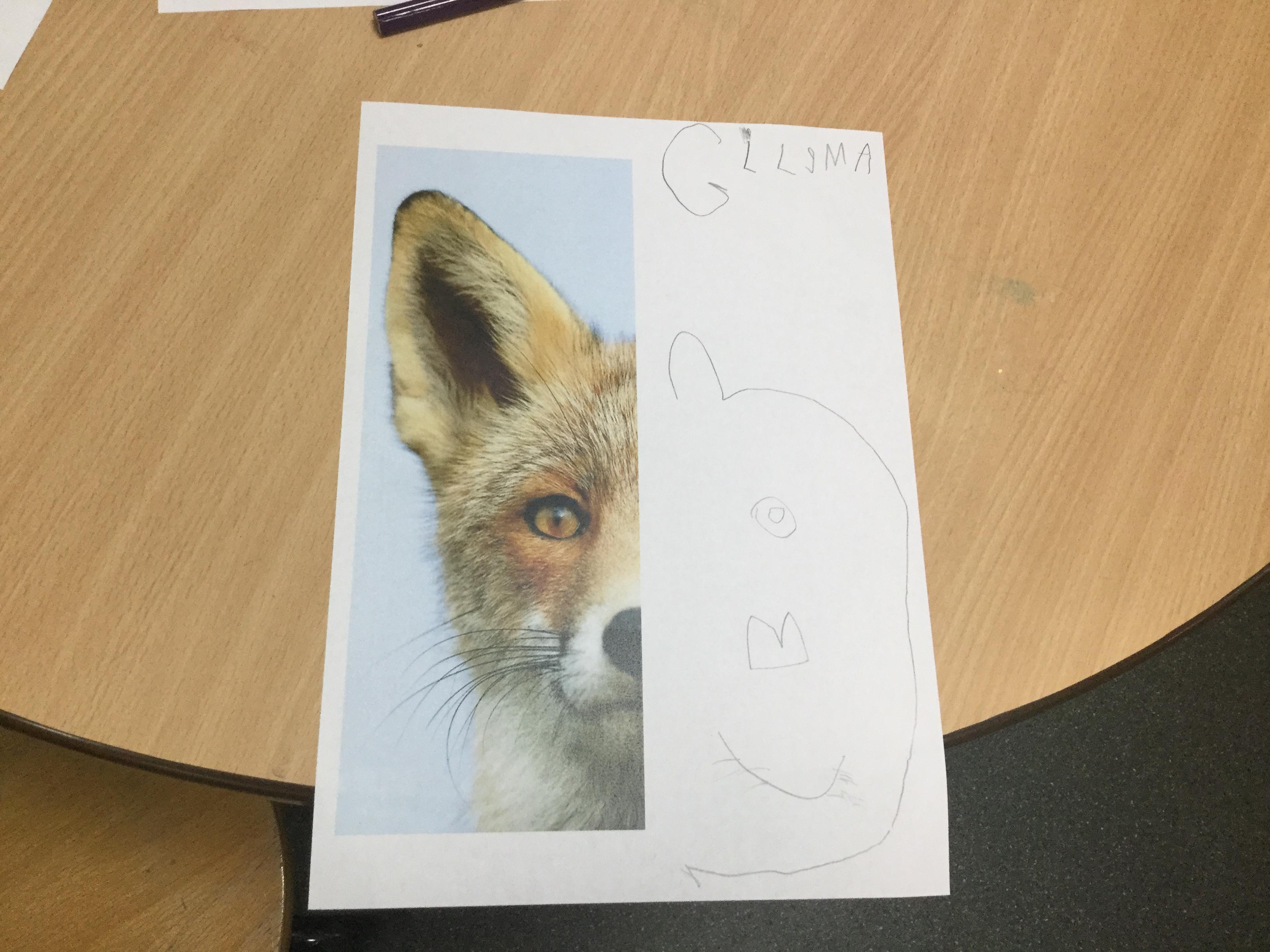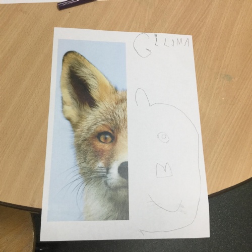 We started the week off by looking at some half face images of different animals and then we talked about how we could add the other half of the features. We used pencils and our observational skills and sketched. Here are the end products ![]()