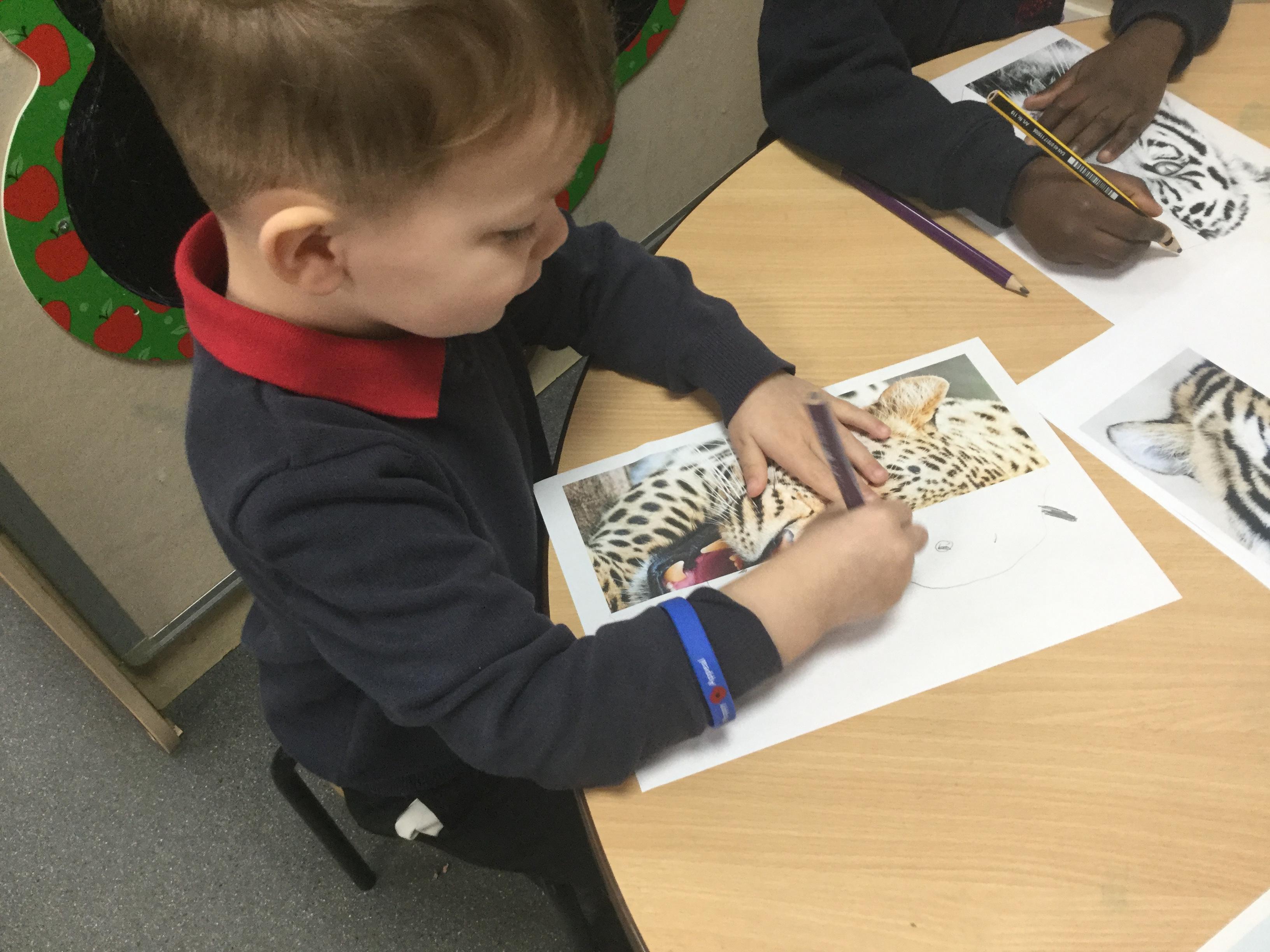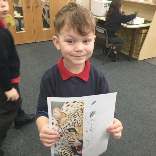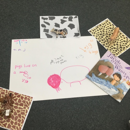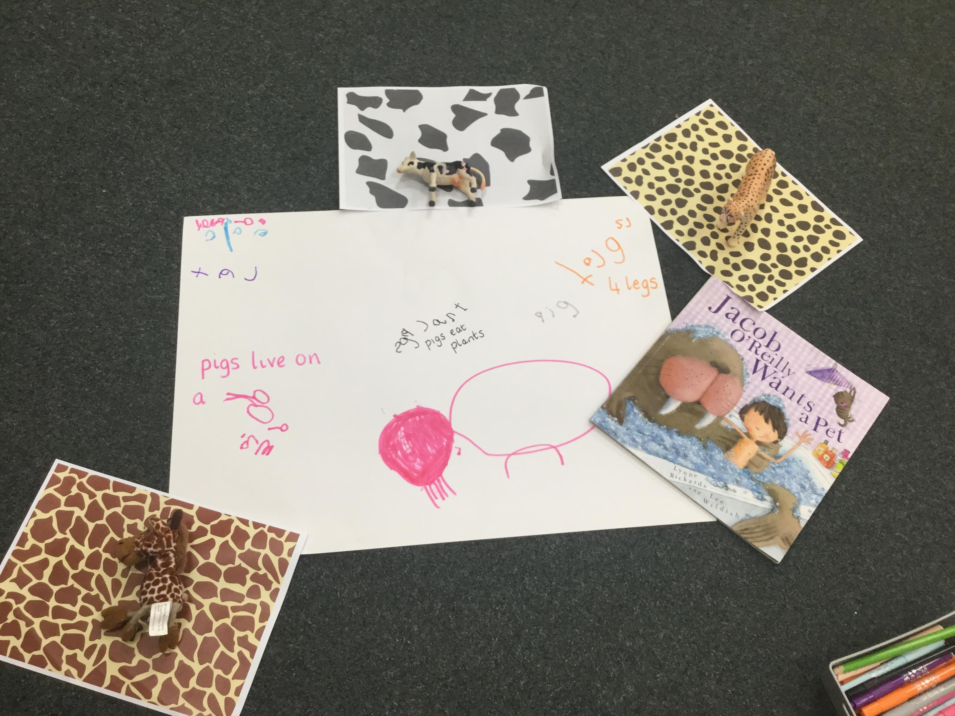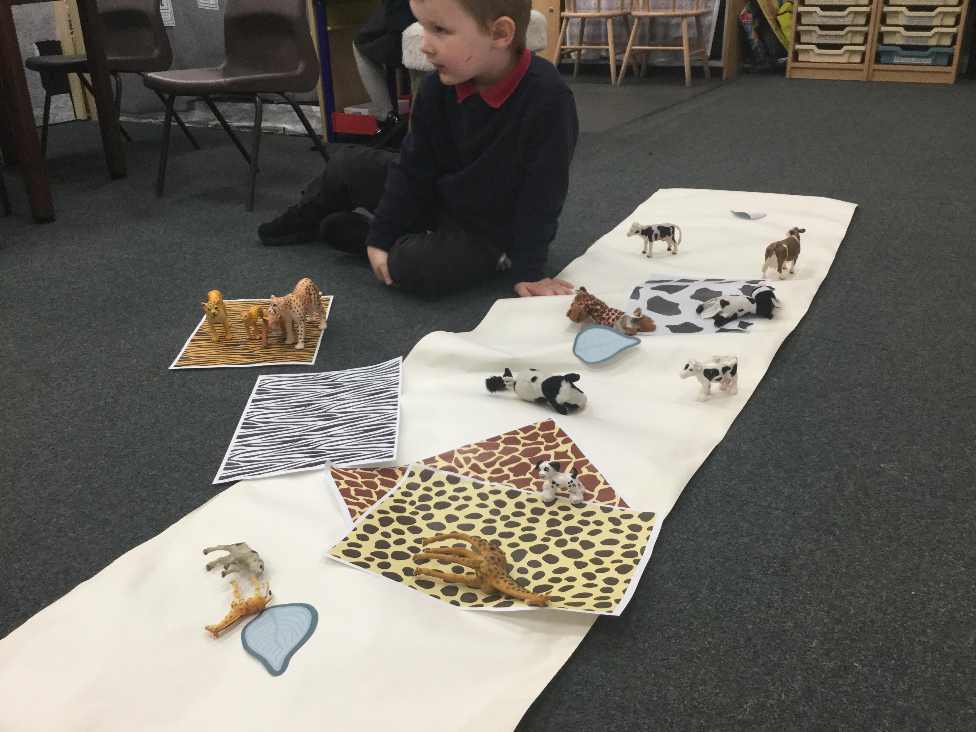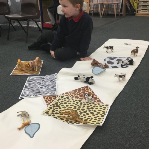 We have also been looking at animal skins and matching animals to them. We discussed that some giraffes have splodges and some have more of a circle pattern. We learned so many new facts. Here we are sorting and matching ![]()
