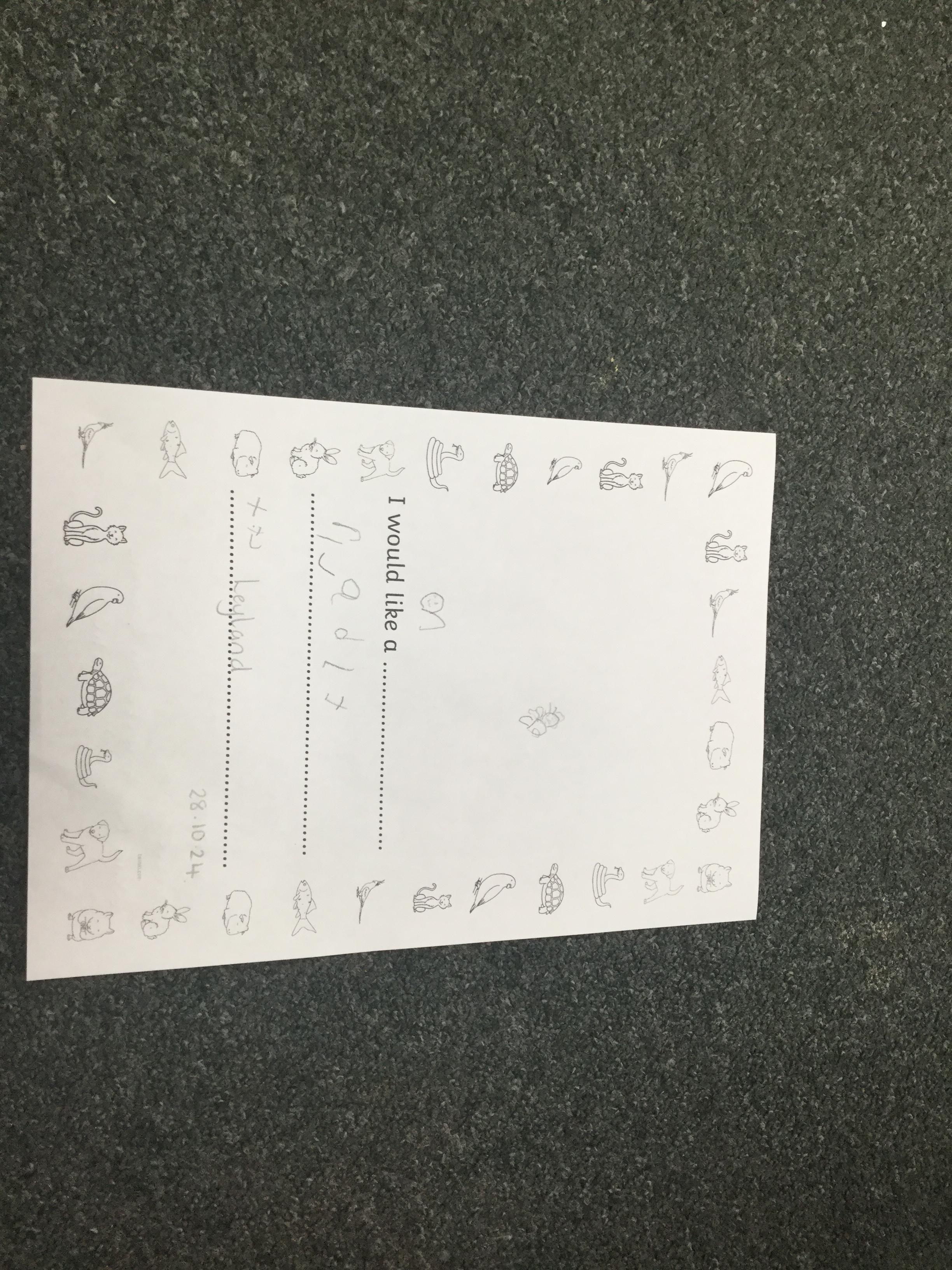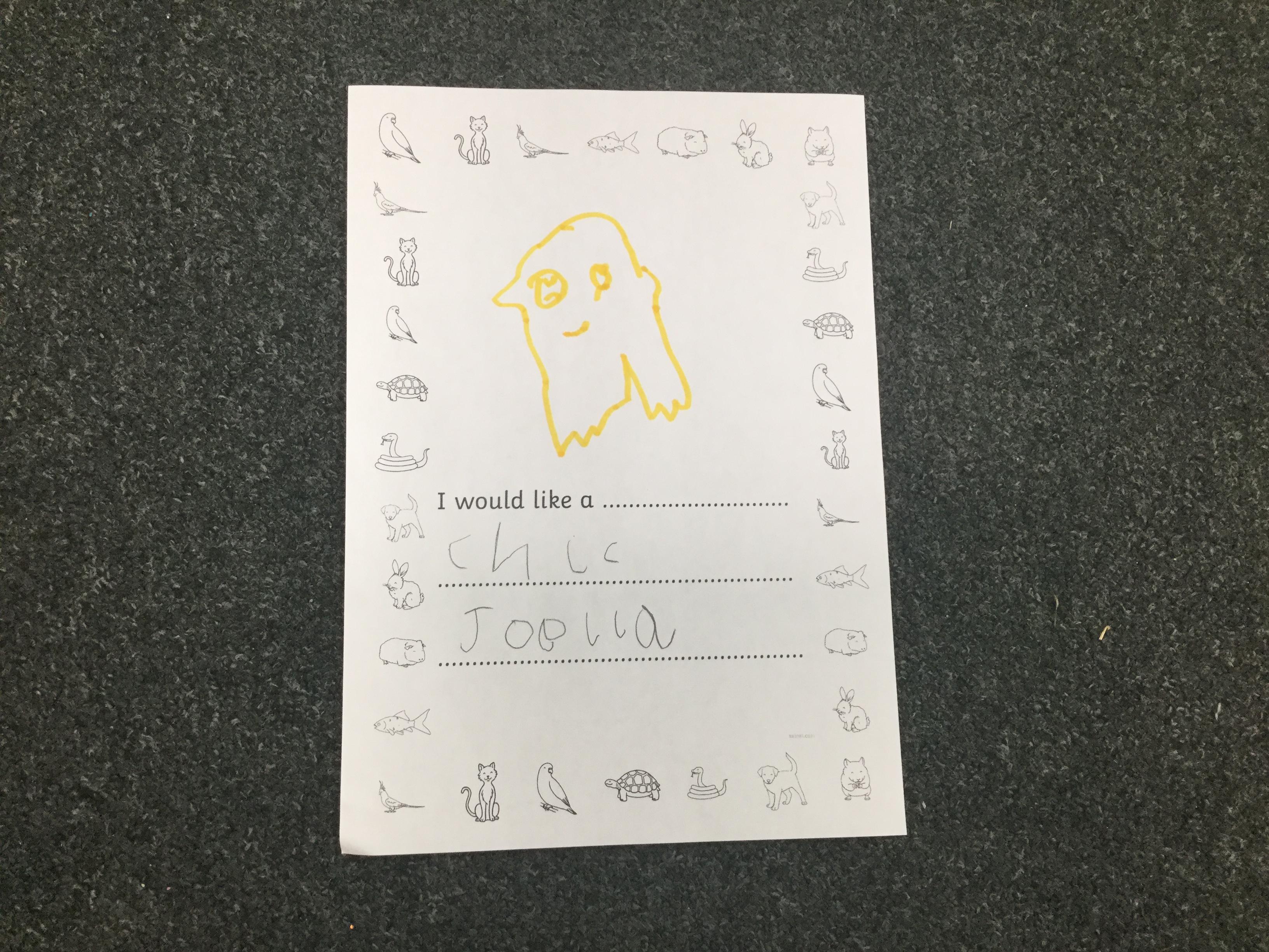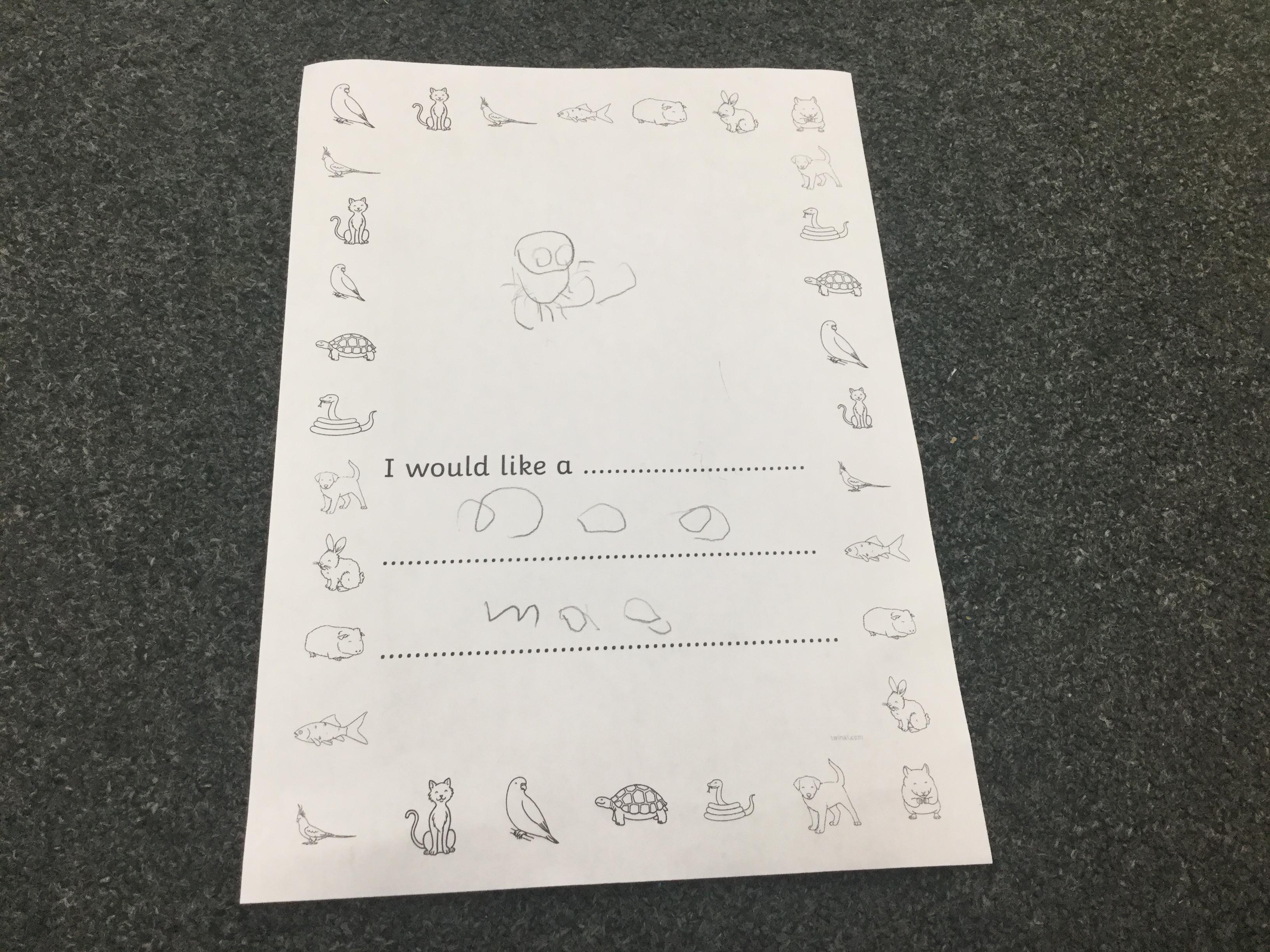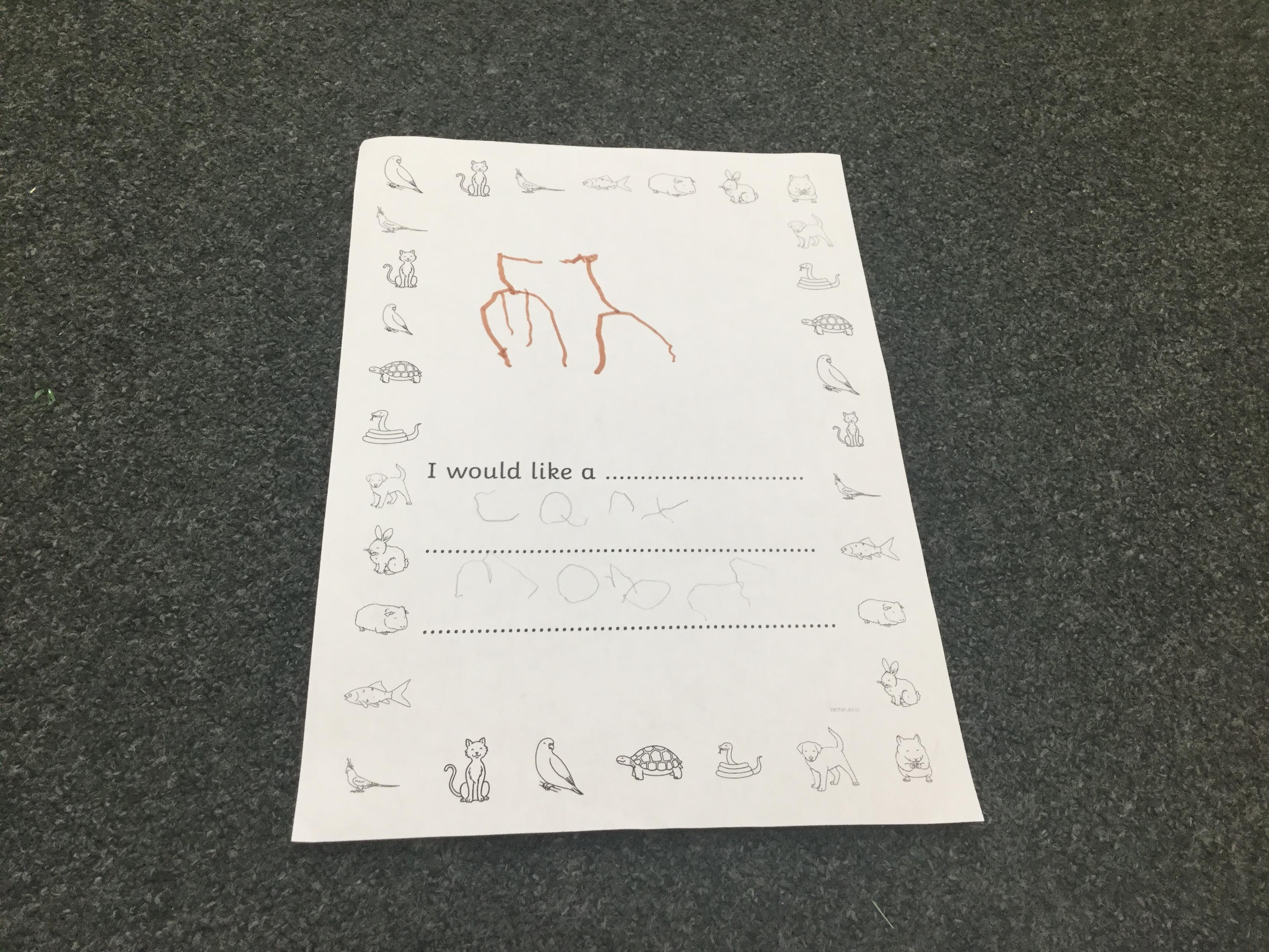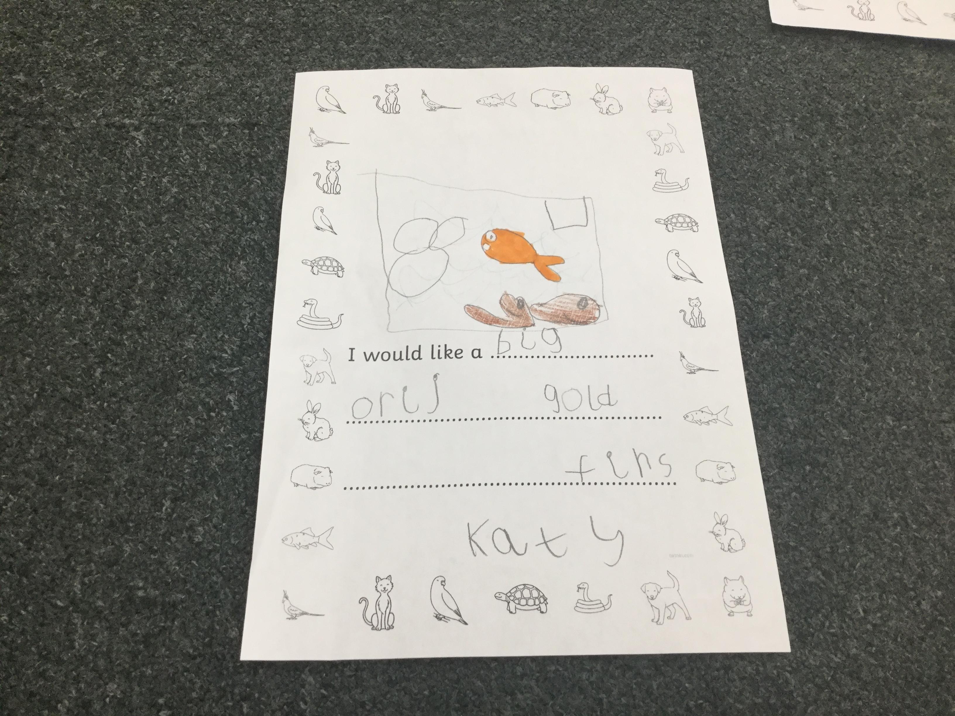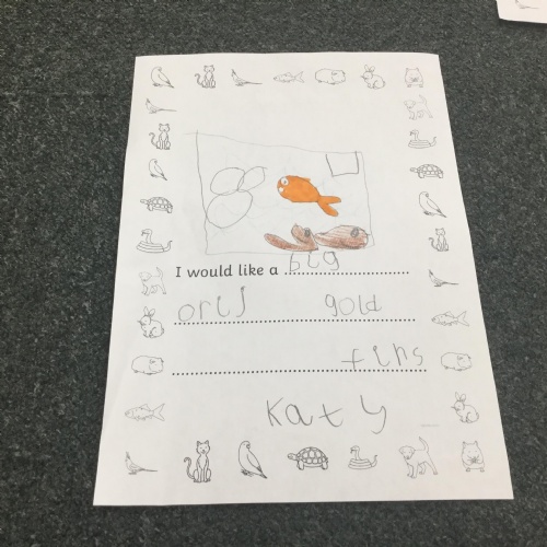 We also thought about the types of pet that we would like in our own homes. We had so many wonderful ideas and the children's writing is really coming on a treat. Remember to keep practising those sounds at home ![]()