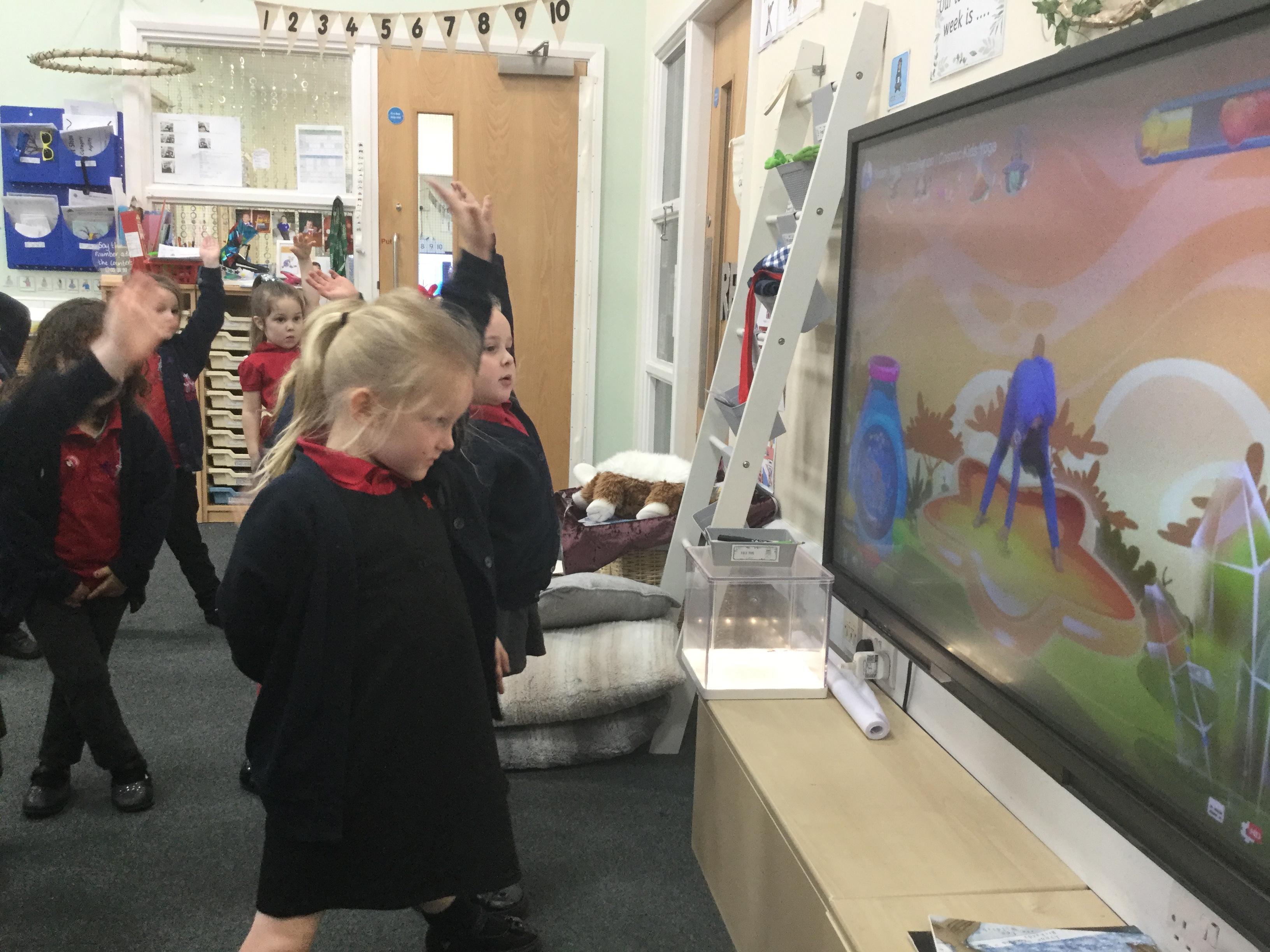 As we do every week we explore our Yoga learning. Each day we come in from the playground and access Yoga - a great way to calm both our bodies and mind after a busy lunchtime. This week we have been exploring animal yoga - you can access all of these by typing Cosmic Yoga into You Tube - here we are in action ![]()