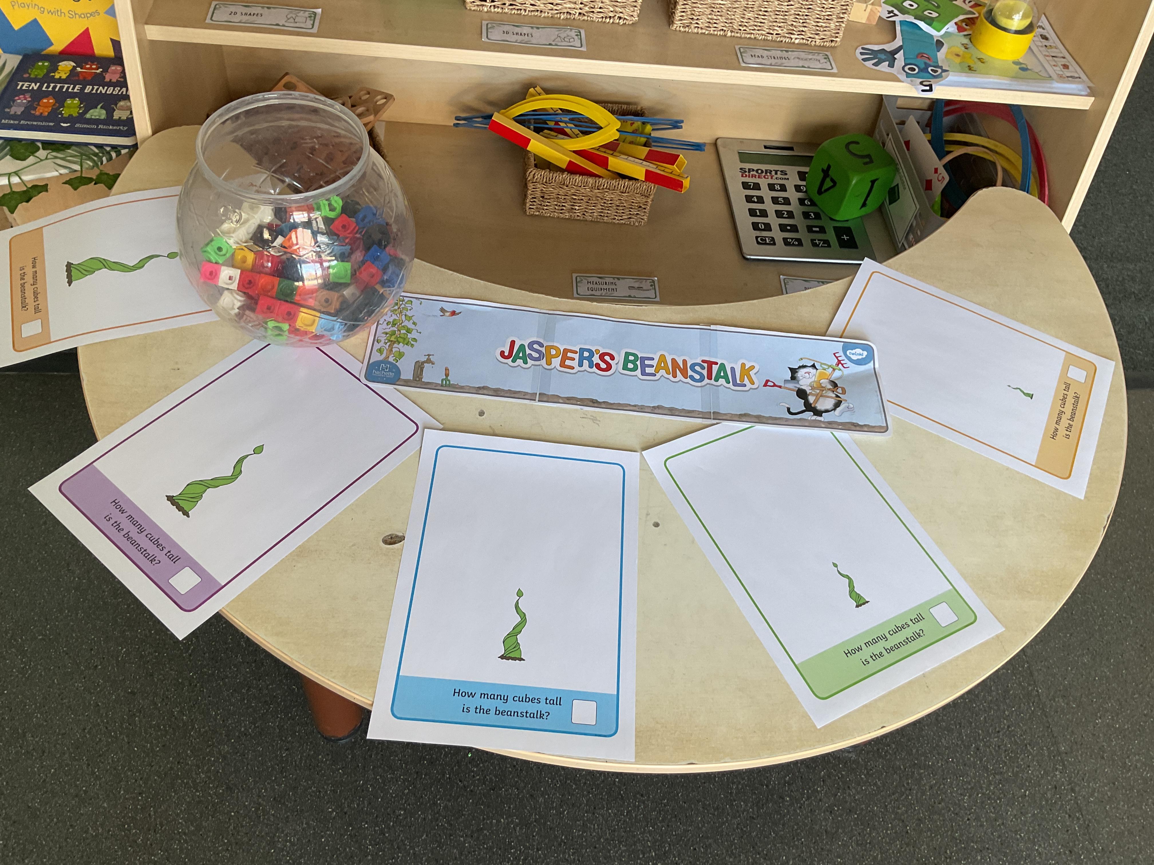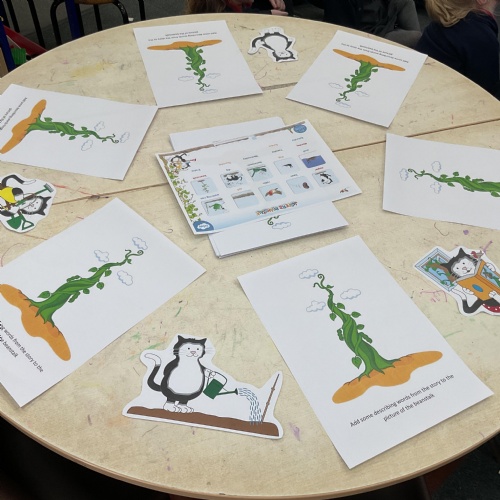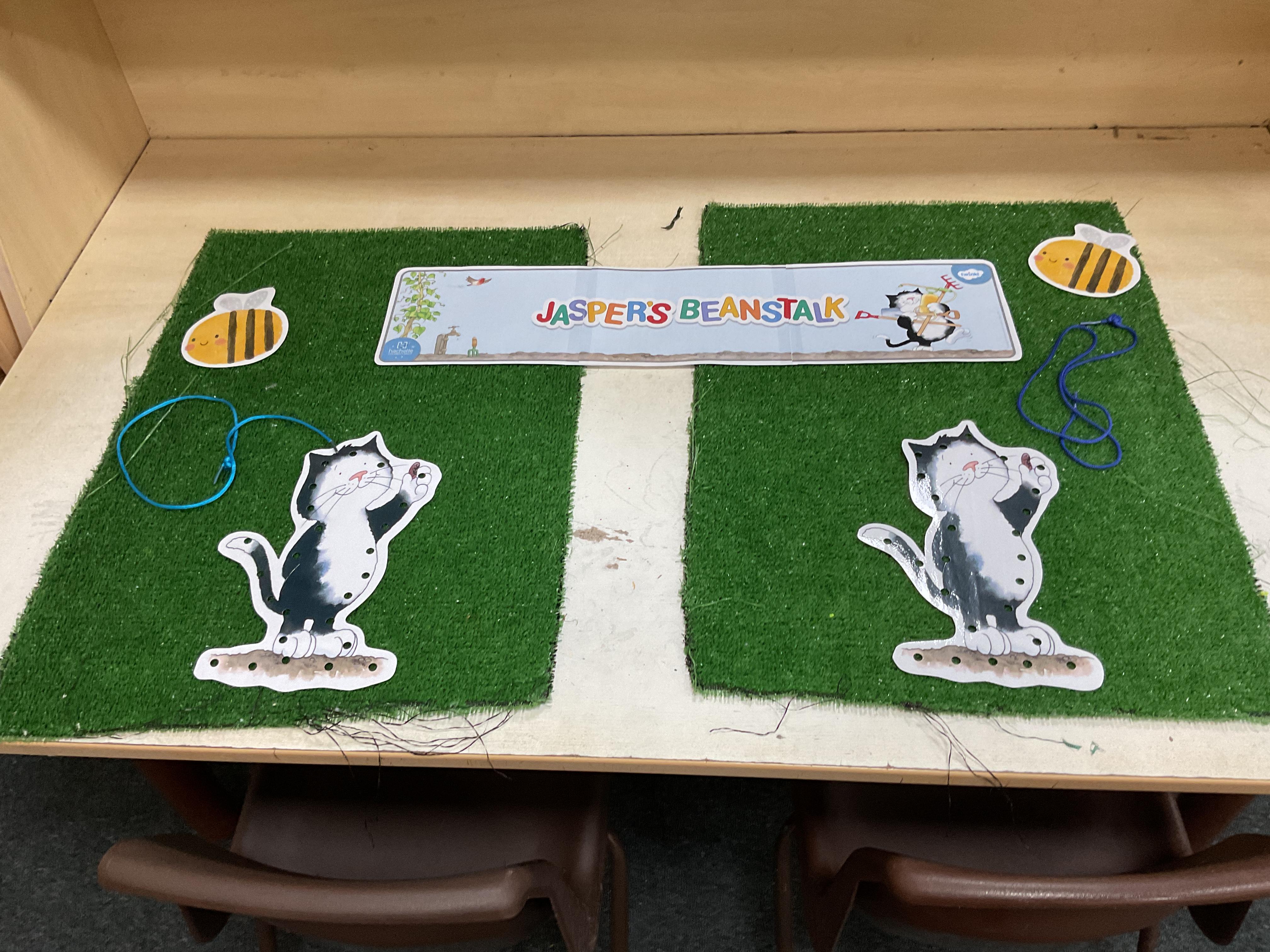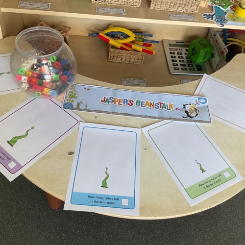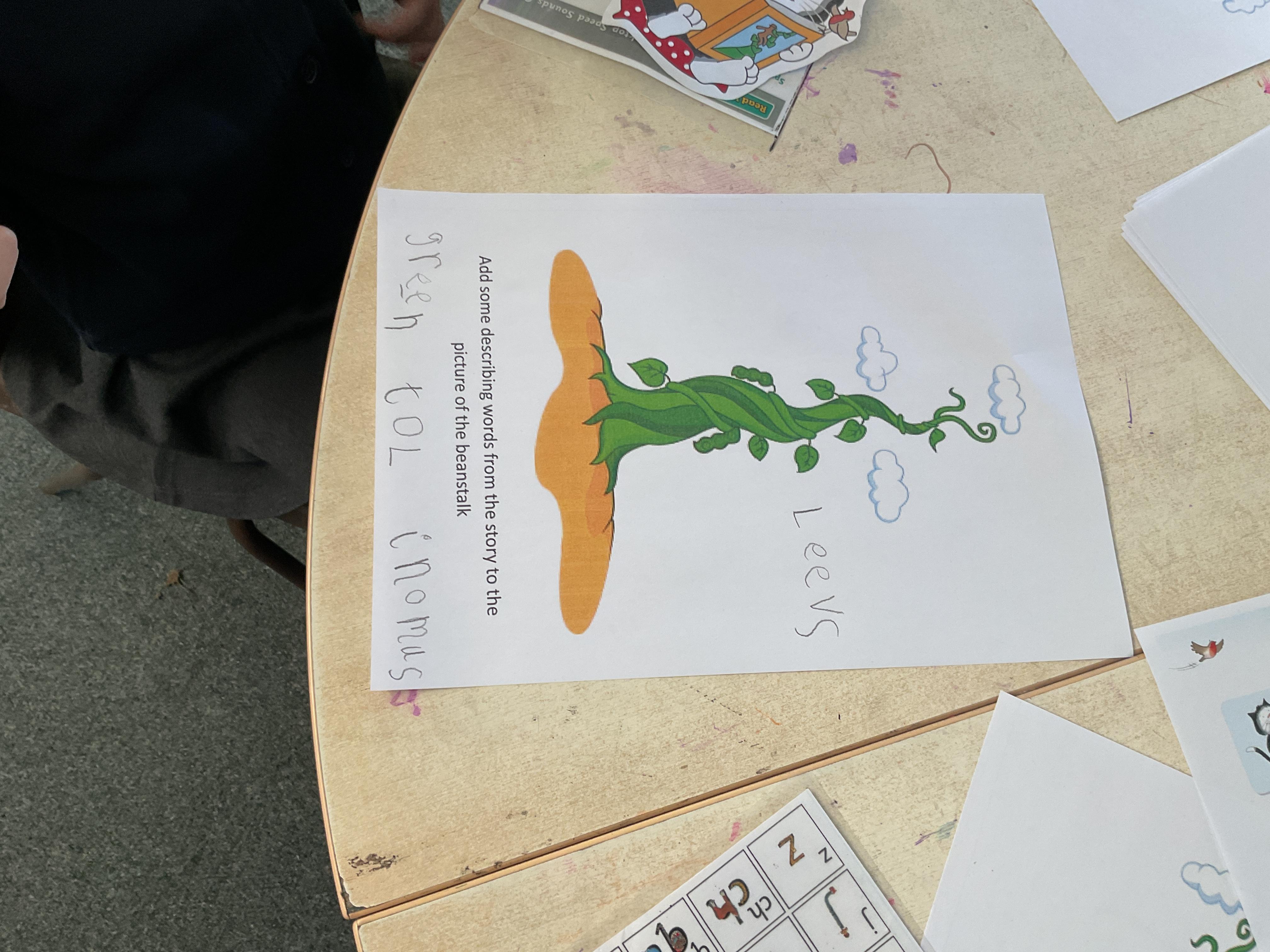 Hello and welcome back to this, our final blog, before the half term. What a wonderful week it has been and hasn't the sun shining made a huge difference? Let's start by looking at our lovely invitations to learn based on our text of the week Jasper's Beanstalk ![]()