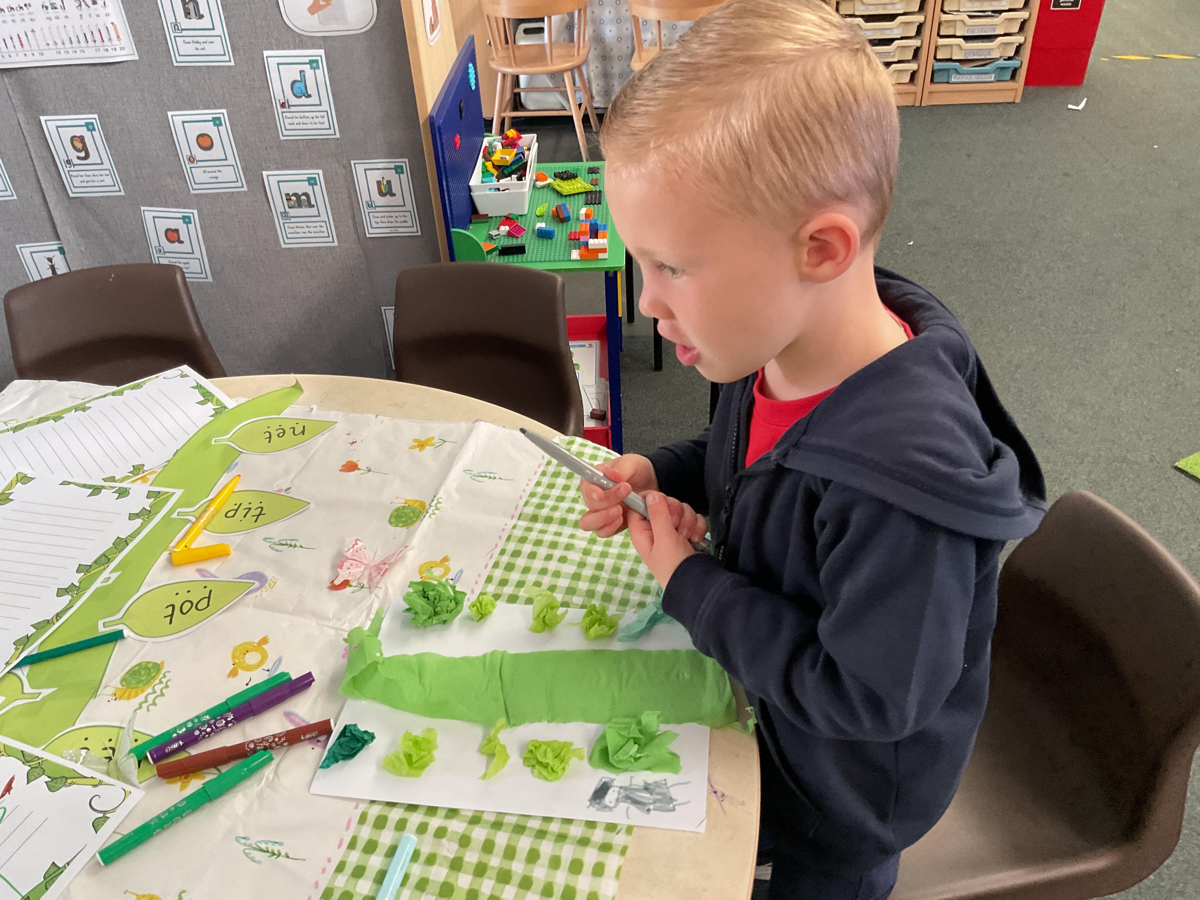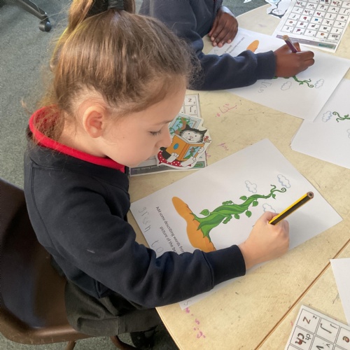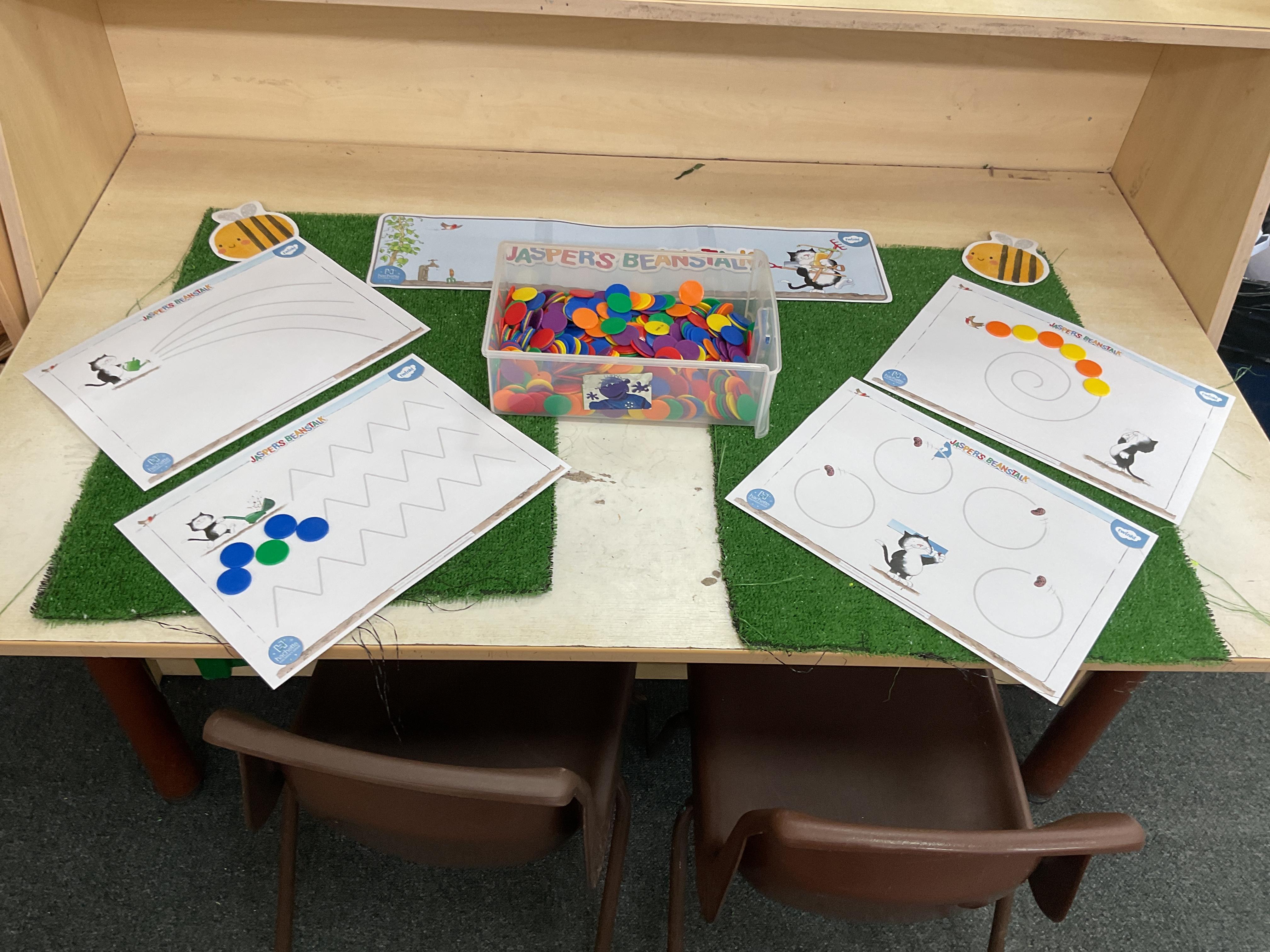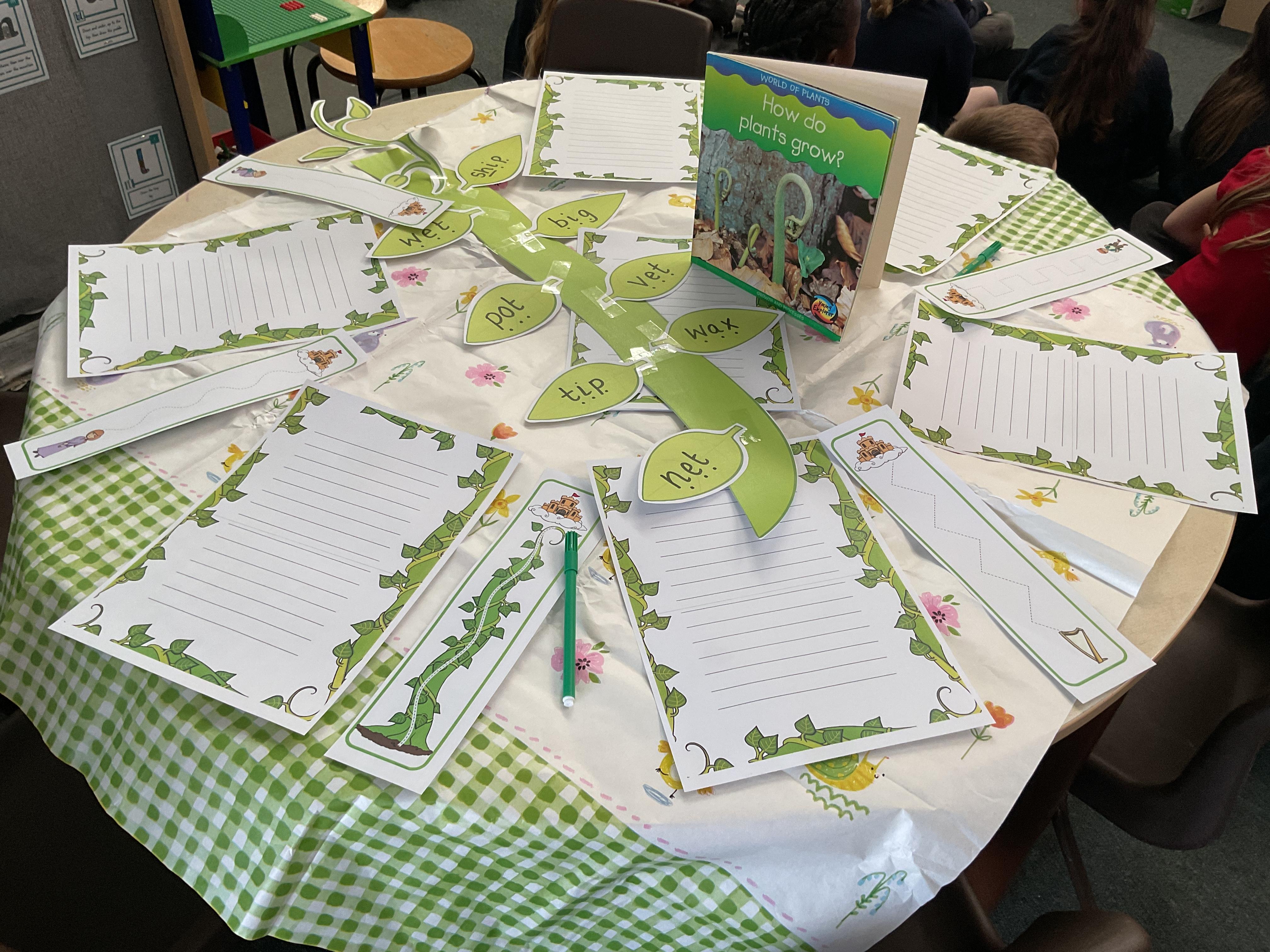 Hello and welcome back to this, our final blog, before the half term. What a wonderful week it has been and hasn't the sun shining made a huge difference? Let's start by looking at our lovely invitations to learn based on our text of the week Jasper's Beanstalk ![]()