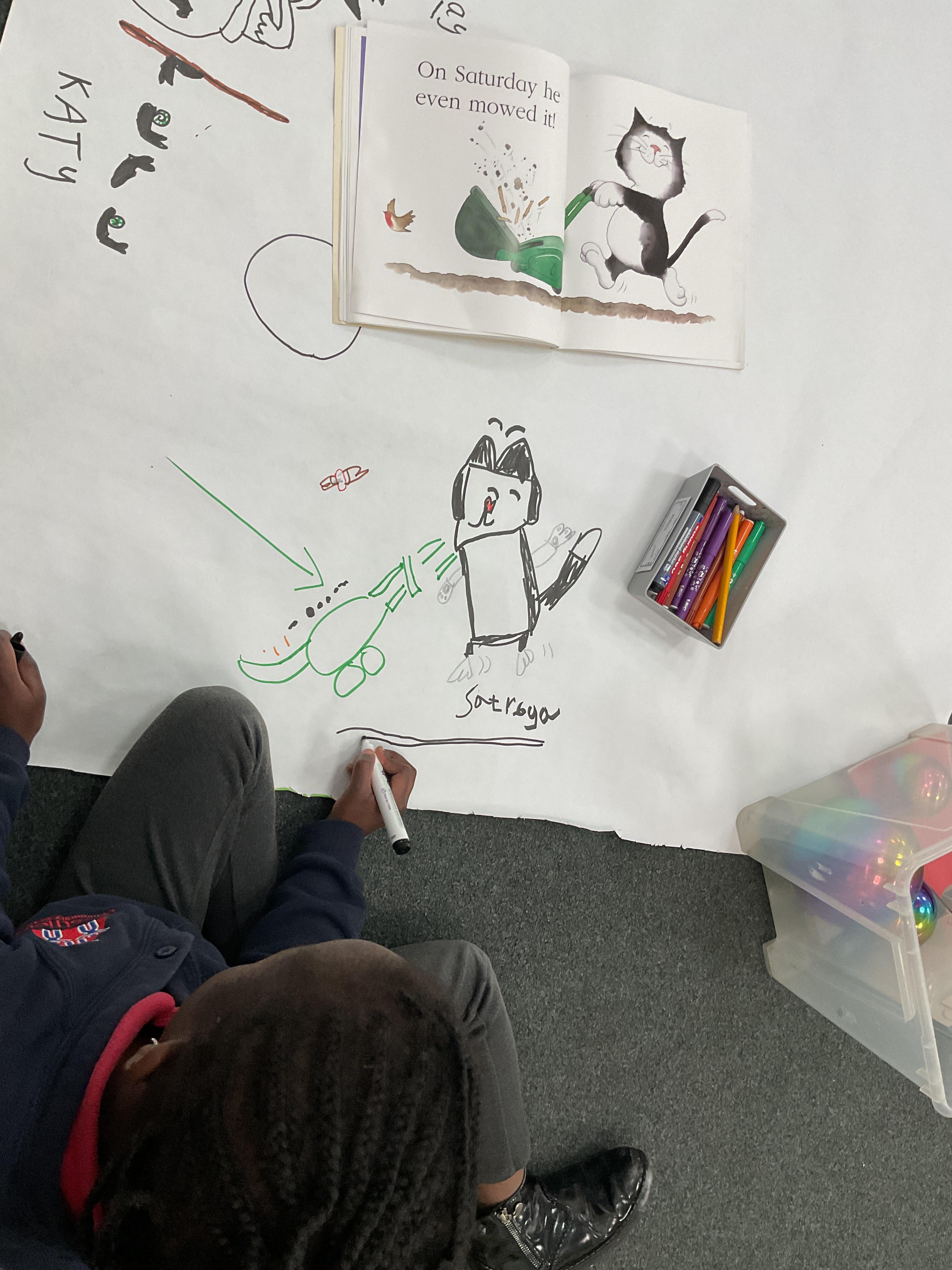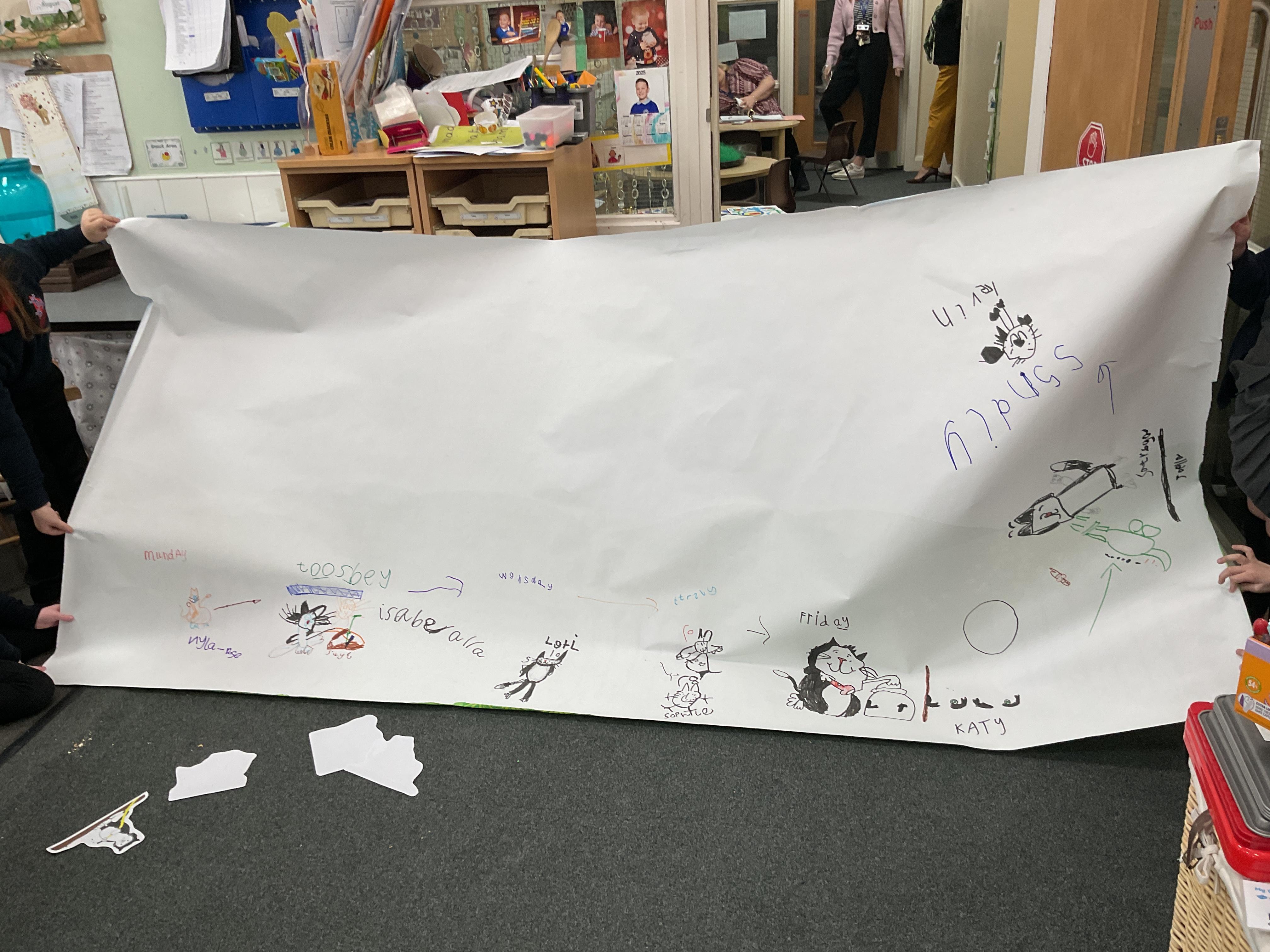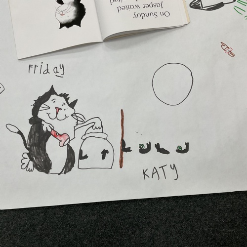 We started the week off by creating a story map depicting the main themes in the story. We talked about the days of the week and made our own map. Take a look at these amazing illustrations ![]()
