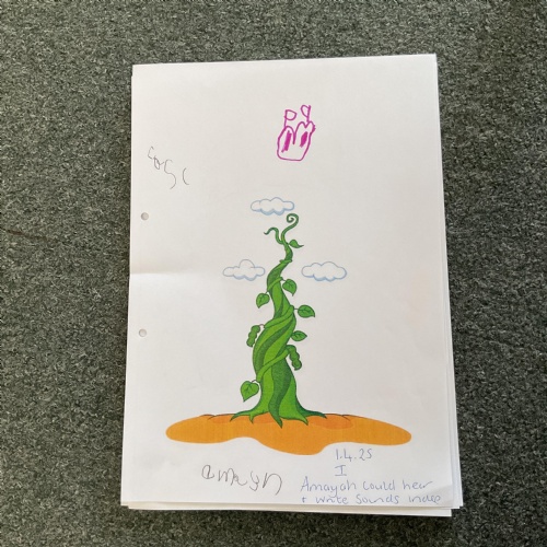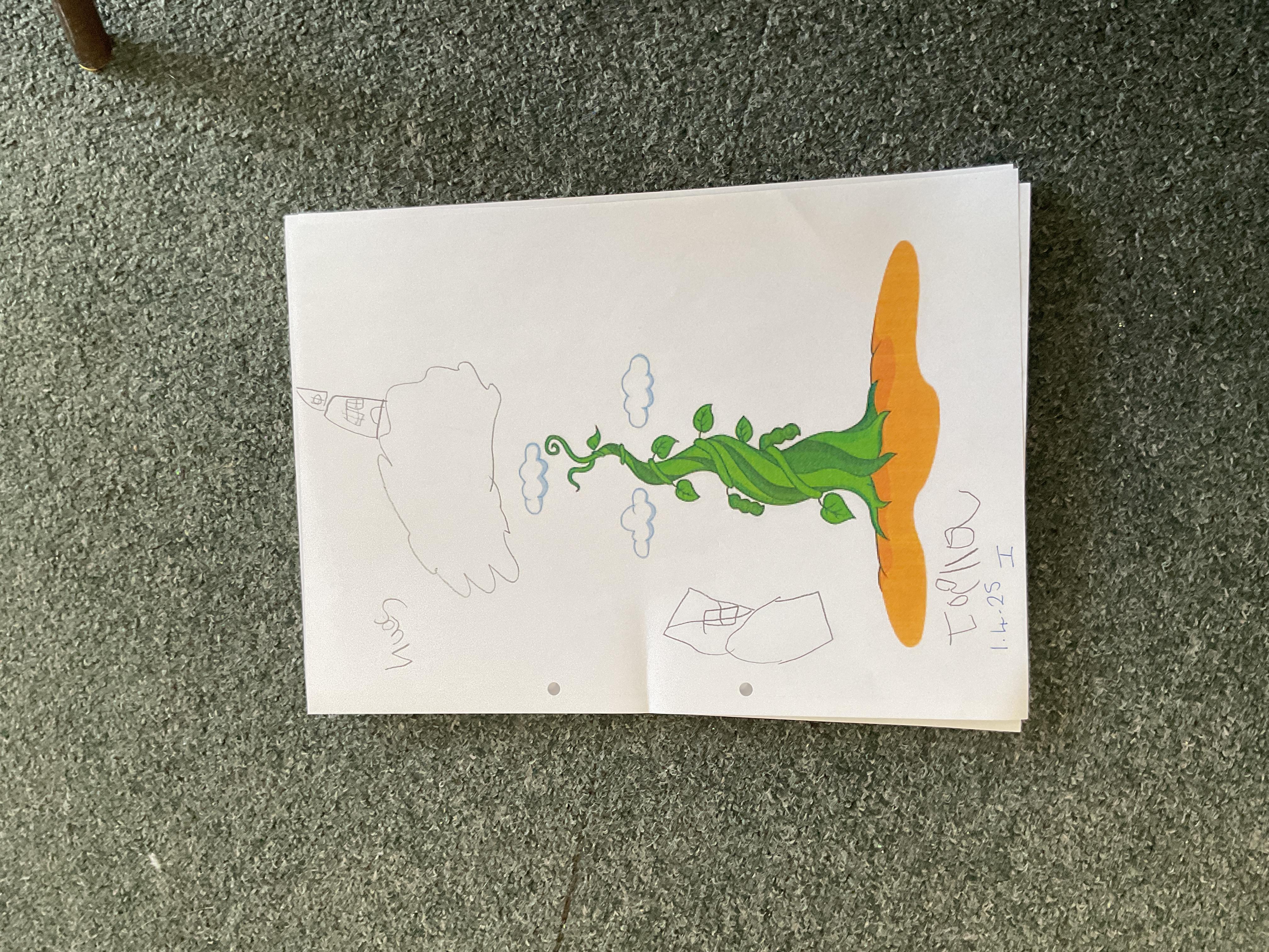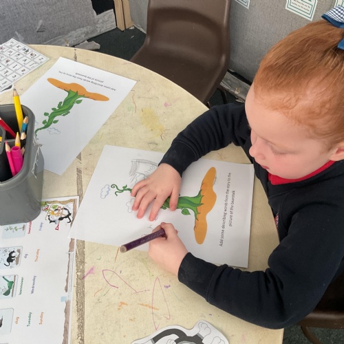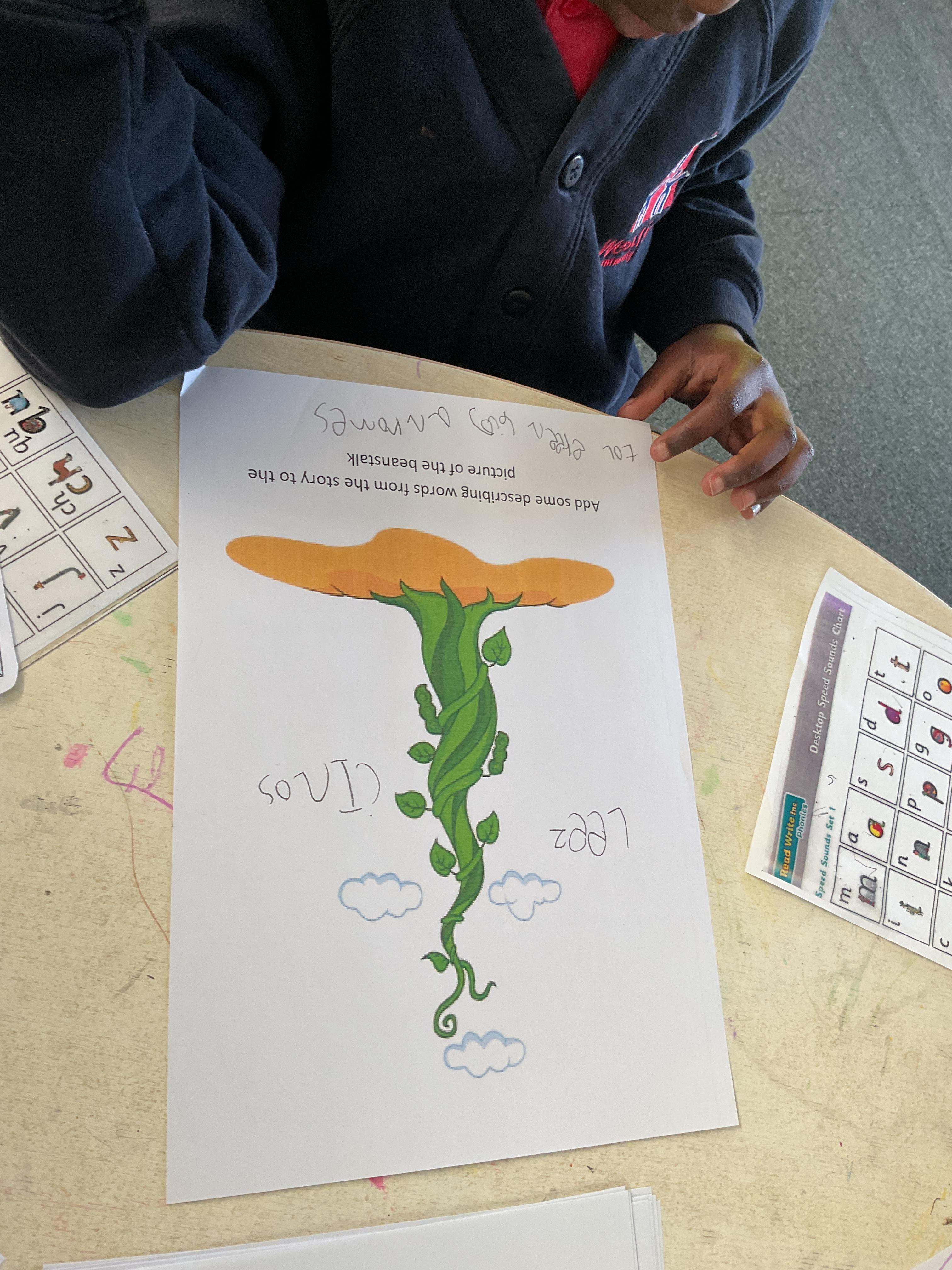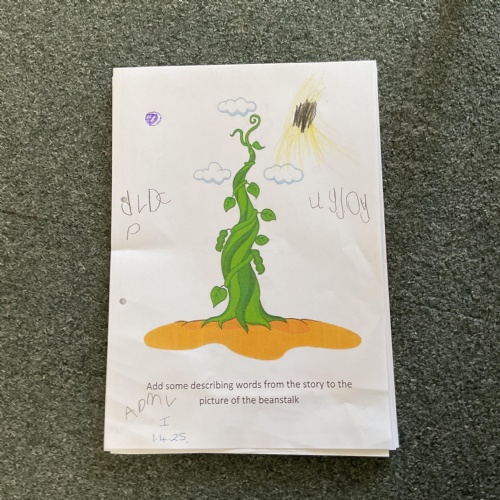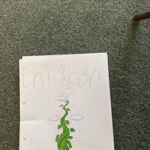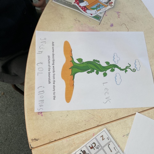 On the final day Jasper discovered that his beanstalk had grown. This gave us a good idea. We decided that if a beanstalk was to grow in our own gardens what we would like to find at the top of it. We had some very interesting answers. Take a look at our wonderful writing ![]()