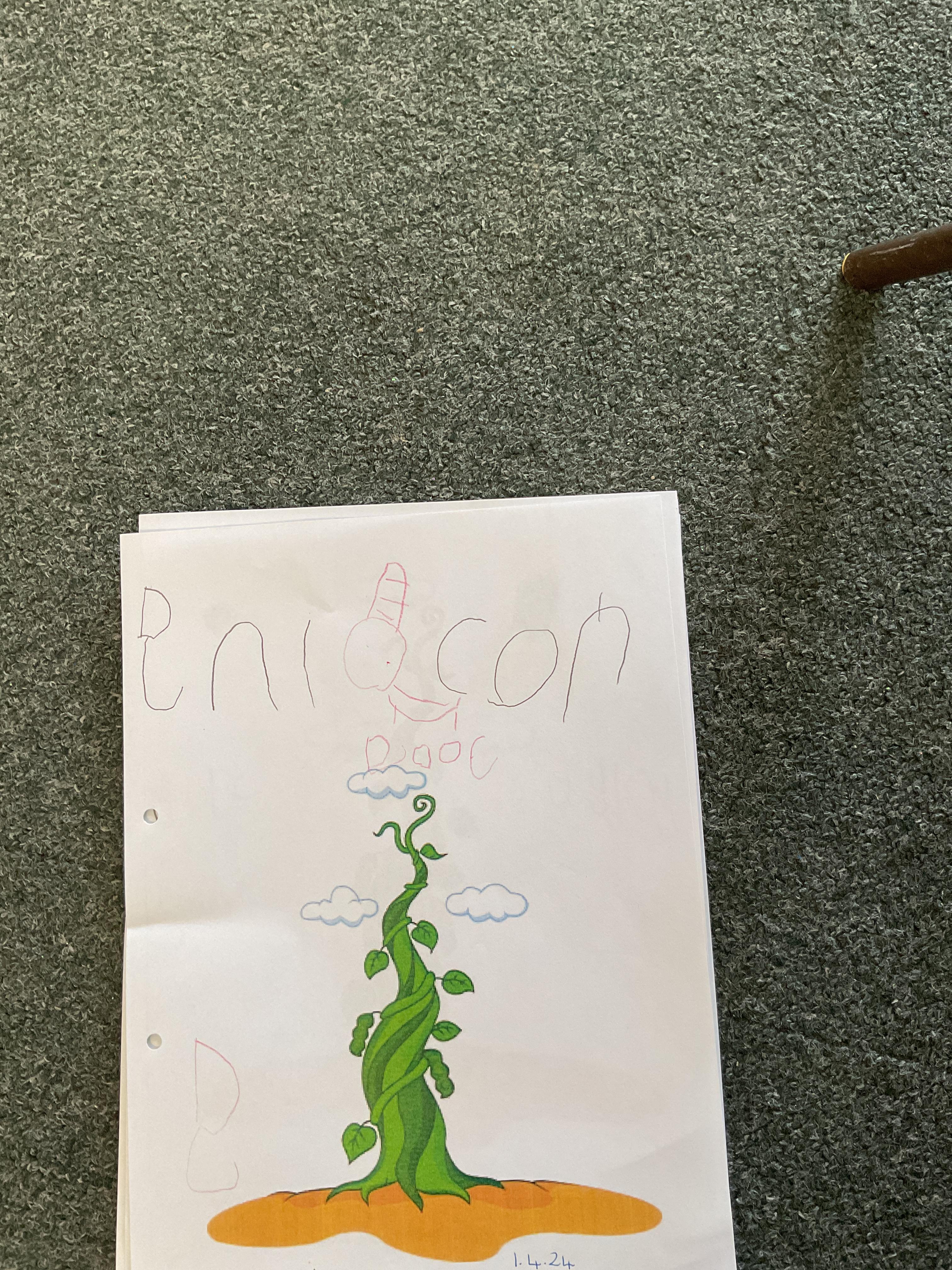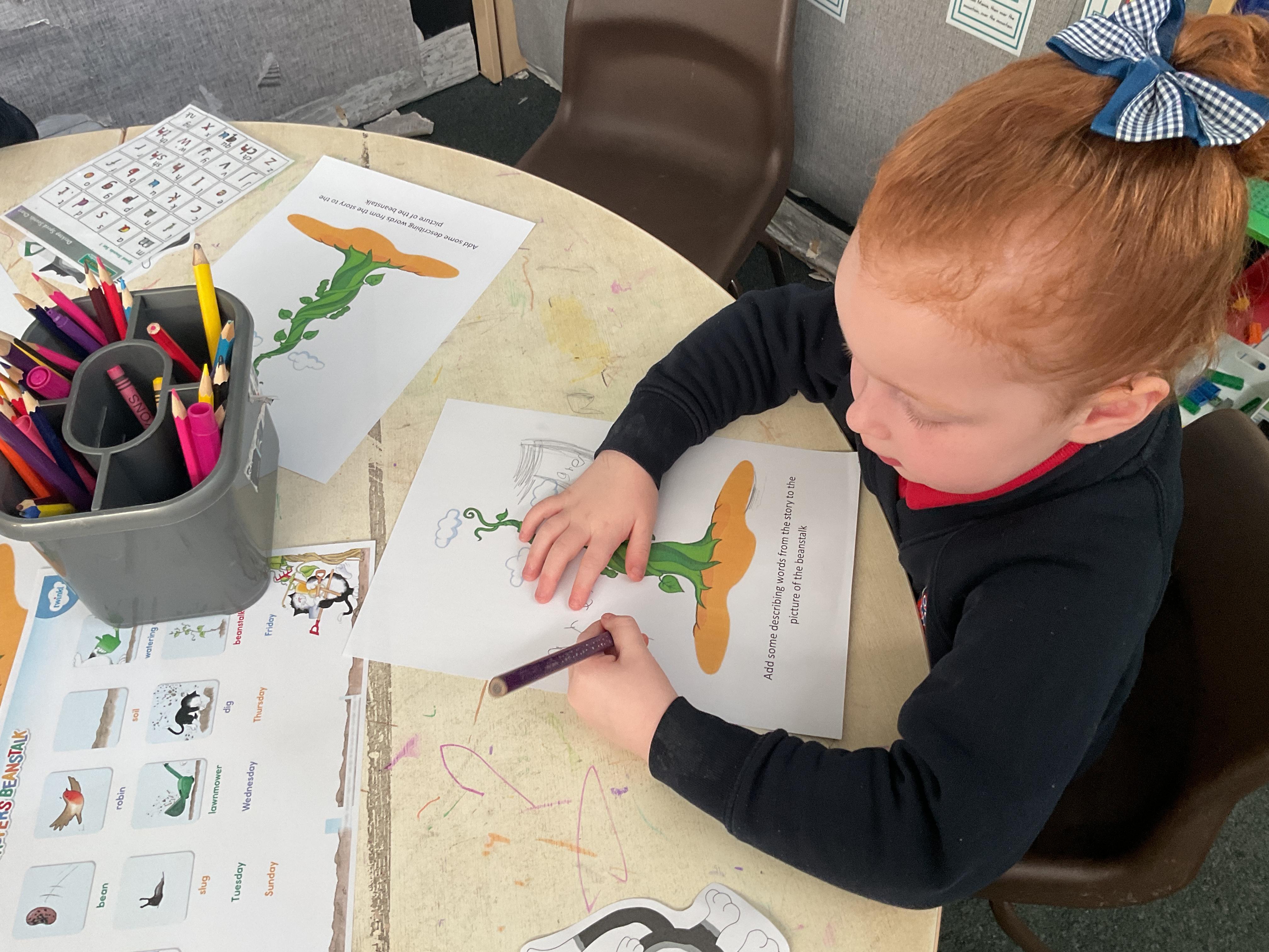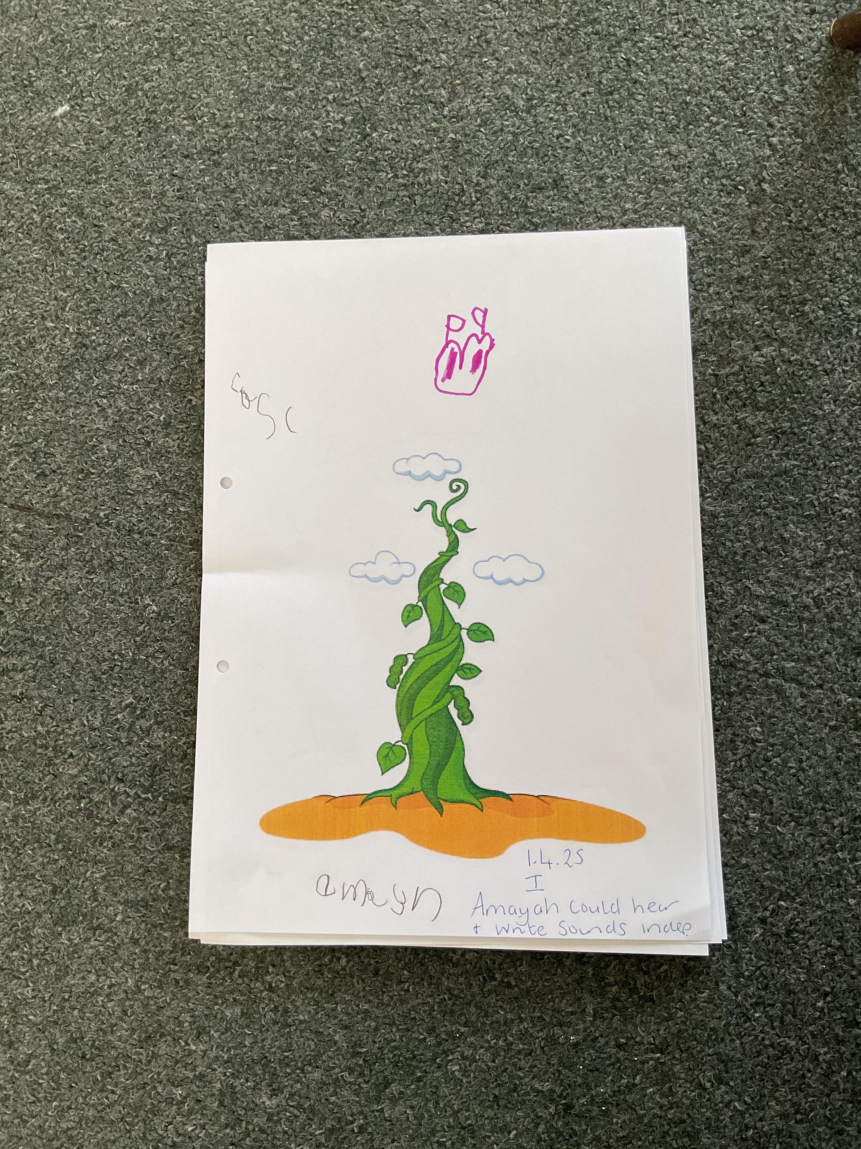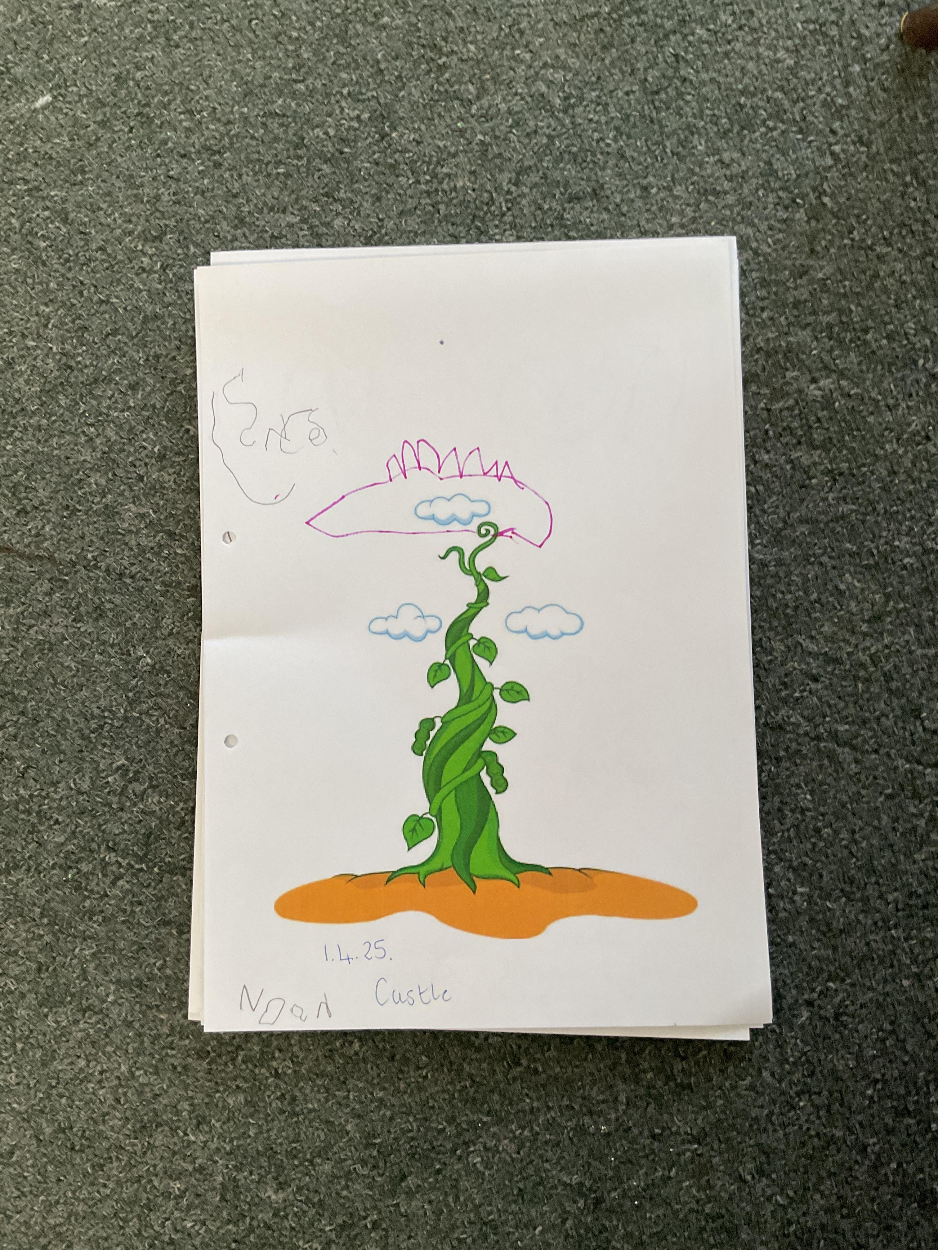 On the final day Jasper discovered that his beanstalk had grown. This gave us a good idea. We decided that if a beanstalk was to grow in our own gardens what we would like to find at the top of it. We had some very interesting answers. Take a look at our wonderful writing ![]()