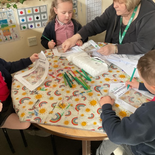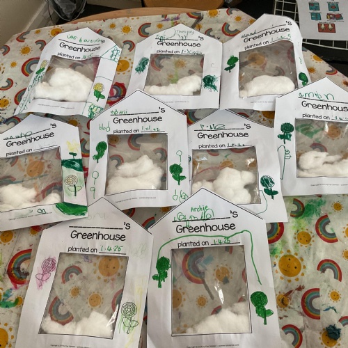 So we thought that we would like to plant our very own bean. We created greenhouses using a plastic bag and cotton wool. If we put these in a window and water them carefully - not too much - they will begin to grow a shoot and roots - We would love you to send us the pictures via Weduc of them growing so we can share them with each other. Here are we creating our own greenhouses ![]()