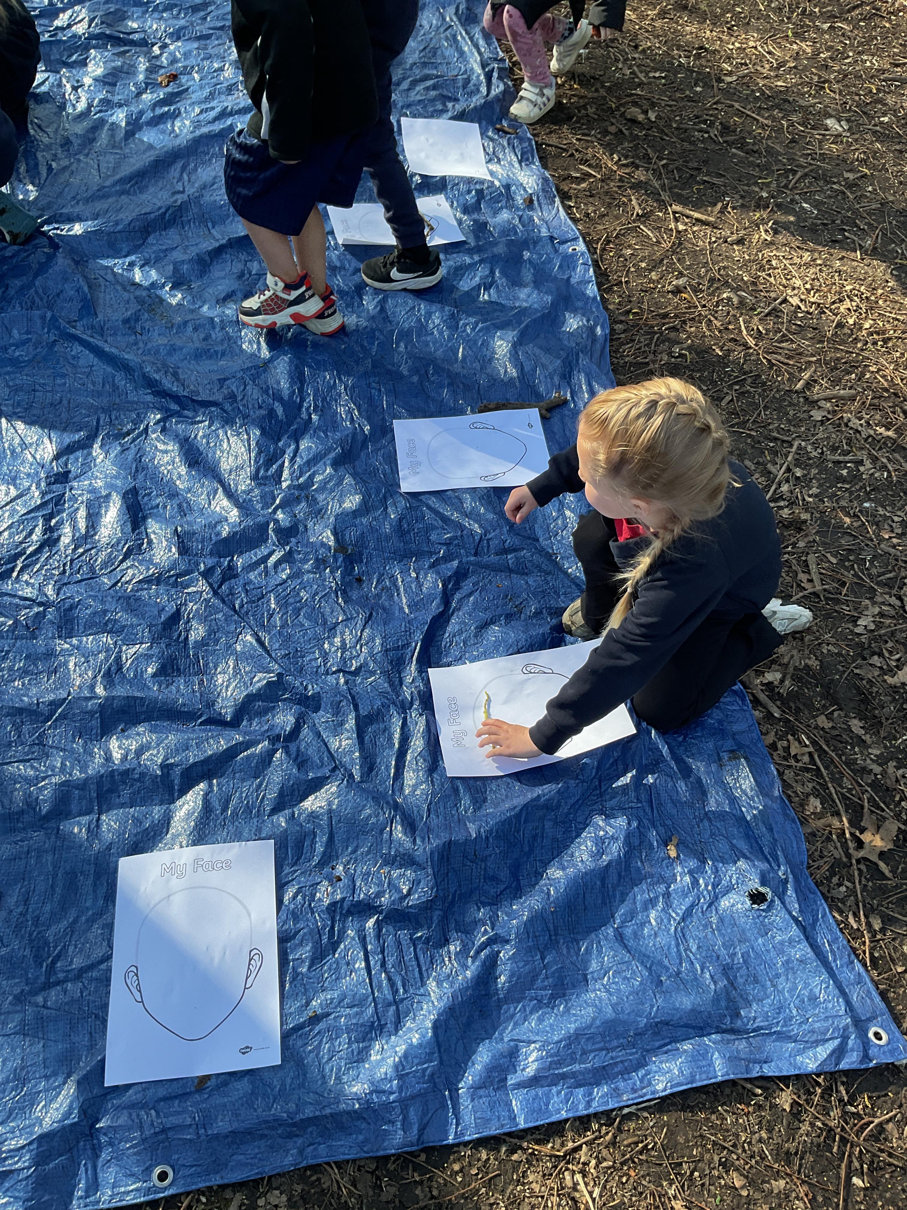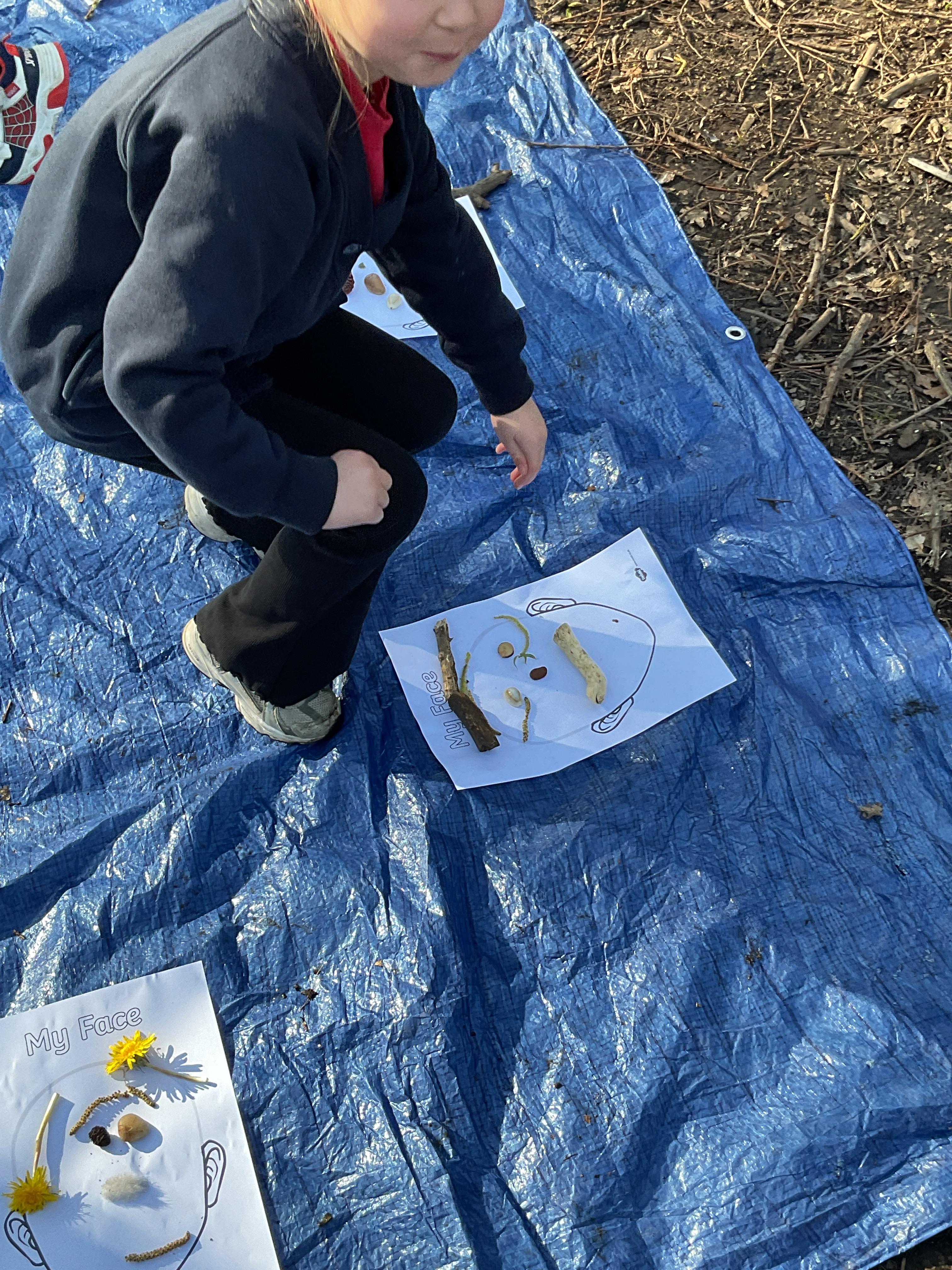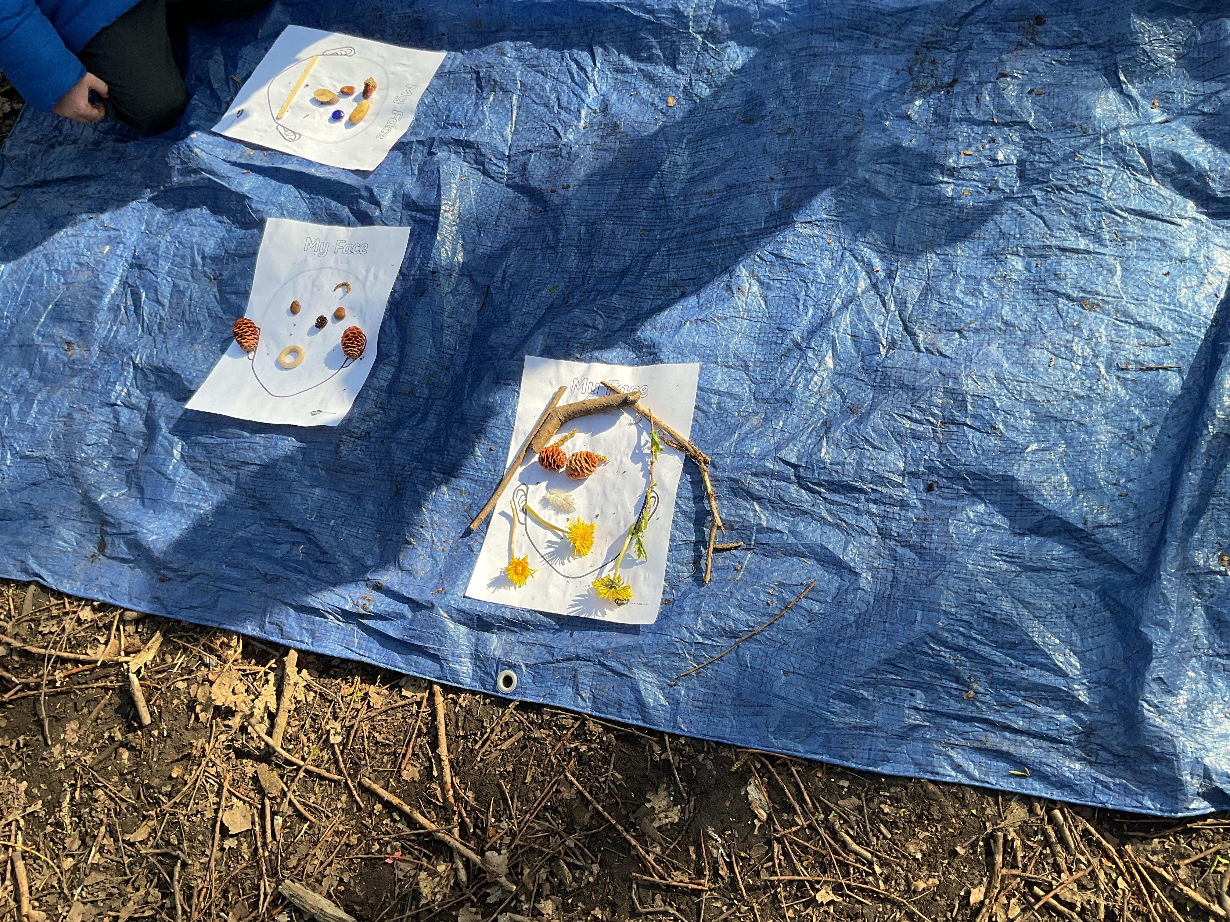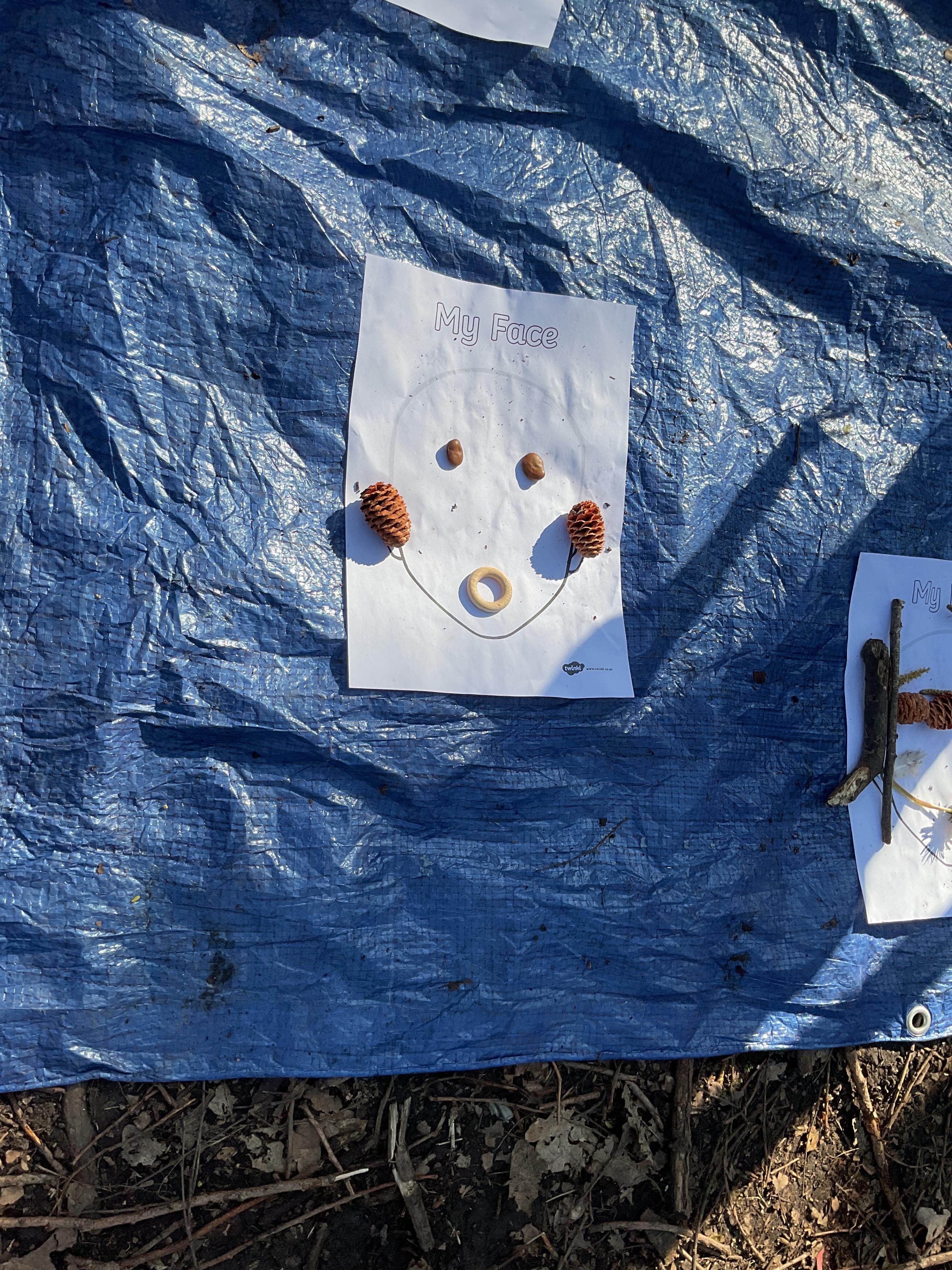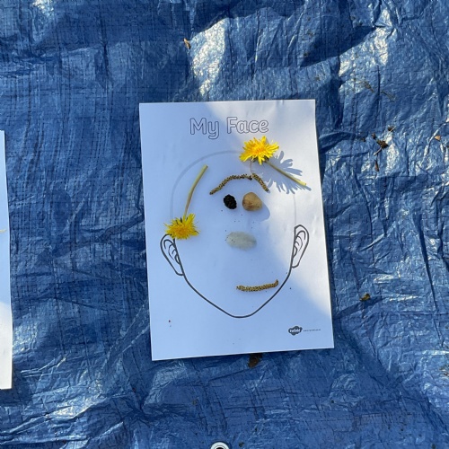 If that wasn't enough excitement we went out onto the ALPS for the second time. We had a great time in the sunshine. Once again we had our story and our snack outside in the fresh air and used lots of natural materials to help us create self portraits. Take a look at these amazing efforts. We truly are a creative bunch!
