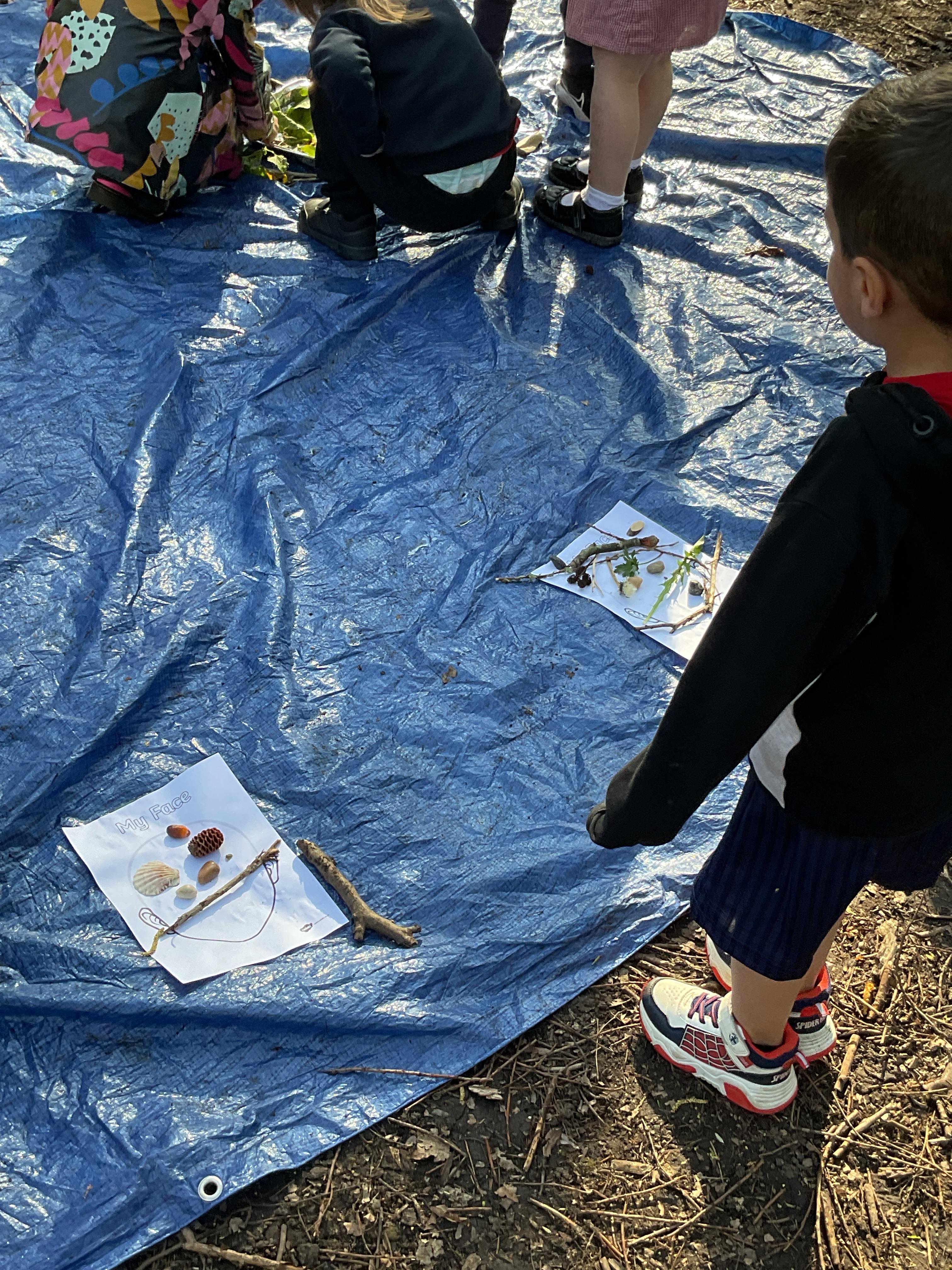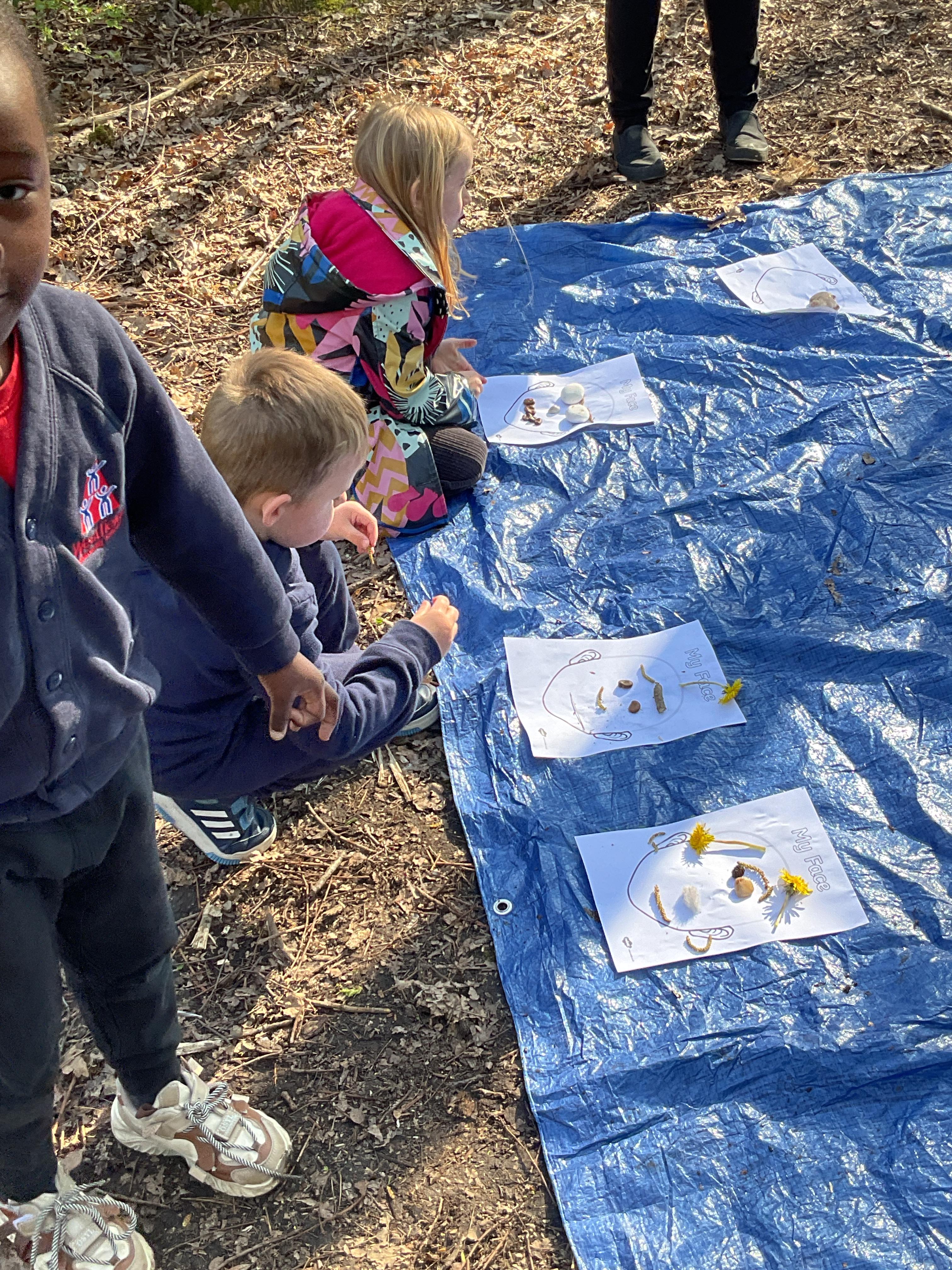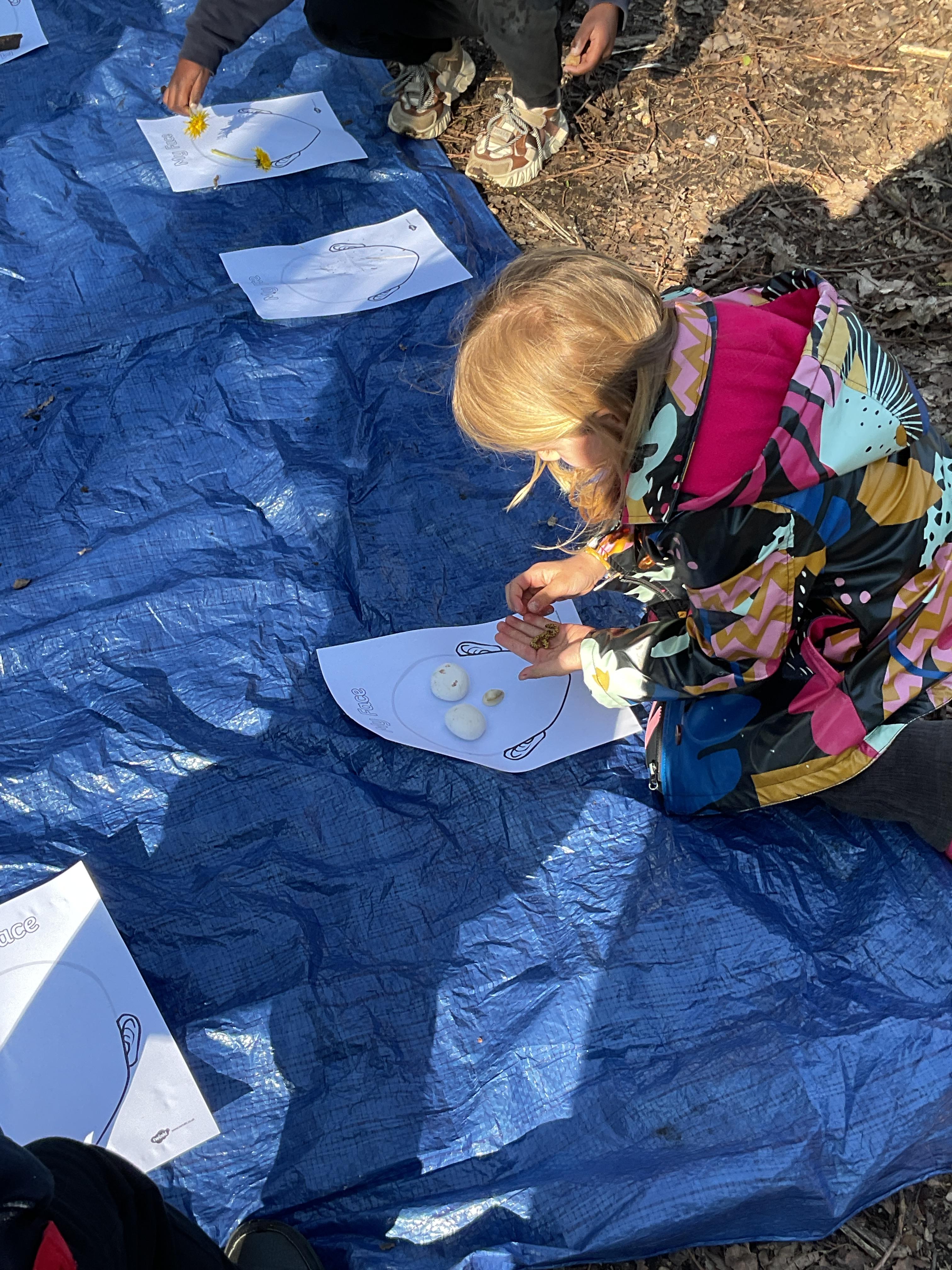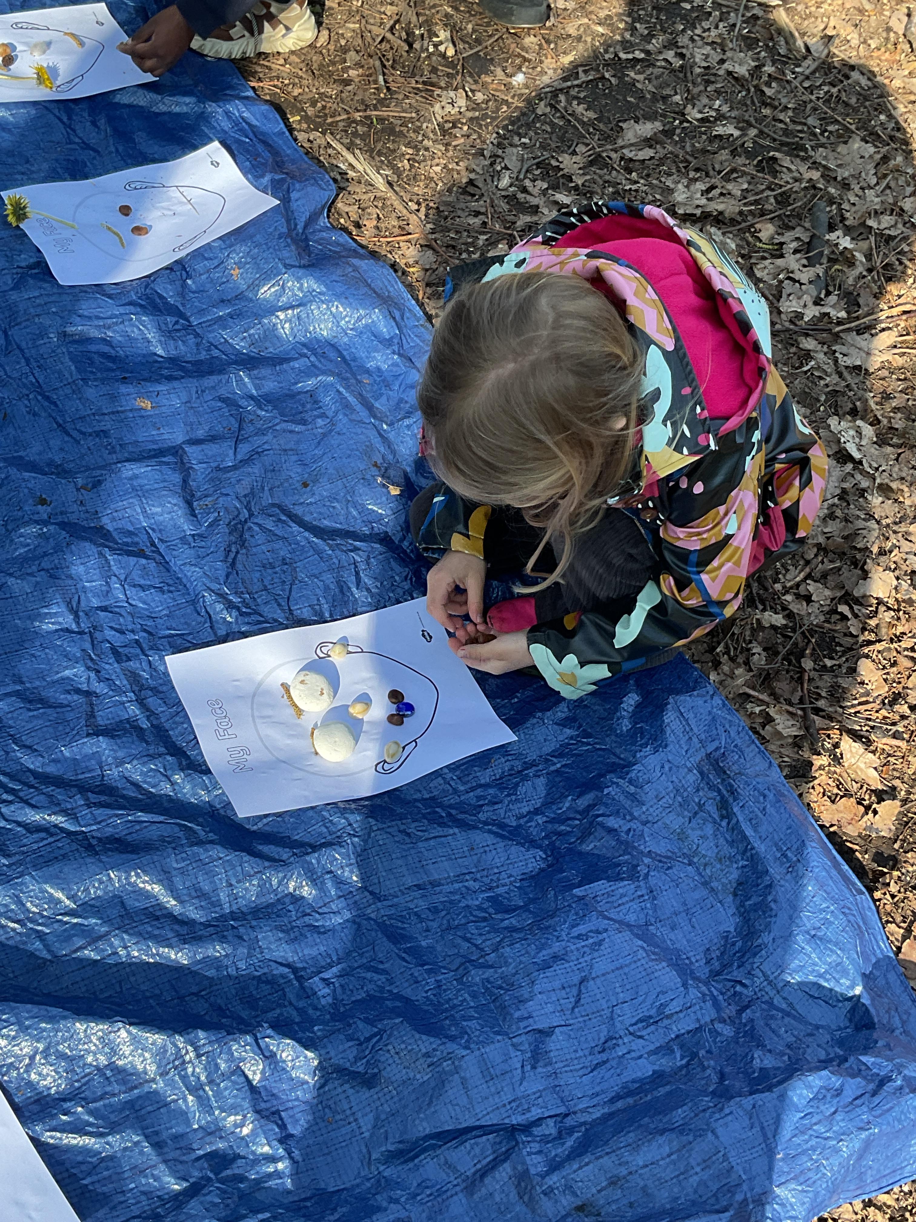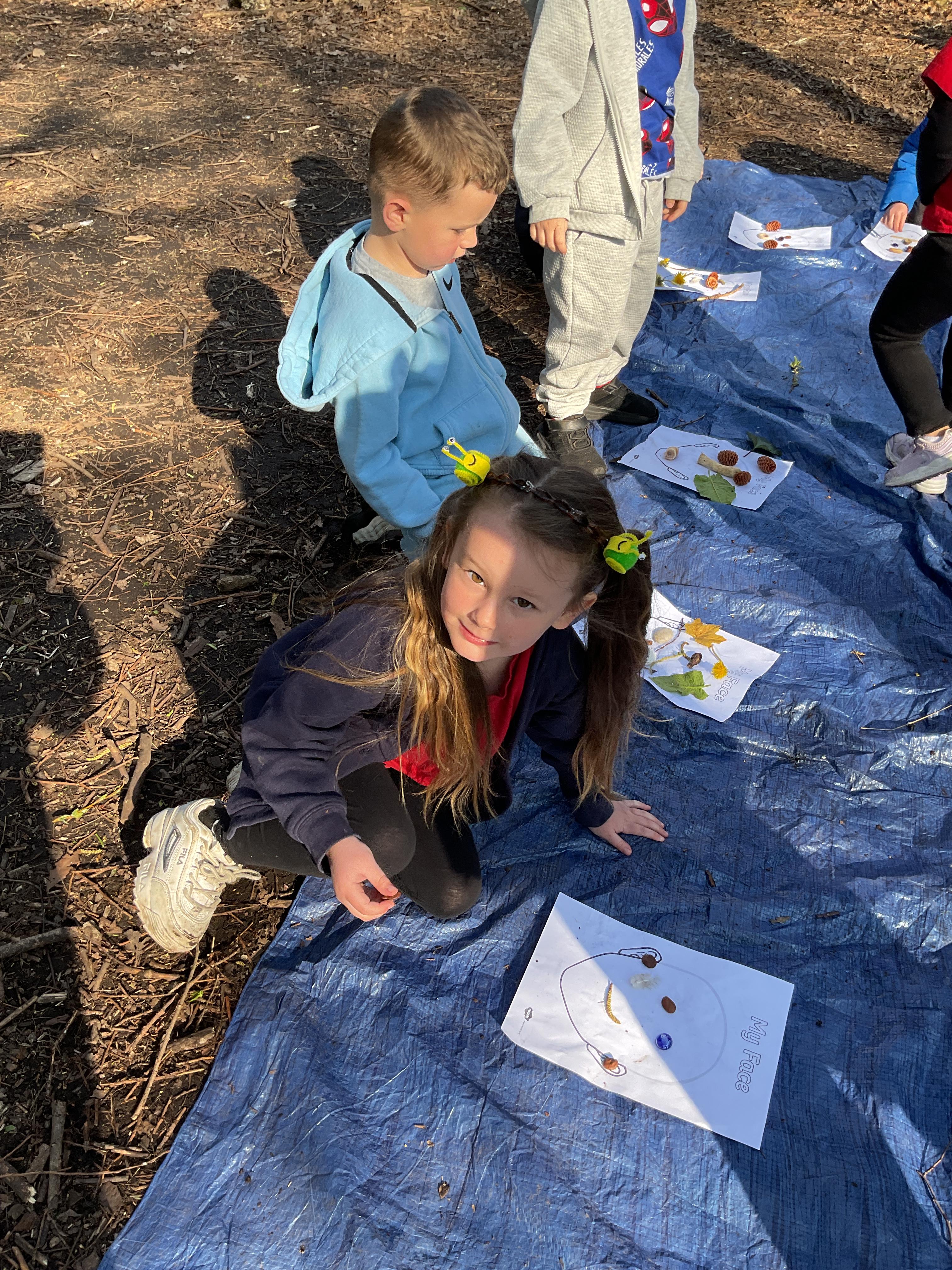 If that wasn't enough excitement we went out onto the ALPS for the second time. We had a great time in the sunshine. Once again we had our story and our snack outside in the fresh air and used lots of natural materials to help us create self portraits. Take a look at these amazing efforts. We truly are a creative bunch!