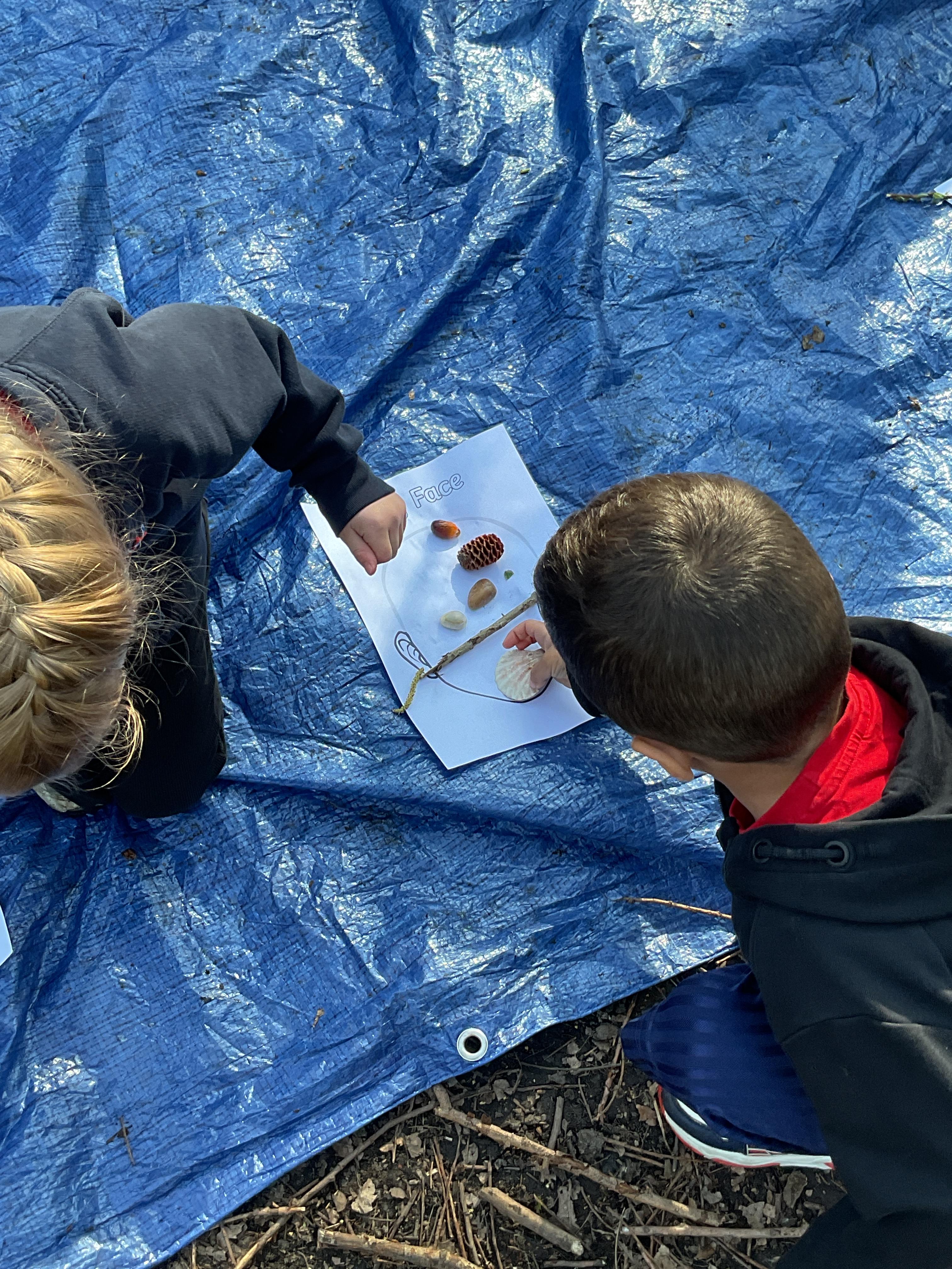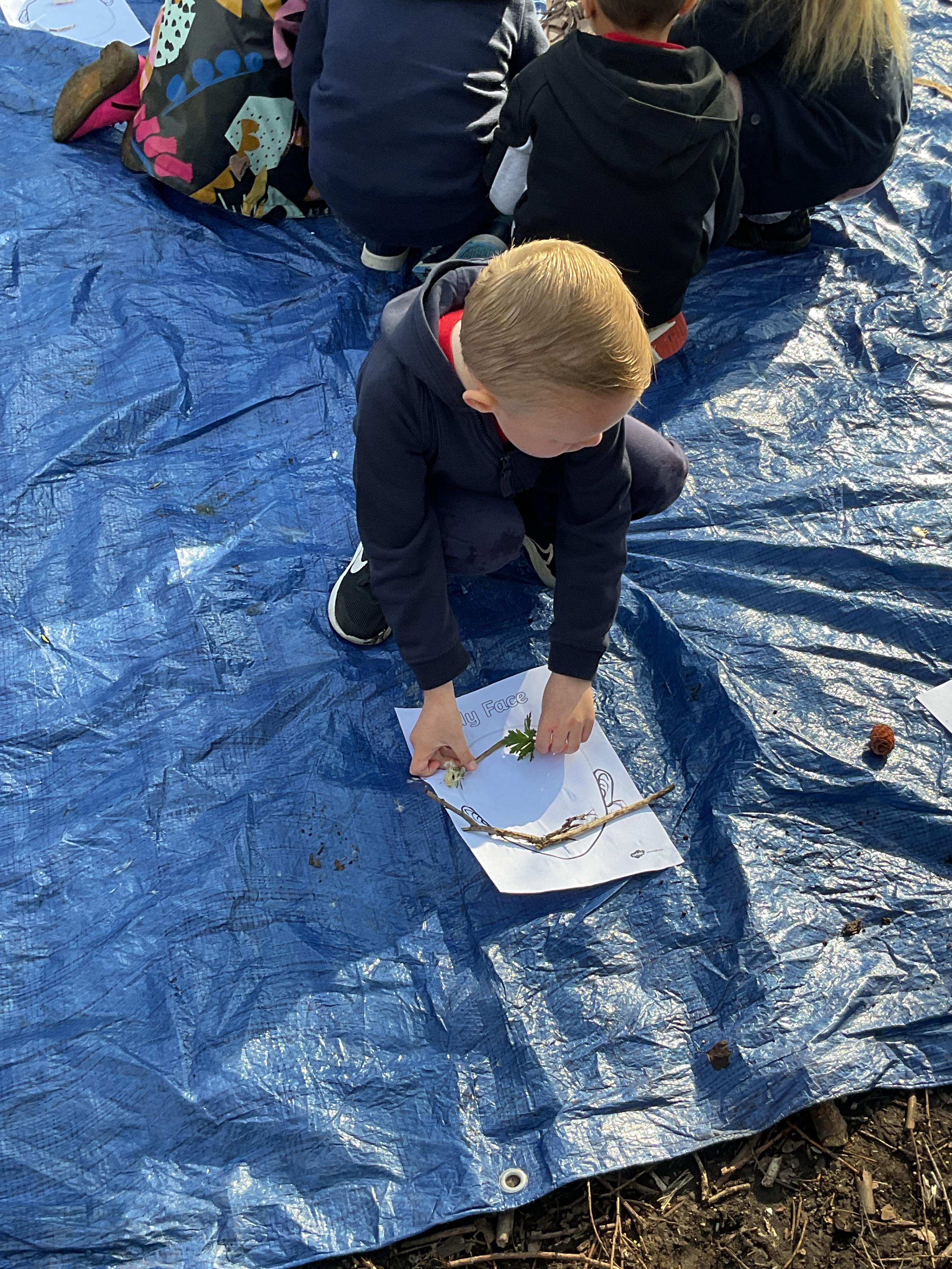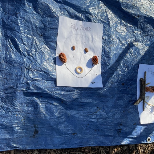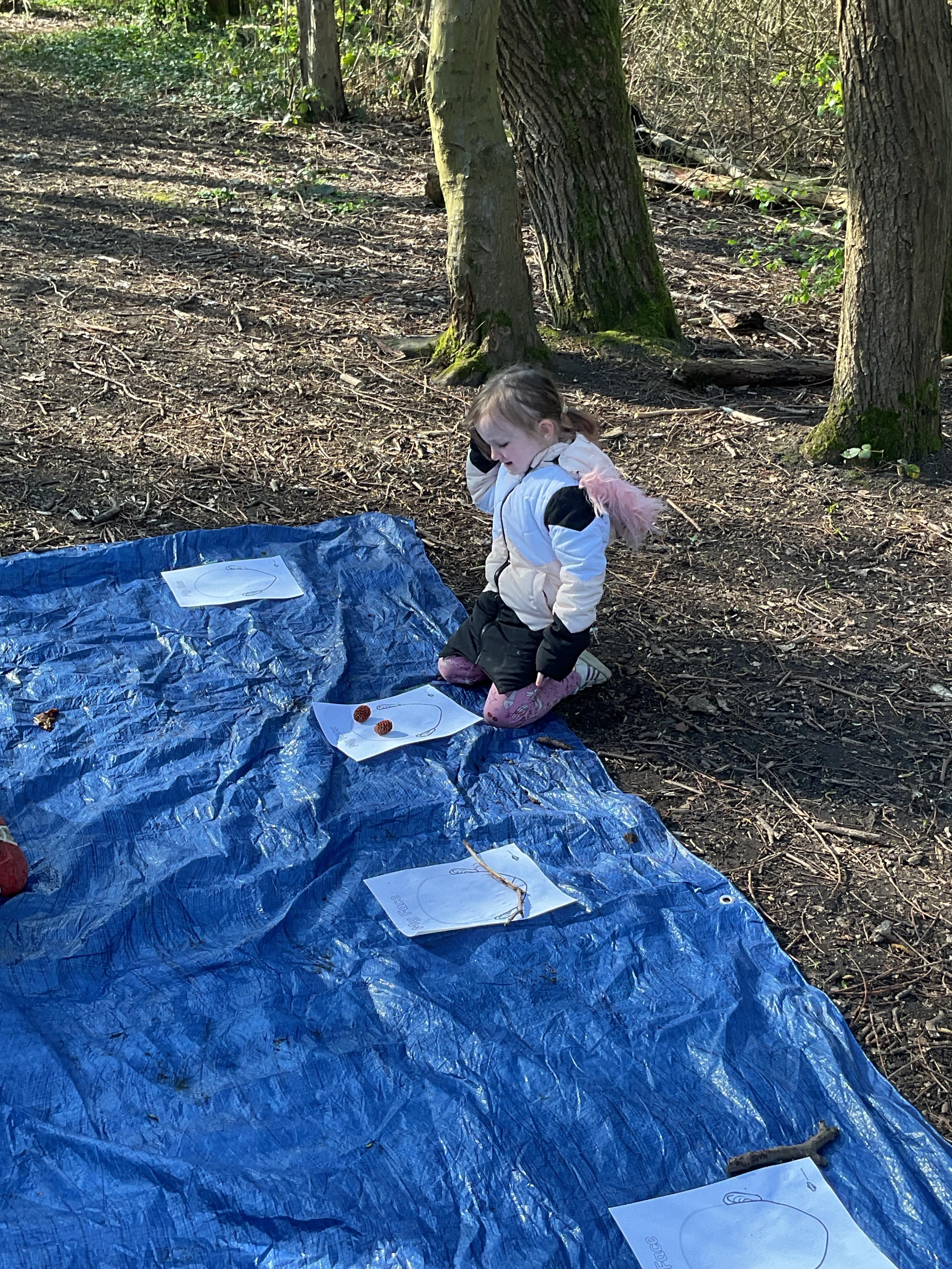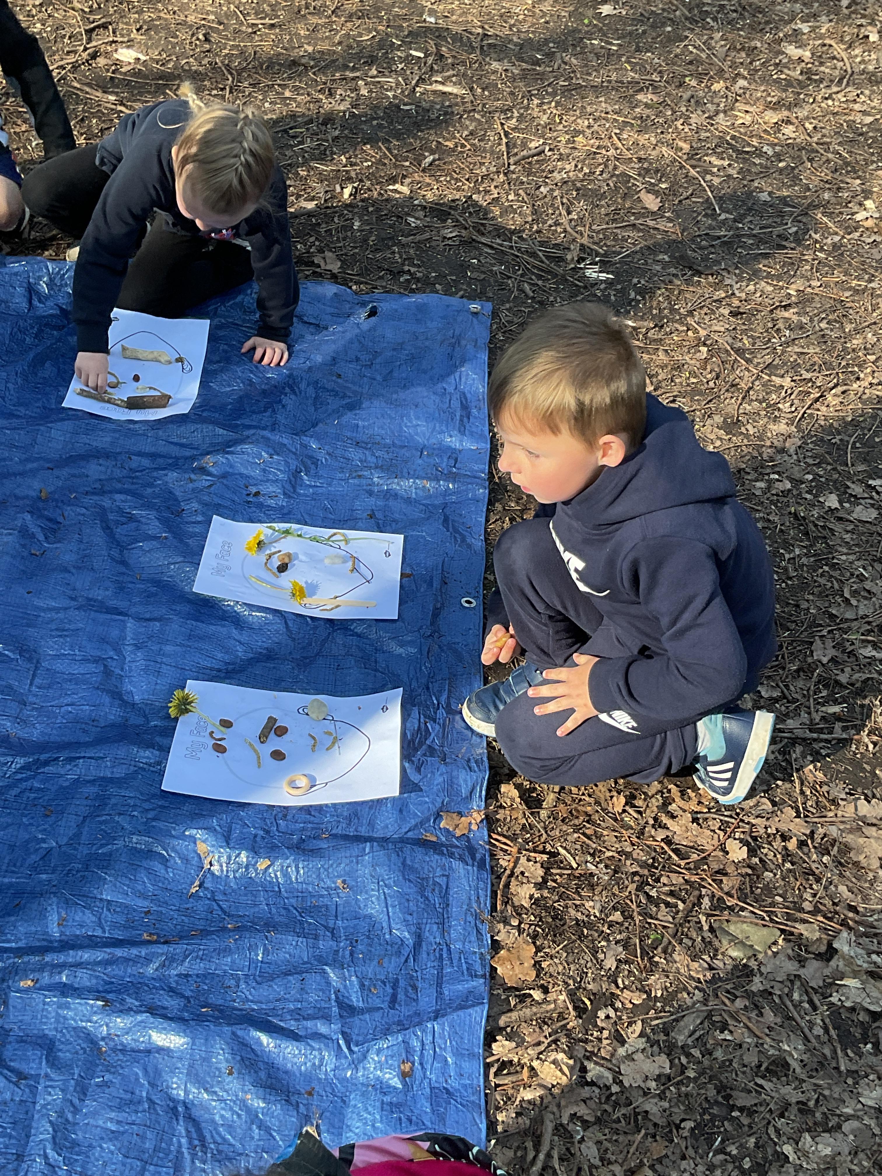 If that wasn't enough excitement we went out onto the ALPS for the second time. We had a great time in the sunshine. Once again we had our story and our snack outside in the fresh air and used lots of natural materials to help us create self portraits. Take a look at these amazing efforts. We truly are a creative bunch!