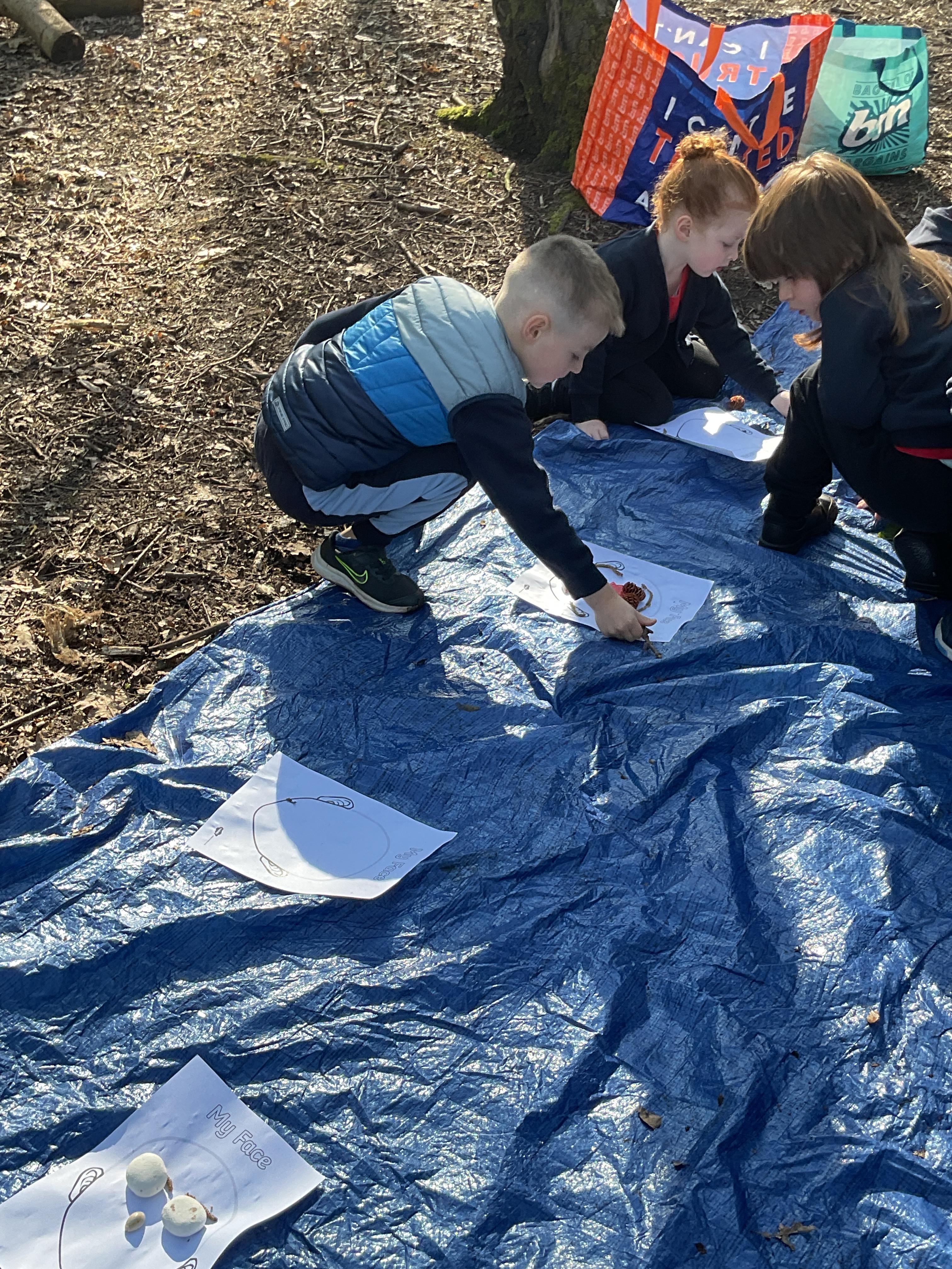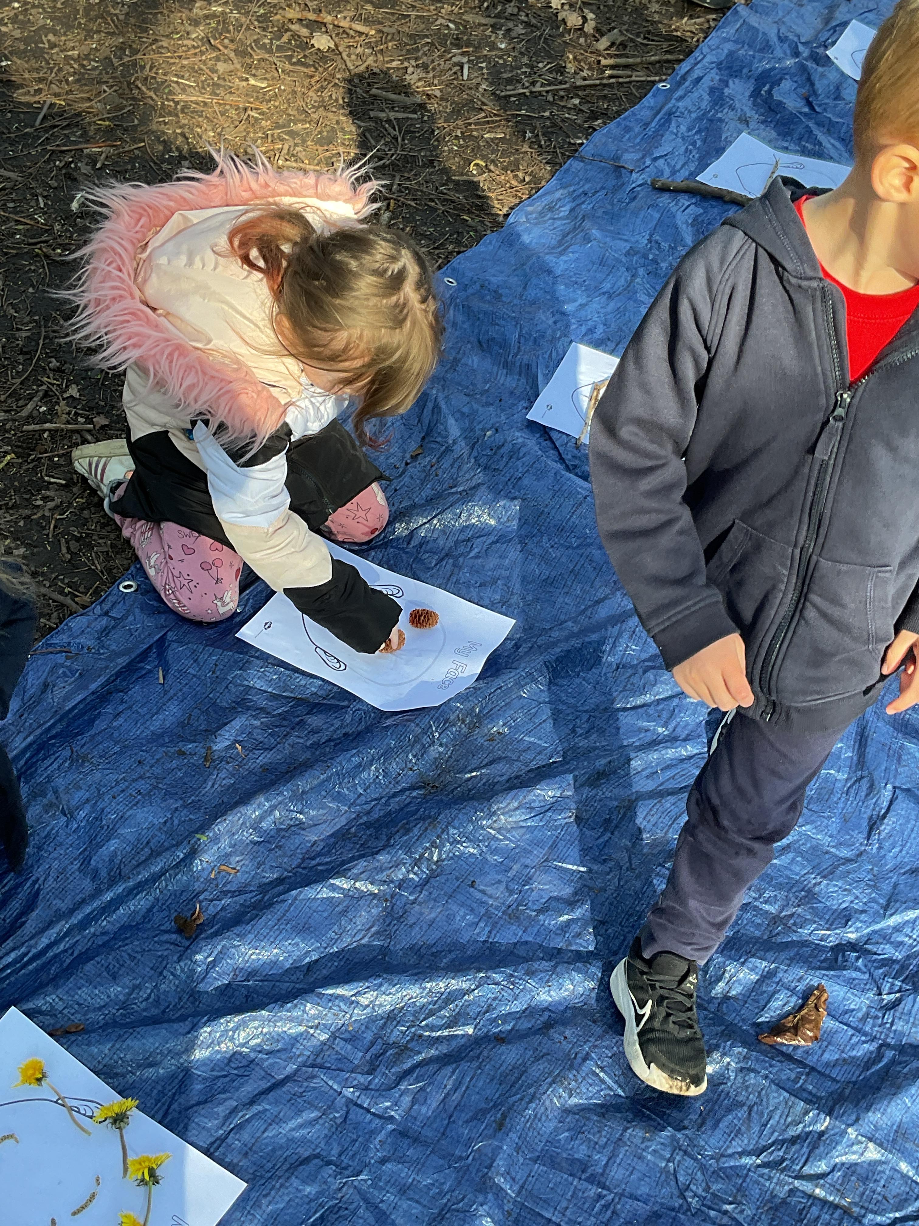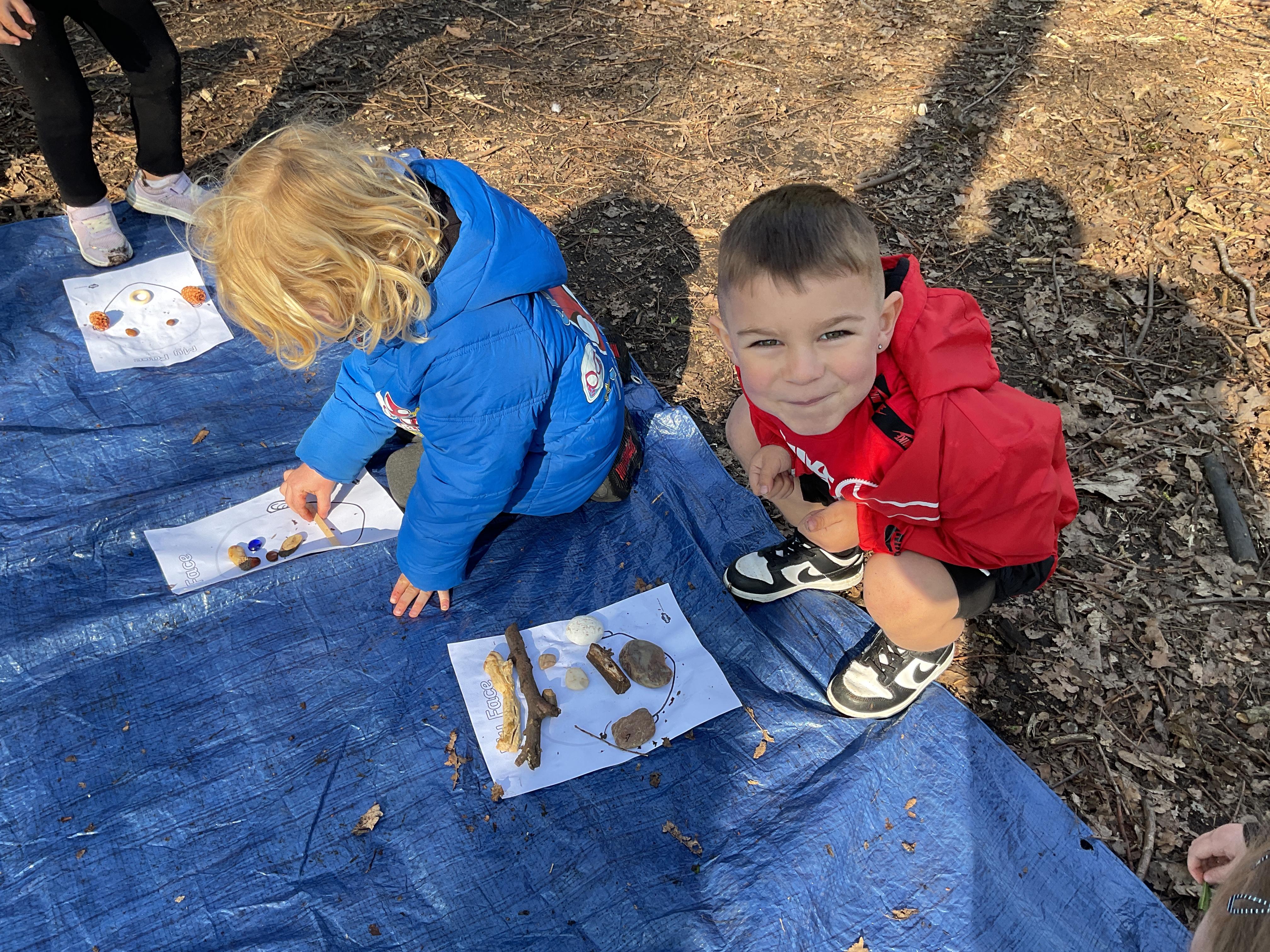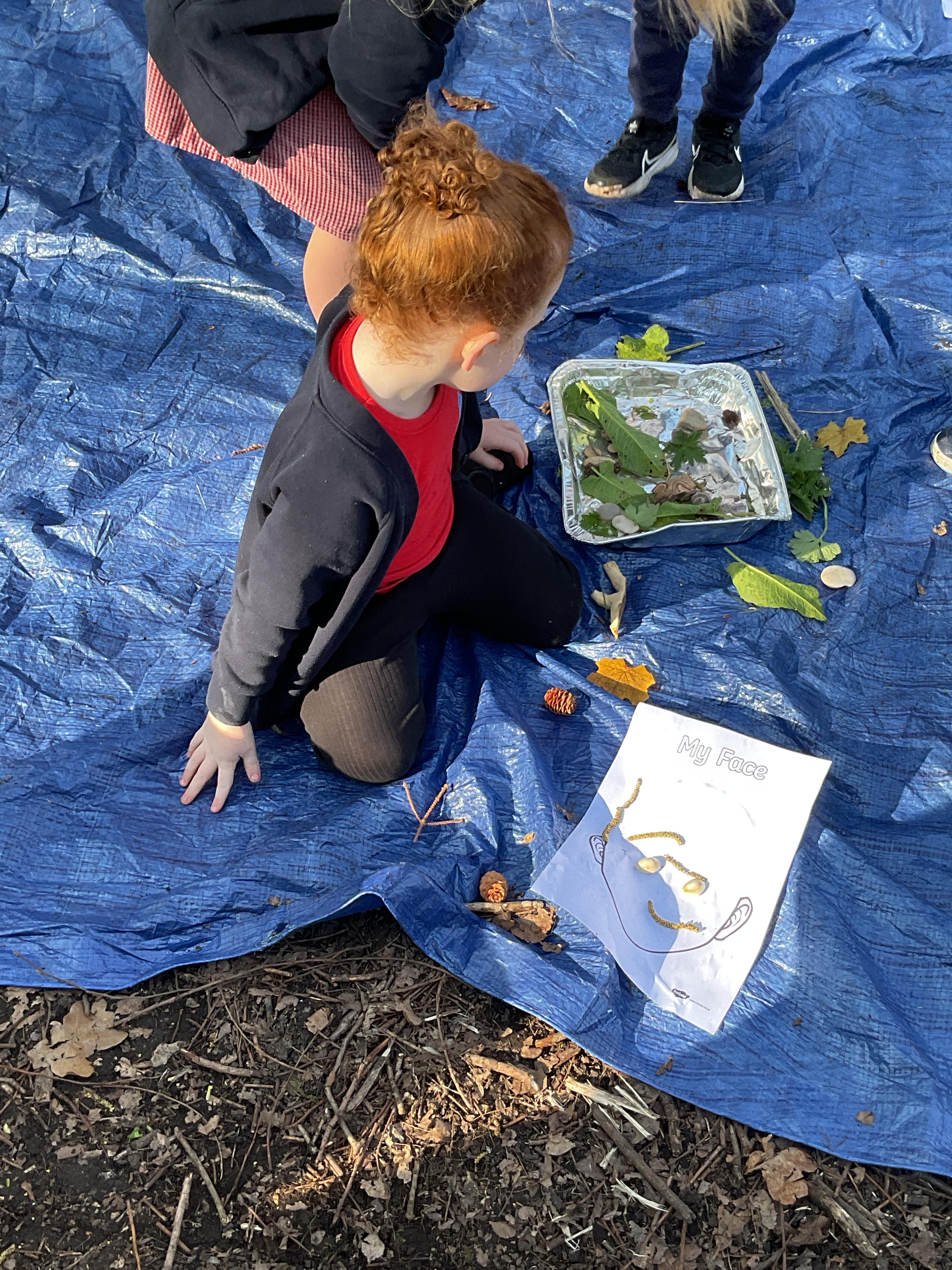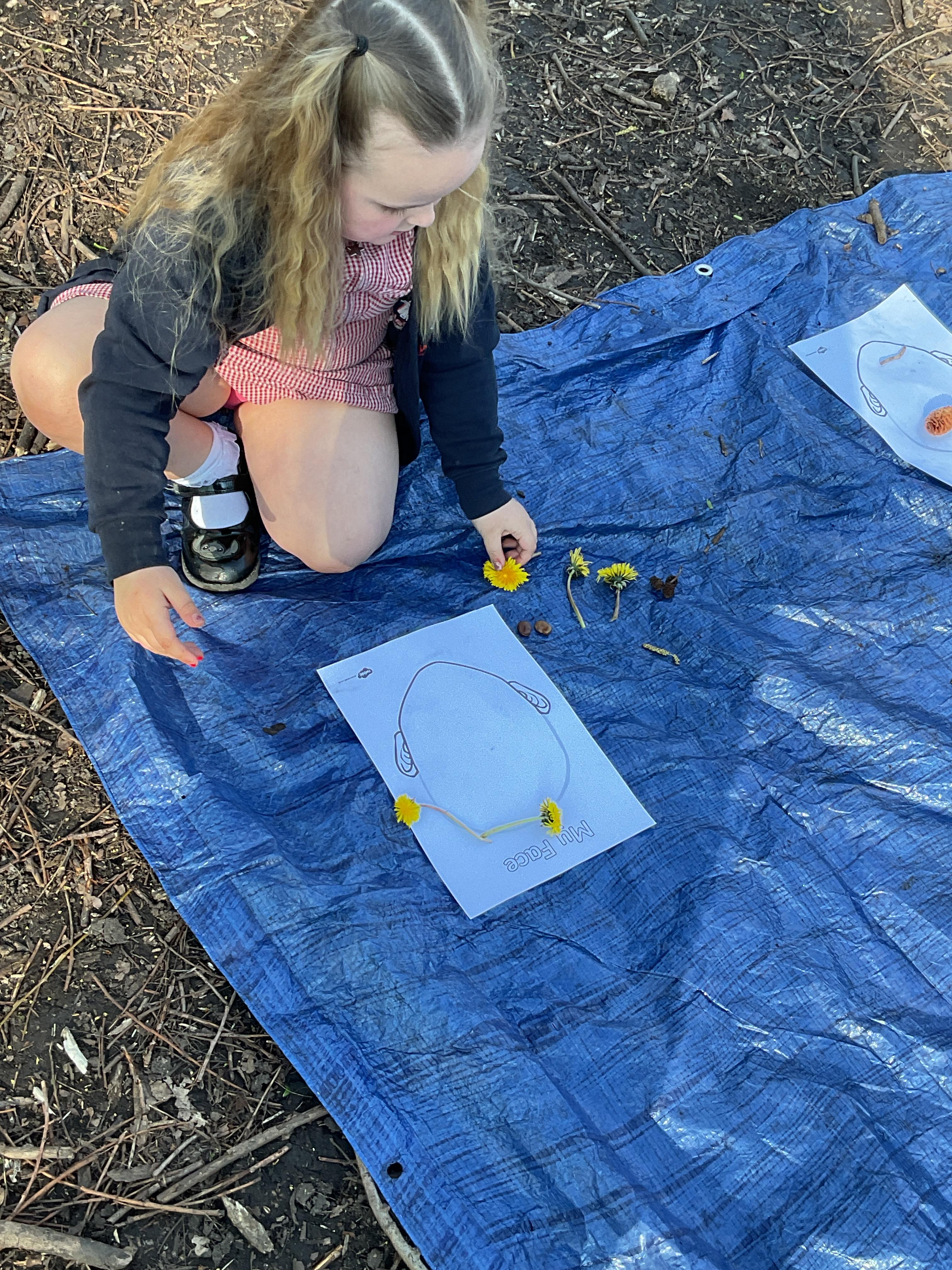 If that wasn't enough excitement we went out onto the ALPS for the second time. We had a great time in the sunshine. Once again we had our story and our snack outside in the fresh air and used lots of natural materials to help us create self portraits. Take a look at these amazing efforts. We truly are a creative bunch!
