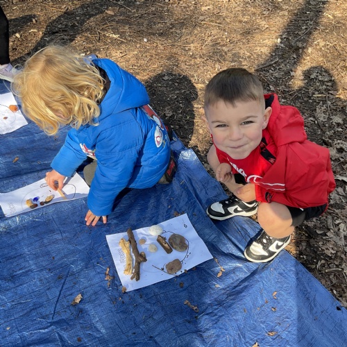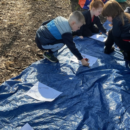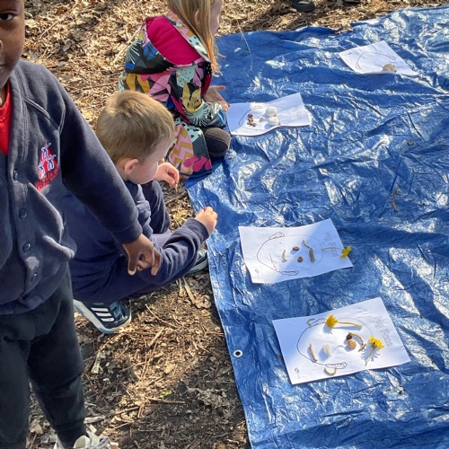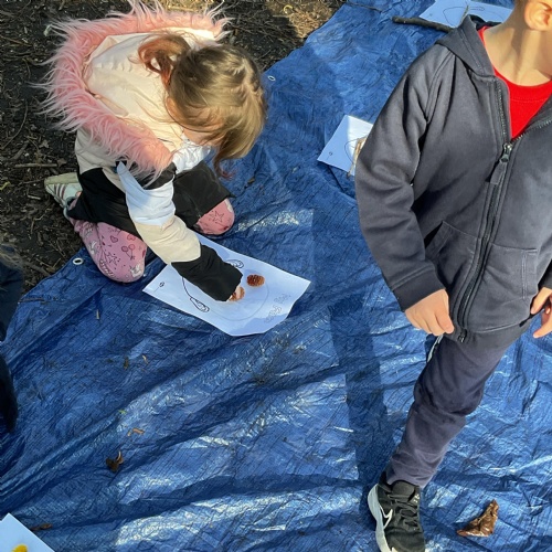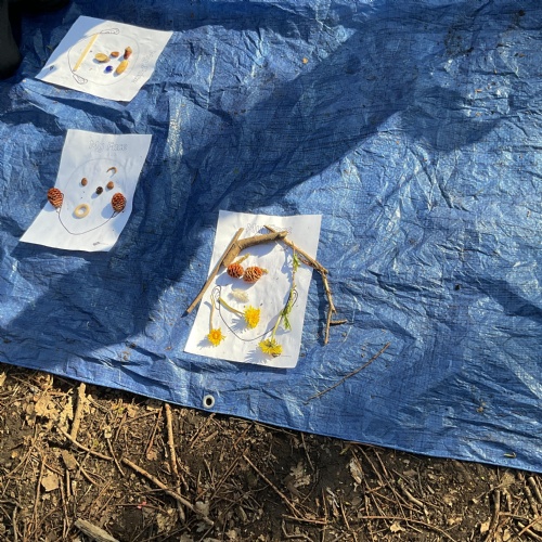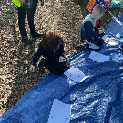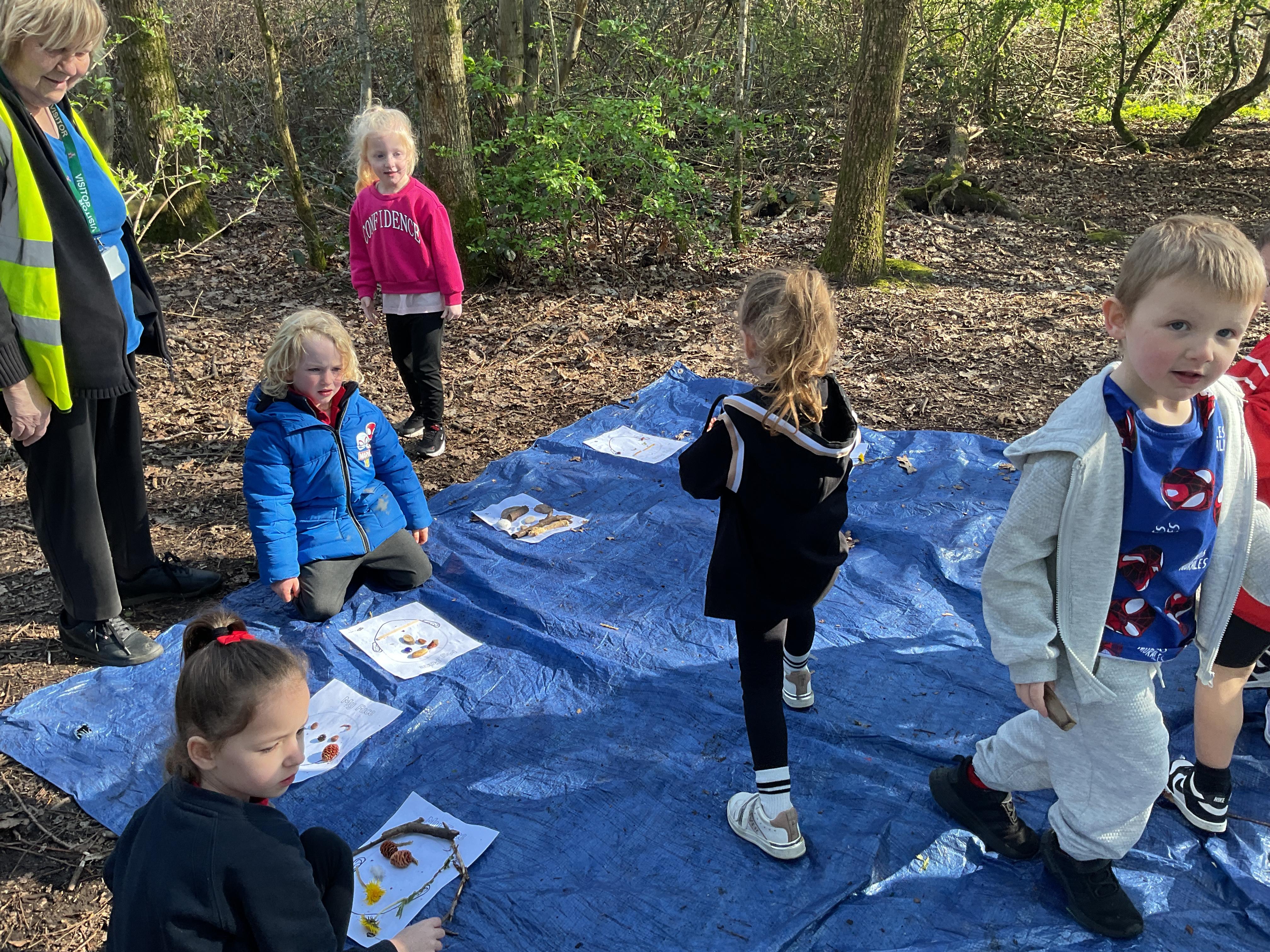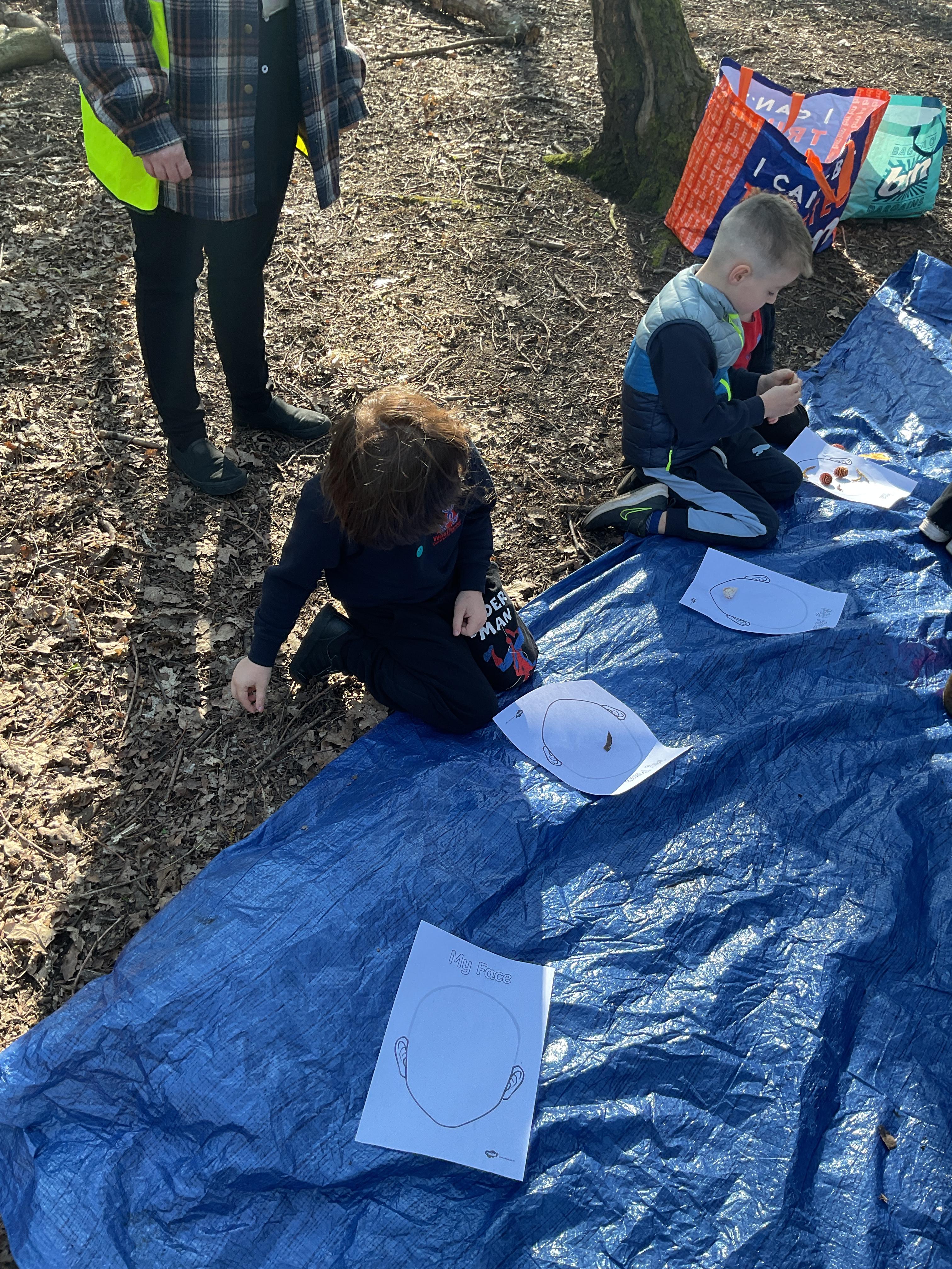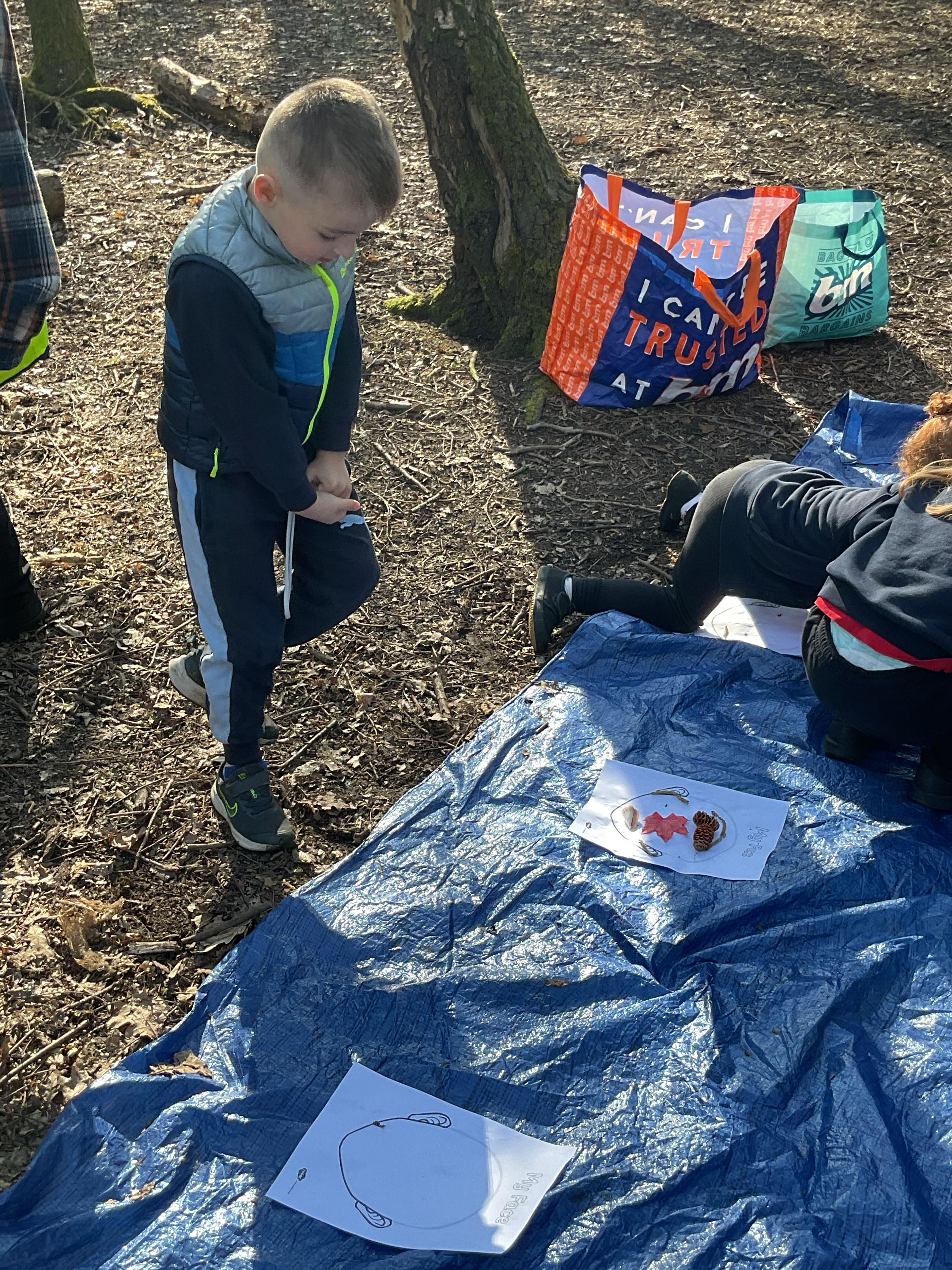 If that wasn't enough excitement we went out onto the ALPS for the second time. We had a great time in the sunshine. Once again we had our story and our snack outside in the fresh air and used lots of natural materials to help us create self portraits. Take a look at these amazing efforts. We truly are a creative bunch!