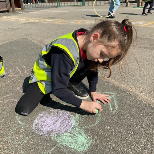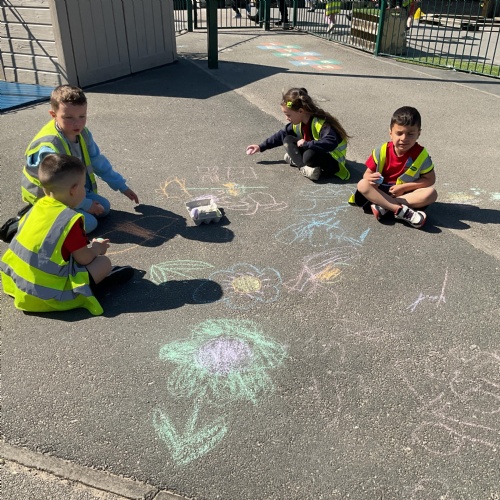 And finally we took our creativity outdoors in the sunshine. We recorded all of the things that we have learned about Growth. We wrote words, drew pictures, shared our knowledge with each other and enjoyed the heat on our backs. Here we are embracing our knowledge