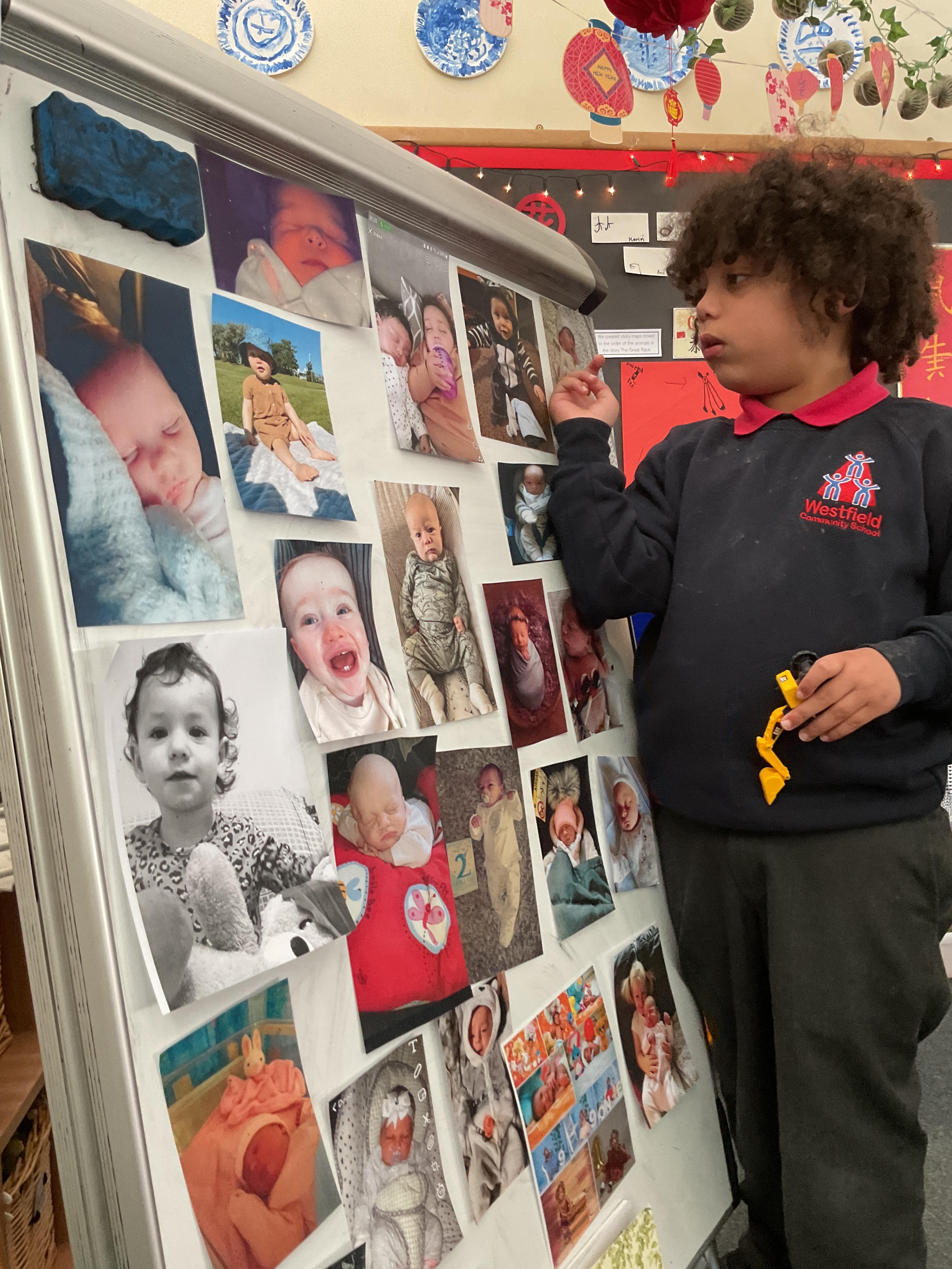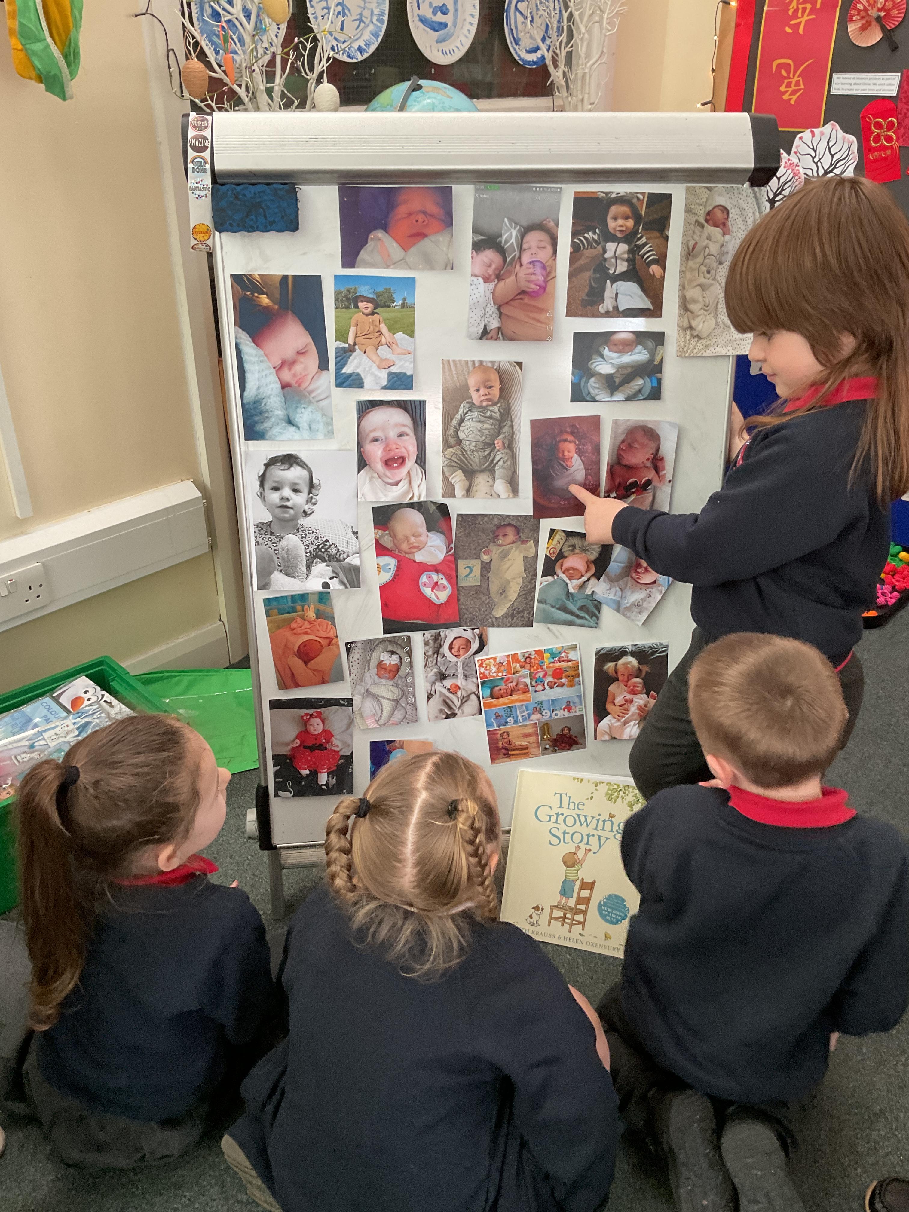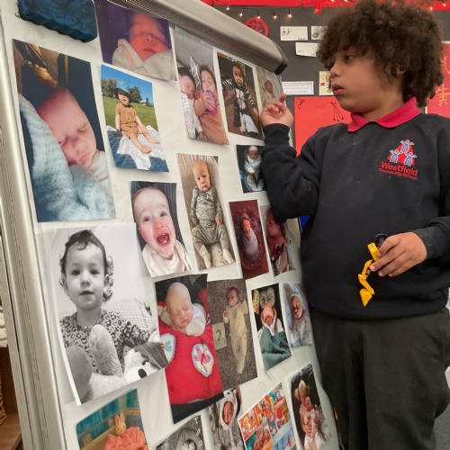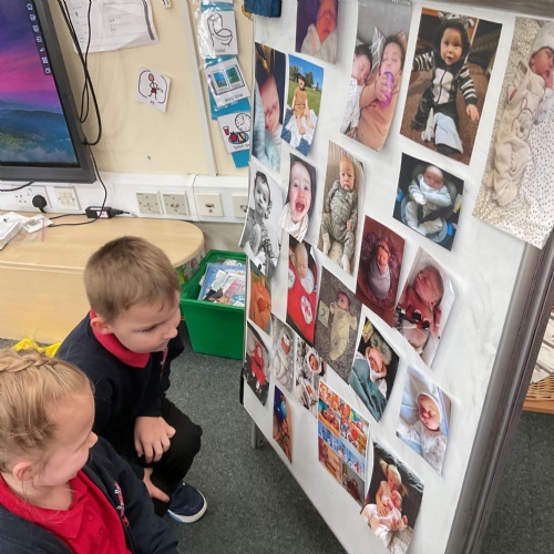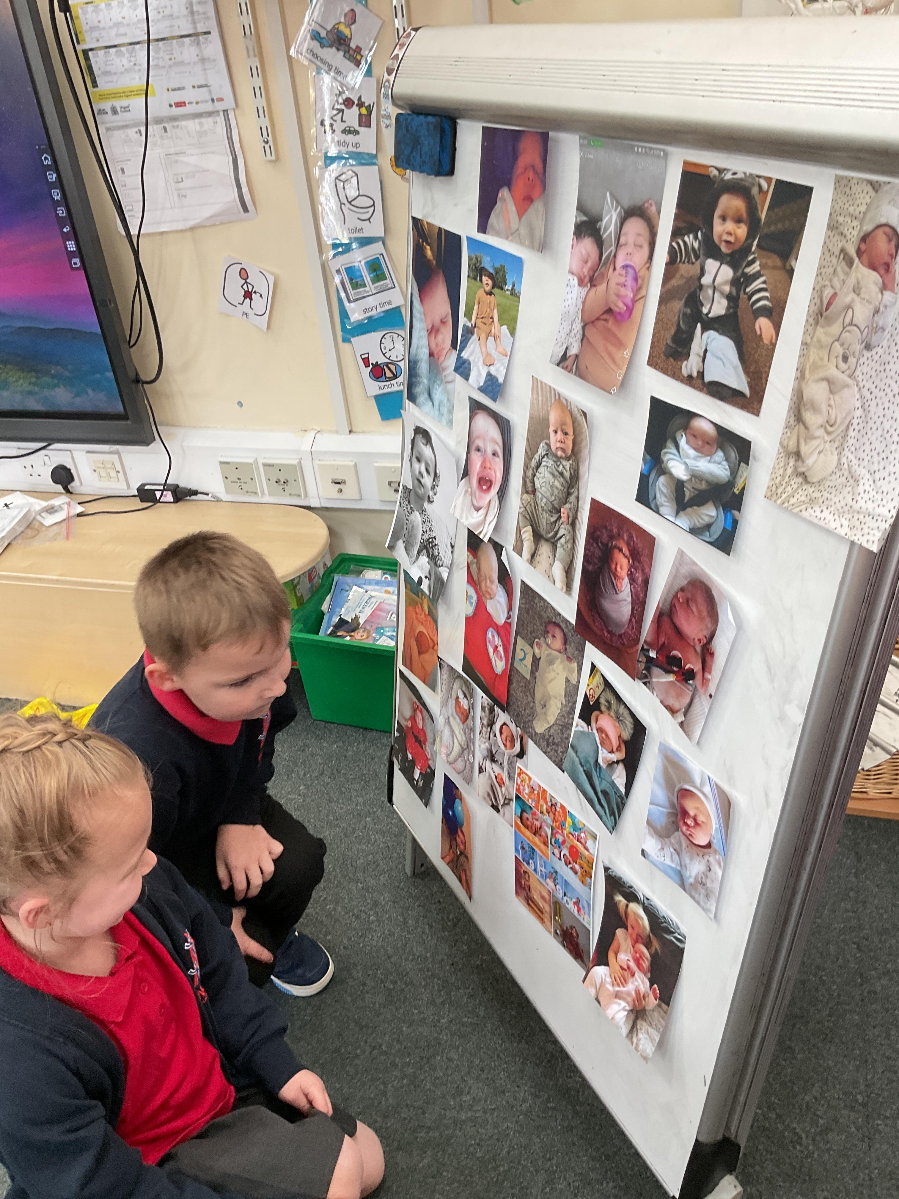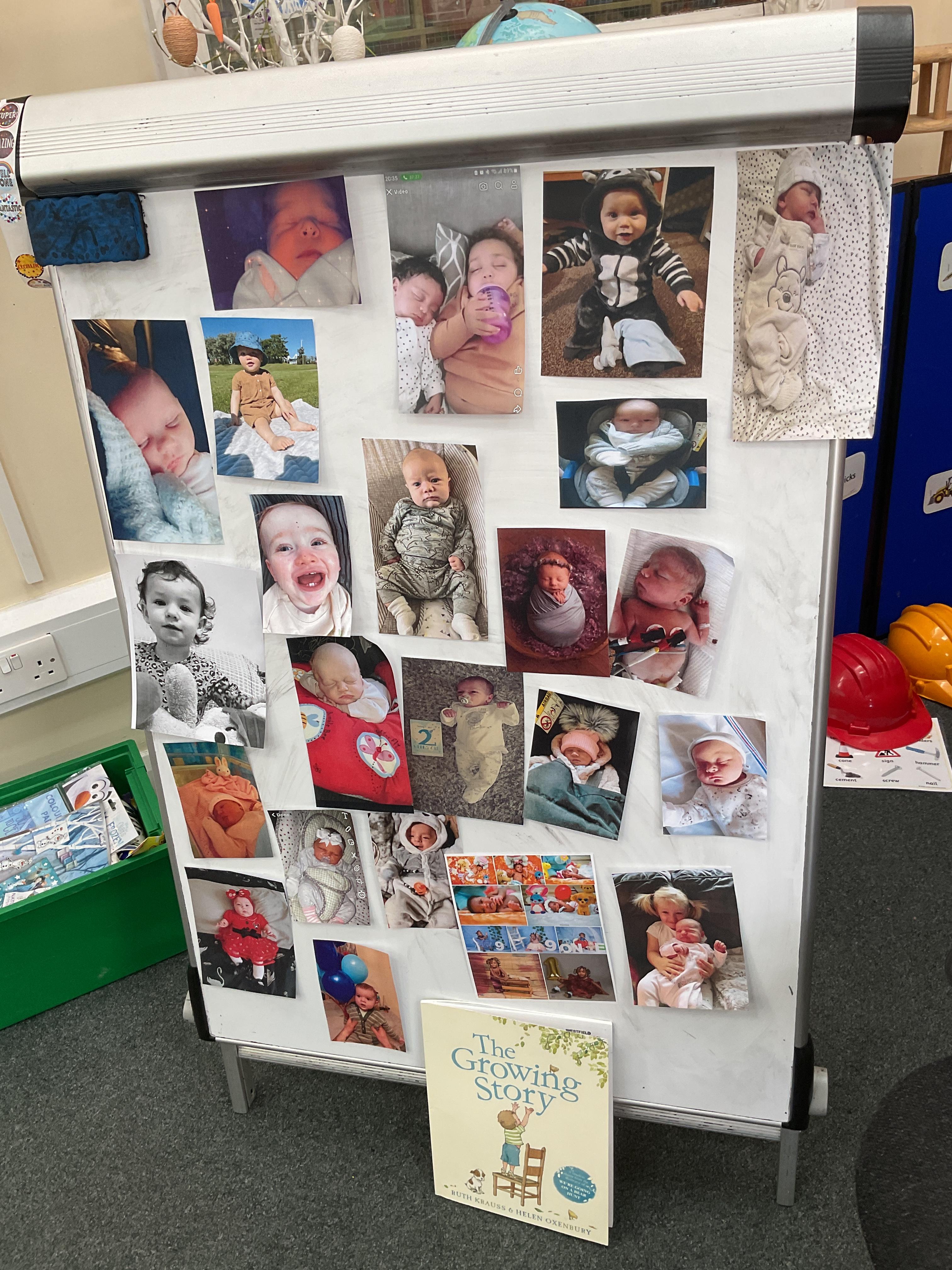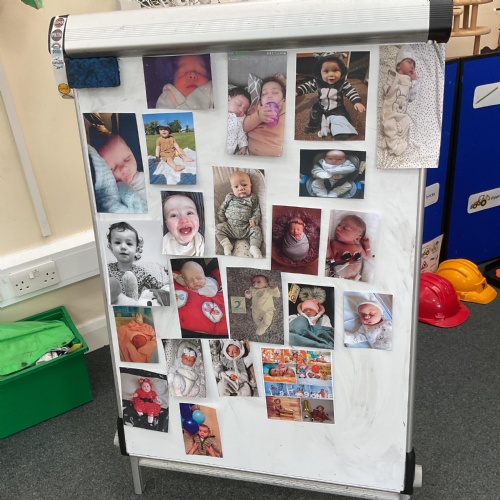 On Monday we looked at the photographs kindly sent in of the children as babies. We displayed them on the board and encouraged the children to come and look at them and make guesses as to who they thought they were. We absolutely loved this activity and the children took great delight in sharing and talking about their baby pictures ![]()