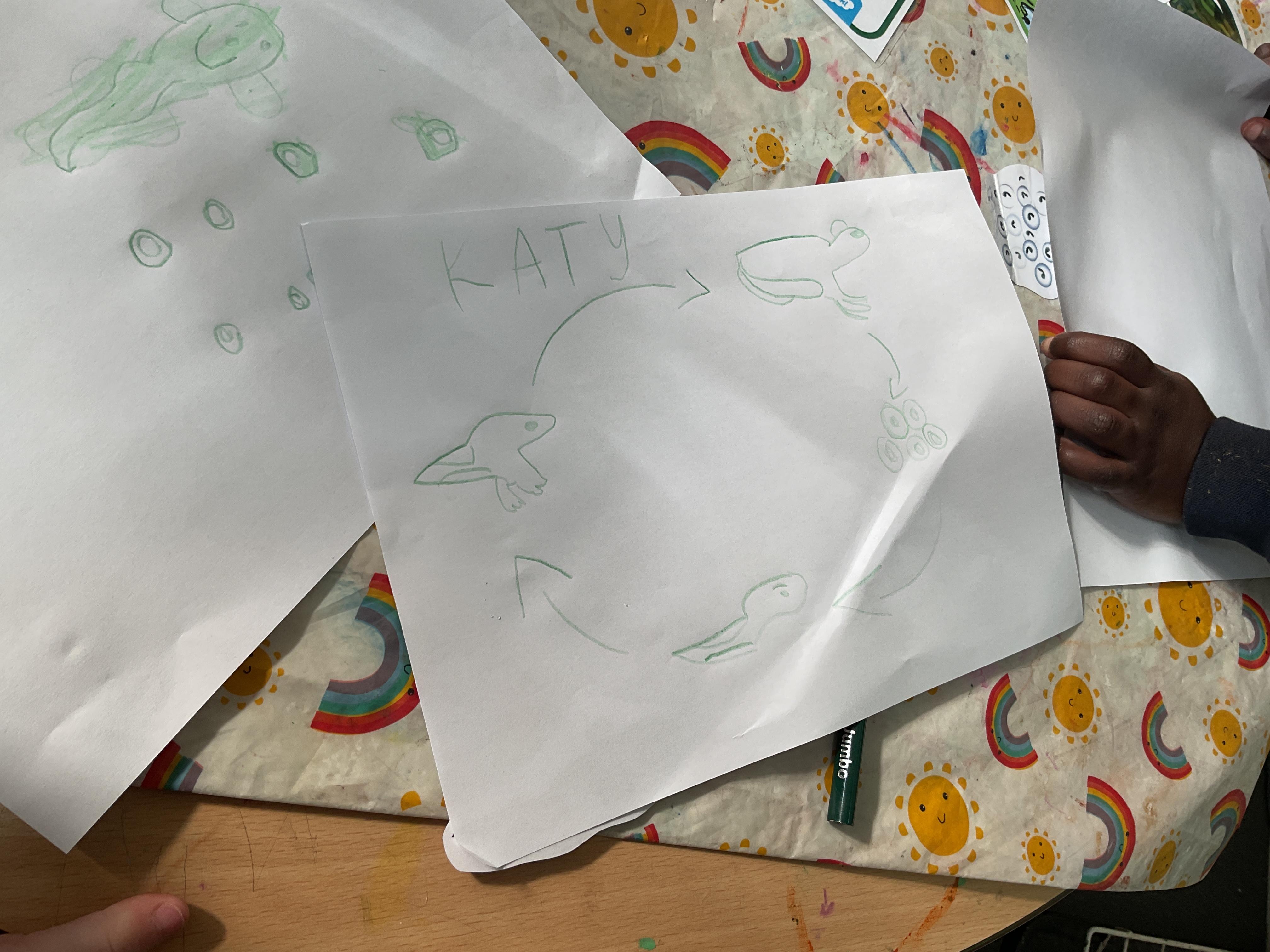 Prior to our trip we looked at life cycles. We talked about how tadpoles evolve into frogs and learned some new language such as froglet. We took the time to find out information, create diagrams and look at the stages of change. Fascinating!