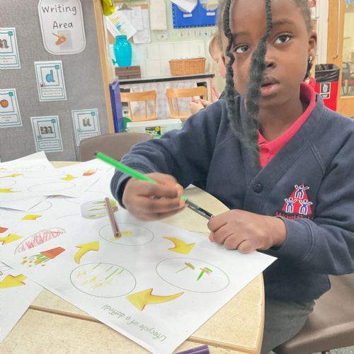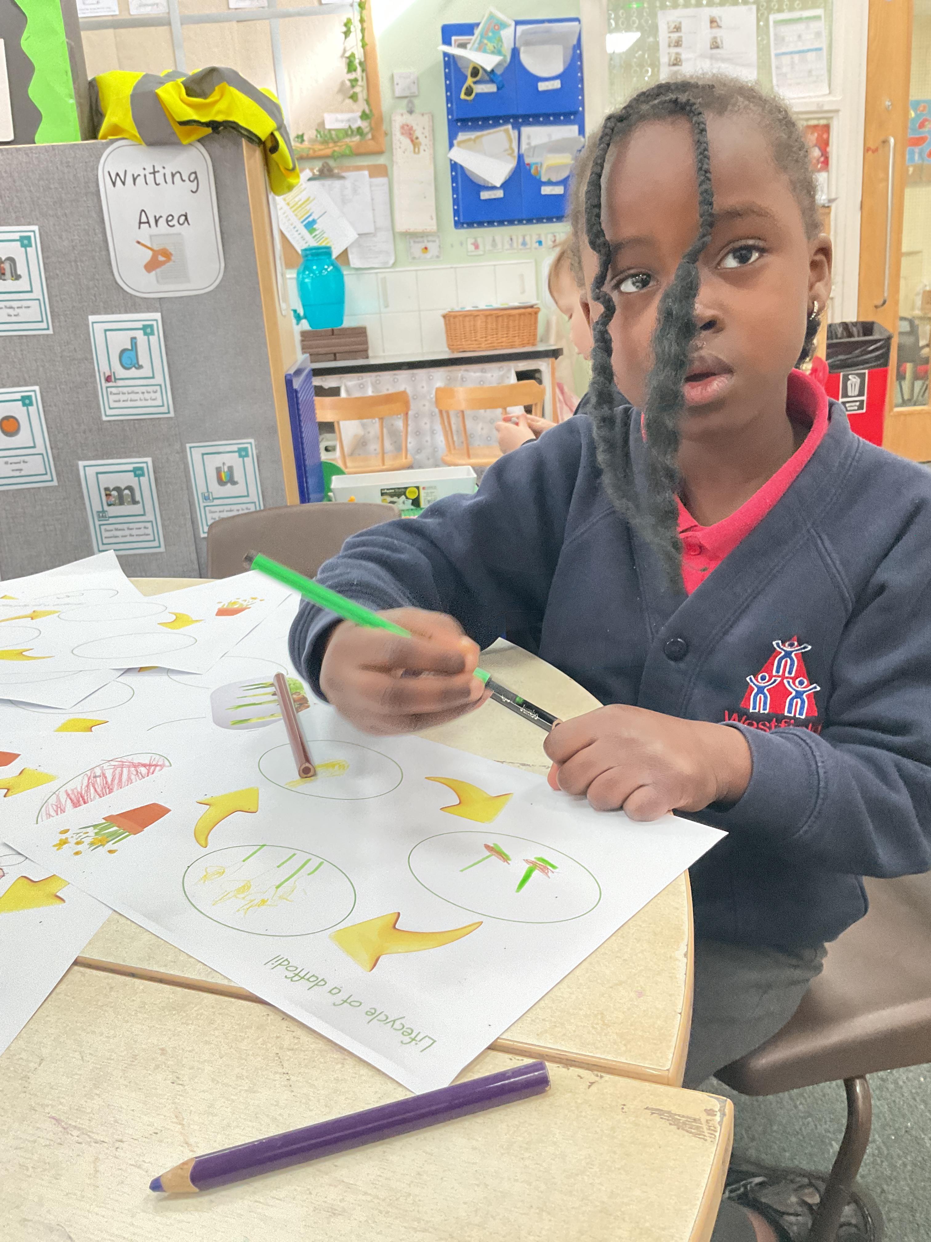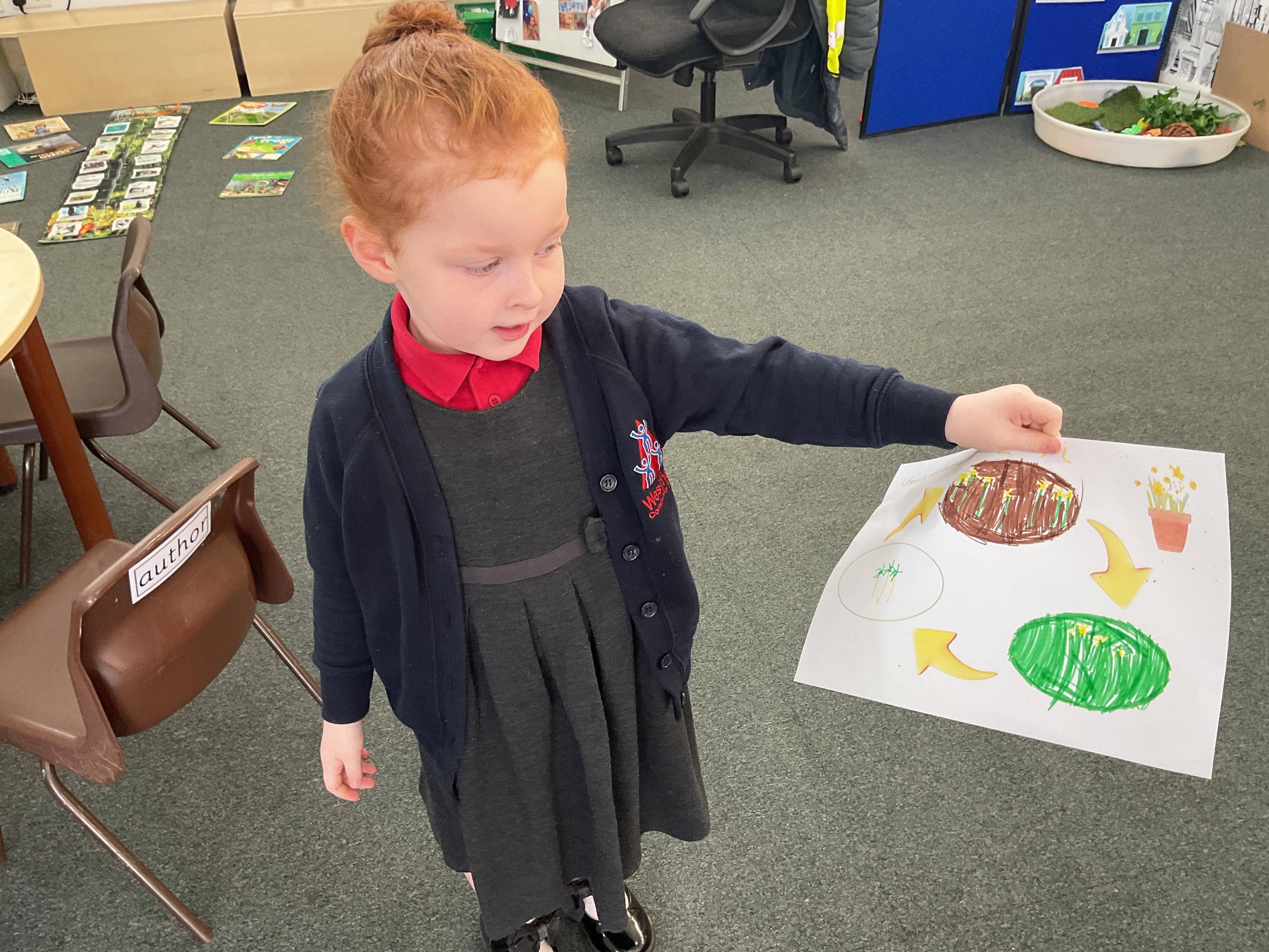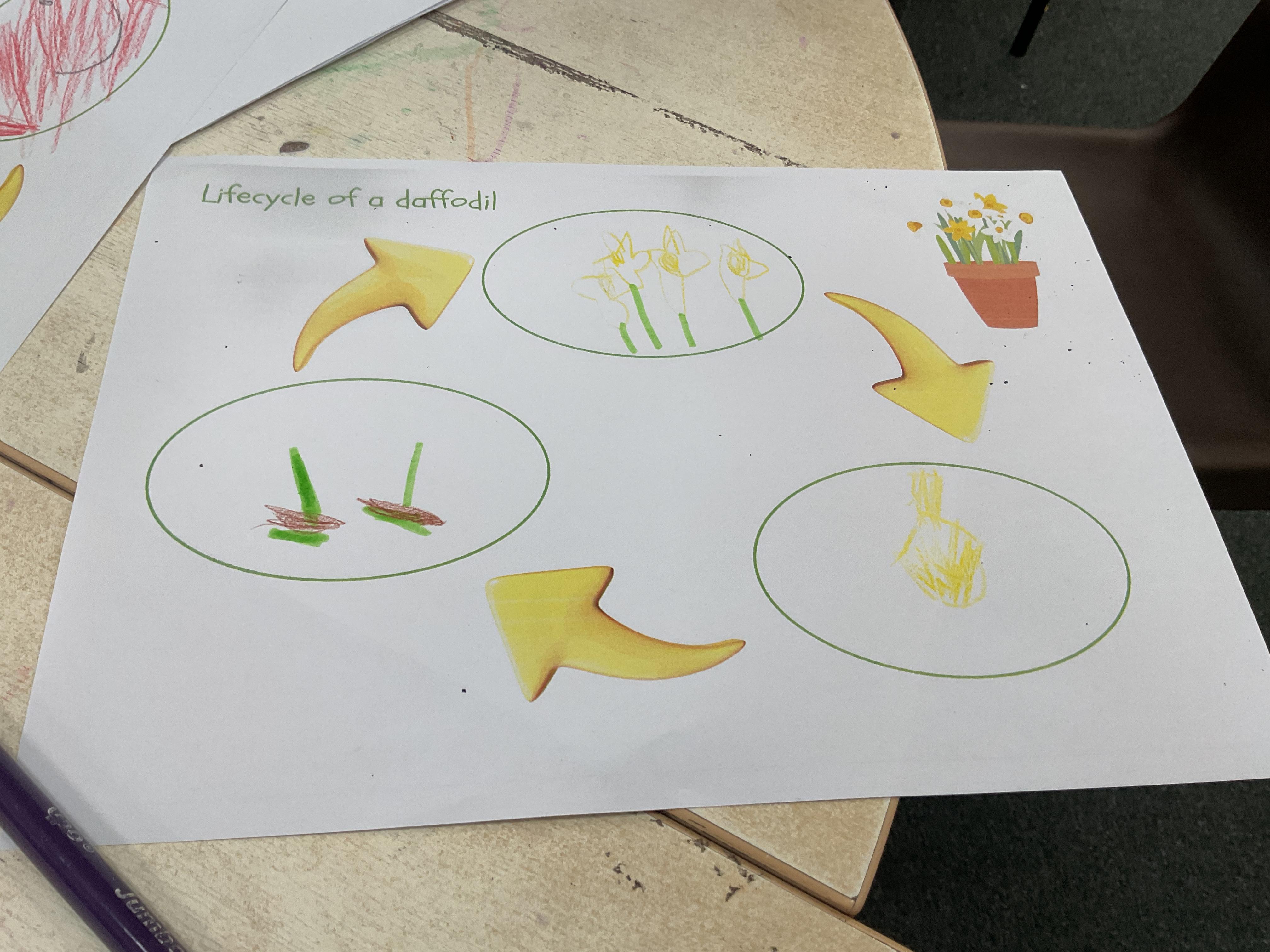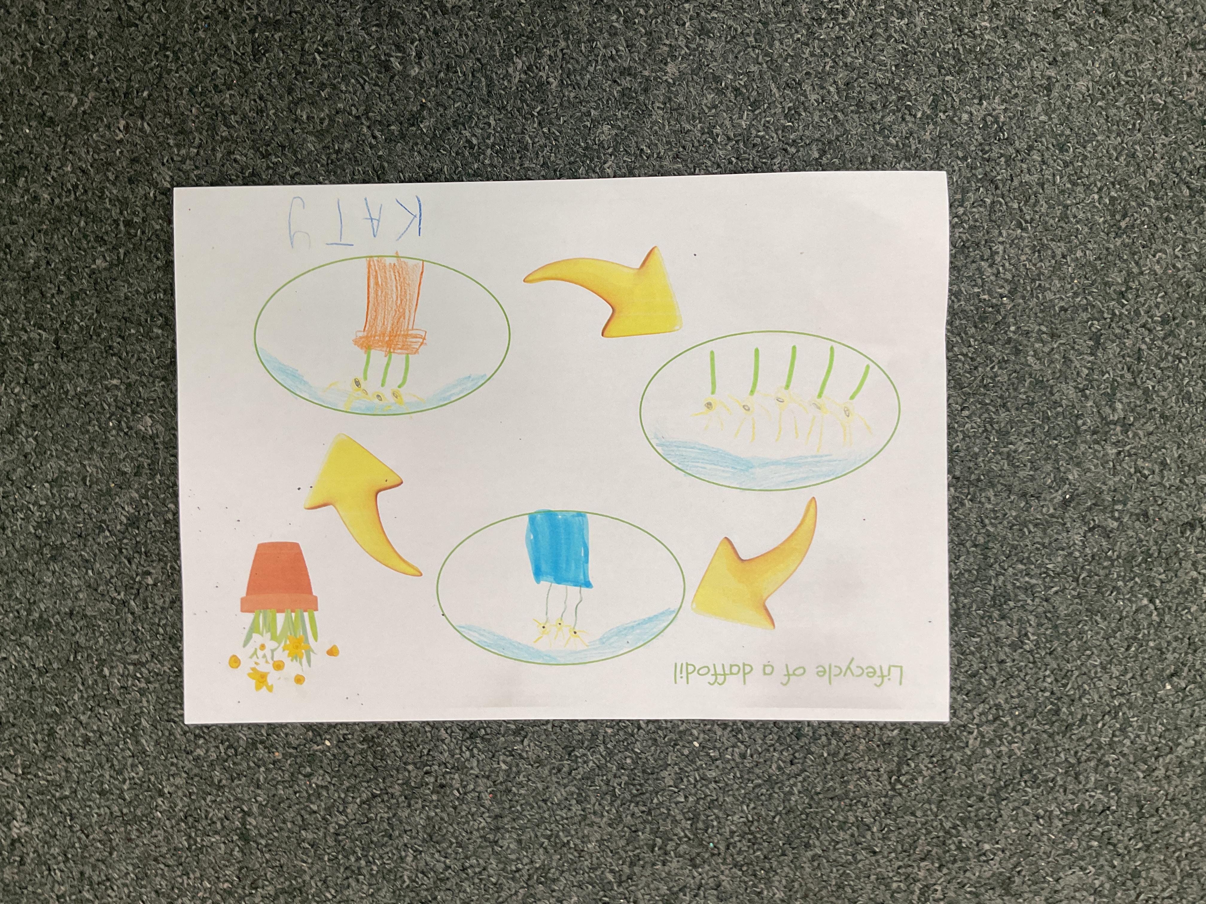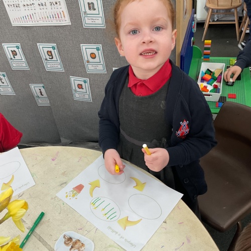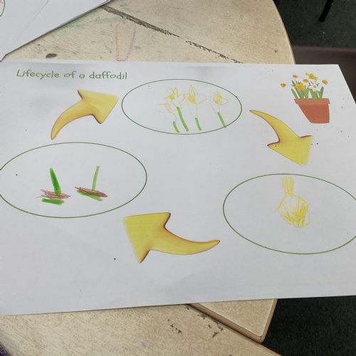 We also looked at how daffodils change and how bulbs are planted, shoots grow up, roots grow down and how the petals change and grow from a bud. Take a look at some of the lovely work we completed ![]()