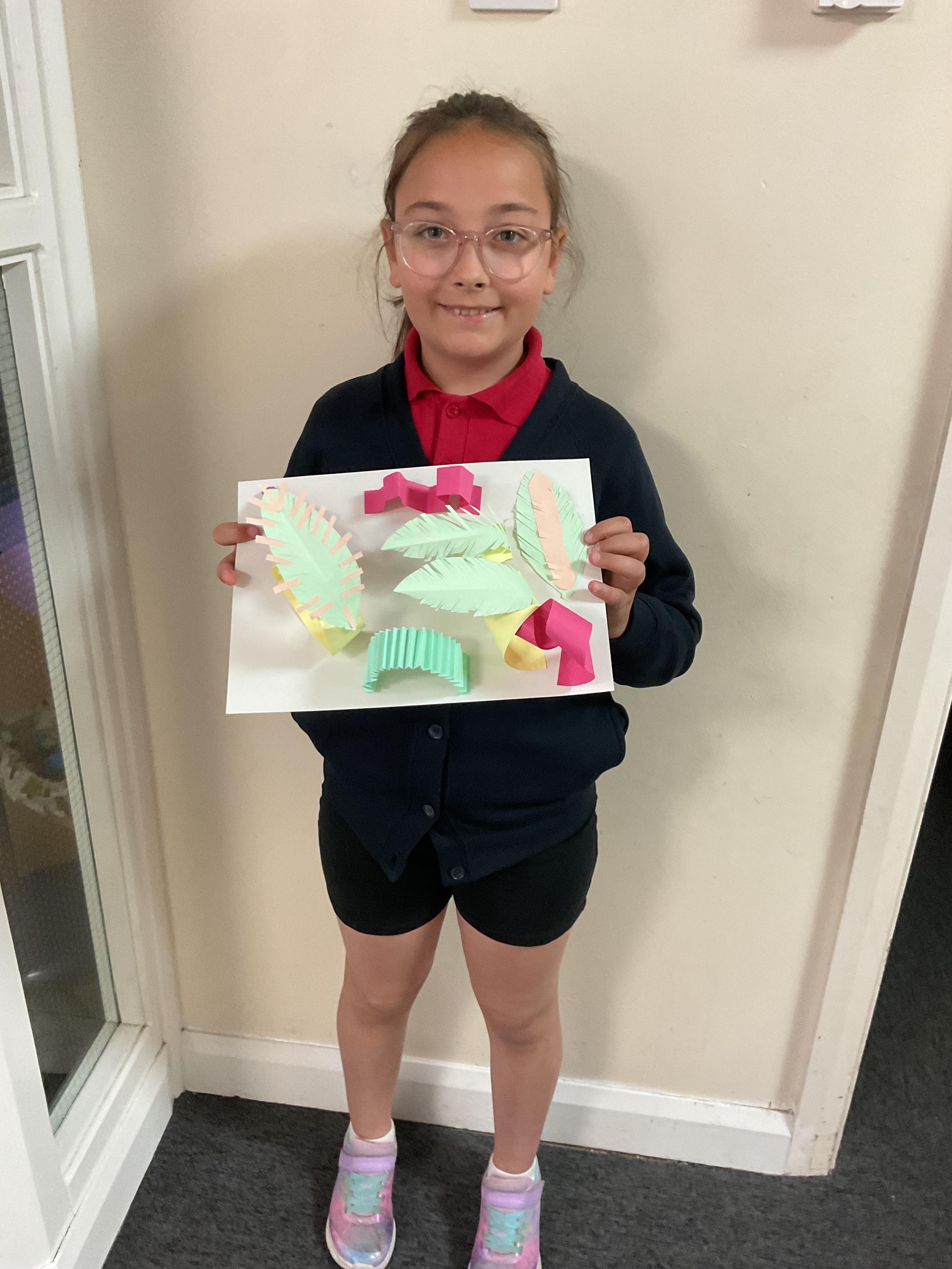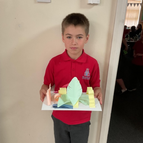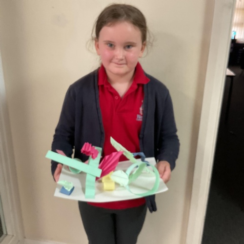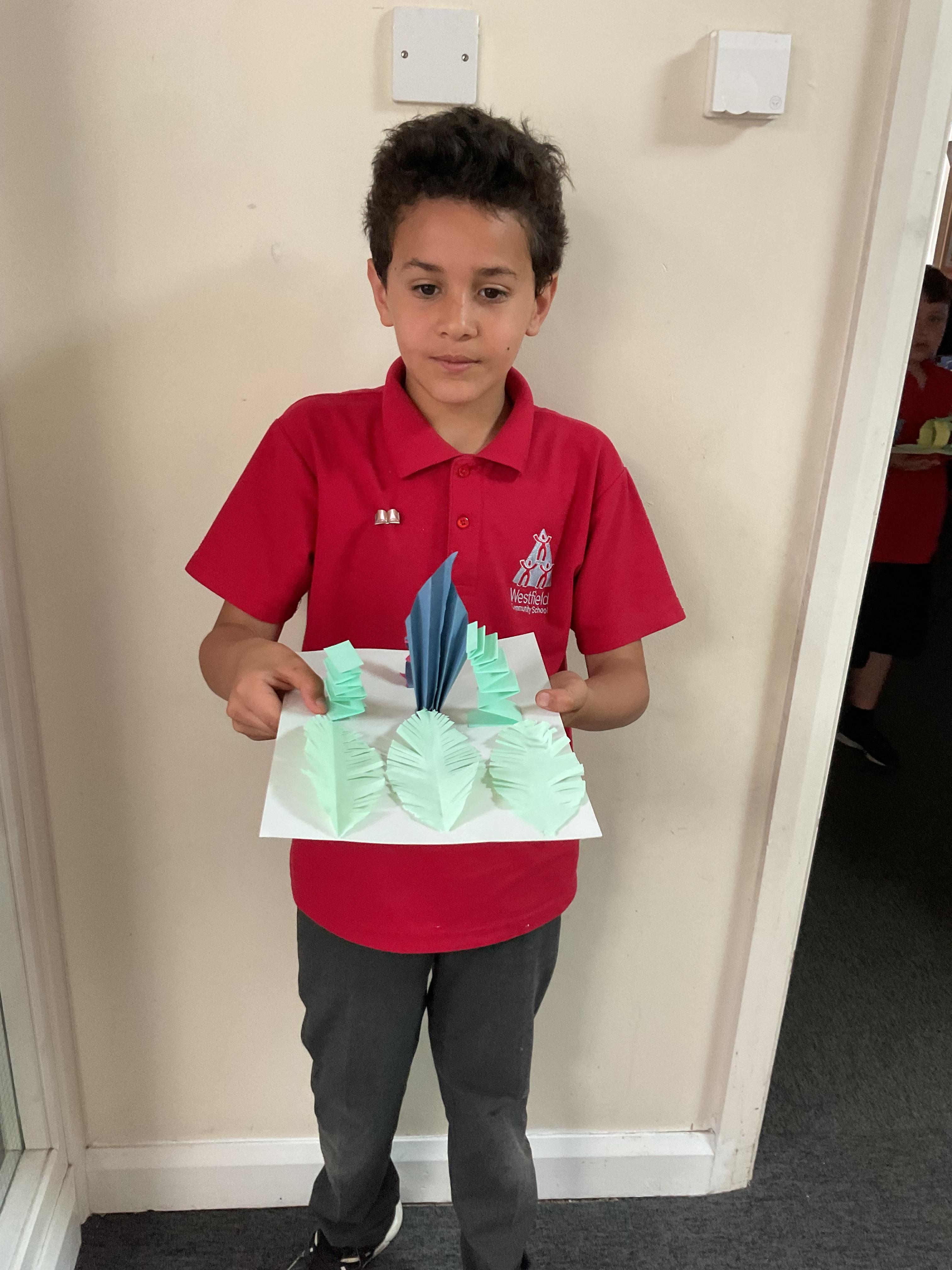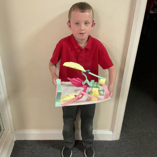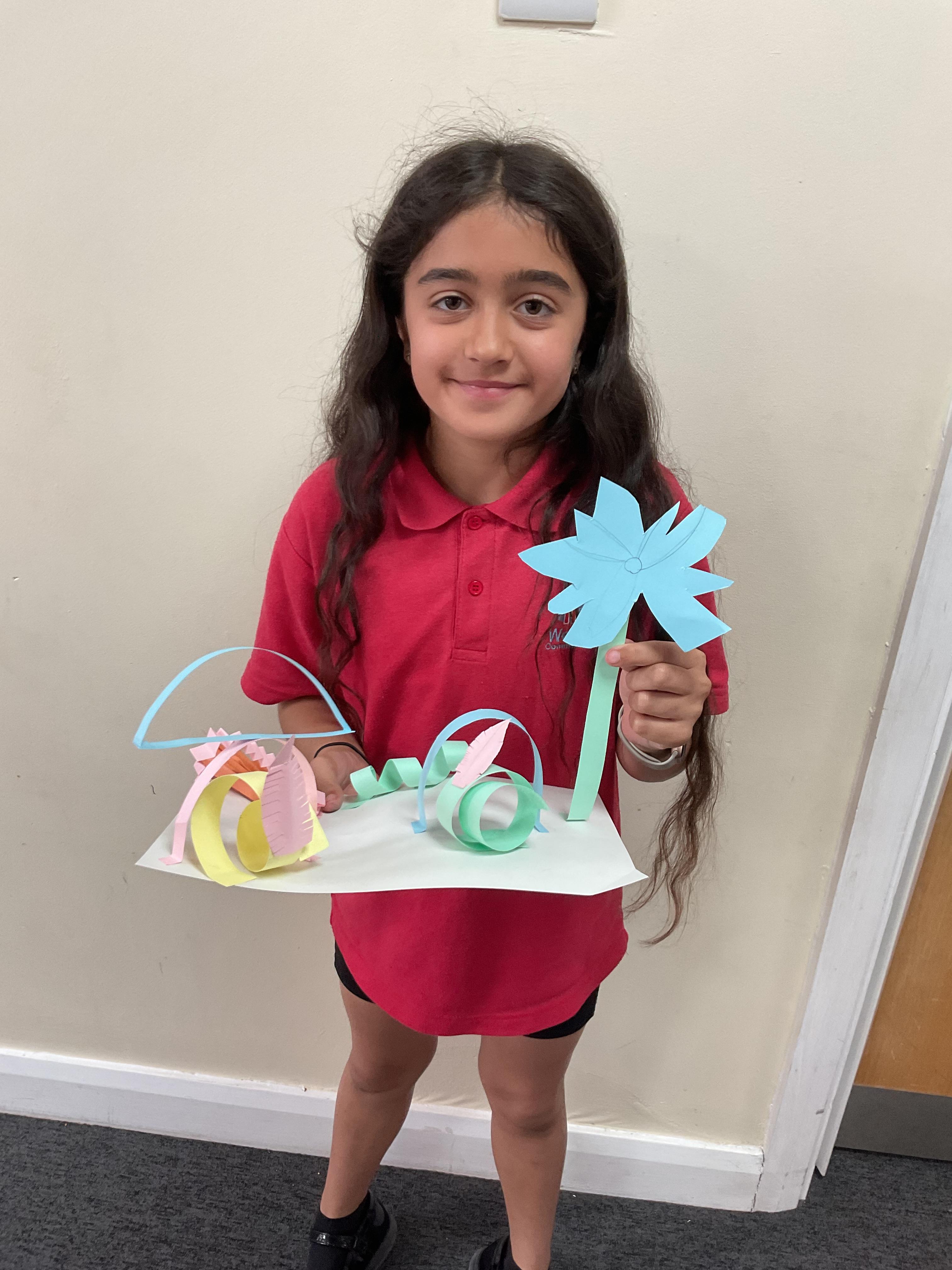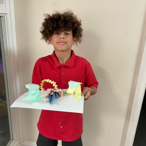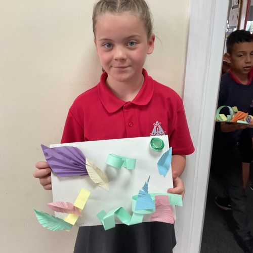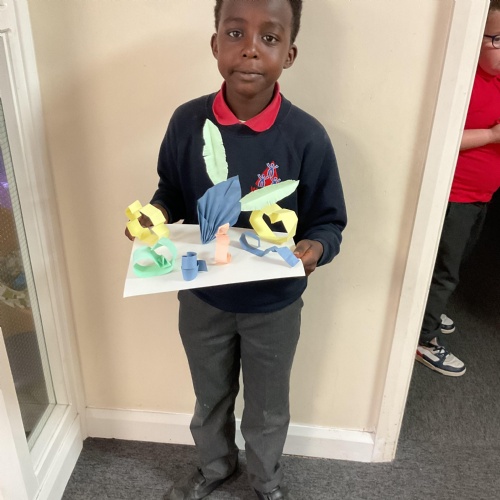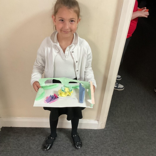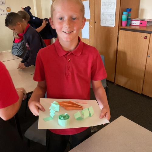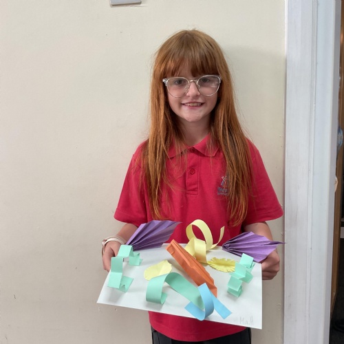 In art, the children have been looking at Rio De Janerio headdresses. They first practised different techniques which they created a 3D sculpture. They then created their final product which was their beautiful headdresses.