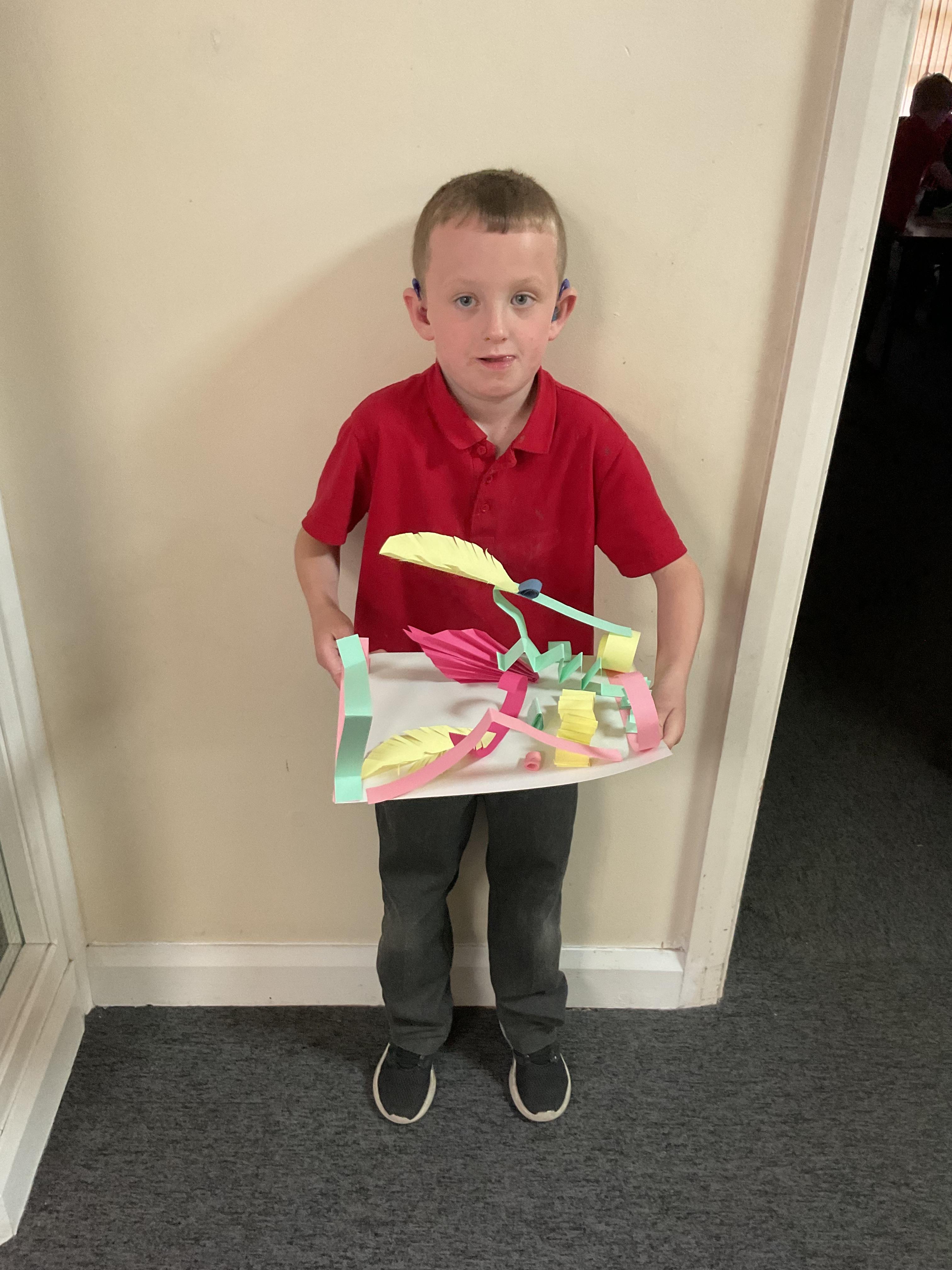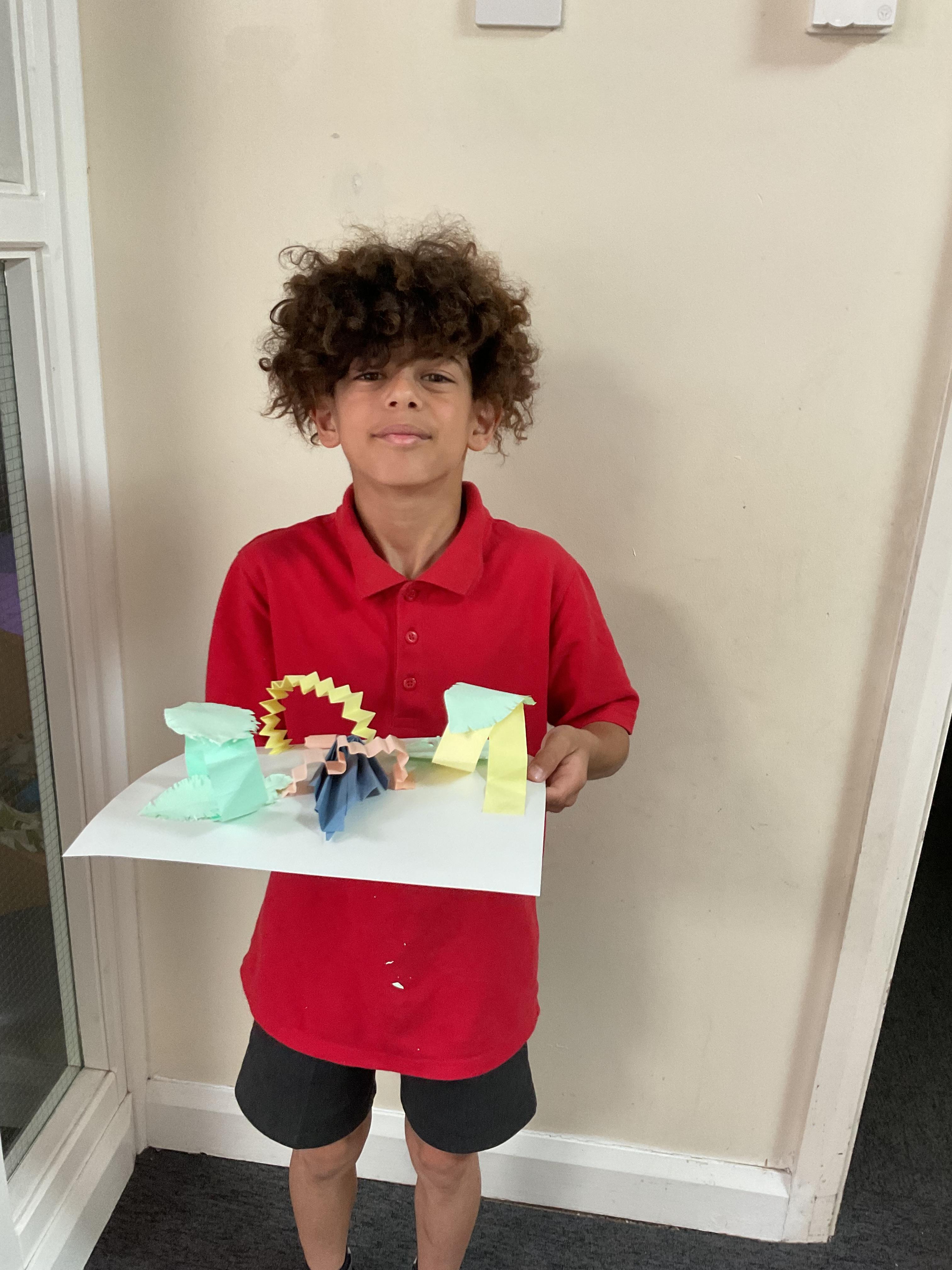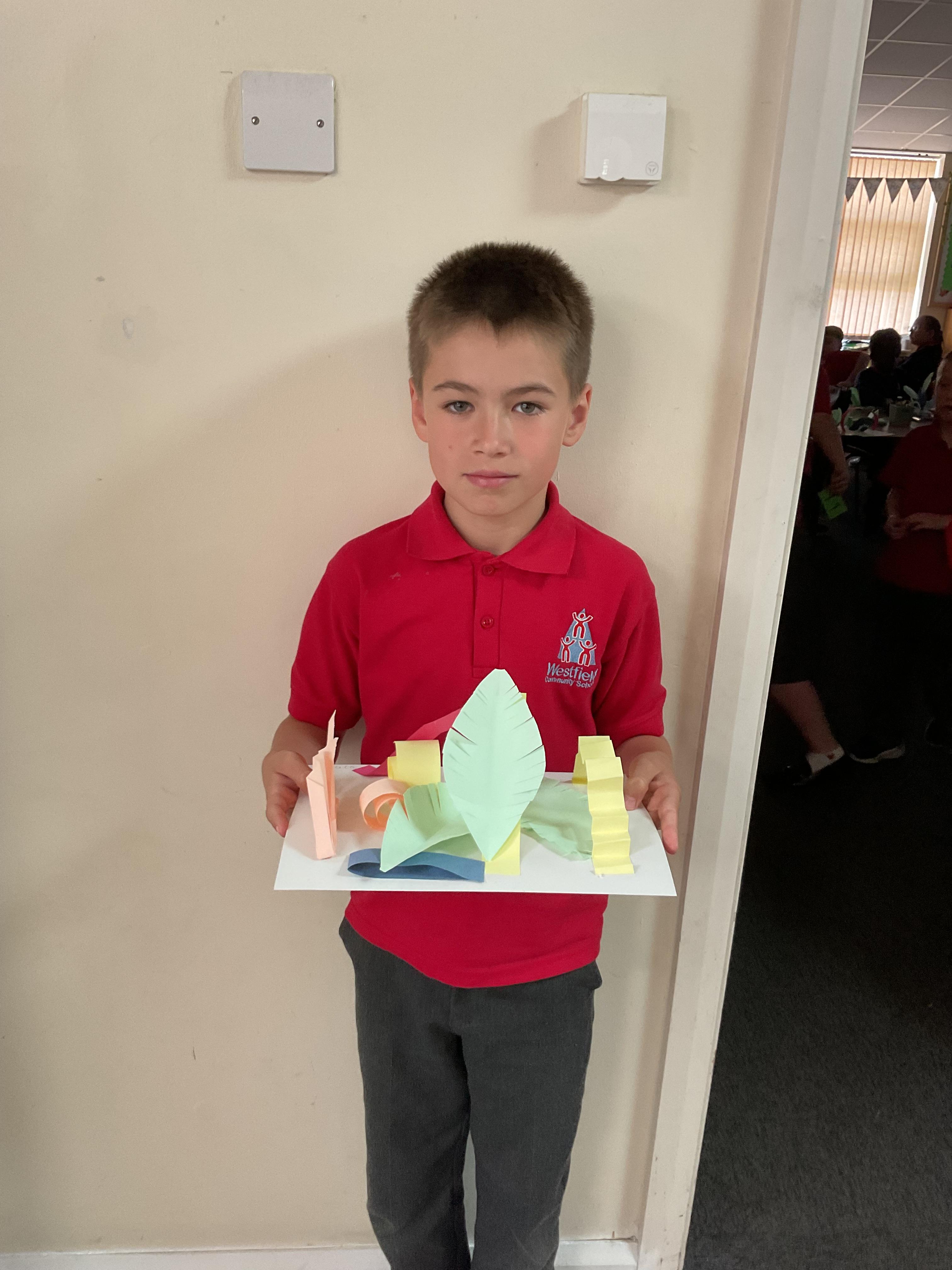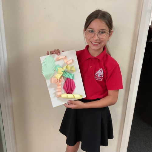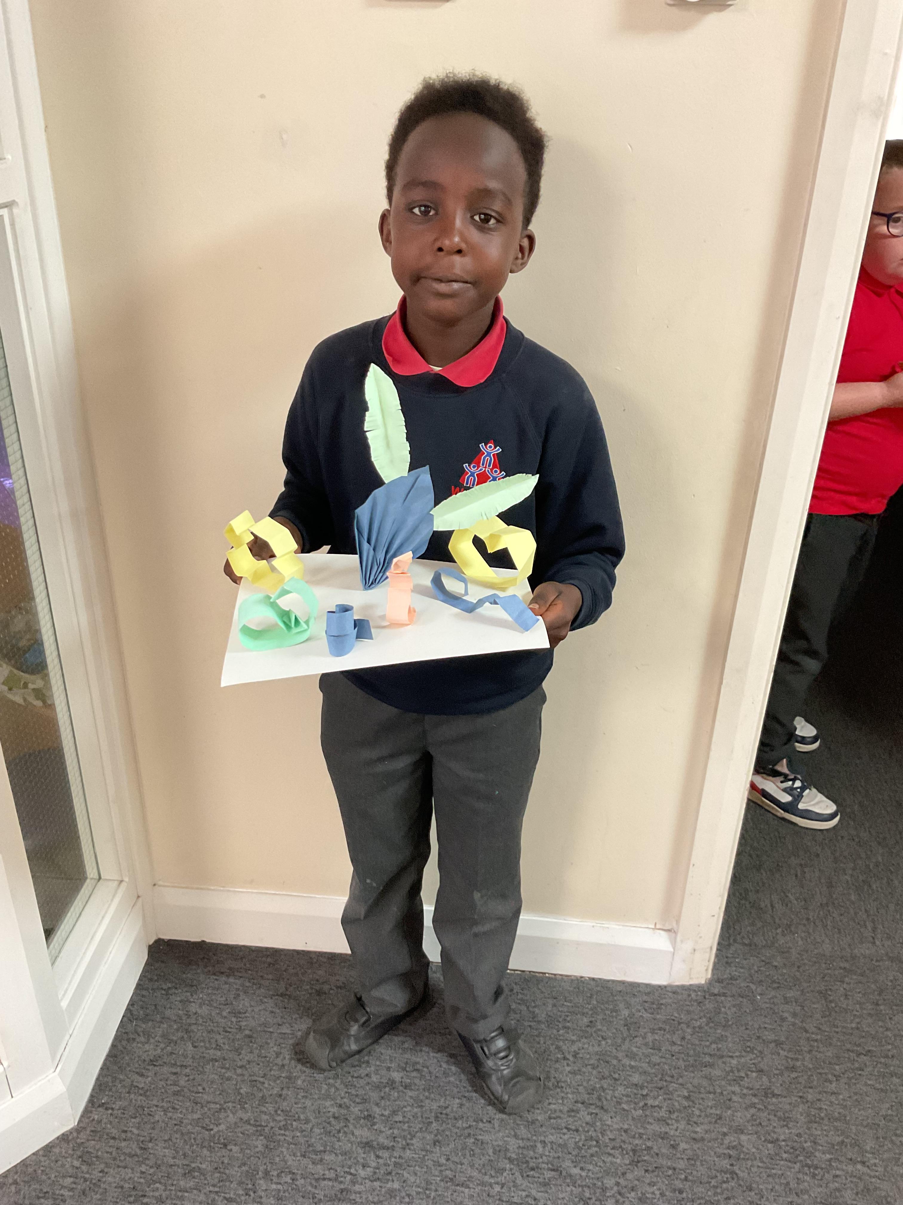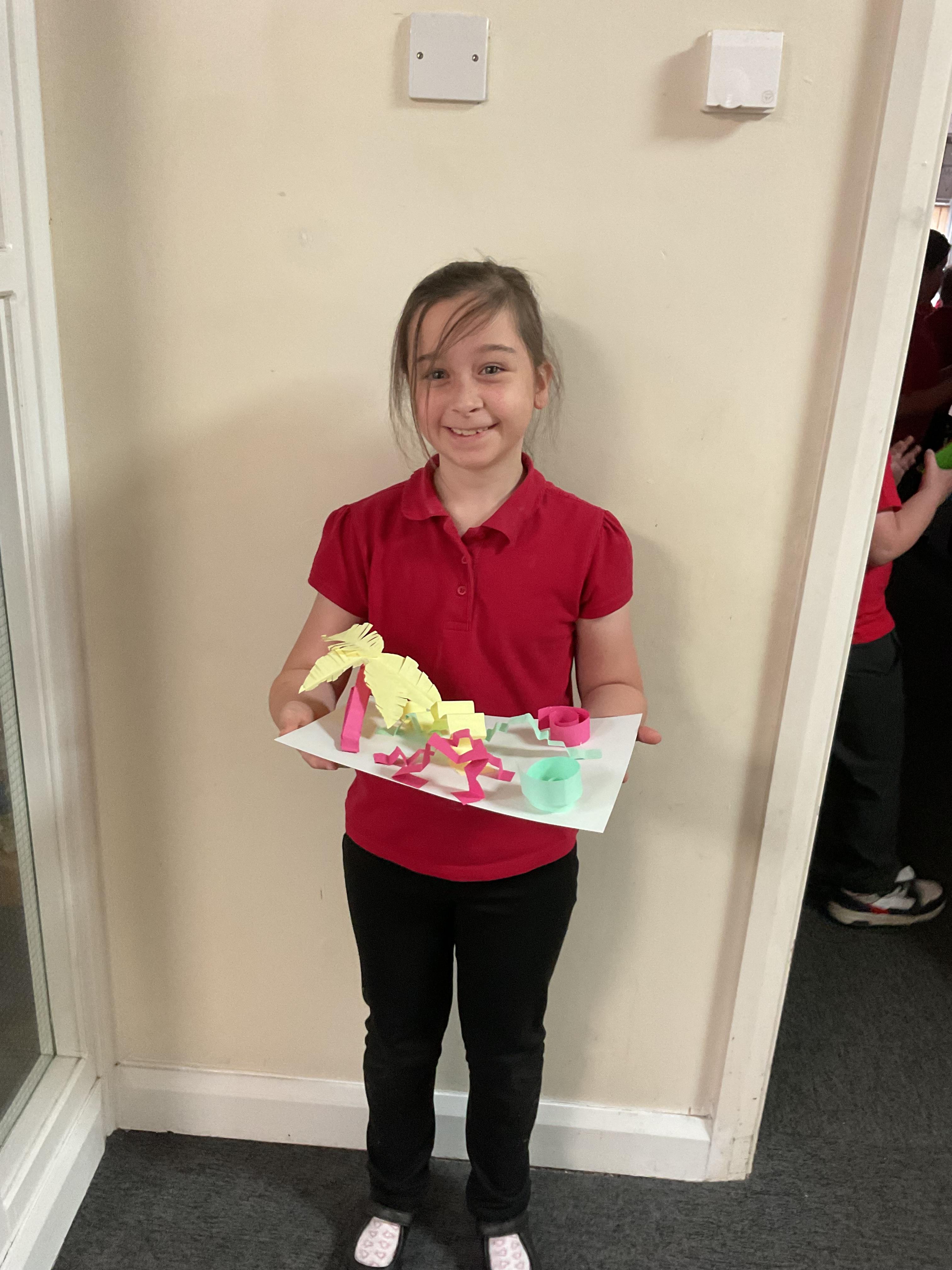 In art, the children have been looking at Rio De Janerio headdresses. They first practised different techniques which they created a 3D sculpture. They then created their final product which was their beautiful headdresses.