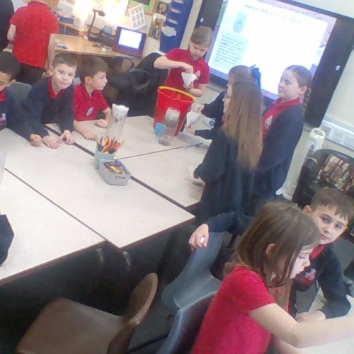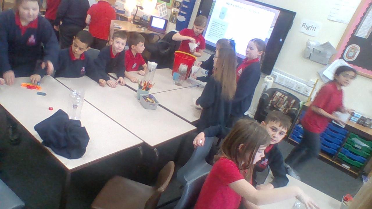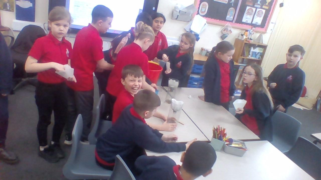 In geography, the class attempted to filter dirty water. This was to show how pollution effects our rivers and that we have to filter water over and over again to make it suitable for human consumption.