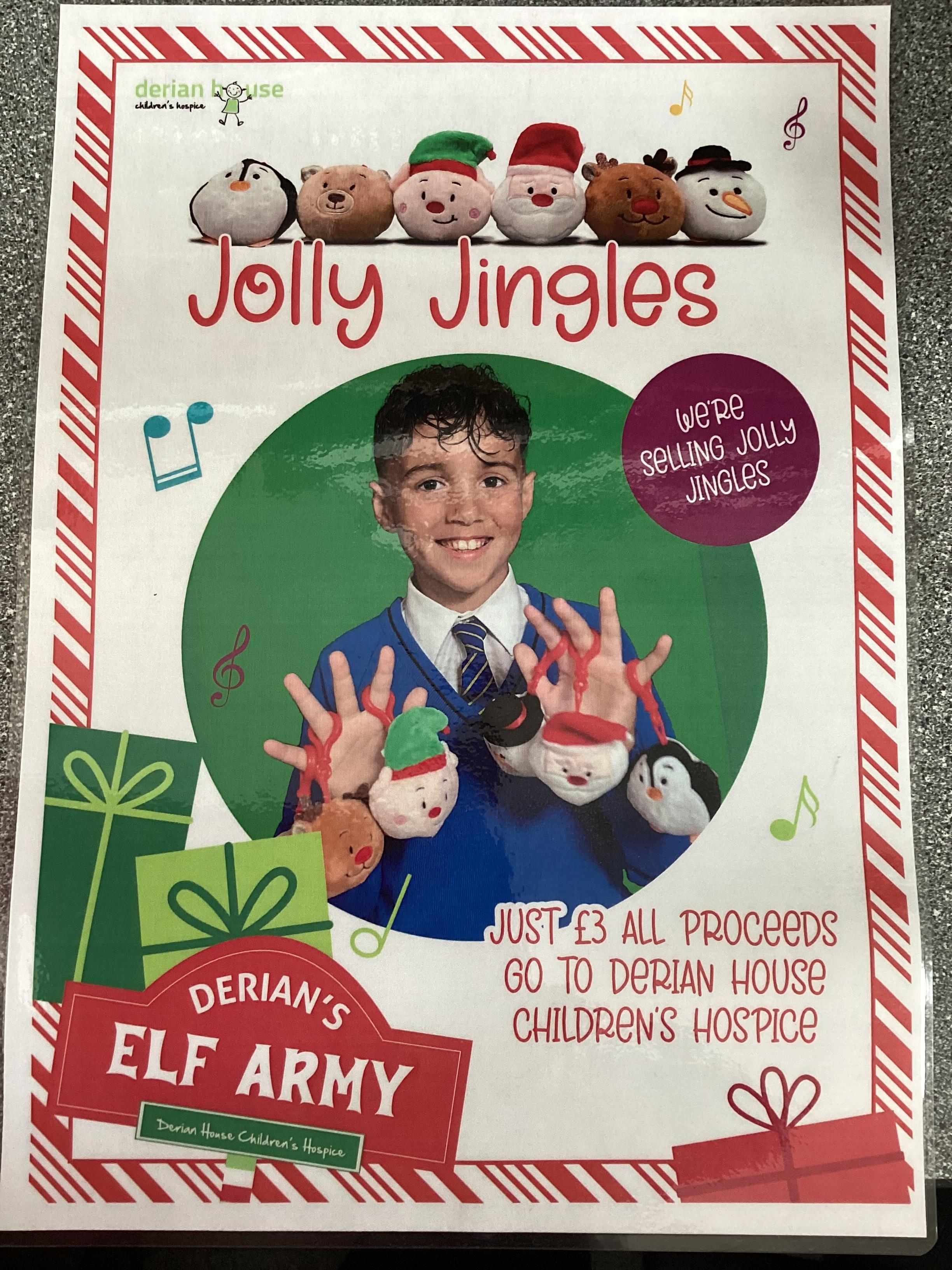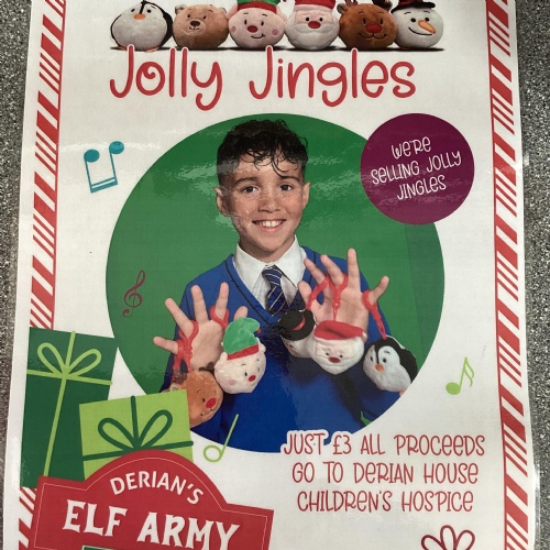 To raise money for Derain house we are selling these Jolly Jingles they are £3 each and are available from the office.