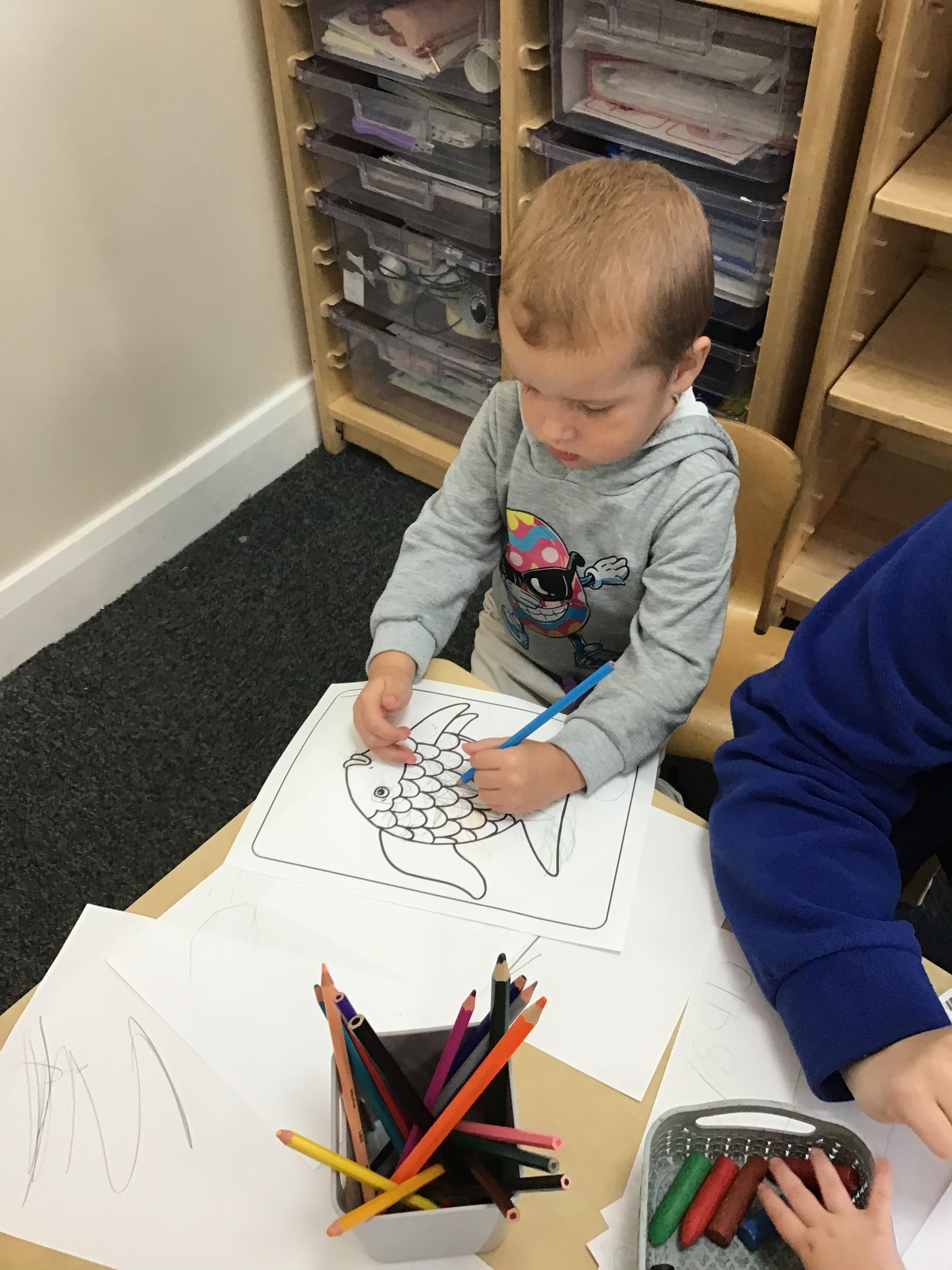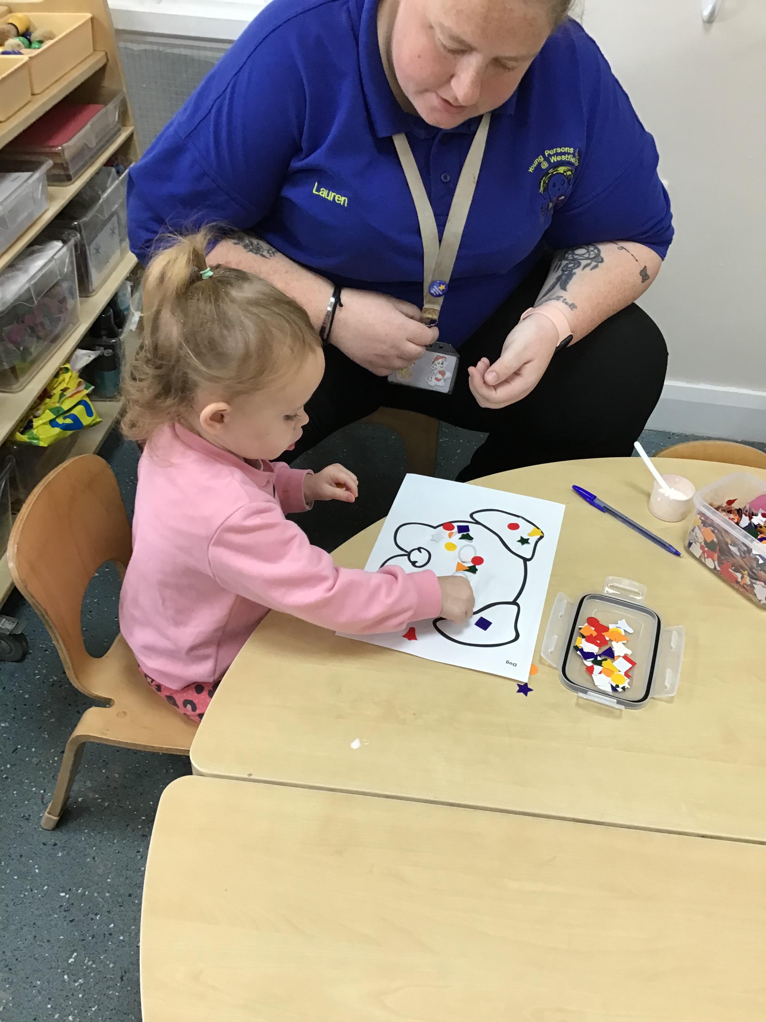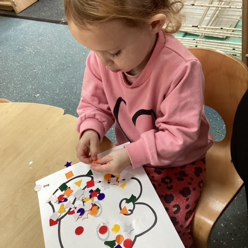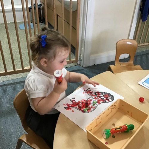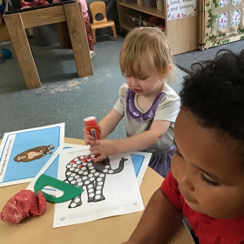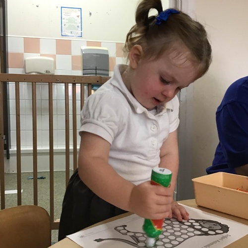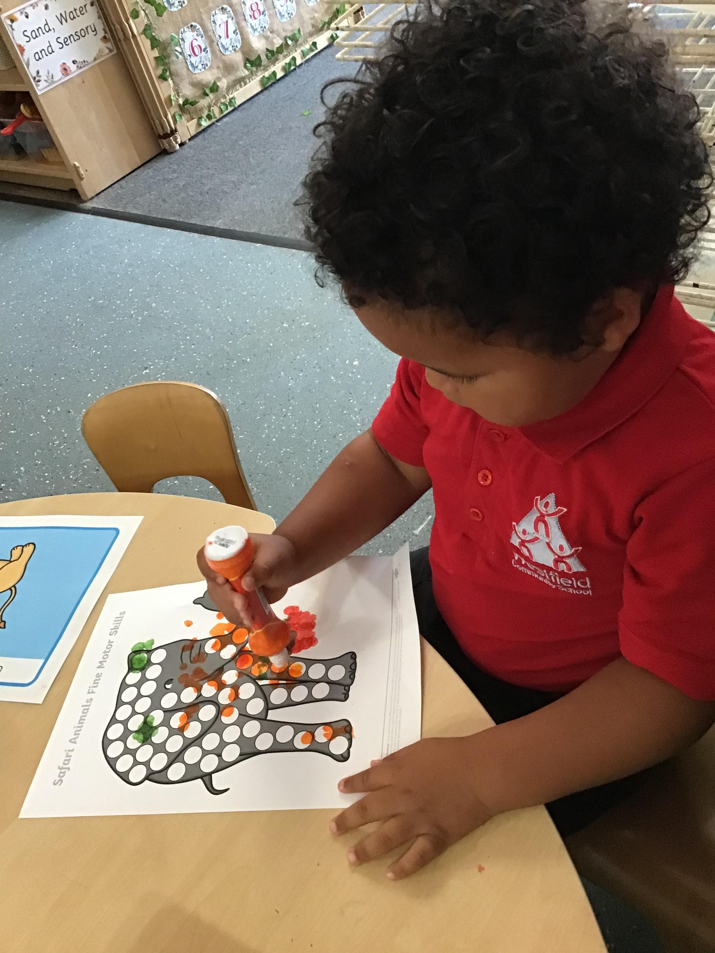 Developing our fine motor skills, using bingo dabbers to fill the dots on the animal pictures