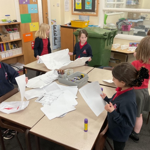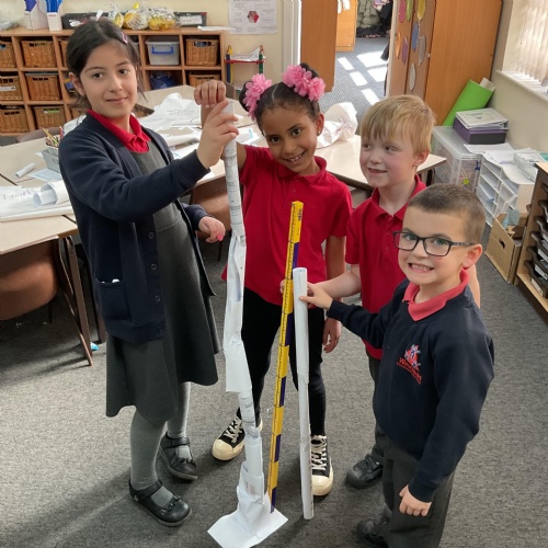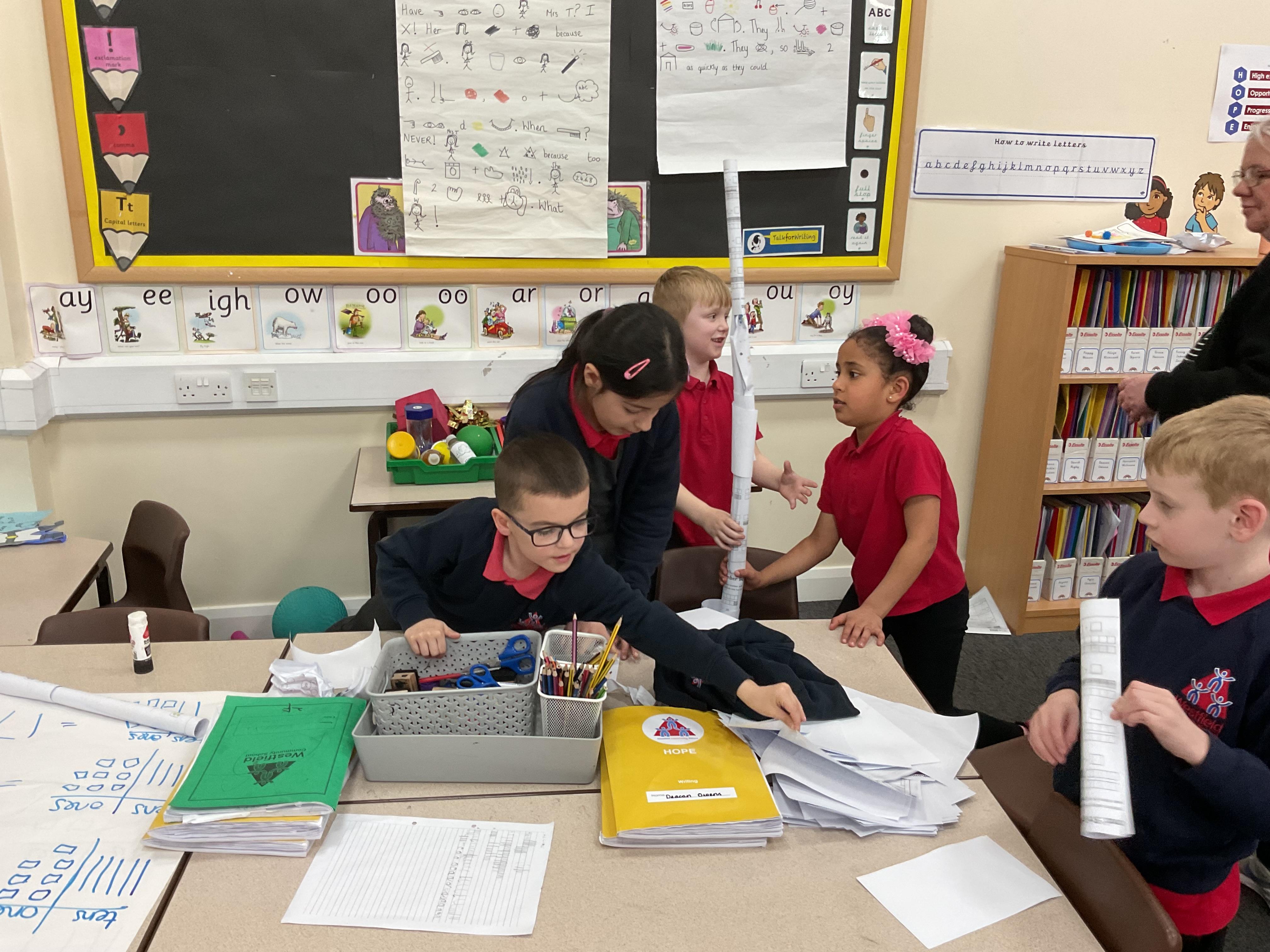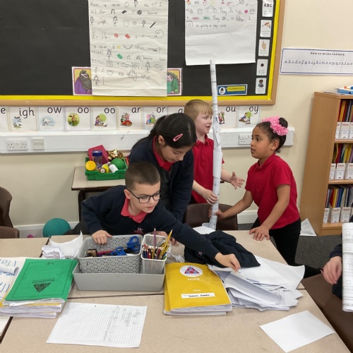In design and technology we have been experimenting with paper. Before learning how to make a structure more stable, stiffer or stronger we worked in a small group to construct a structure. The children could only use paper and glue or sellotape. They were given a set time and they had to make the structure free-standing. The children worked well together but sadly were not successful (as expected).