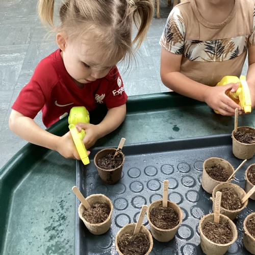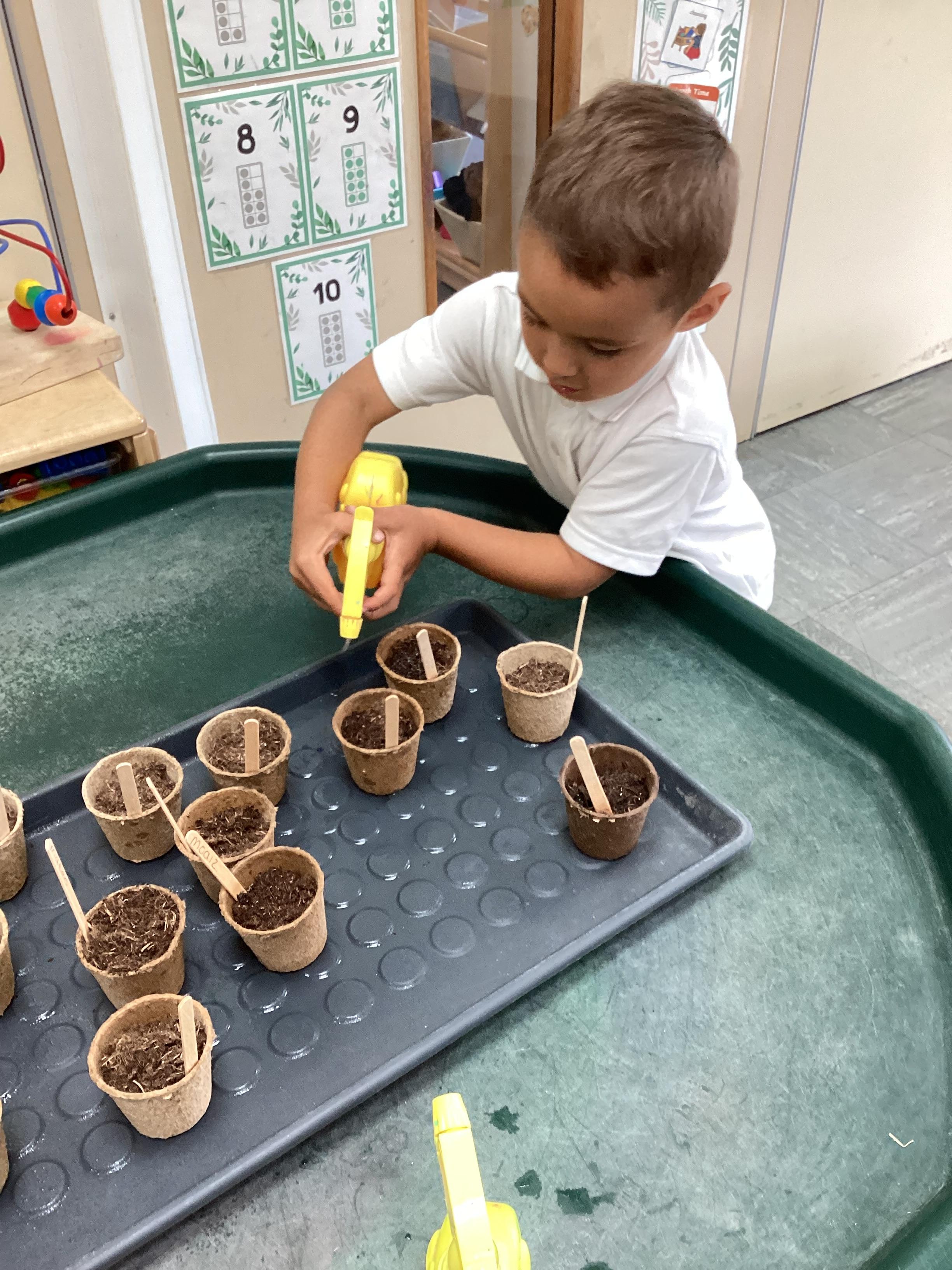 This week we have been busy planting our sunflowers, we’re hoping that they grow big and tall.