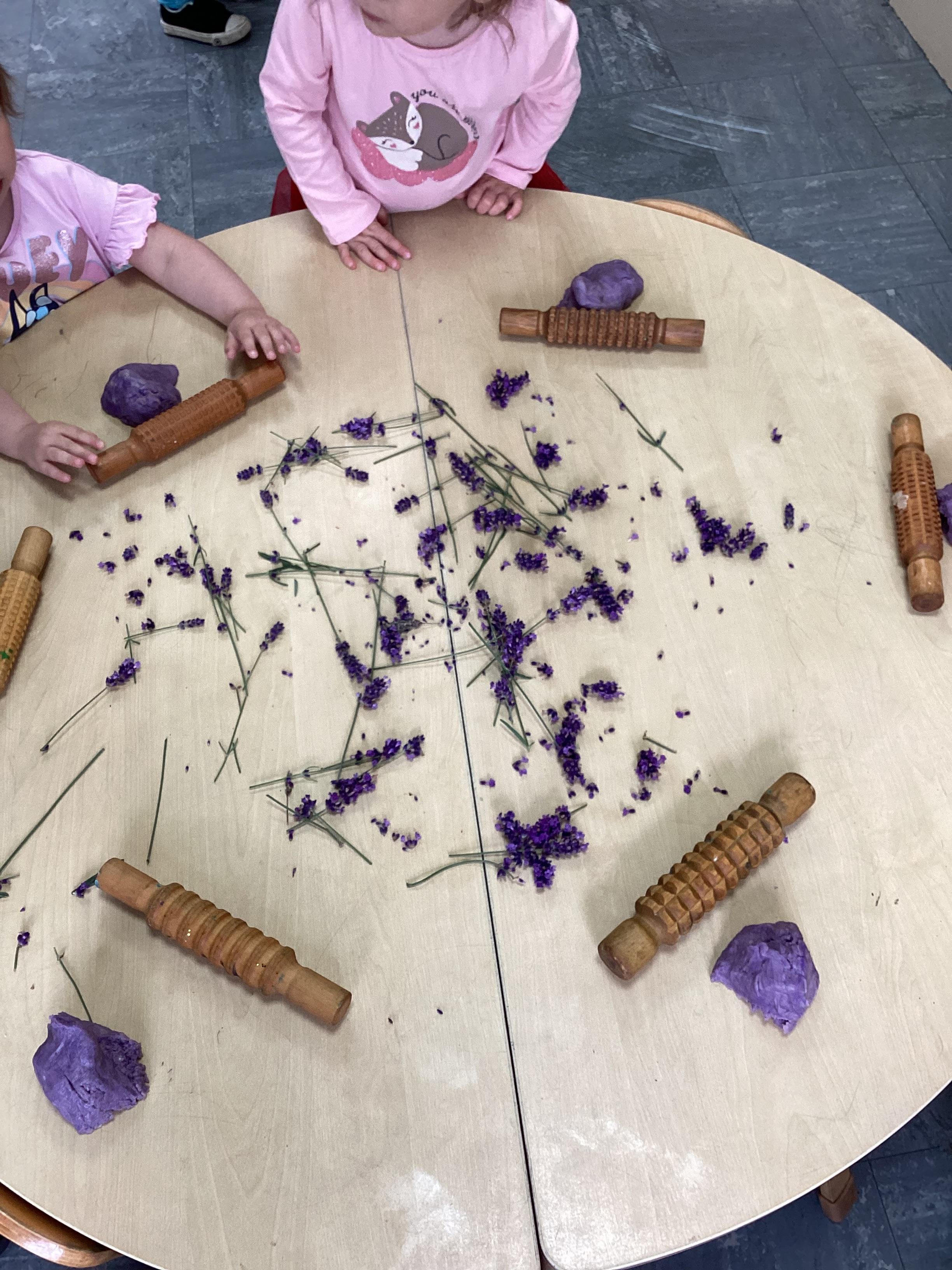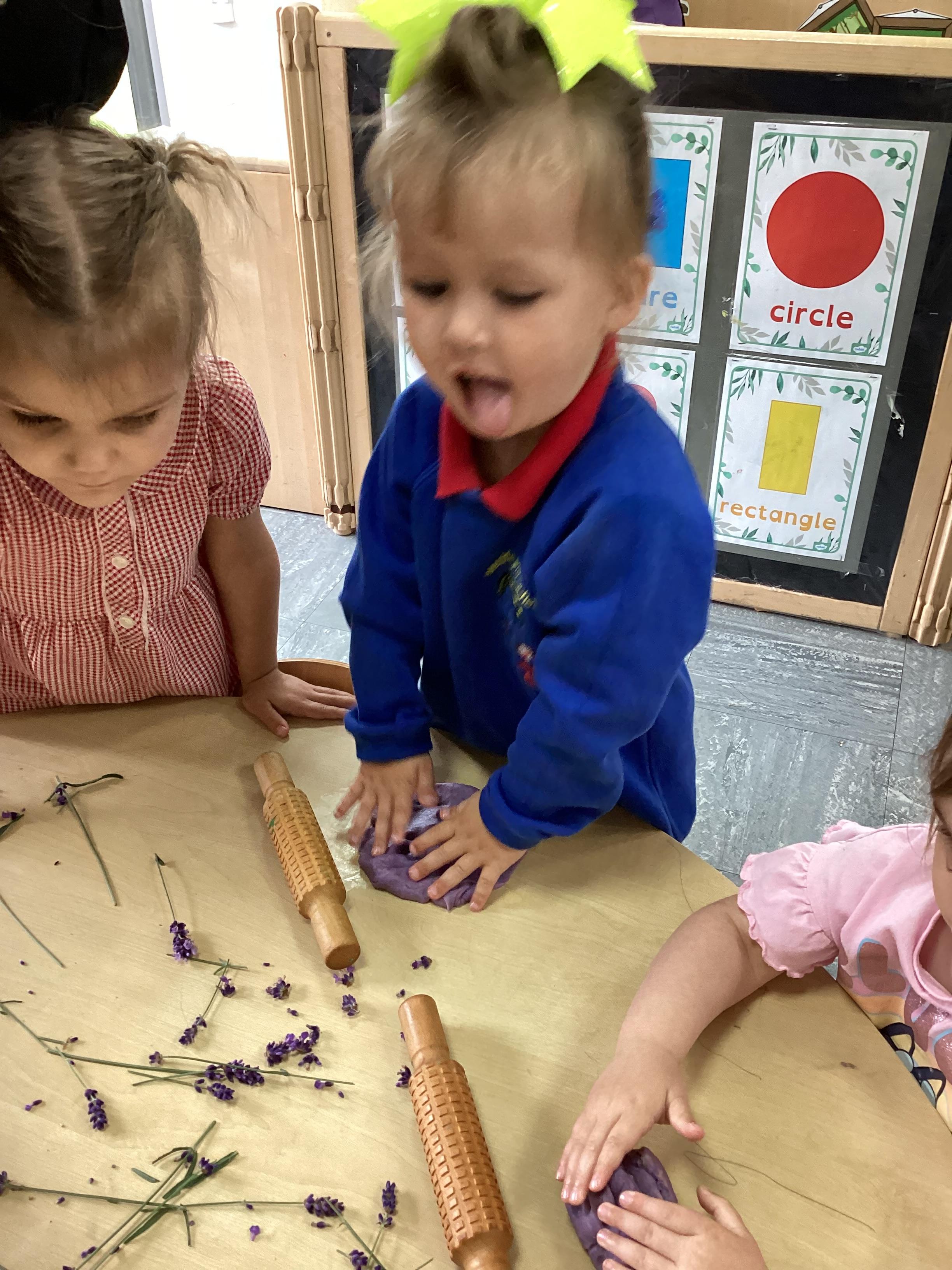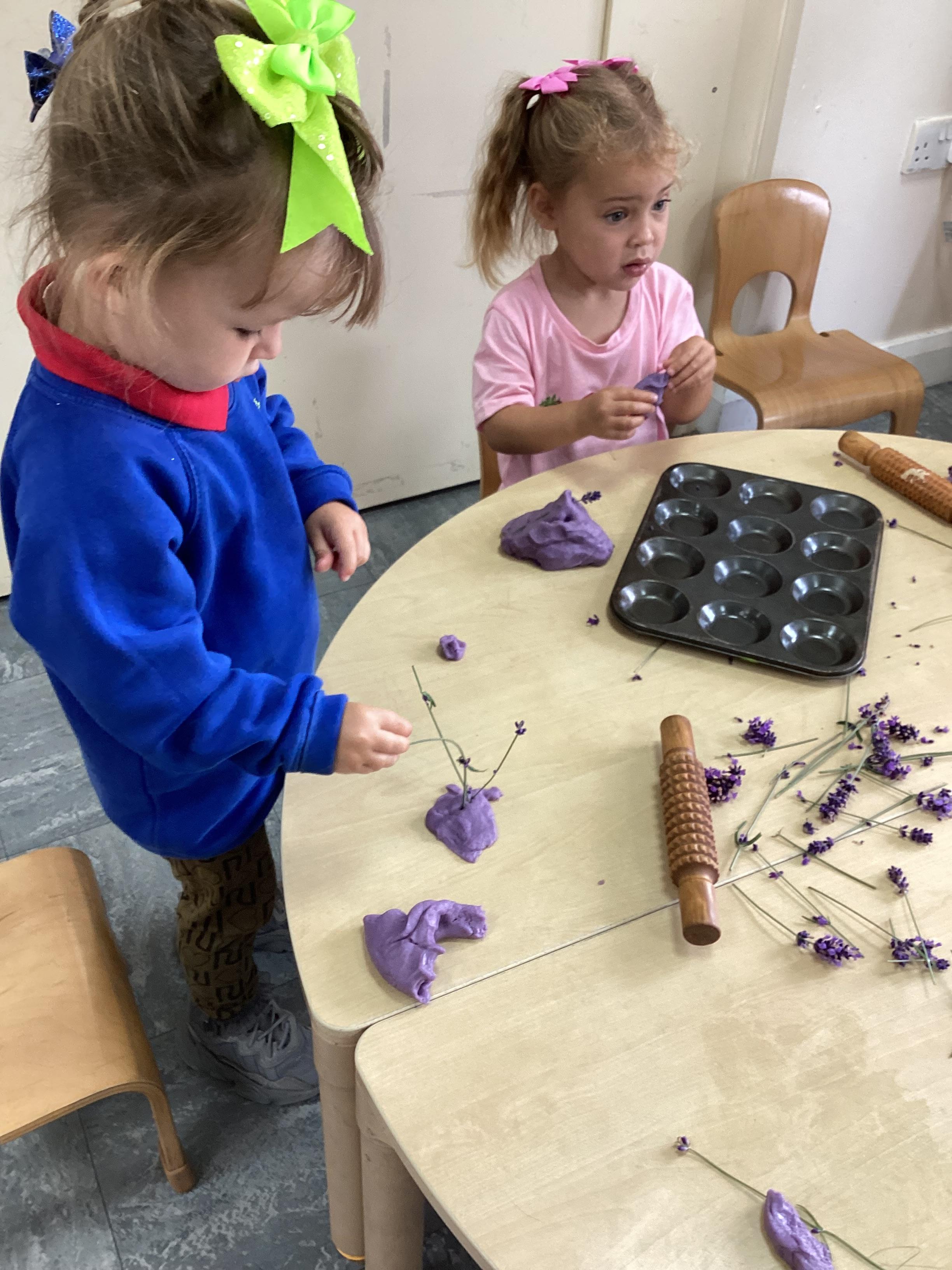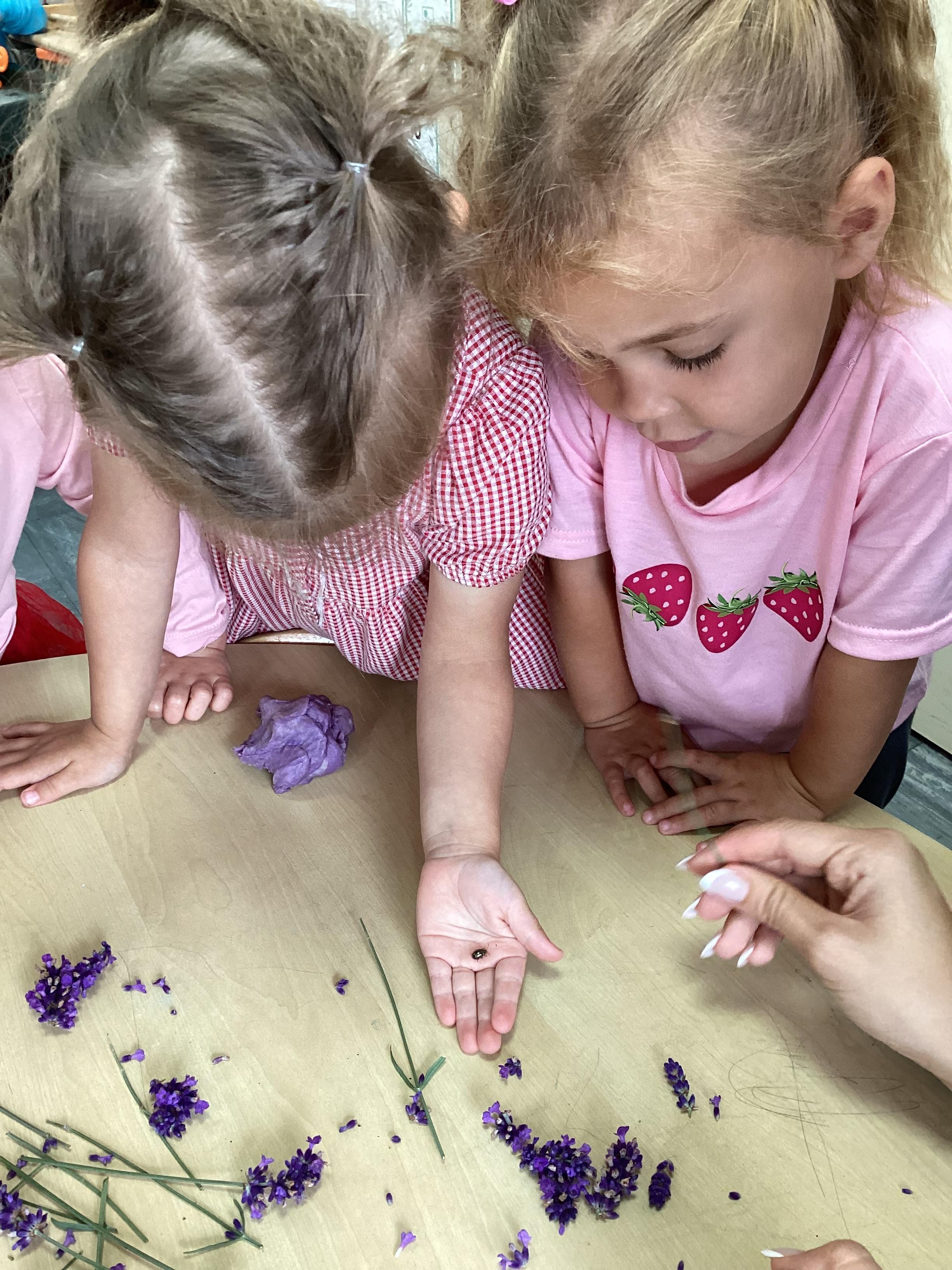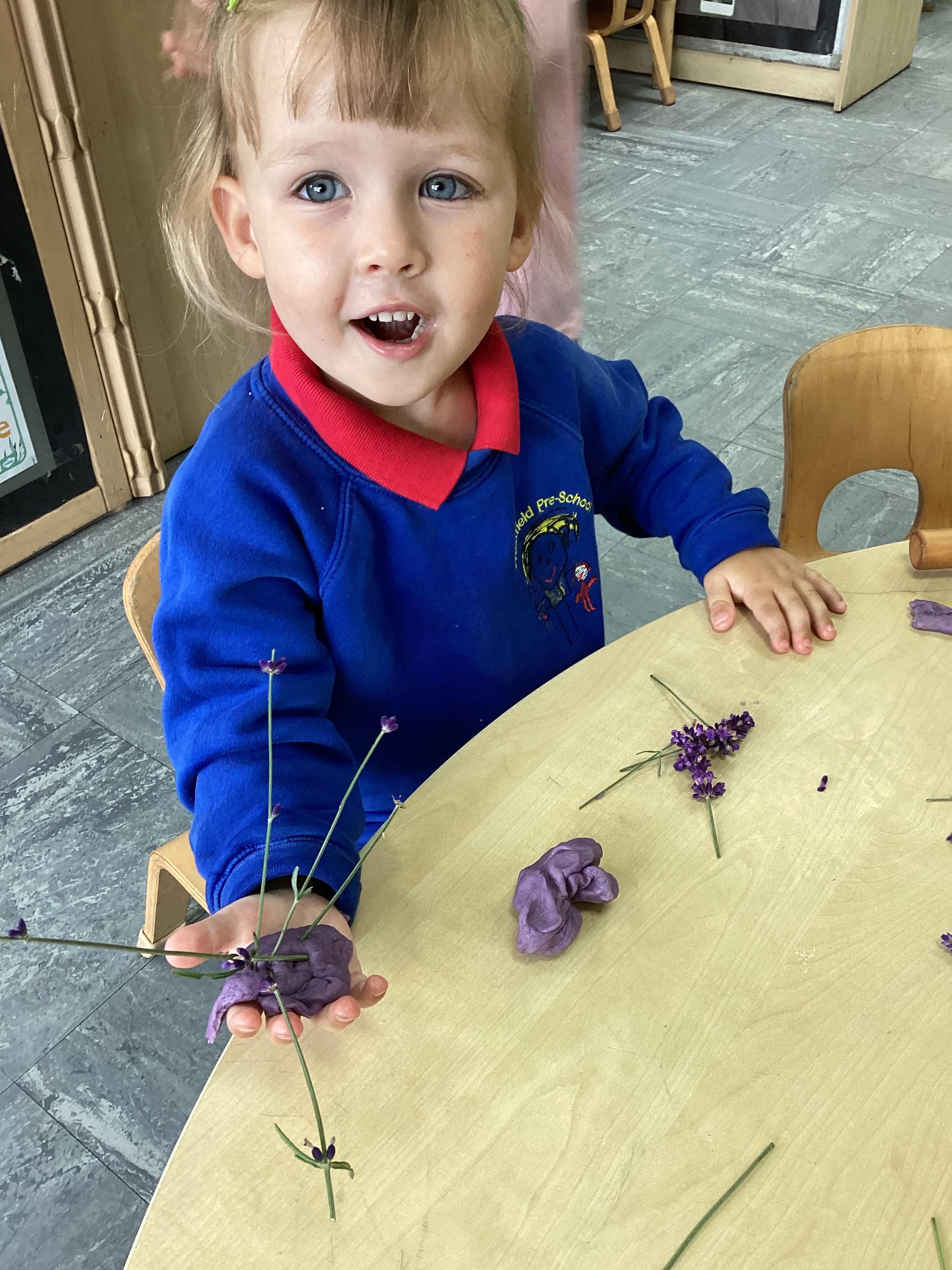 Today we were using lavender out of the garden in our play dough, it smelled lovely and we even found few little bugs to have a look at.