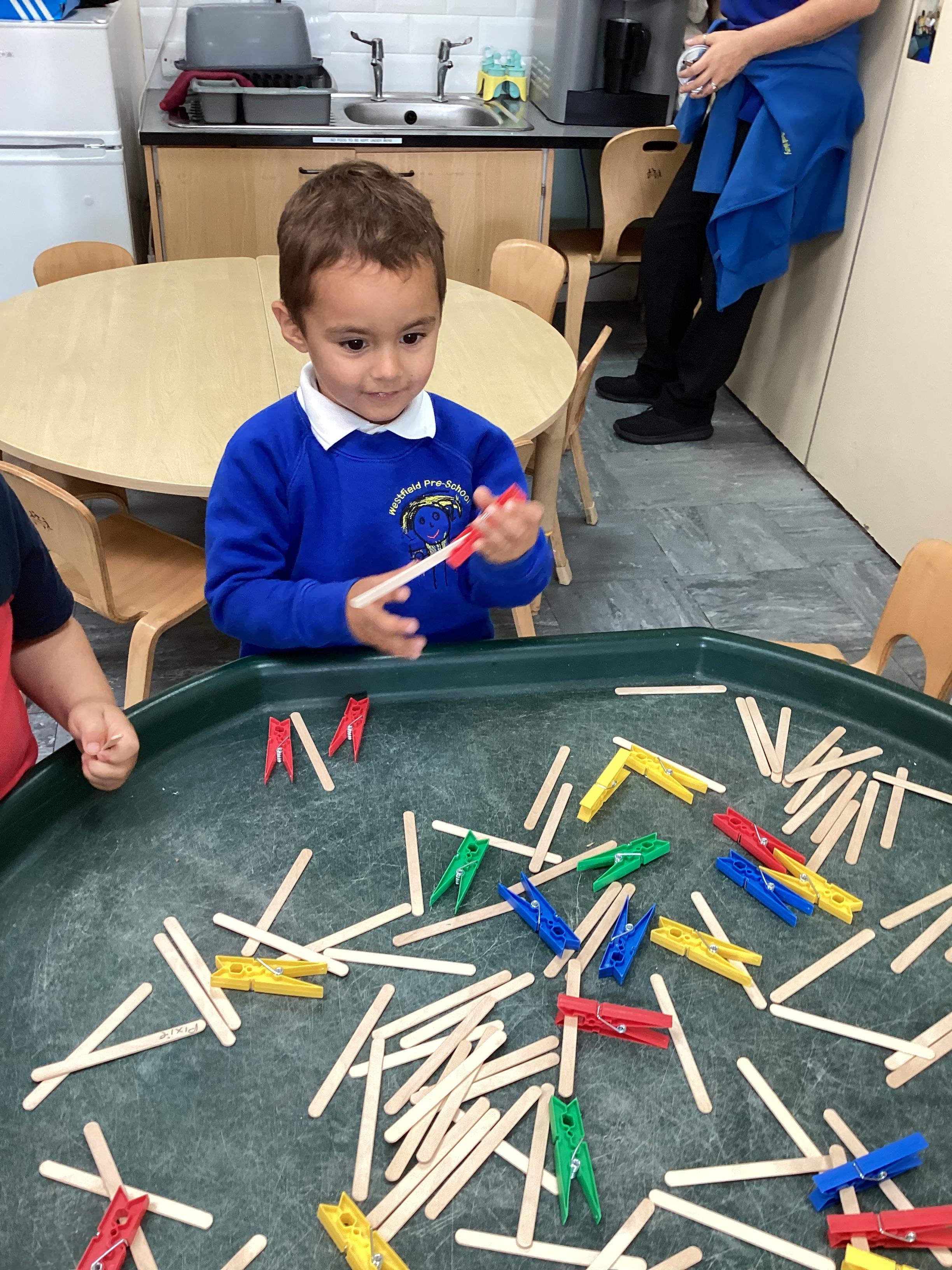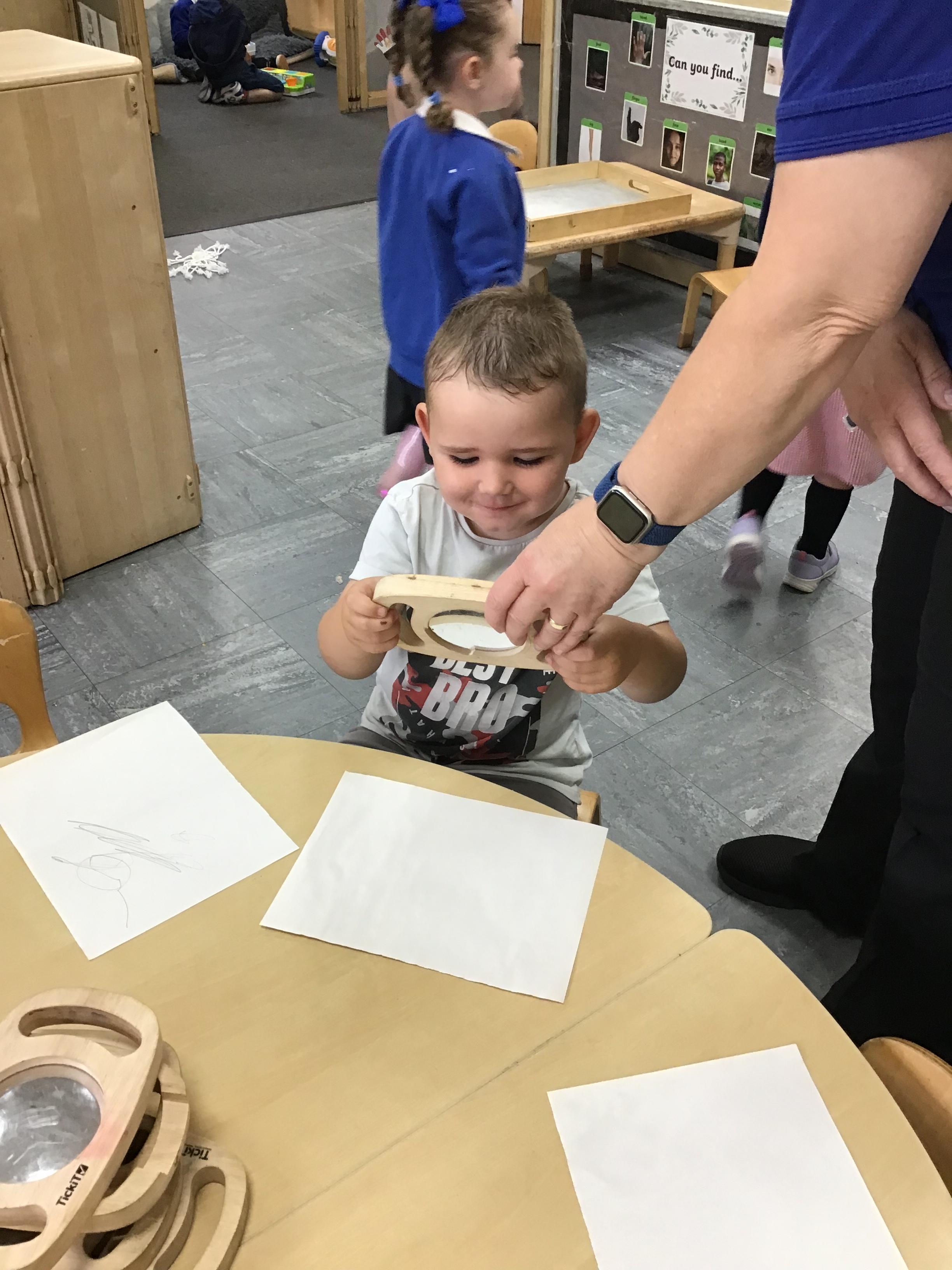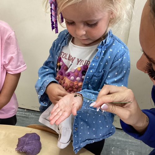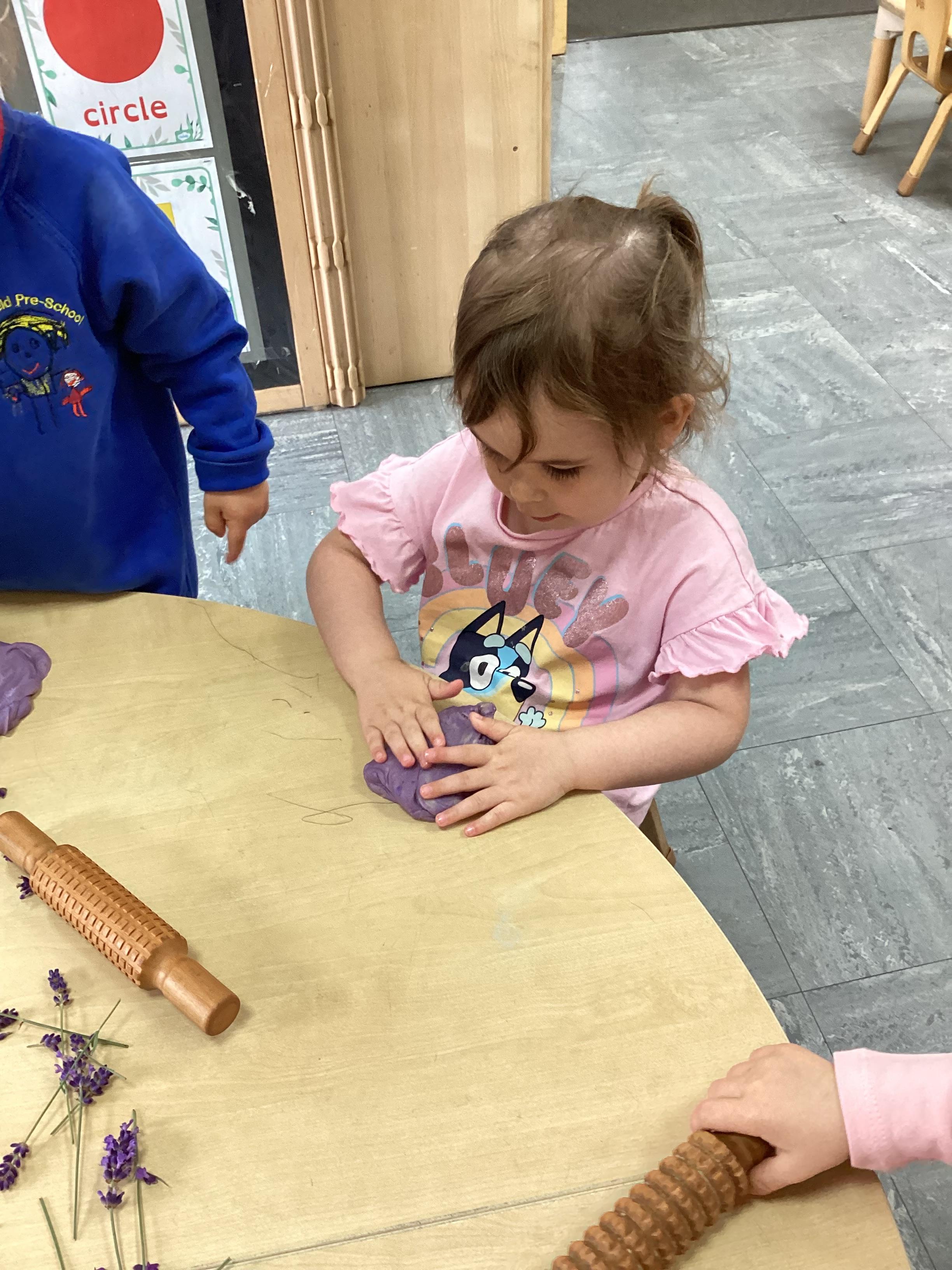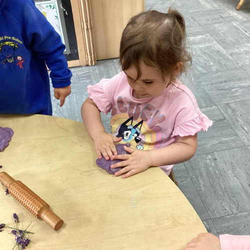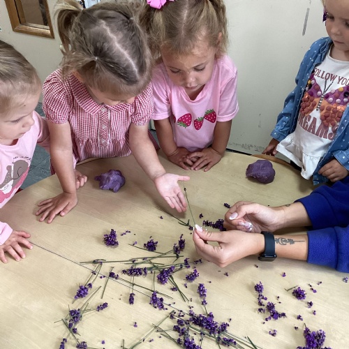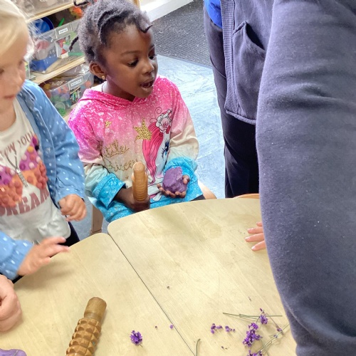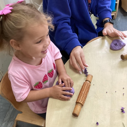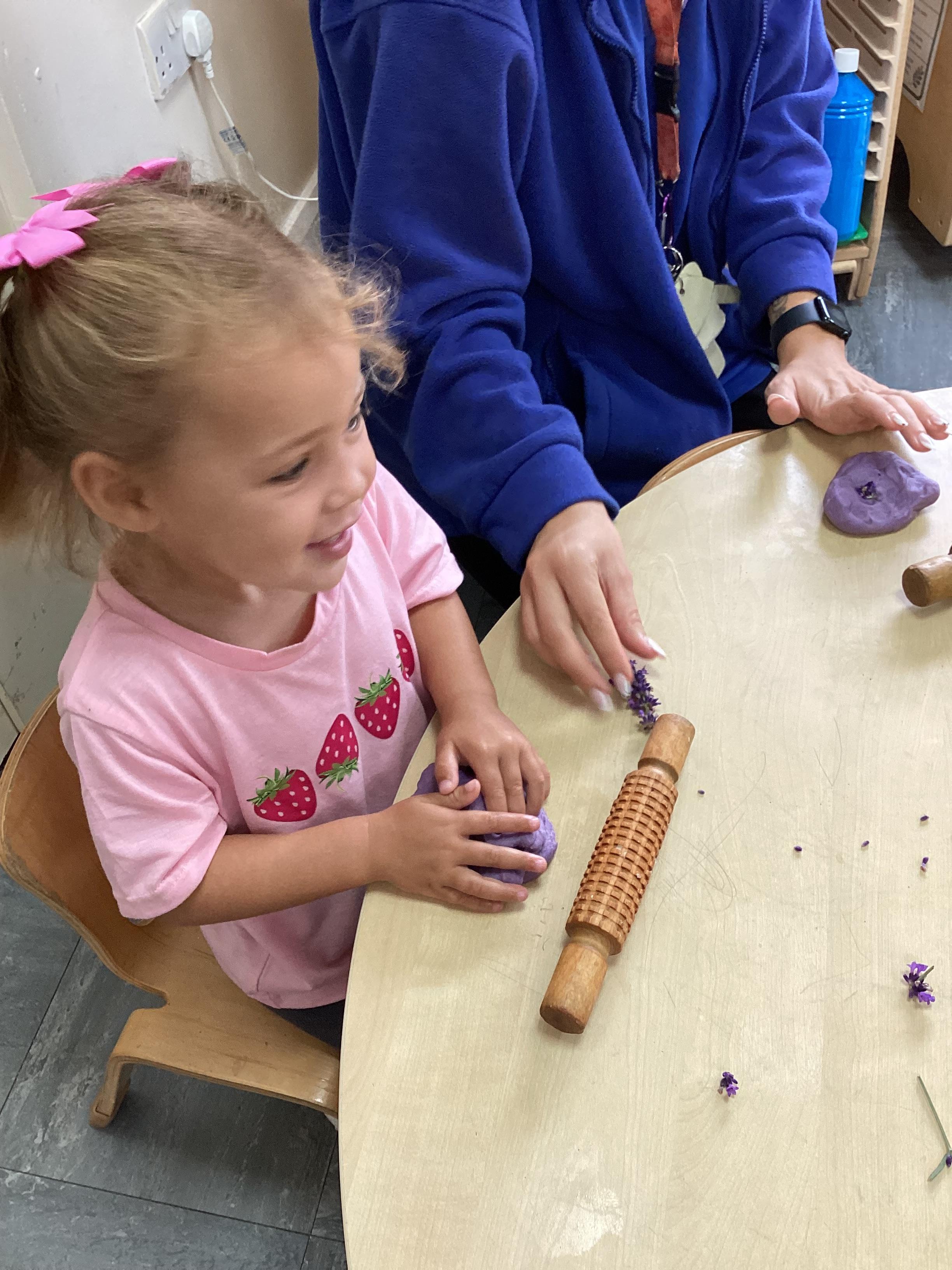 Today we were using lavender out of the garden in our play dough, it smelled lovely and we even found few little bugs to have a look at.