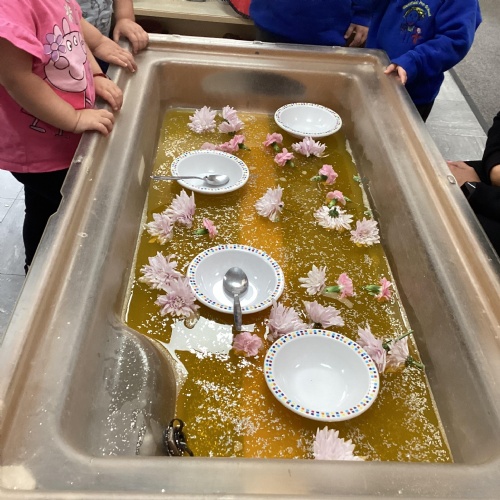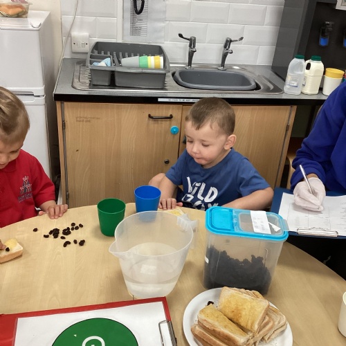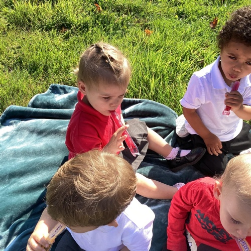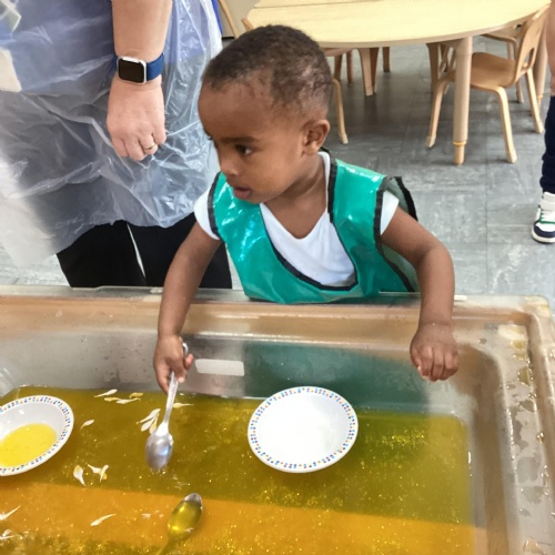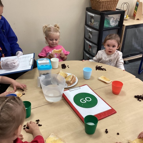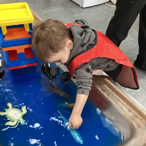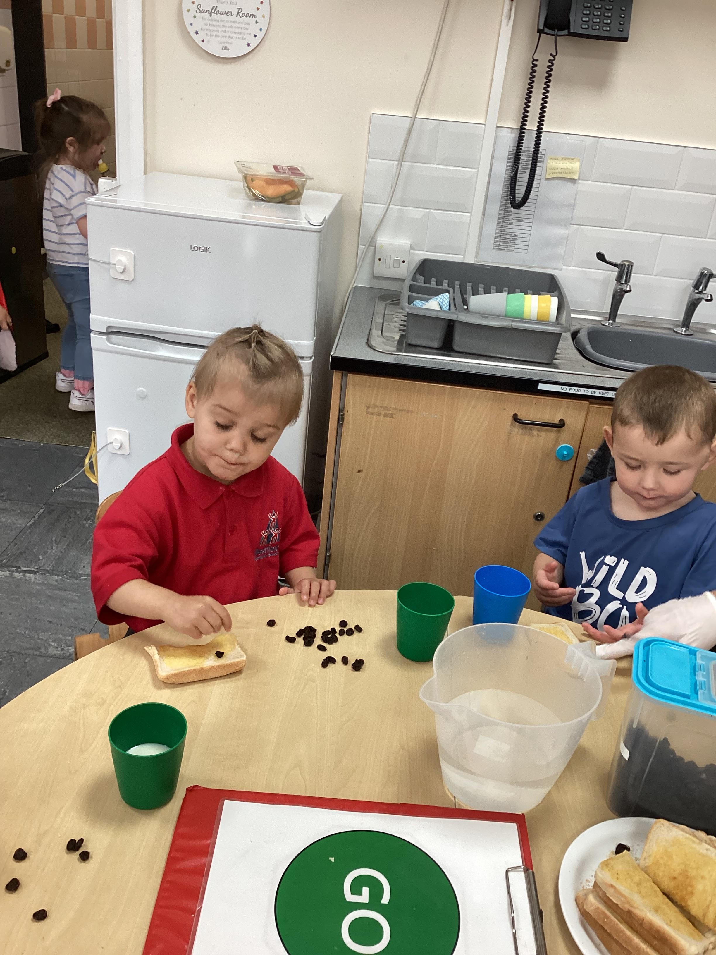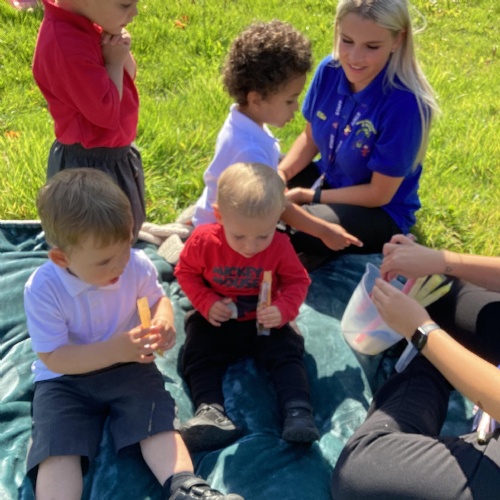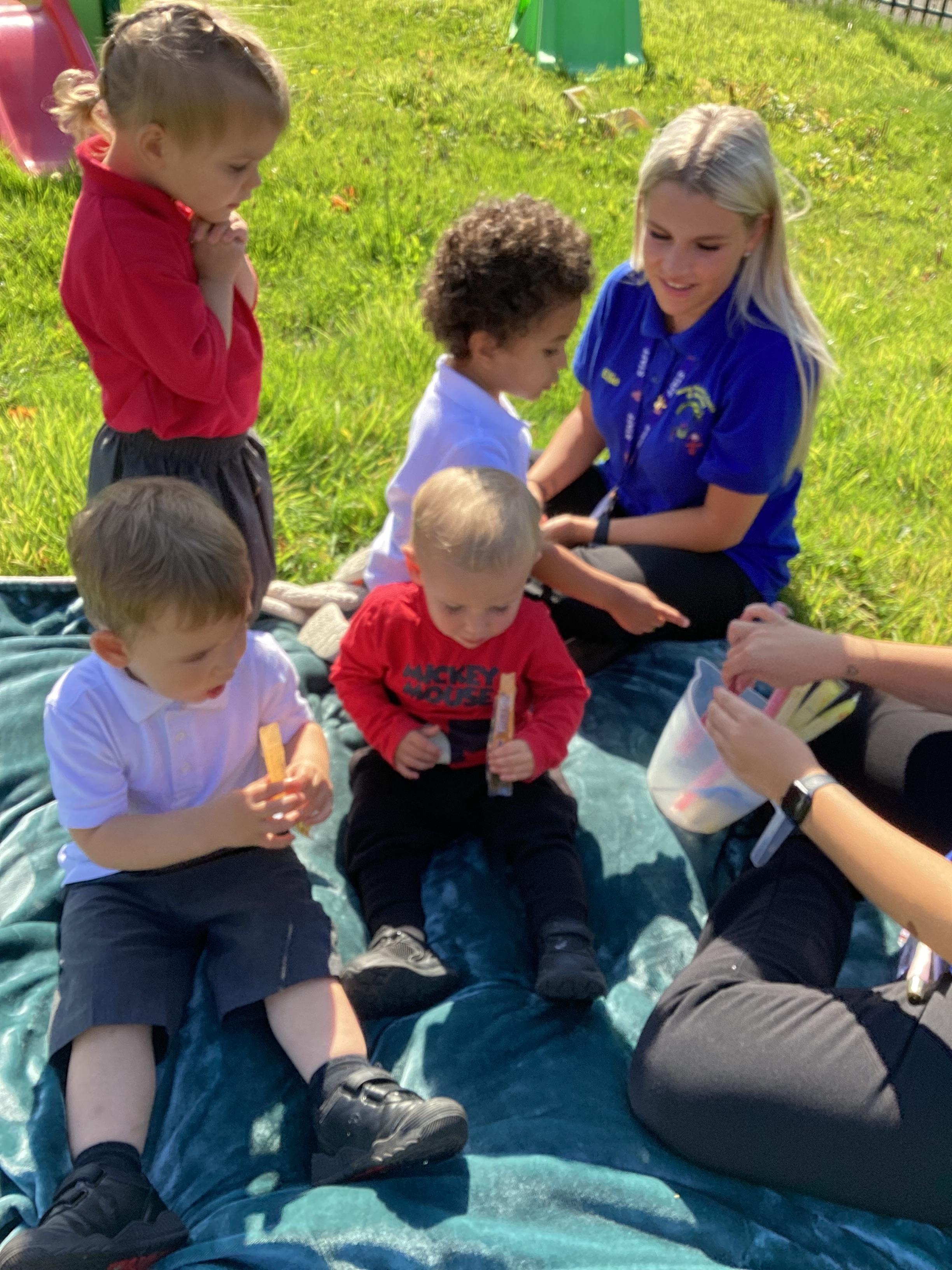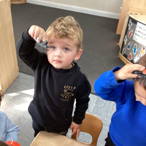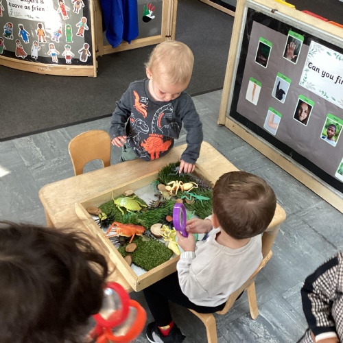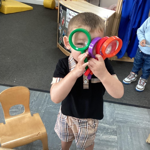The children really enjoy playing and exploring using the magnifying glasses whilst looking at the bugs/insects in the tray. They enjoy putting the insects on their heads and chasing and tickling their friends![]()