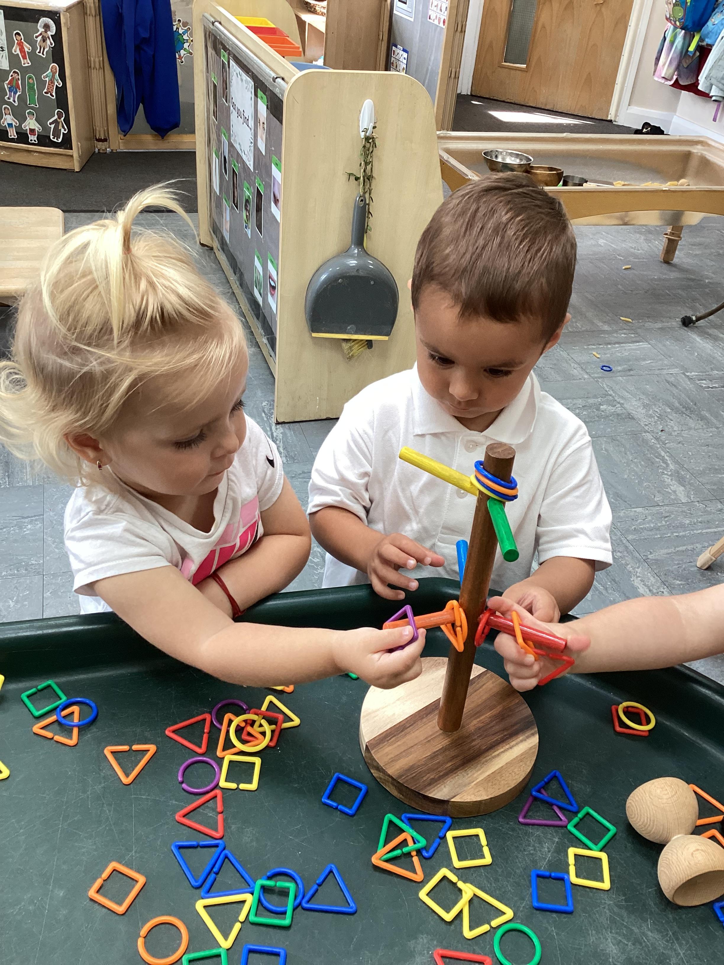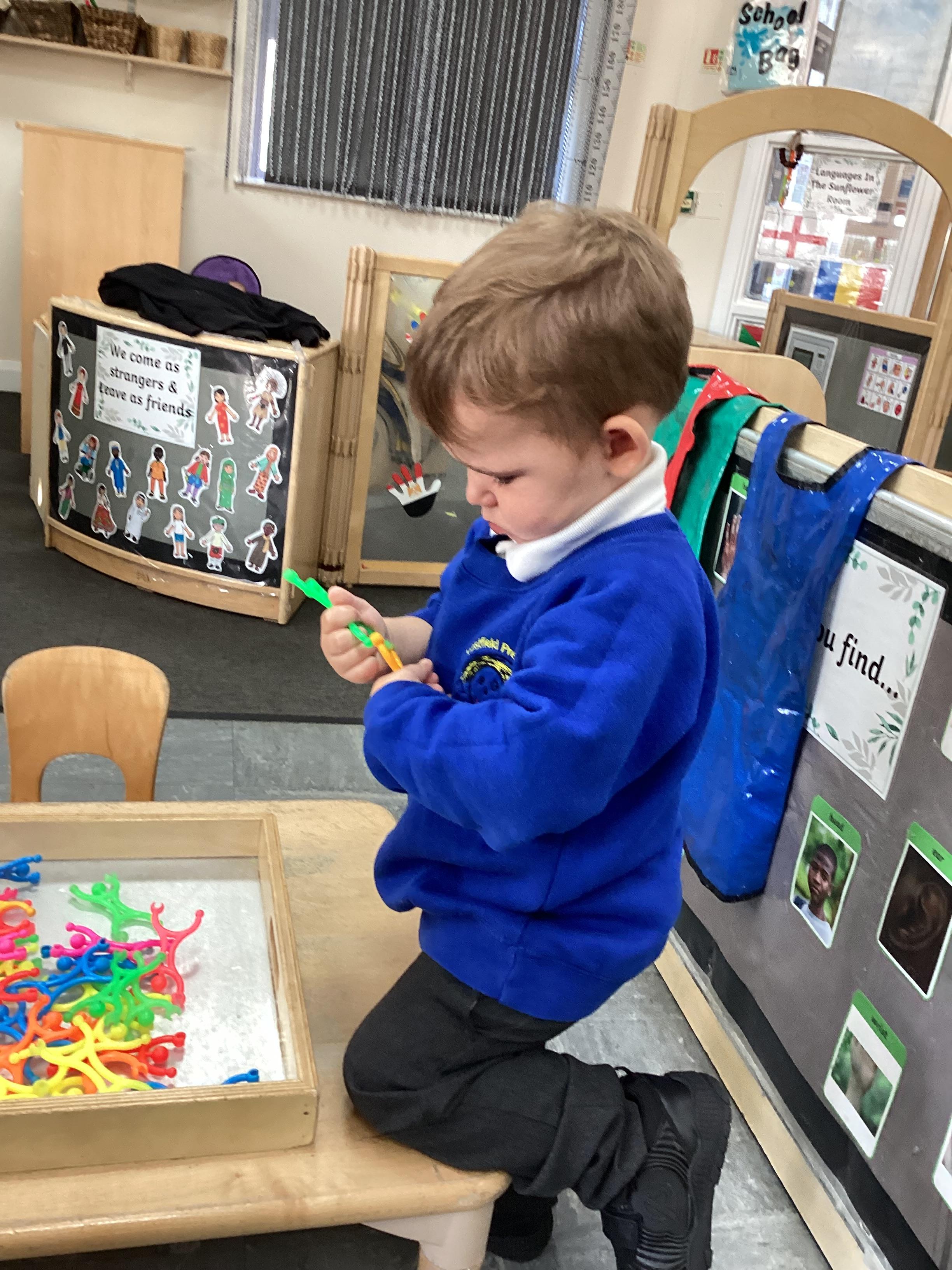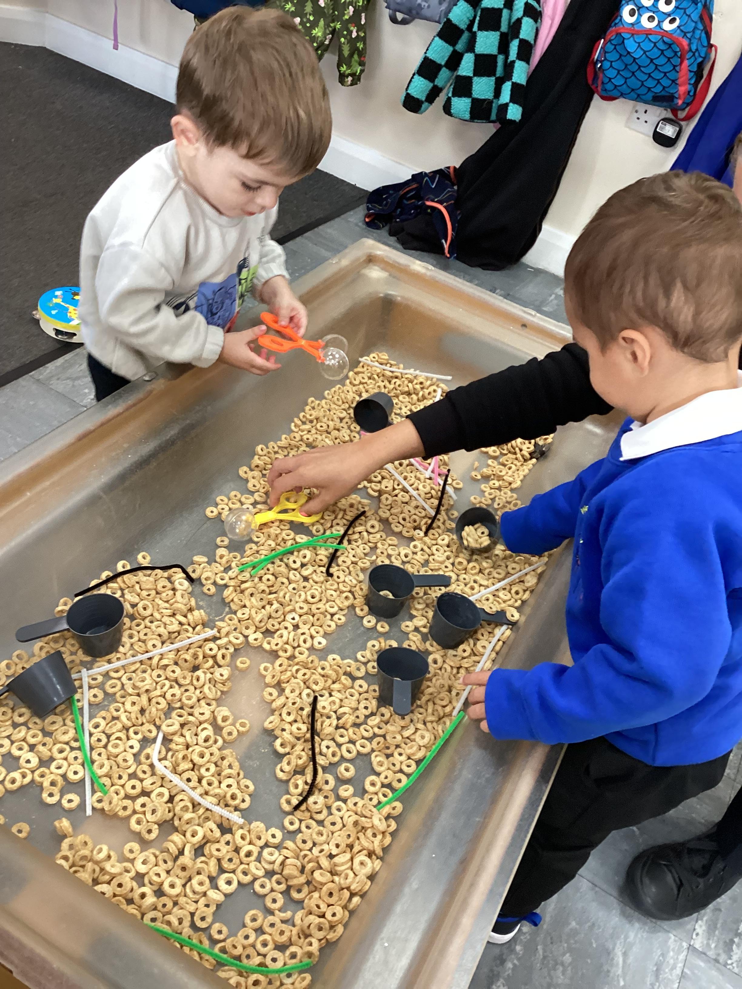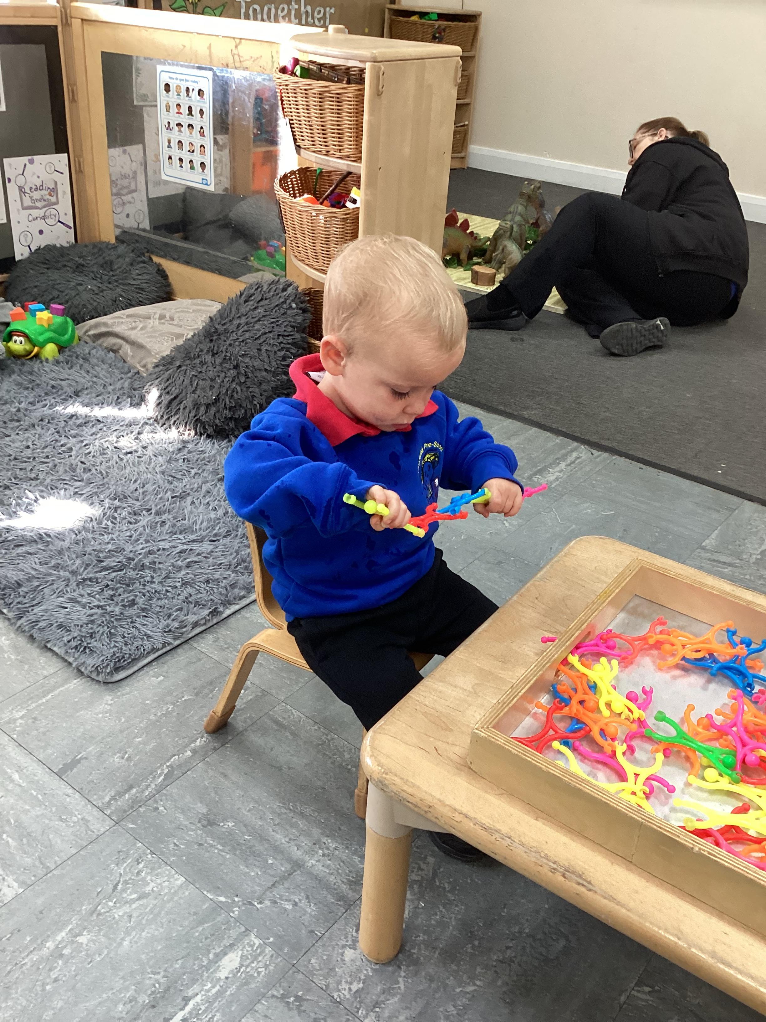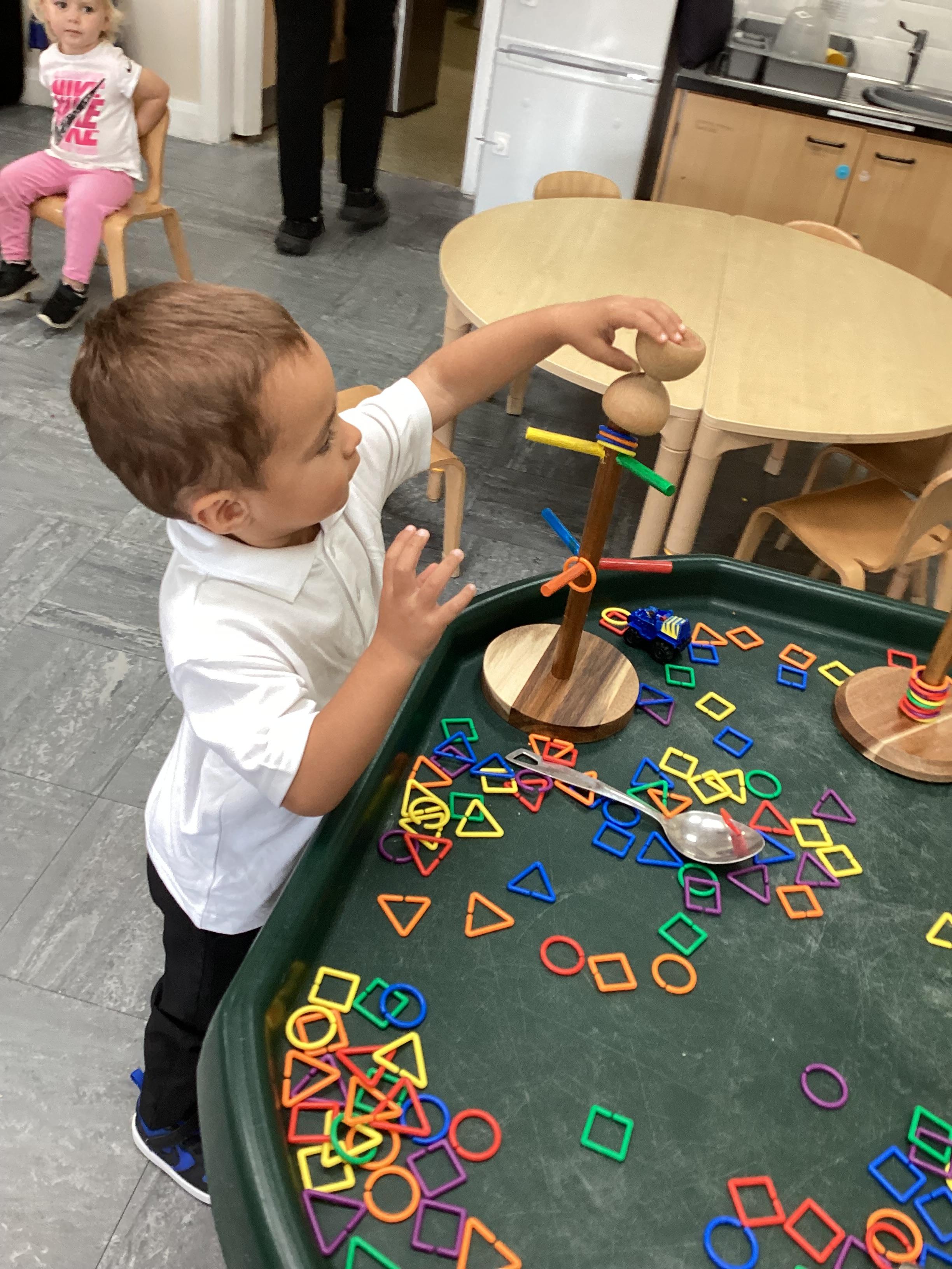 This week we have focused on our fine motor skills by using cheerio's to thread onto spaghetti. We have also used the coloured connecting acrobats to help develop these skills too. The children enjoyed making crowns/hats with these with some adult support![]()