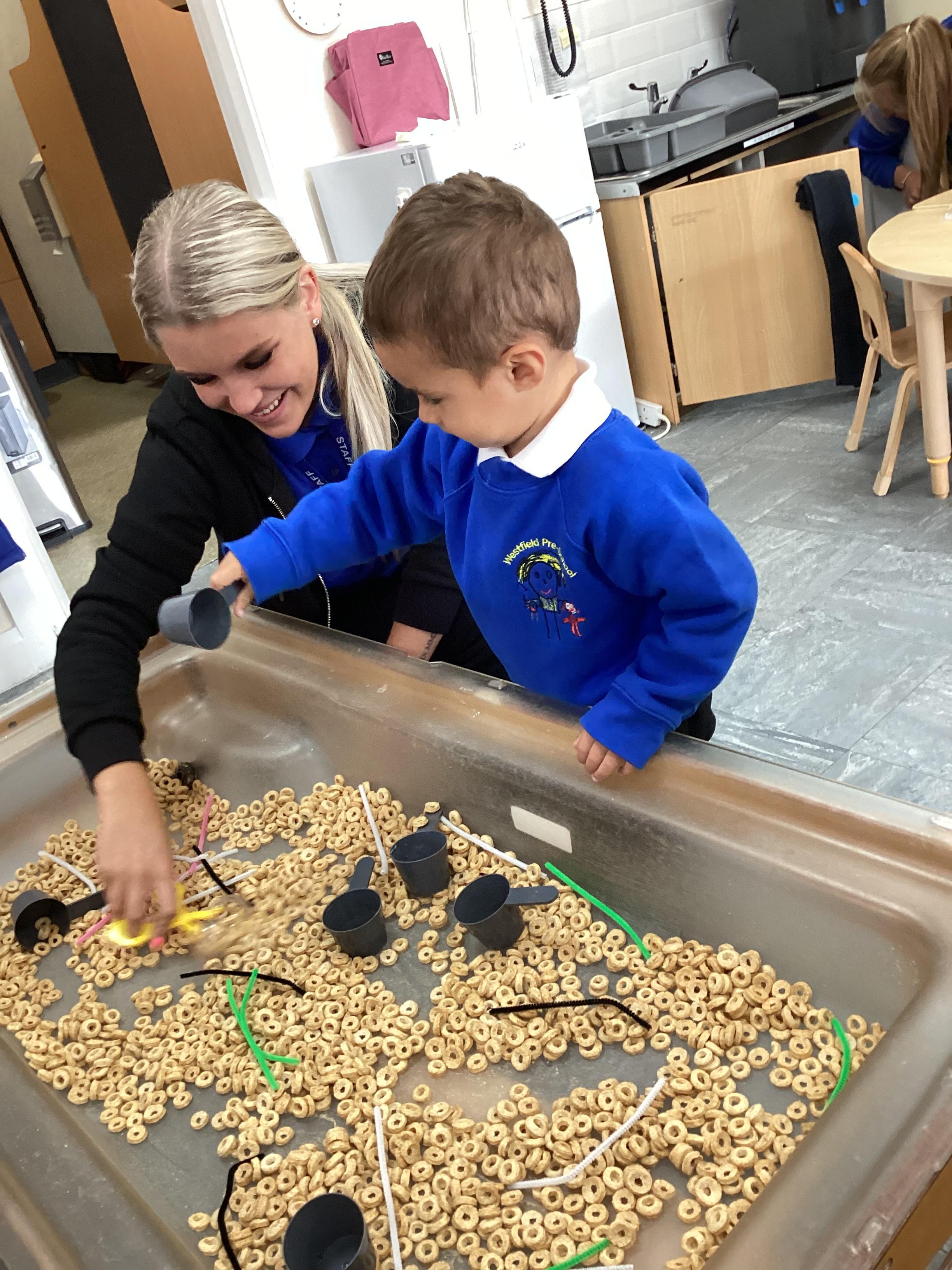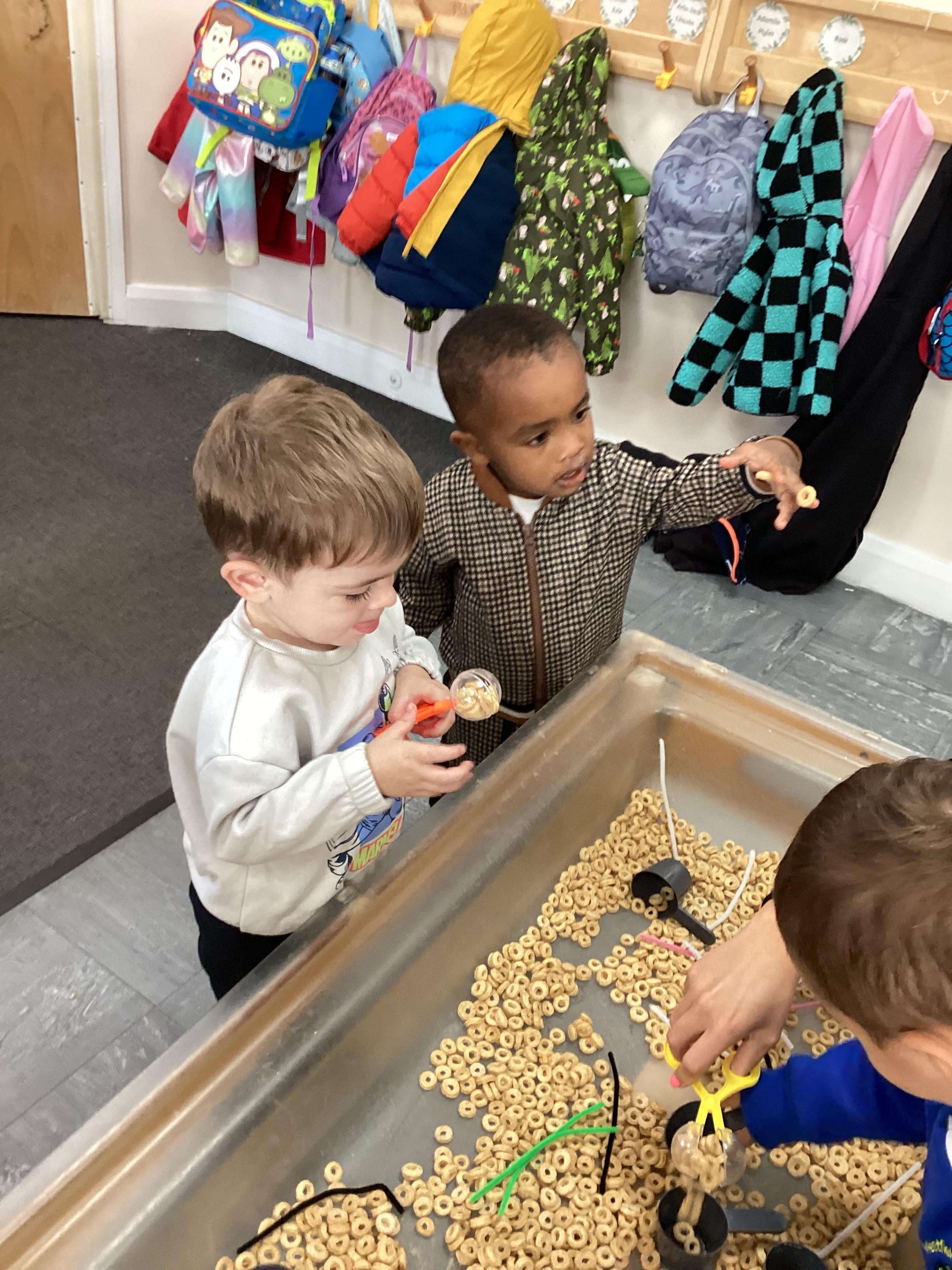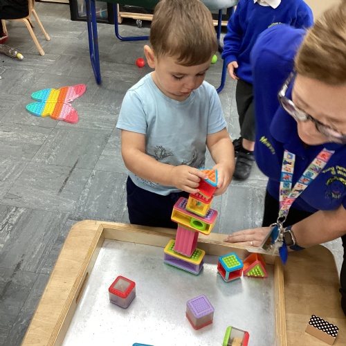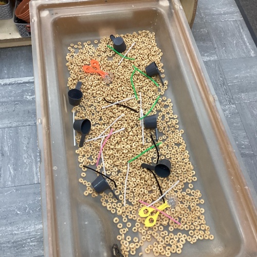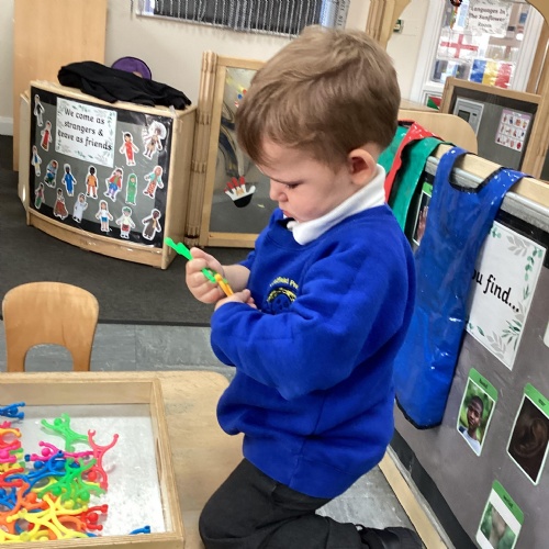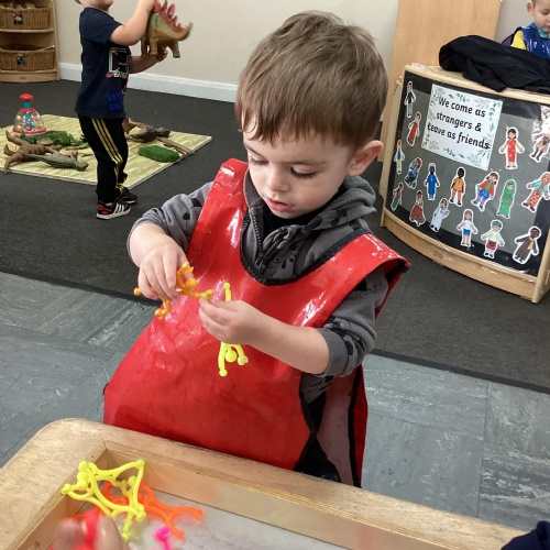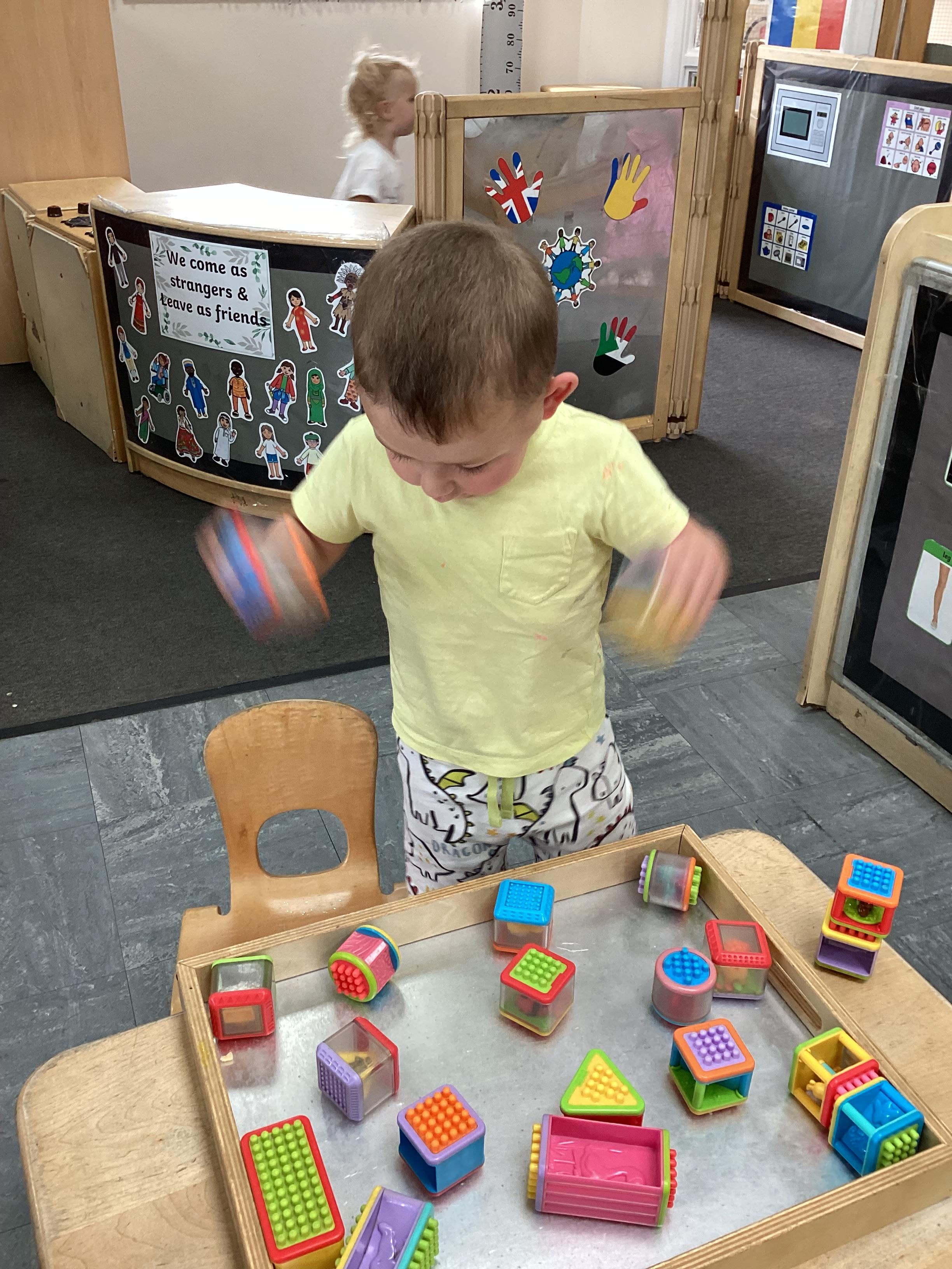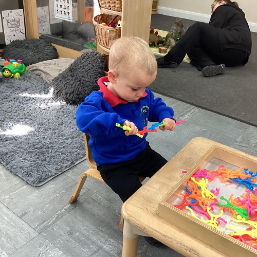 This week we have focused on our fine motor skills by using cheerio's to thread onto spaghetti. We have also used the coloured connecting acrobats to help develop these skills too. The children enjoyed making crowns/hats with these with some adult support![]()
