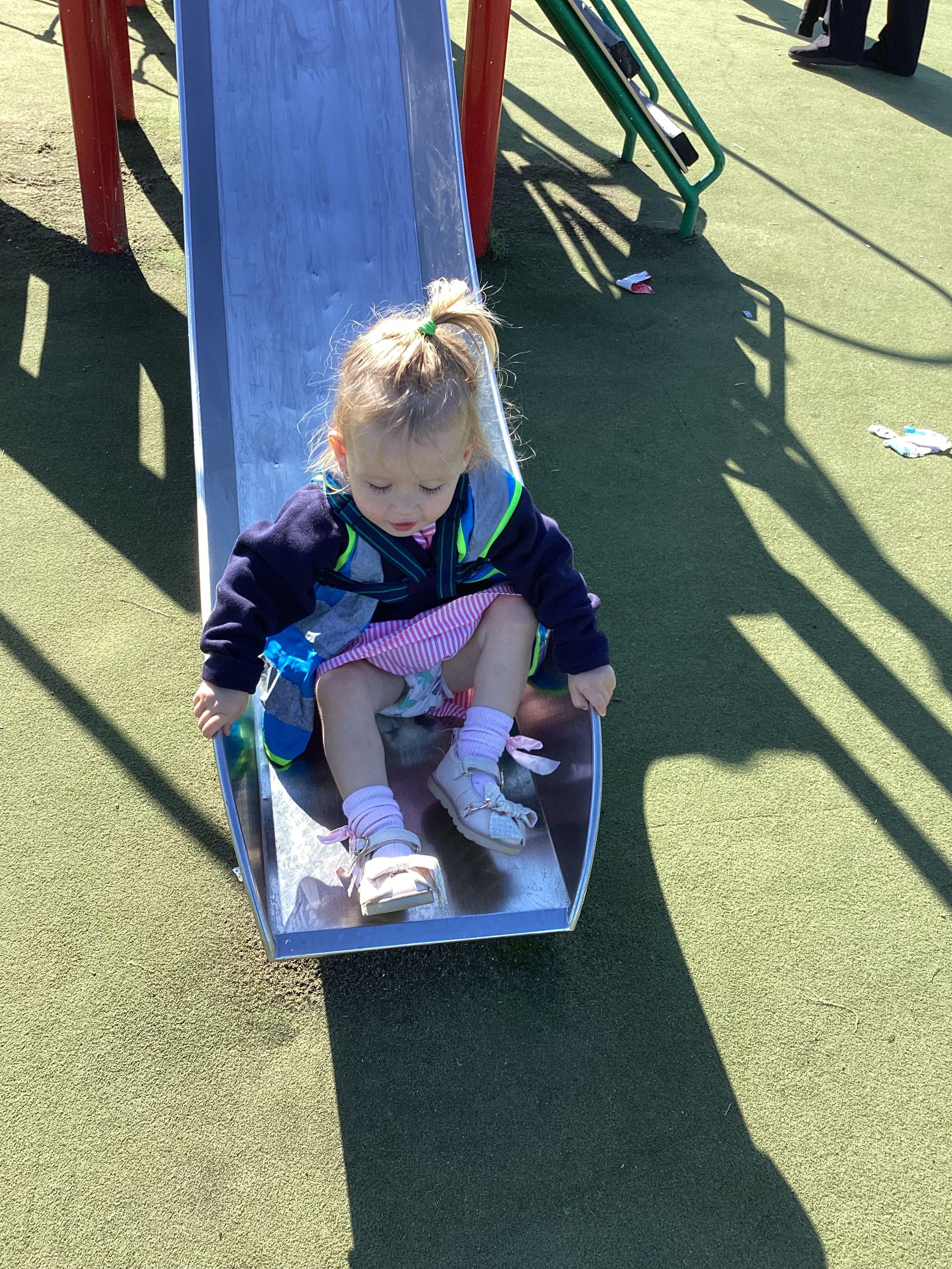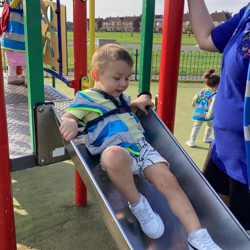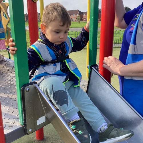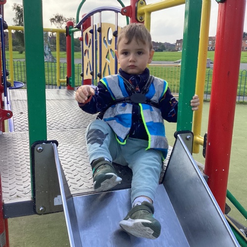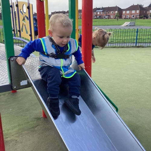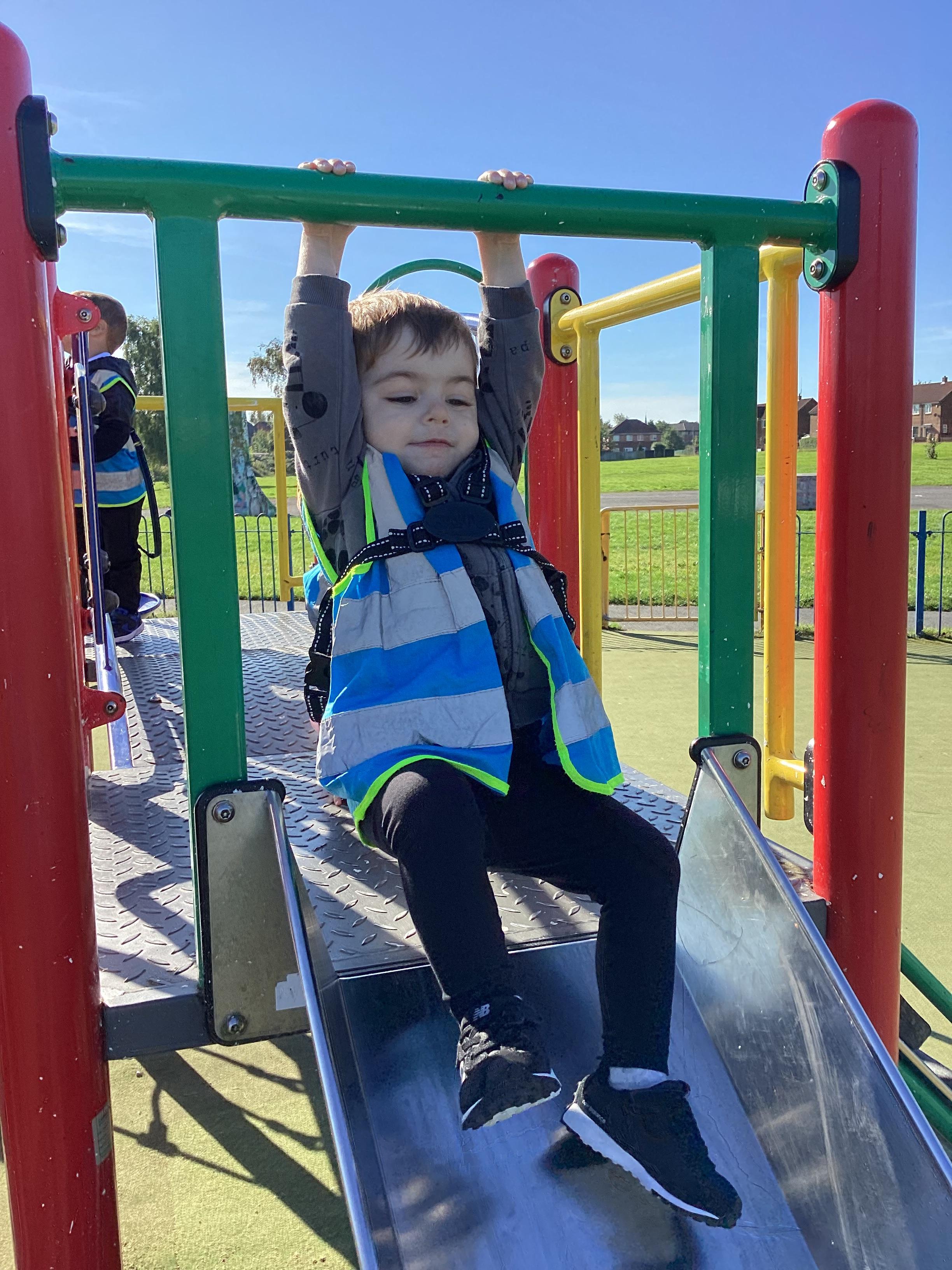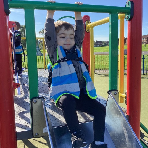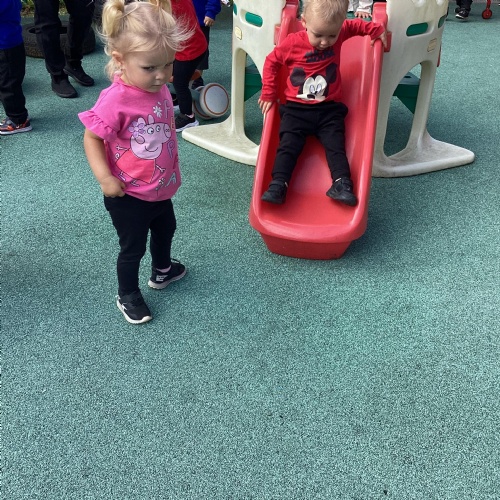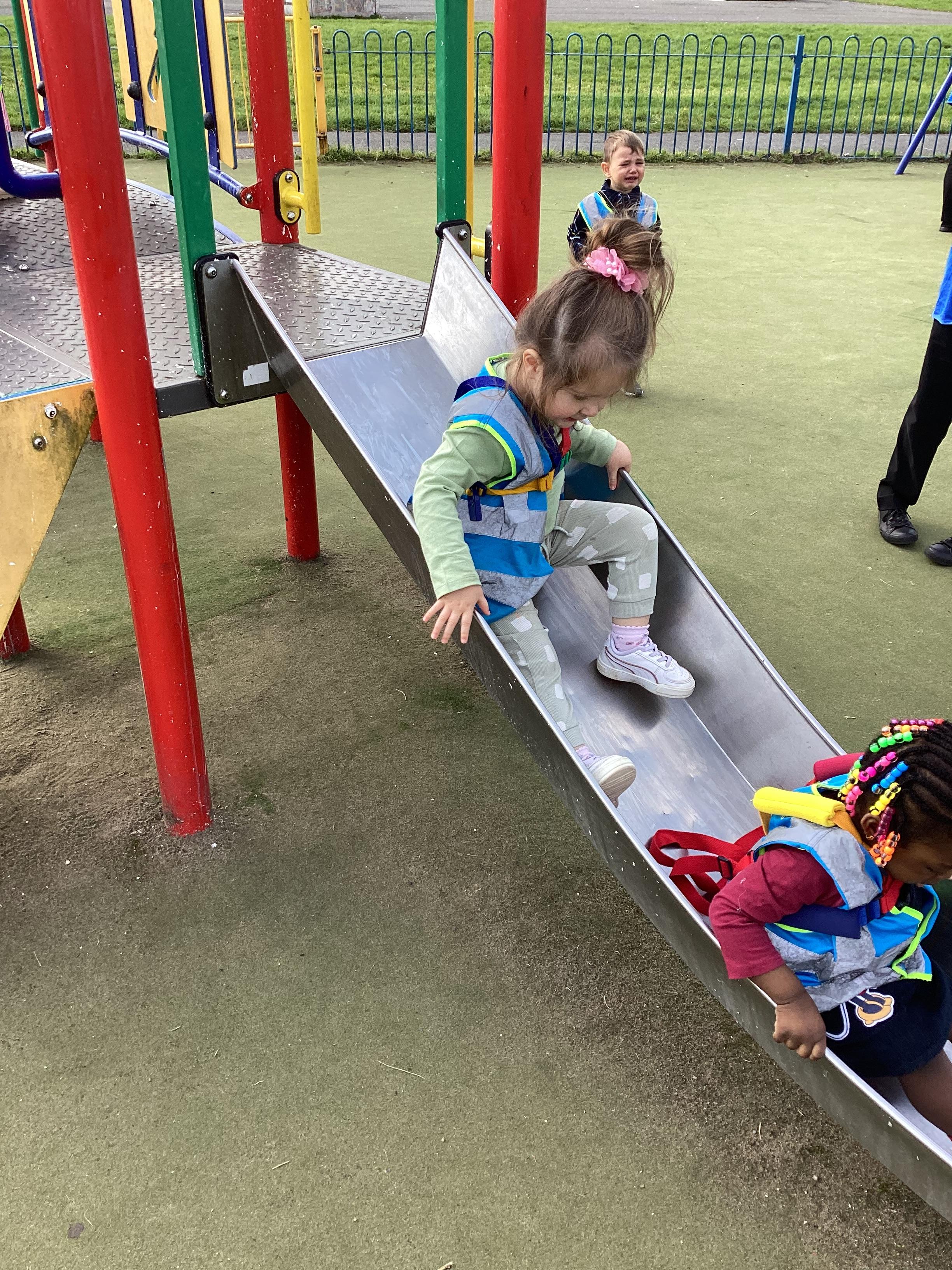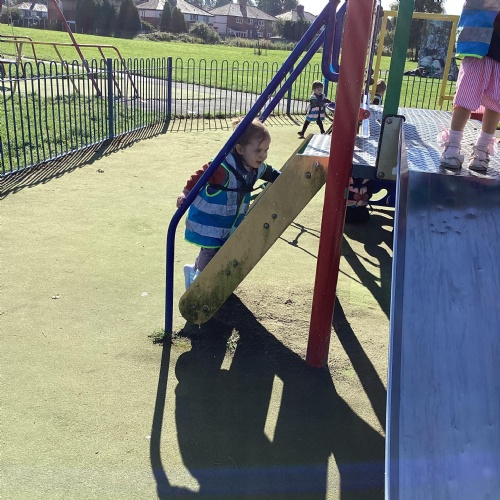 The children did really well walking to and from the park on their first little outing around the environment. They showed good "can do" attitudes when using physical skills and taking turns on the slide and swings![]()